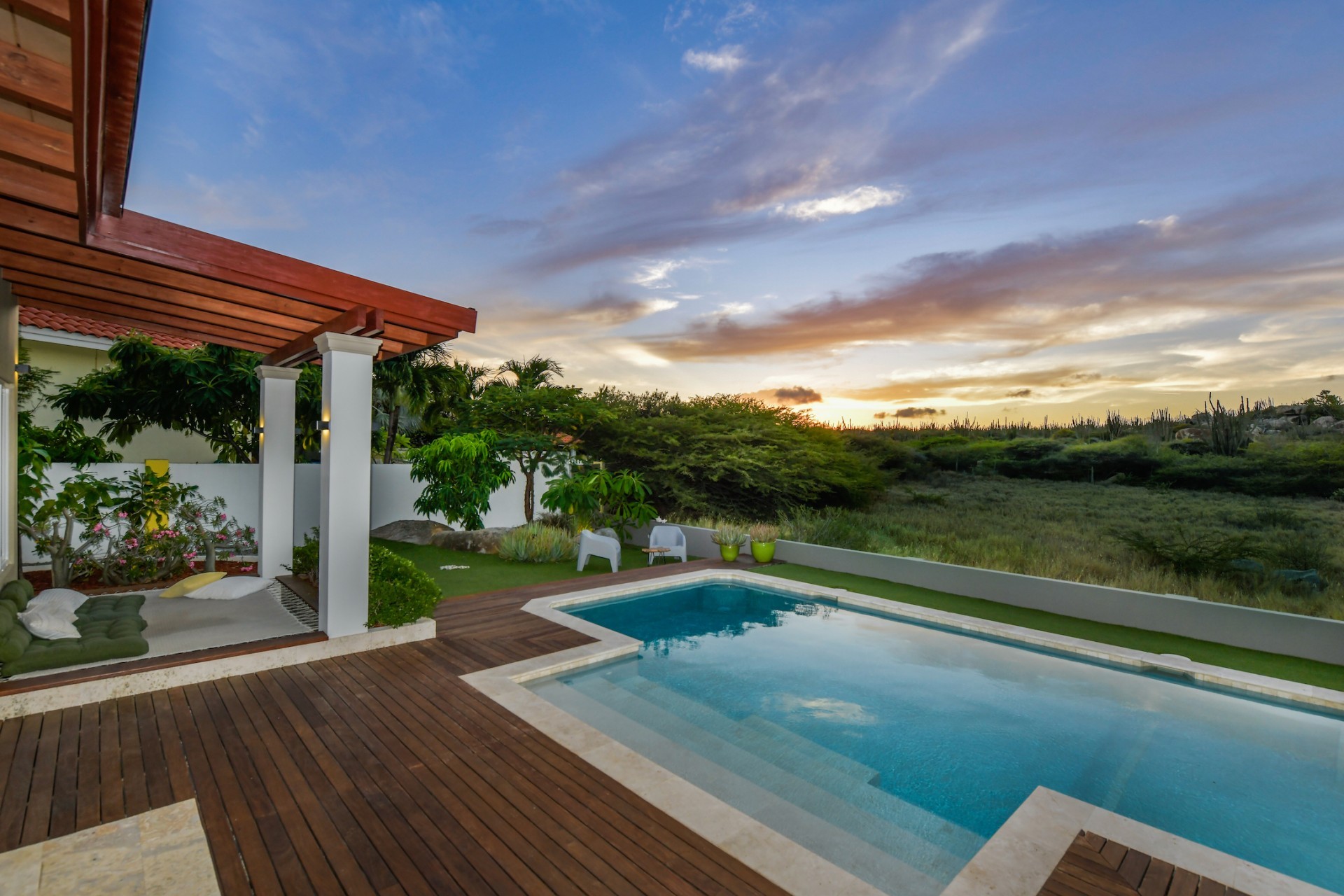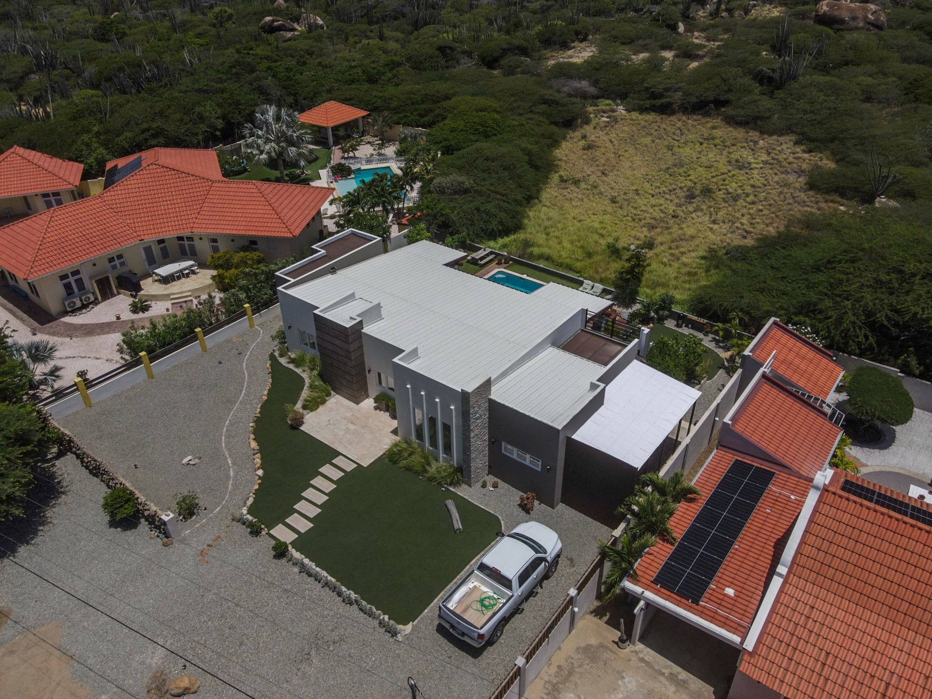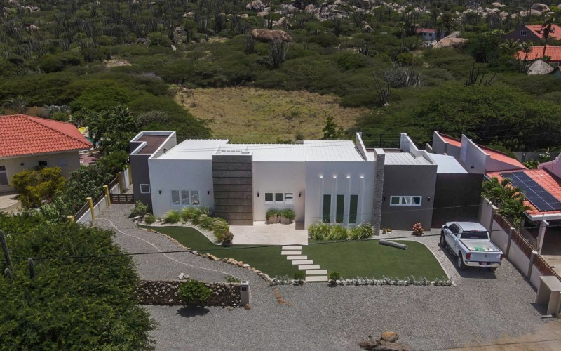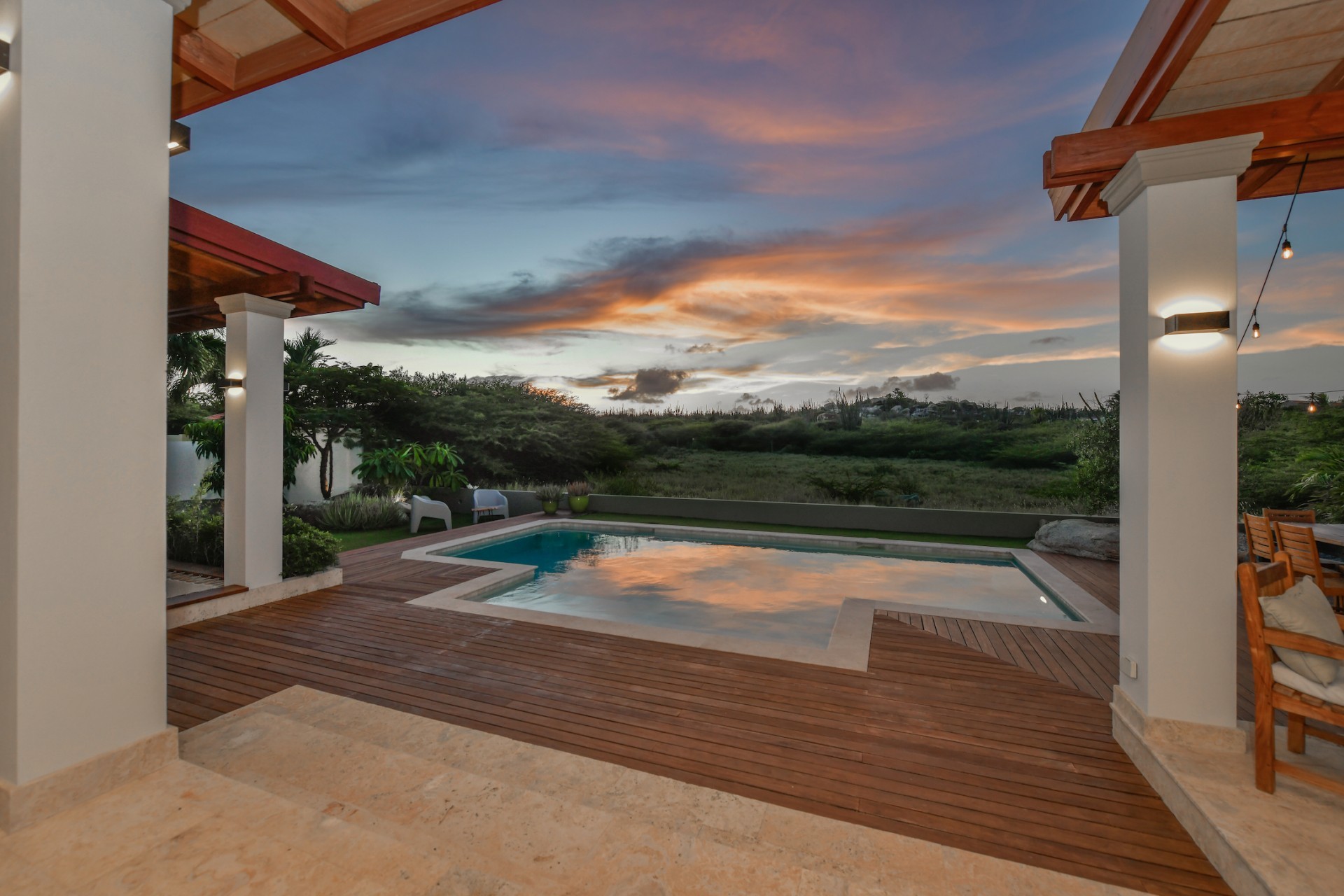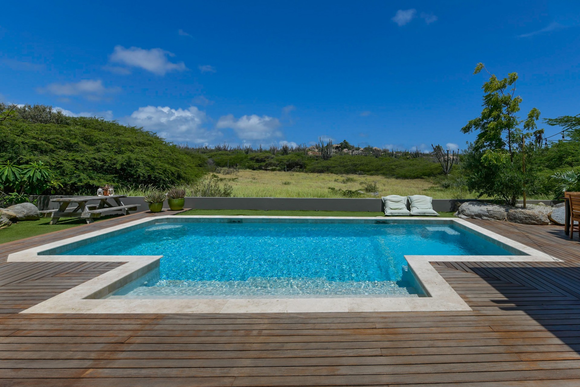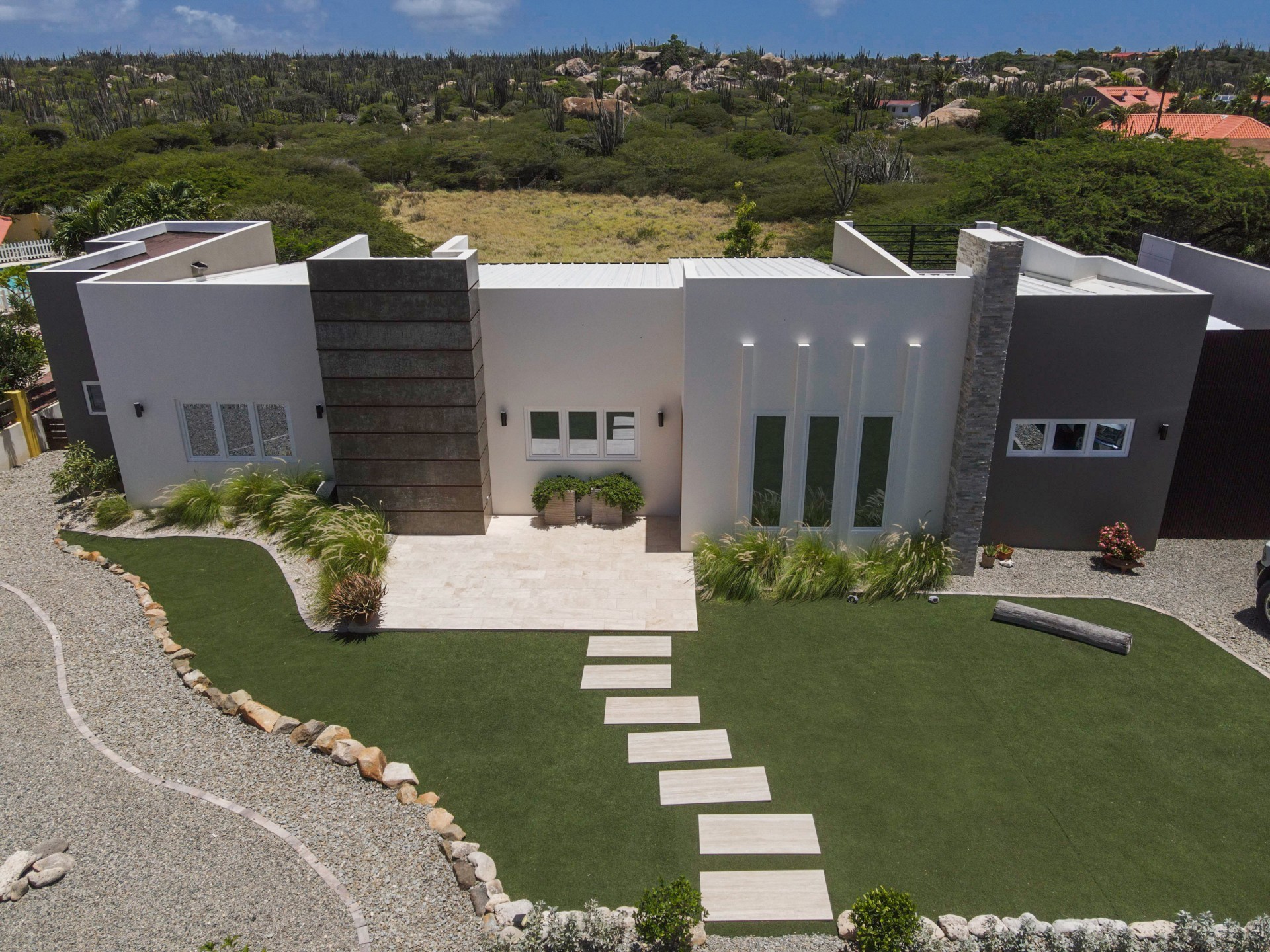Tucked away in the peaceful green hills of Babijn 21L, with Breathtaking views and Timeless Comfort This stunning modern 3 bedroom 3,5 bathroom villa seamlessly blends comfort, privacy, and the natural beauty of Aruba. Built in 2017 on 900 m² of full ownership land, the property features approximately 270 m² of total living space, including 170 m² indoors and 100 m² of covered outdoor areas, all finished with elegant natural stone tiling throughout the entire house. Step inside and experience the bright, open-concept design where large windows and sliding doors invite sunlight and refreshing breezes throughout. Subtle split levels create a smooth flow from the welcoming entryway to the cozy sunken living room and tranquil master suite. Outside, a beautifully landscaped garden provides unobstructed views over protected nature grounds a rare privilege on the island. Multiple terraces, a wooden deck, and a private pool make this the ideal space for relaxing, entertaining, or simply soaking in the peace and privacy. Located just 15 minutes from Palm Beach in a quiet, low-traffic residential area, this villa is perfect as a family home, retirement retreat, or investment property with excellent rental potential. Extra Highlights Option to add a rooftop terrace for panoramic island views Each bedroom includes its own private bathroom Spacious laundry/storage room easily convertible into a 4th bedroom Well-insulated roof and windows - perfect for cool, comfortable airco living. Quiet location, surrounded by nature yet 15 minutes from Palm Beach Experience the perfect blend of modern design, natural surroundings, and island tranquility a true hidden gem that rarely becomes available on the market. Ready to make THE MOVE? Schedule your private showing today. 📞 +297 592 2506 📧 [email protected]