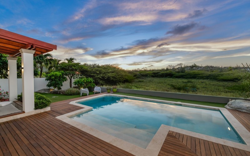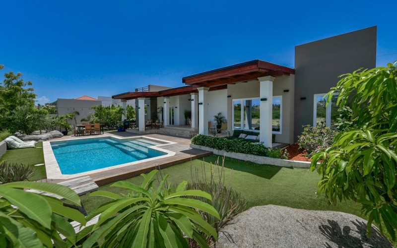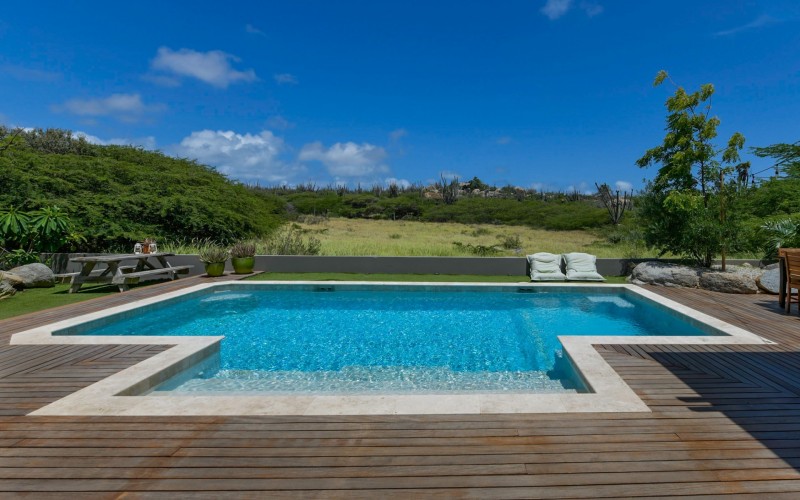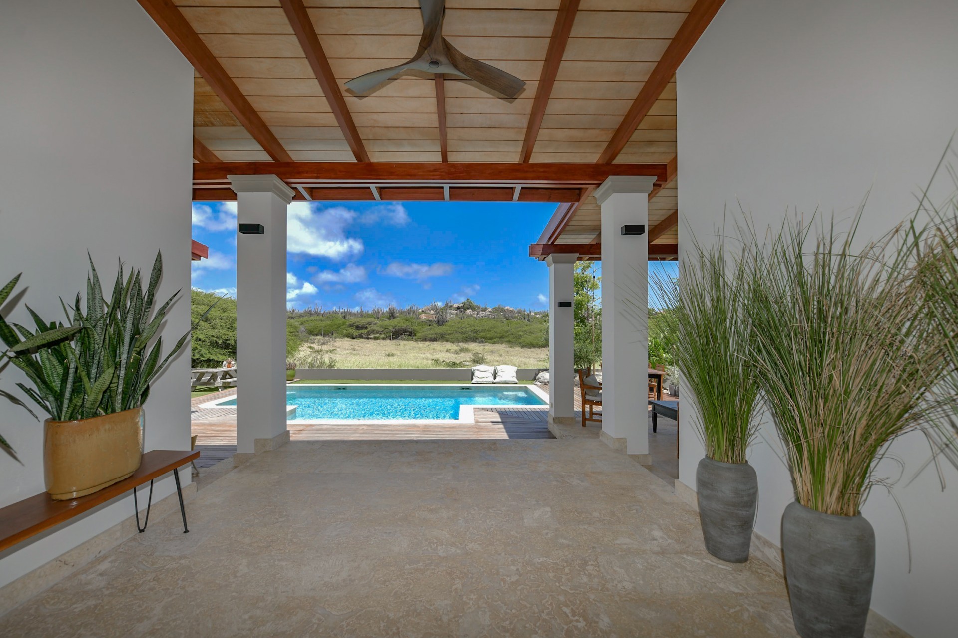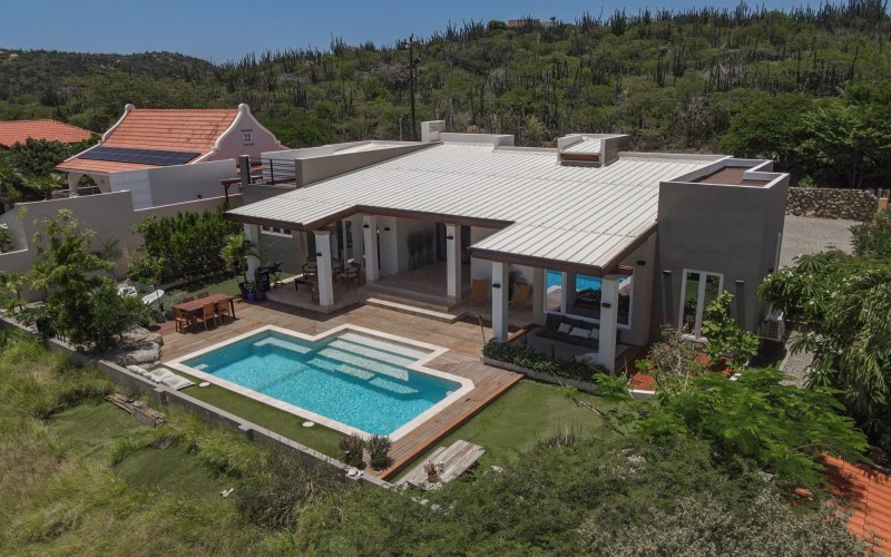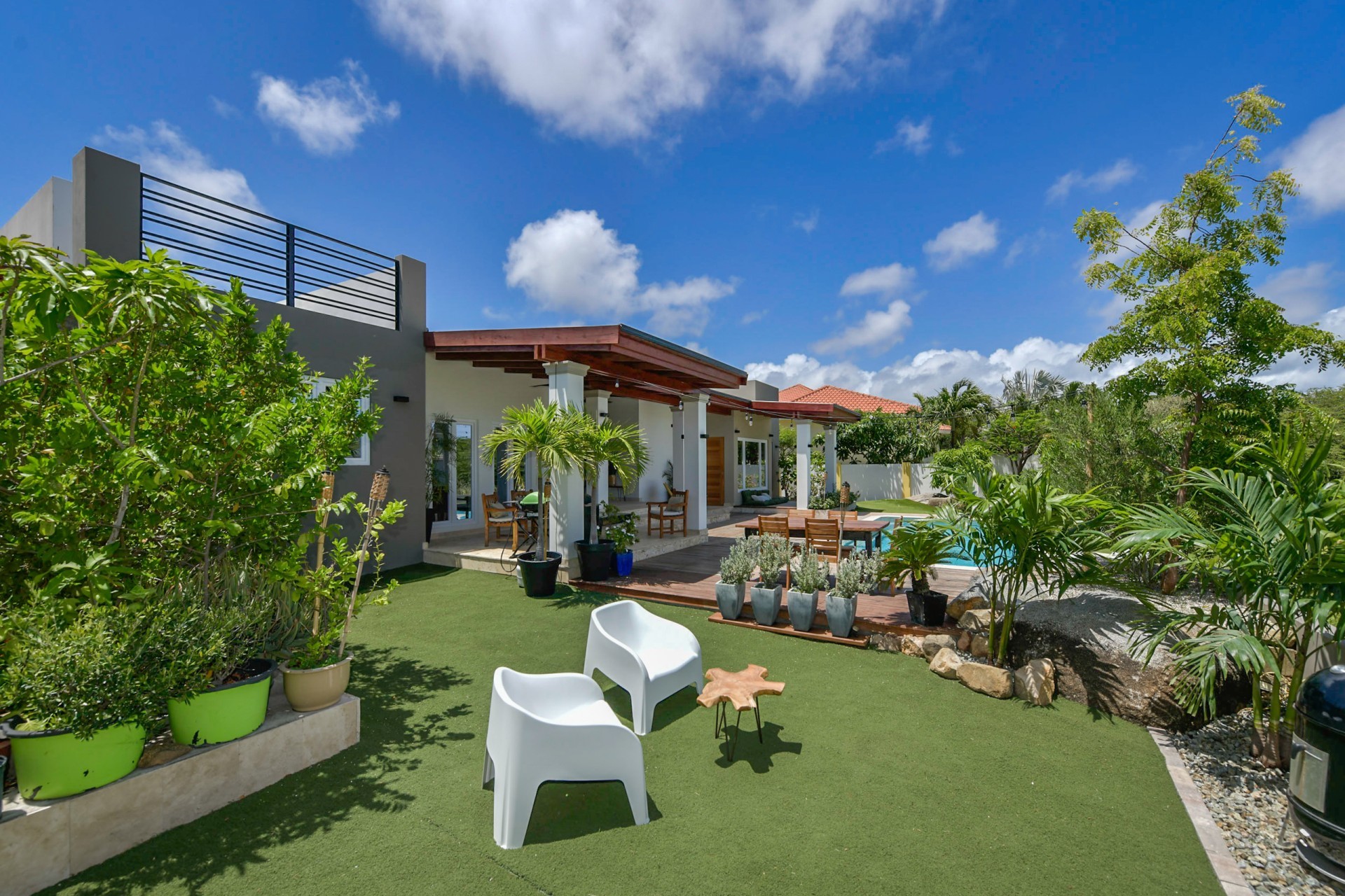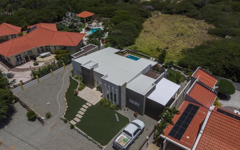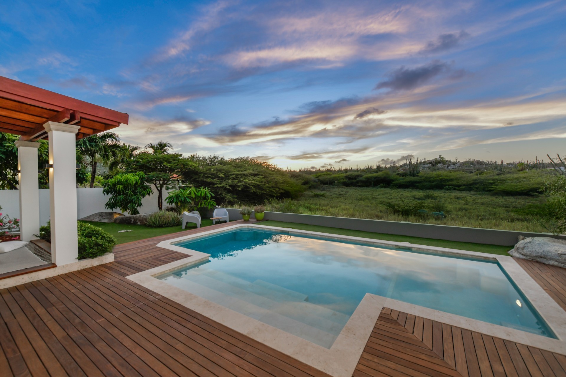 Tucked away in the peaceful green hills of Babijn 21L, with Breathtaking views and Timeless Comfort This stunning modern 3 bedroom 3,5 bathroom villa seamlessly blends comfort, privacy, and the natural beauty of Aruba. Built in 2017 on 900 m² of full ownership land, the property features approximately 270 m² of total living space, including 170 m² indoors and 100 m² of covered outdoor areas, all finished with elegant natural stone tiling throughout the entire house. Step inside and experience the bright, open-concept design where large windows and sliding doors invite sunlight and refreshing breezes throughout. Subtle split levels create a smooth flow from the welcoming entryway to the cozy sunken living room and tranquil master suite. Outside, a beautifully landscaped garden provides unobstructed views over protected nature grounds a rare privilege on the island. Multiple terraces, a wooden deck, and a private pool make this the ideal space for relaxing, entertaining, or simply soaking in the peace and privacy. Located just 15 minutes from Palm Beach in a quiet, low-traffic residential area, this villa is perfect as a family home, retirement retreat, or investment property with excellent rental potential. Extra Highlights Option to add a rooftop terrace for panoramic island views Each bedroom includes its own private bathroom Spacious laundry/storage room easily convertible into a 4th bedroom Well-insulated roof and windows - perfect for cool, comfortable airco living. Quiet location, surrounded by nature yet 15 minutes from Palm Beach Experience the perfect blend of modern design, natural surroundings, and island tranquility a true hidden gem that rarely becomes available on the market. Ready to make THE MOVE? Schedule your private showing today. 📞 +297 592 2506 📧 [email protected]