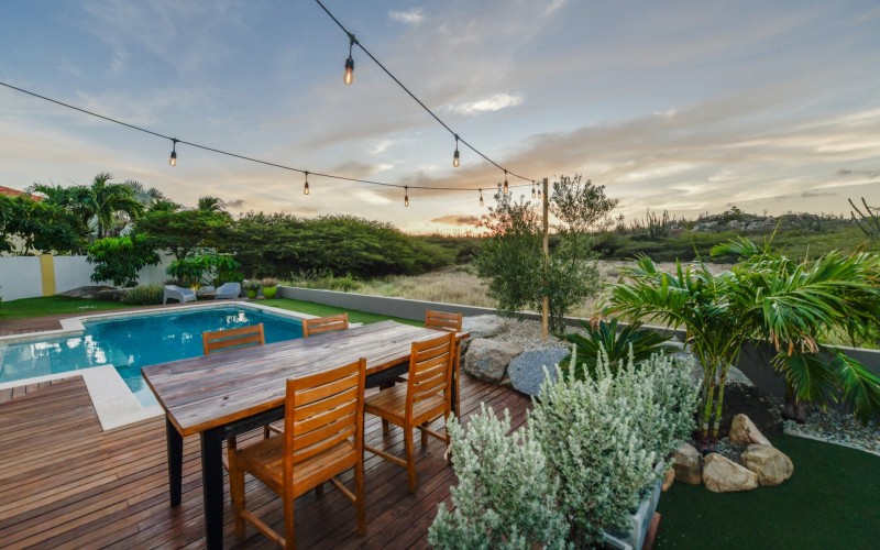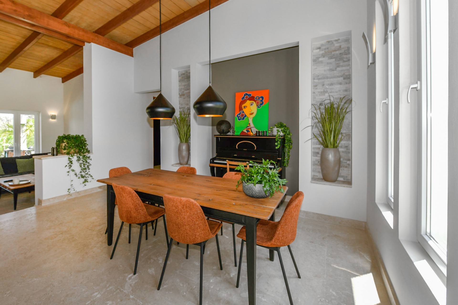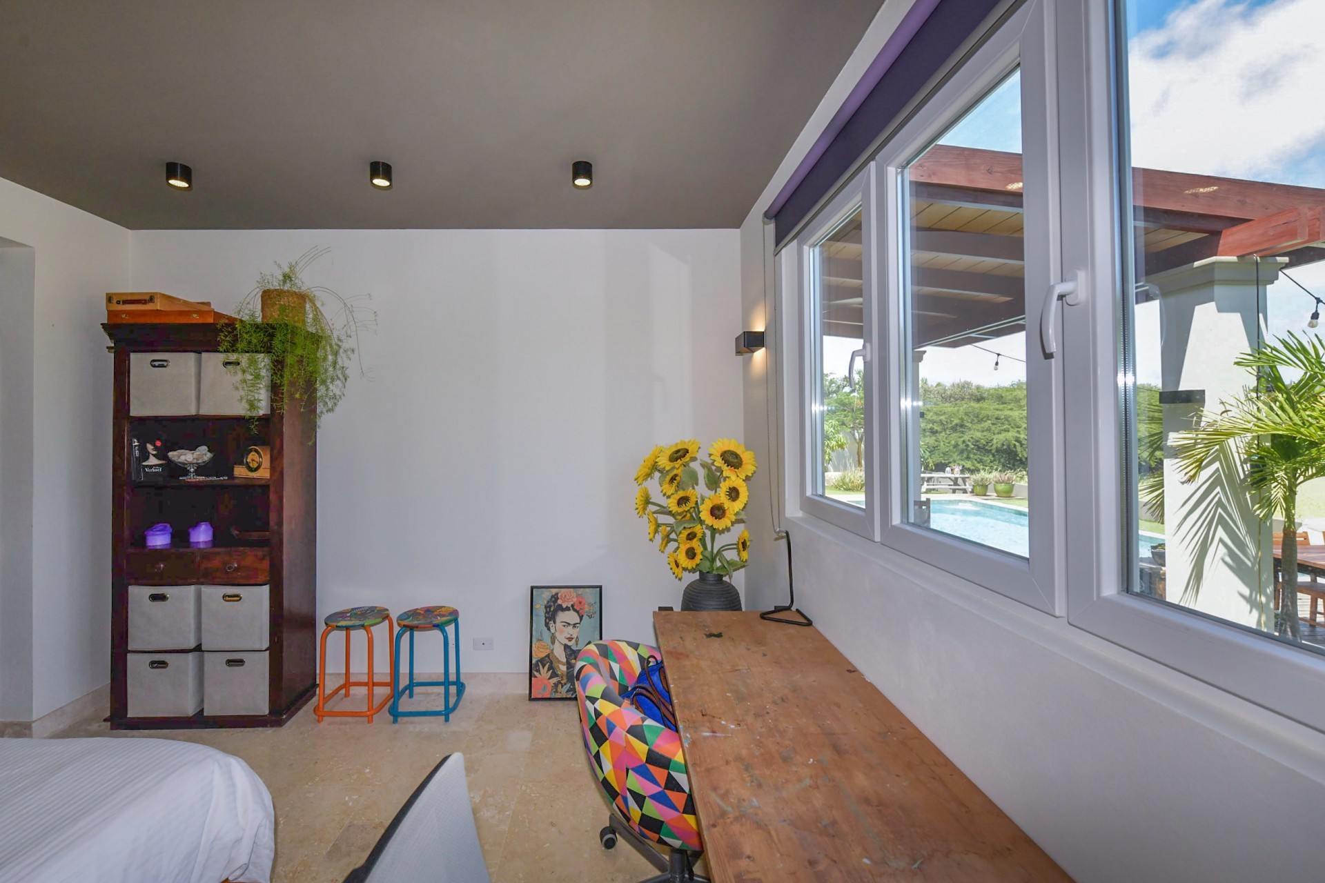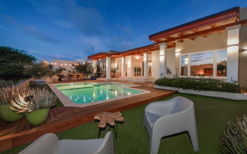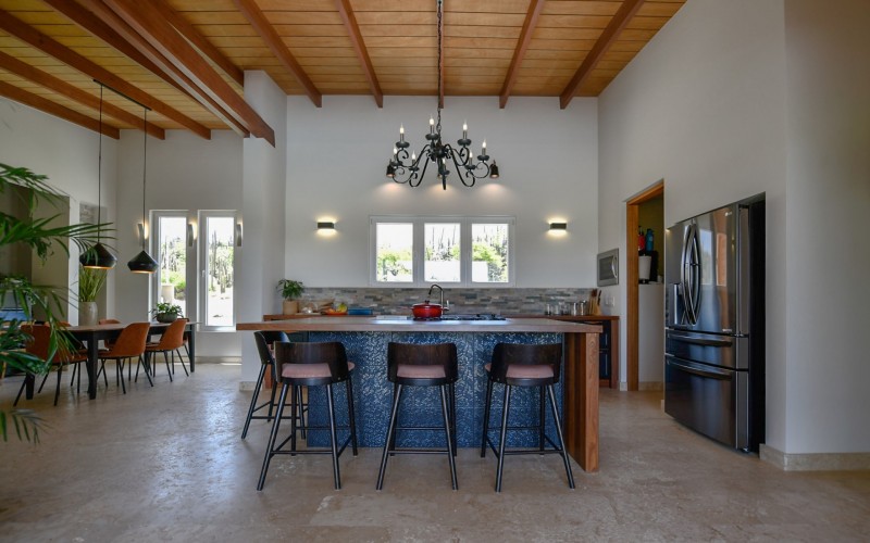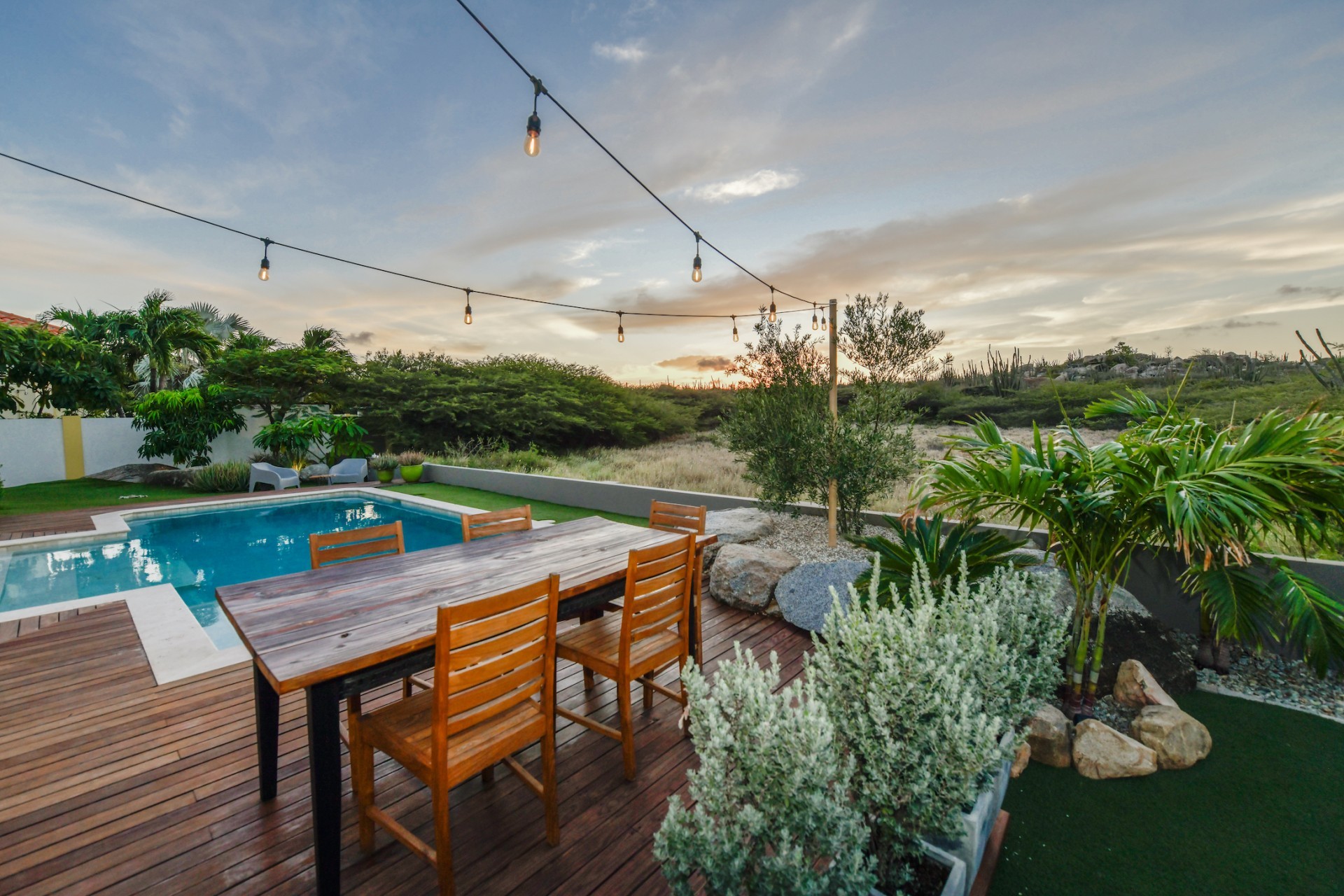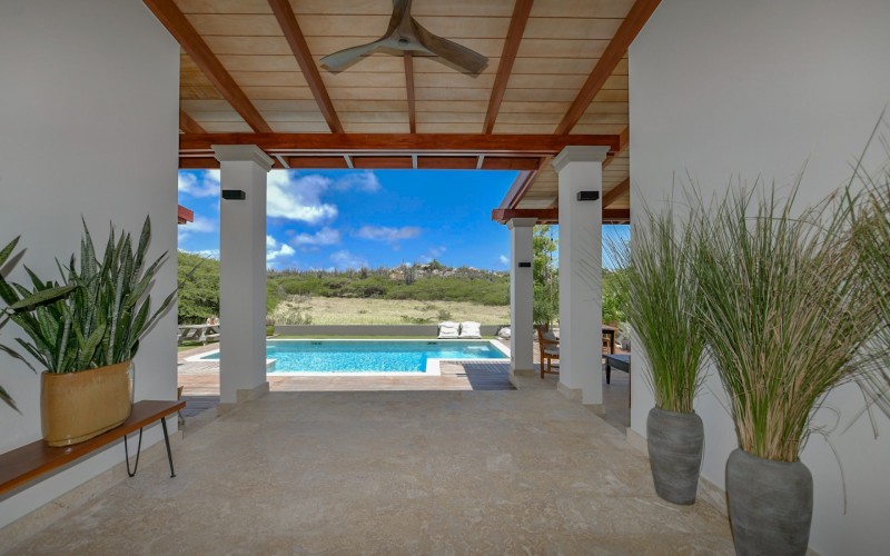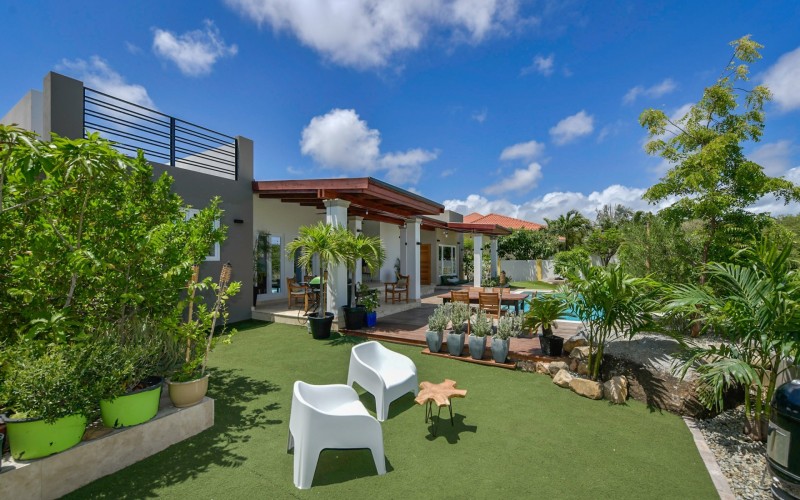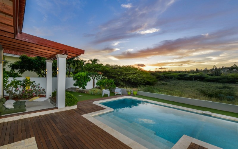 Tucked away in the peaceful green hills of Babijn 21L, with Breathtaking views and Timeless Comfort This stunning modern 3 bedroom 3,5 bathroom villa seamlessly blends comfort, privacy, and the natural beauty of Aruba. Built in 2017 on 900 m² of full ownership land, the property features approximately 270 m² of total living space, including 170 m² indoors and 100 m² of covered outdoor areas, all finished with elegant natural stone tiling throughout the entire house. Step inside and experience the bright, open-concept design where large windows and sliding doors invite sunlight and refreshing breezes throughout. Subtle split levels create a smooth flow from the welcoming entryway to the cozy sunken living room and tranquil master suite. Outside, a beautifully landscaped garden provides unobstructed views over protected nature grounds a rare privilege on the island. Multiple terraces, a wooden deck, and a private pool make this the ideal space for relaxing, entertaining, or simply soaking in the peace and privacy. Located just 15 minutes from Palm Beach in a quiet, low-traffic residential area, this villa is perfect as a family home, retirement retreat, or investment property with excellent rental potential. Extra Highlights Option to add a rooftop terrace for panoramic island views Each bedroom includes its own private bathroom Spacious laundry/storage room easily convertible into a 4th bedroom Well-insulated roof and windows - perfect for cool, comfortable airco living. Quiet location, surrounded by nature yet 15 minutes from Palm Beach Experience the perfect blend of modern design, natural surroundings, and island tranquility a true hidden gem that rarely becomes available on the market. Ready to make THE MOVE? Schedule your private showing today. 📞 +297 592 2506 📧 [email protected]