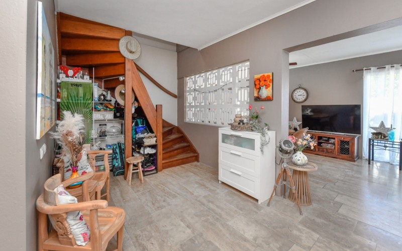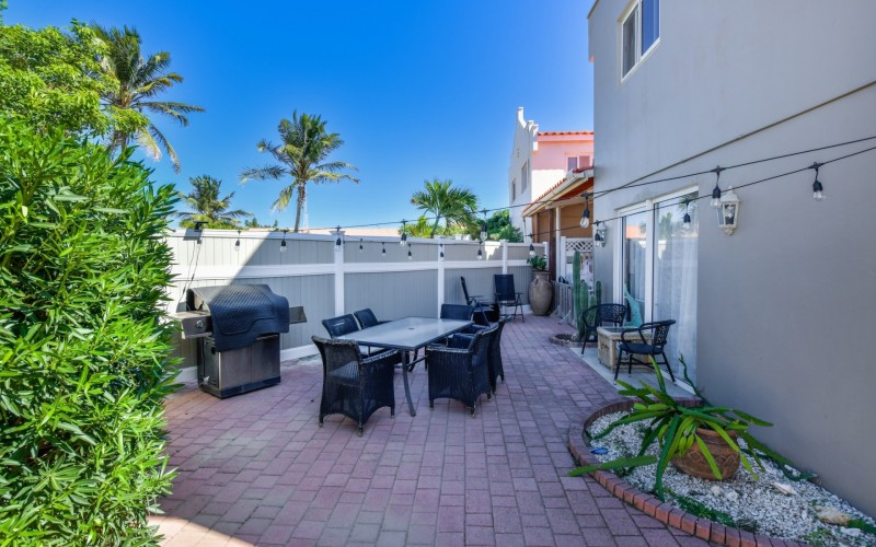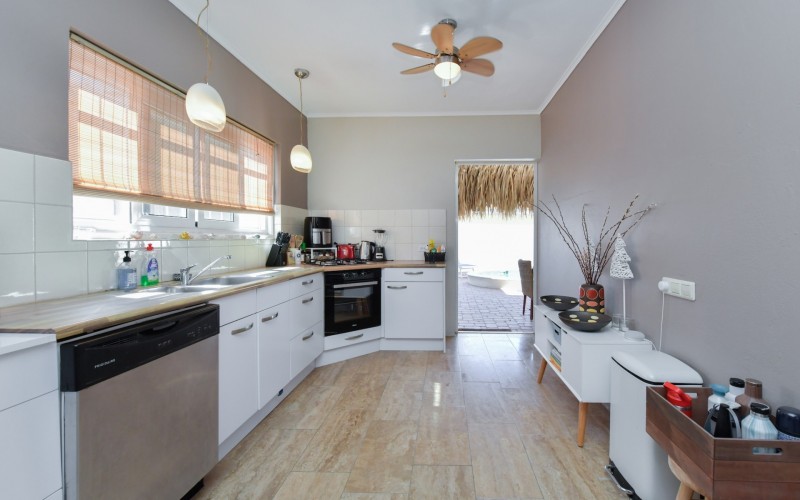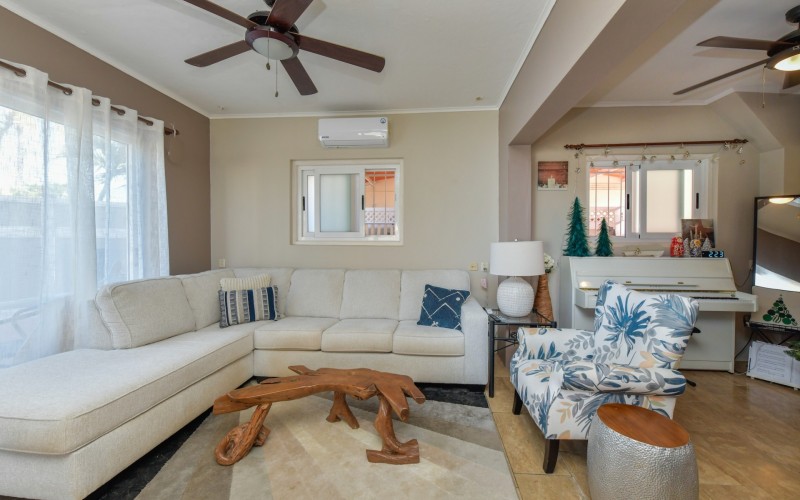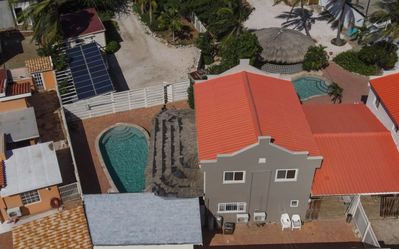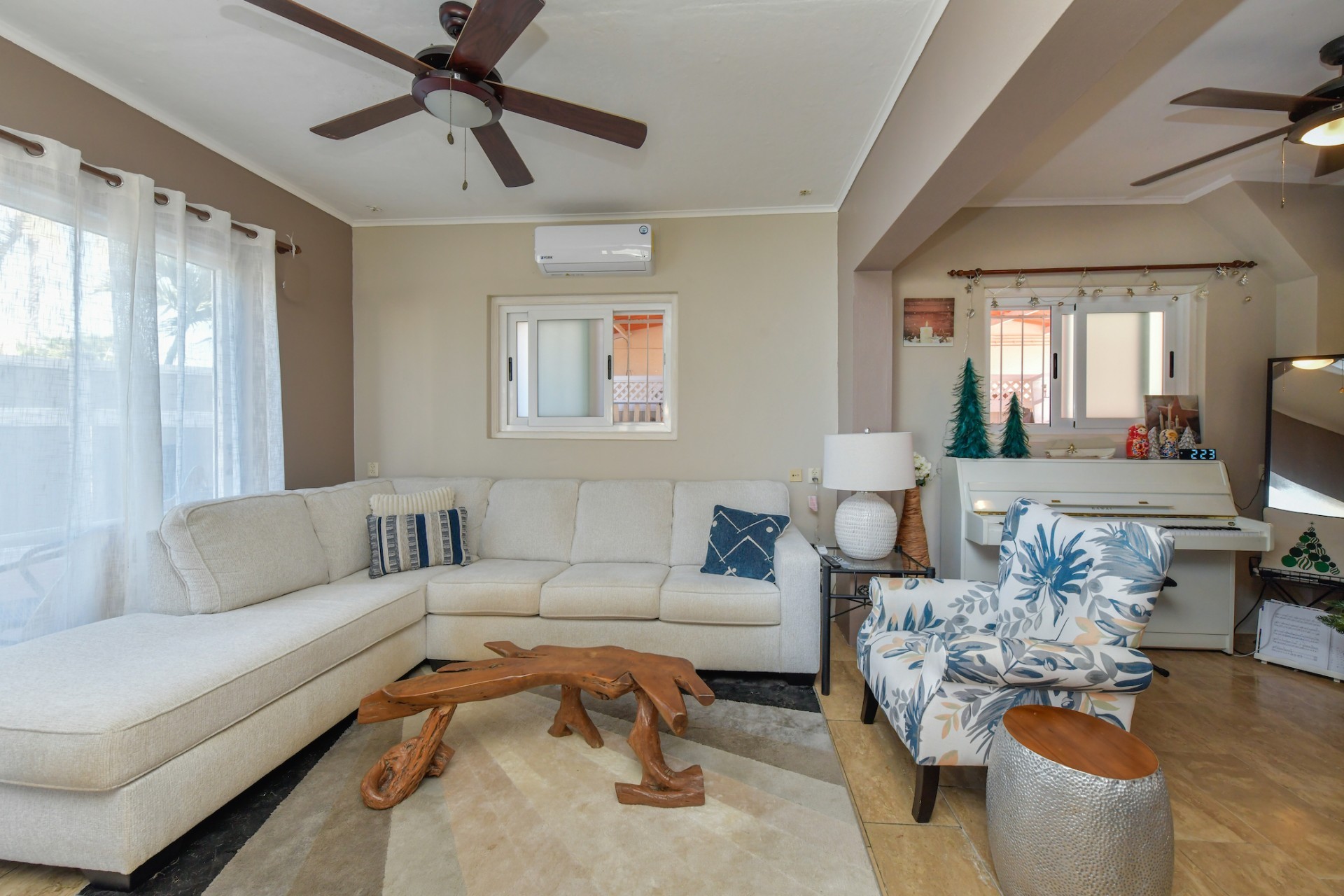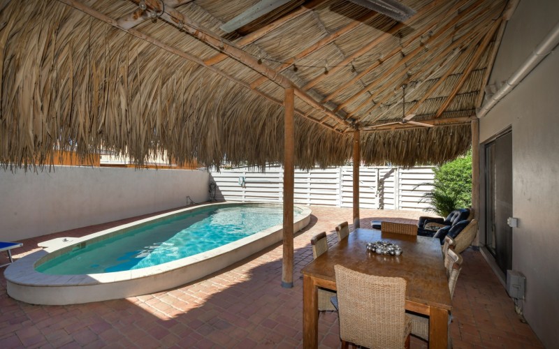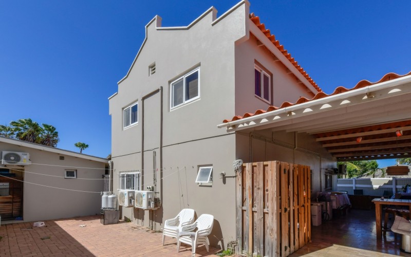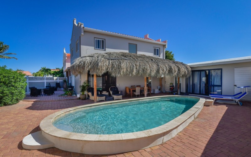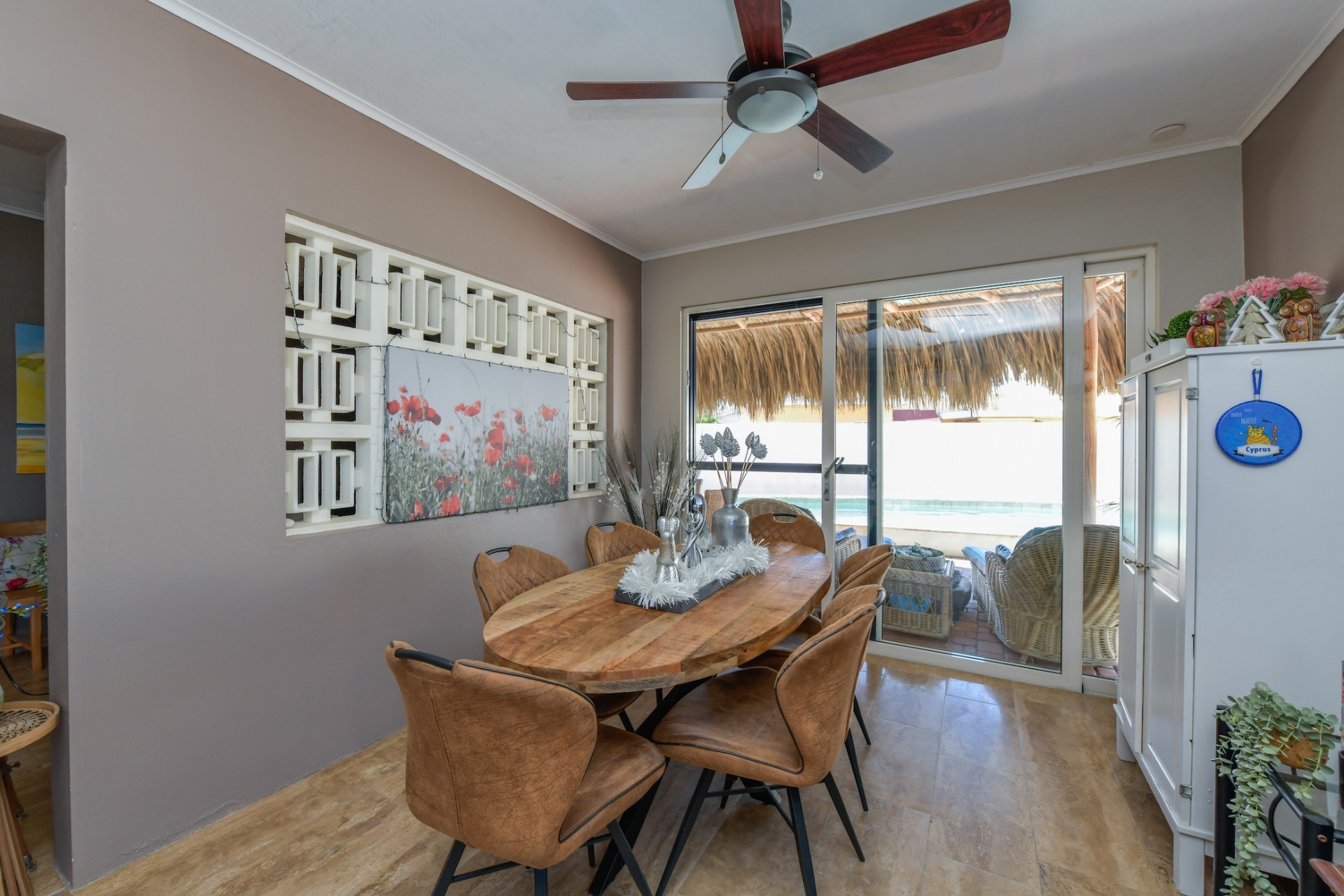 Charming villa with pool and guest apartment, on a spacious lot Welcome to this cozy two-story villa located in the quiet neighborhood of Montana. Set on a generous 882m² lot, the home is just a 5-minute drive from white sand beaches and close to supermarkets – perfect for easy island living. Inside the villa, the ground floor has a bright living room that flows into a half-open kitchen and dining area, perfect for daily life or entertaining. There is also a handy half bathroom near the kitchen. Upstairs, there are three bedrooms and two bathrooms, offering plenty of space and privacy for family or guests. The backyard includes an additional 24m² apartment with an open layout, kitchenette, and bathroom, ideal for guests, as a rental unit, or a home office. The tropical garden features palm trees, a private swimming pool, and a shaded palapa, perfect for relaxing or entertaining. There is ample parking in the front yard and the parking features solar panels. Montana 39G offers comfort, space, and a great location. Key Features: Total of 4 bedrooms & 3.5 bathrooms Property land 882m² Build-up size 198m² Extra 24m² apartment Palapa lounge for outdoor relaxation Contact us today to schedule a viewing and see this wonderful property for yourself! Bibi Louwers +297 5697343 [email protected]