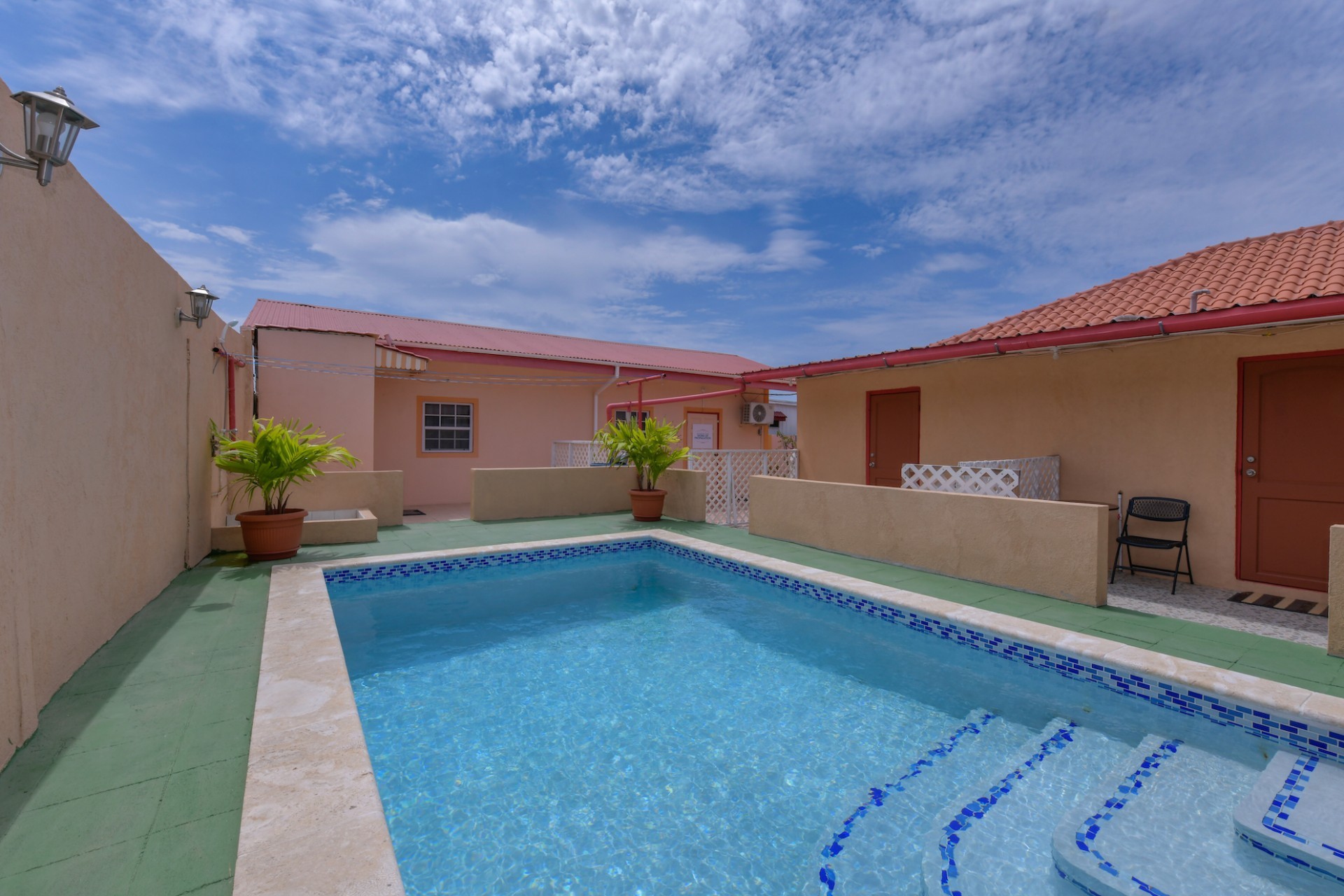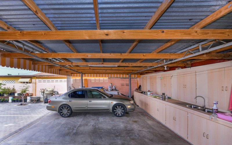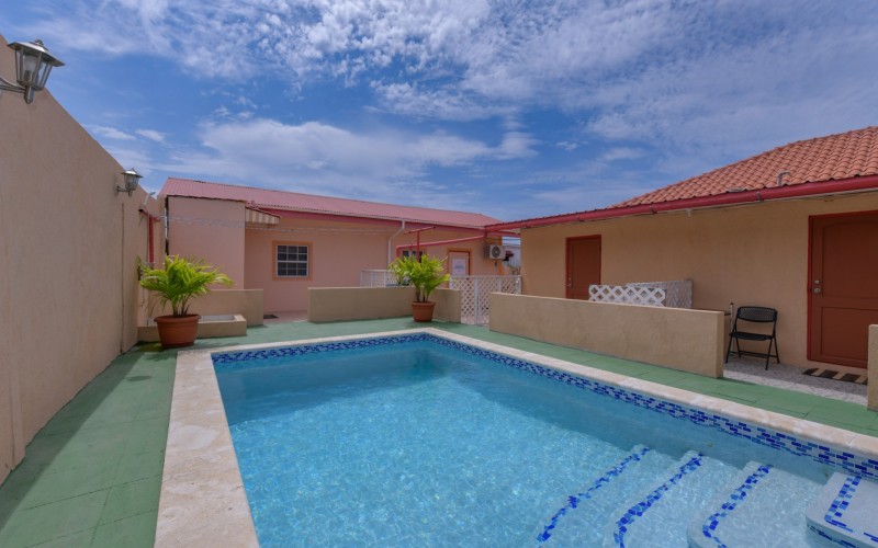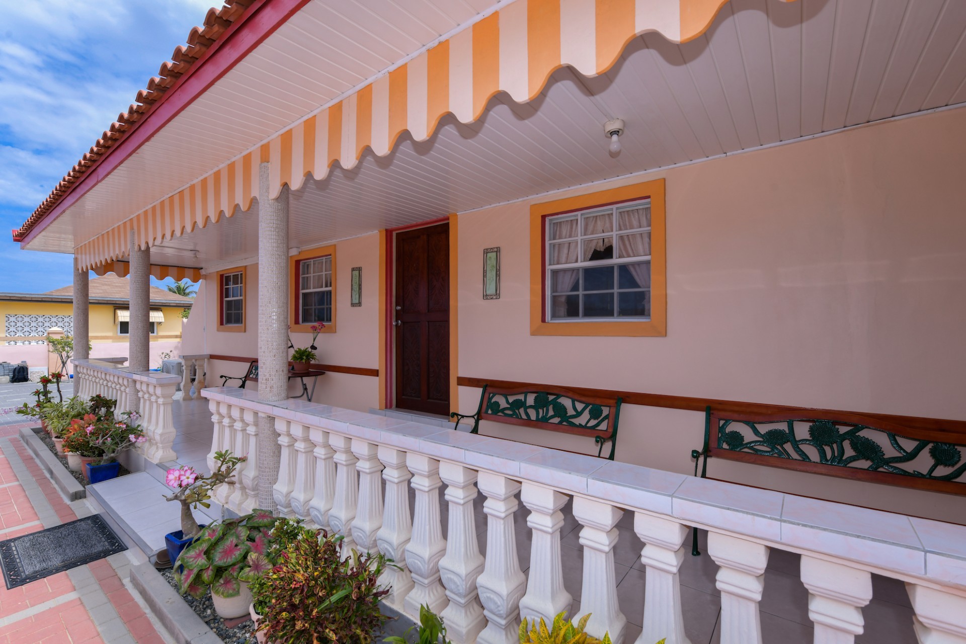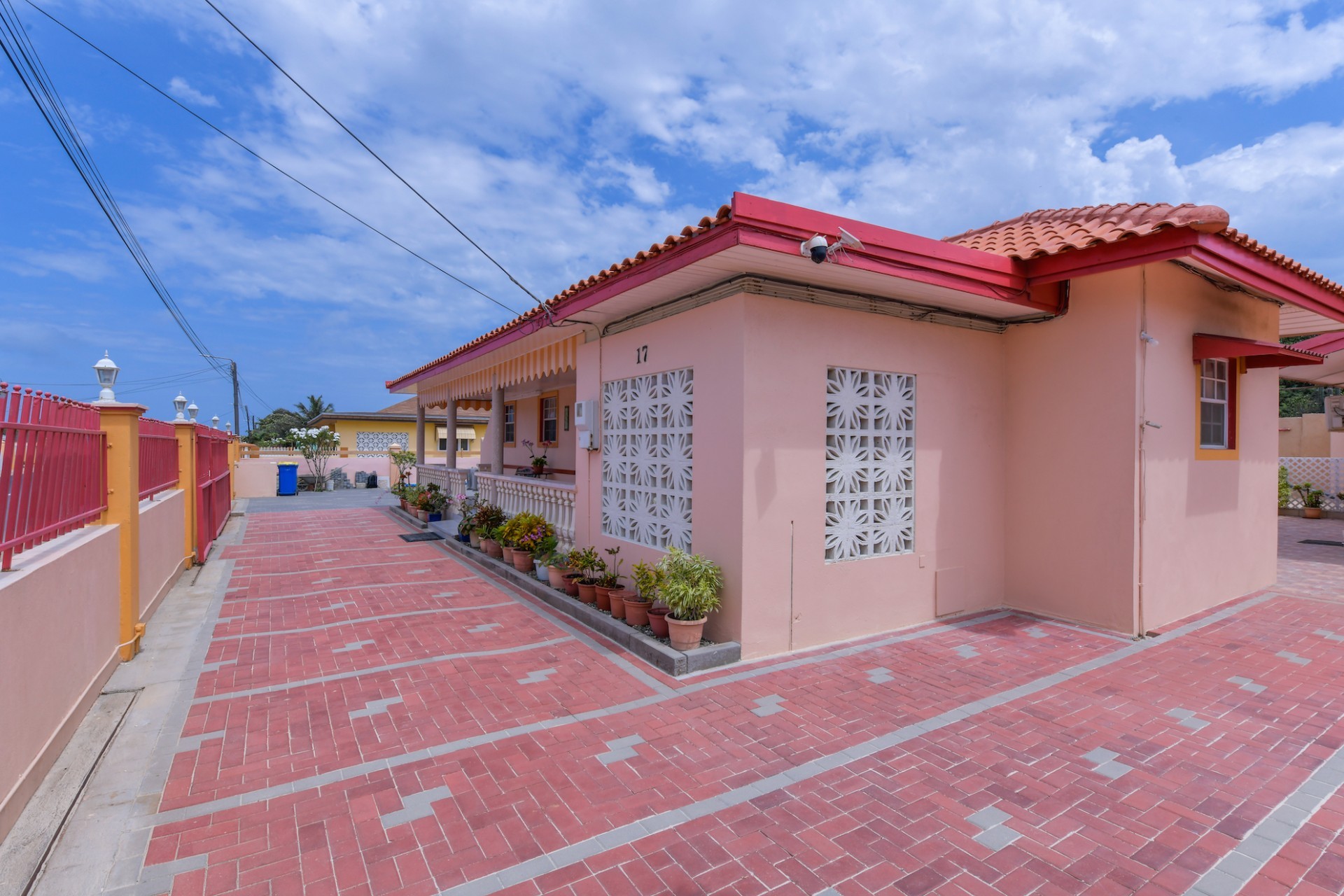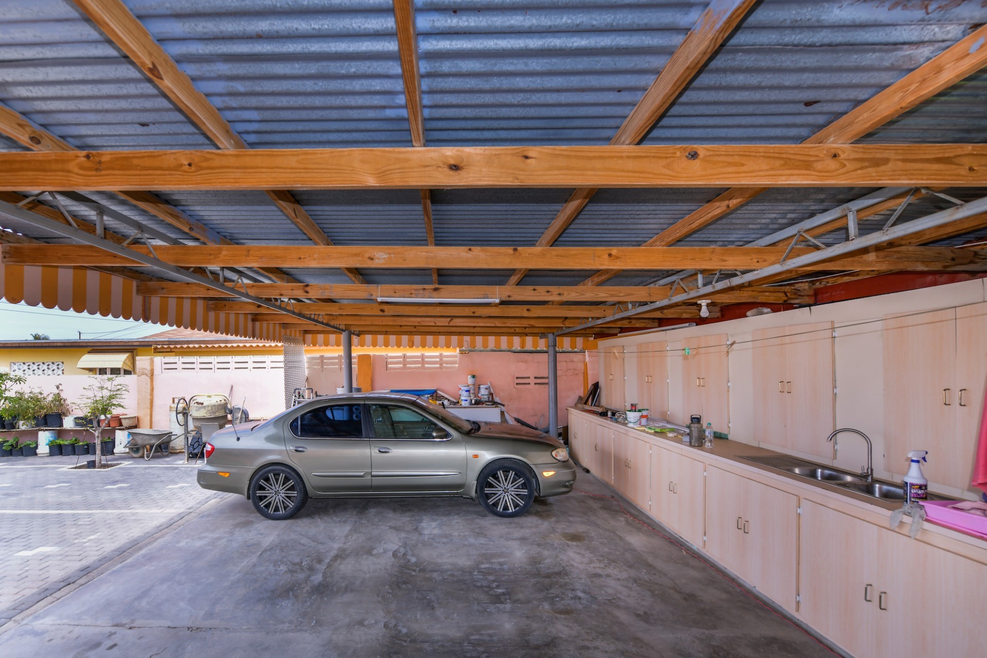 Charming Restored Bungalow with Unique Features in Lago Heights, San Nicolas This beautifully restored and meticulously maintained classic bungalow is located in the peaceful neighborhood of Lago Heights in San Nicolas, just an 8-minute drive from the stunning Baby Beach, one of Aruba’s most pristine and beloved coastal destinations. Situated on a generous 761 m² long lease lot (recently renewed), this spacious home offers three bedrooms and three bathrooms, providing ample space for comfortable family living or a flexible investment opportunity. In addition to the main residence, the property includes two adjacent studio apartments, perfect for accommodating guests or generating rental income. A separate structure currently used as a chapel adds a unique touch—ideal for creative pursuits, meditation, or a home office. Outdoor features include a refreshing swimming pool, two-vehicle carport, and ample covered storage with organized closets. The home is also equipped with solar panels for energy efficiency, a secure front gate, perimeter wall, and a paved entrance and low-maintenance hardscape landscaping. This is a rare opportunity to own a truly distinctive property that blends charm, functionality, and an unbeatable location near Aruba’s top beach.