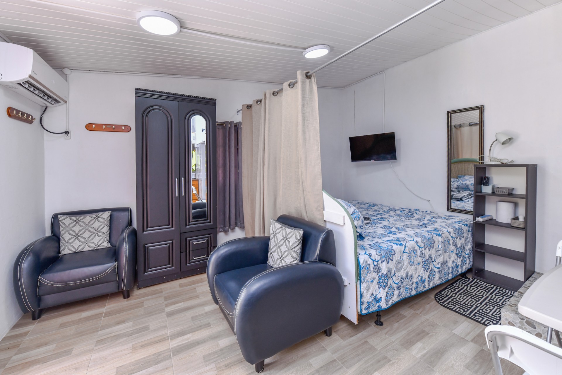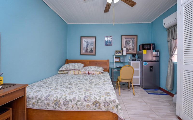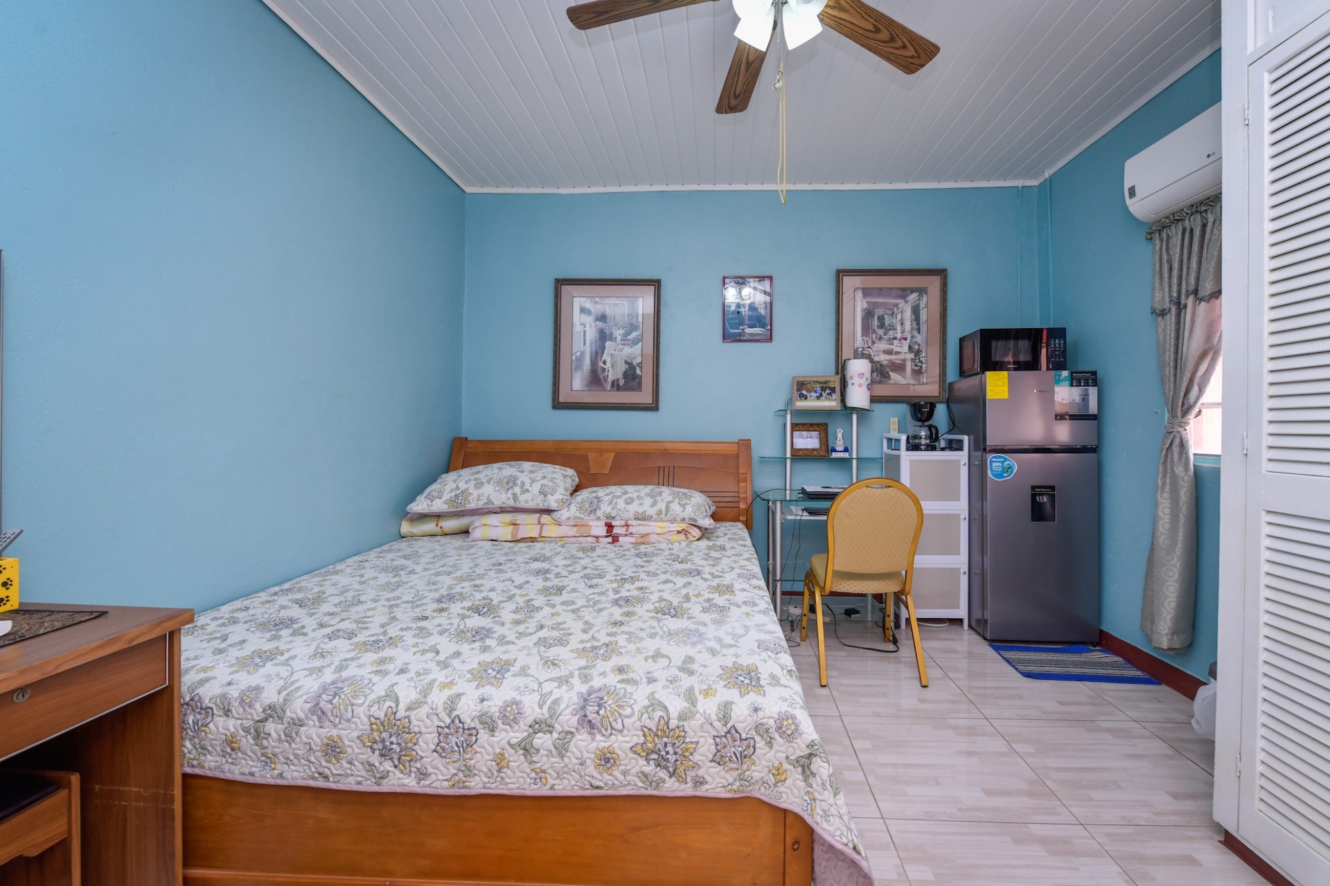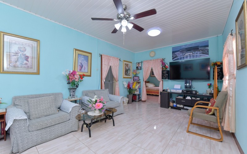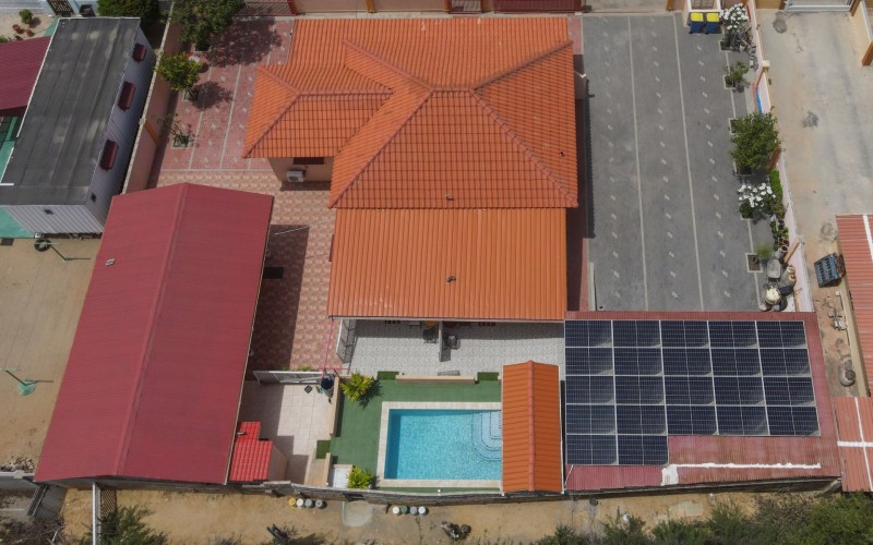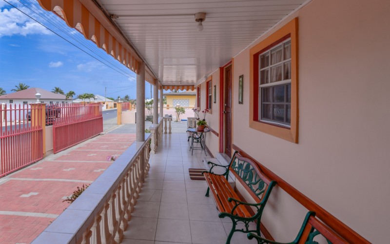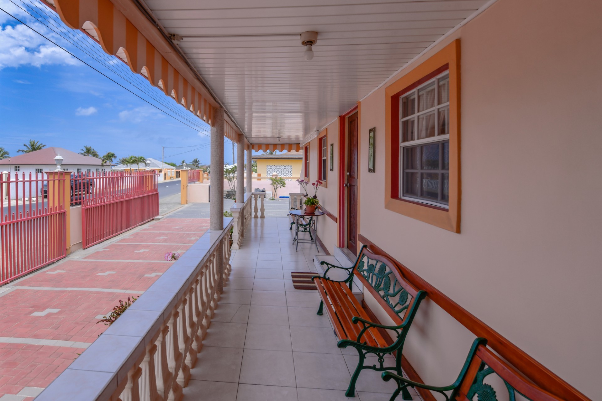 Charming Restored Bungalow with Unique Features in Lago Heights, San Nicolas This beautifully restored and meticulously maintained classic bungalow is located in the peaceful neighborhood of Lago Heights in San Nicolas, just an 8-minute drive from the stunning Baby Beach, one of Aruba’s most pristine and beloved coastal destinations. Situated on a generous 761 m² long lease lot (recently renewed), this spacious home offers three bedrooms and three bathrooms, providing ample space for comfortable family living or a flexible investment opportunity. In addition to the main residence, the property includes two adjacent studio apartments, perfect for accommodating guests or generating rental income. A separate structure currently used as a chapel adds a unique touch—ideal for creative pursuits, meditation, or a home office. Outdoor features include a refreshing swimming pool, two-vehicle carport, and ample covered storage with organized closets. The home is also equipped with solar panels for energy efficiency, a secure front gate, perimeter wall, and a paved entrance and low-maintenance hardscape landscaping. This is a rare opportunity to own a truly distinctive property that blends charm, functionality, and an unbeatable location near Aruba’s top beach.