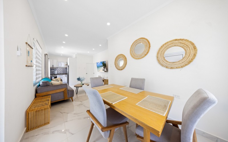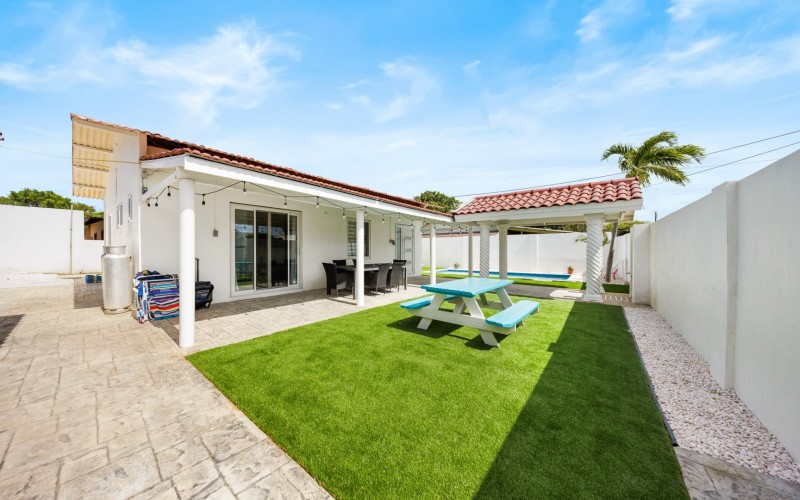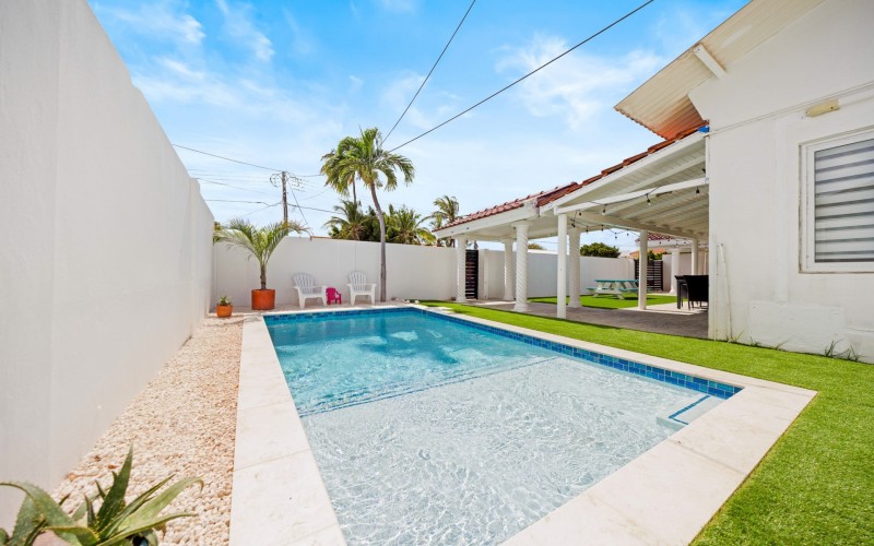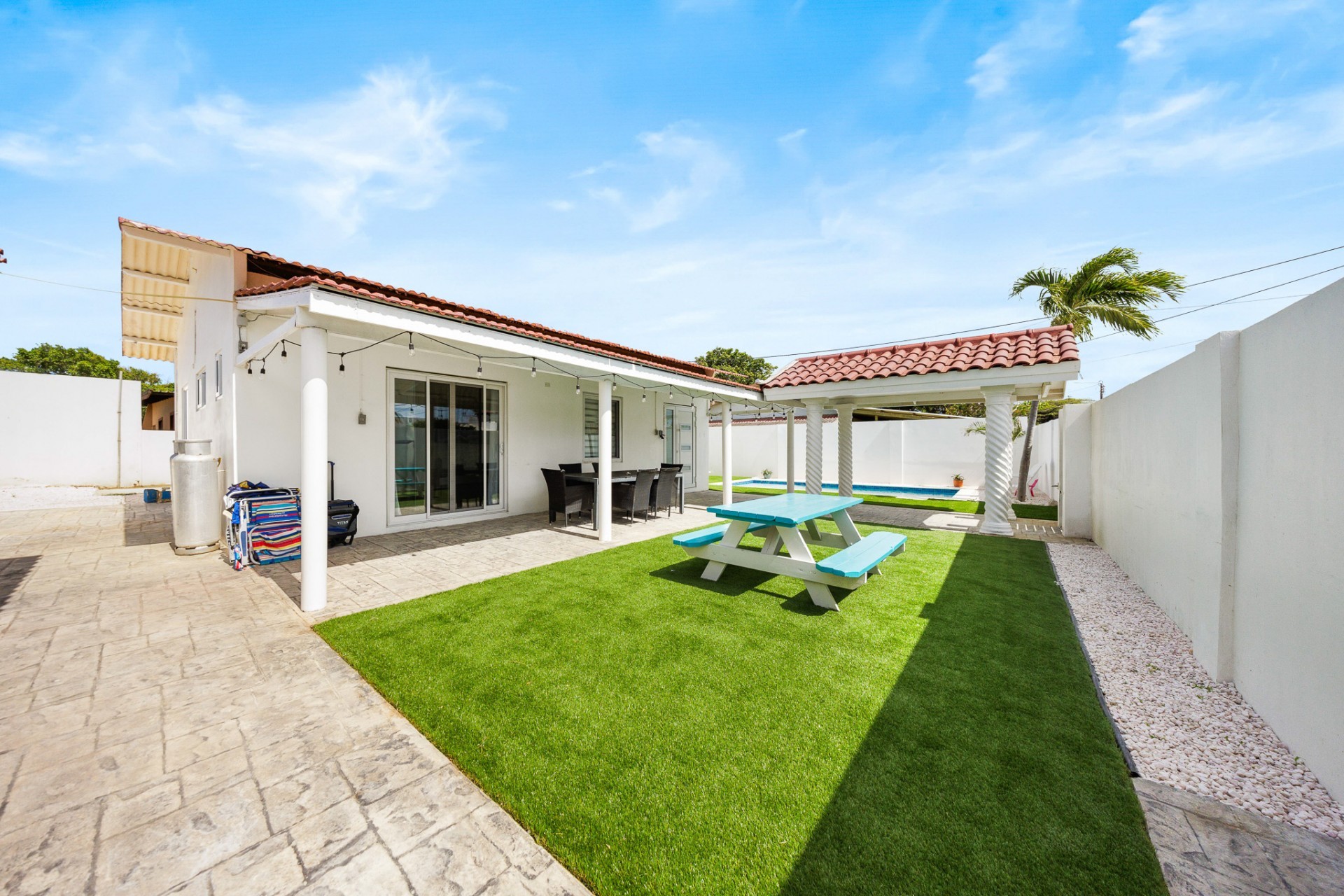 Dream Coastal Living at Mangel Halto, Aruba! Welcome to Mangel Halto, one of Aruba’s most breathtaking and sought-after locations! This newly renovated, turn-key property is just a street away from the crystal-clear turquoise waters of Mangel Halto, making it the perfect place to call home or a fantastic rental investment. This charming home features 3 spacious bedrooms and 2 bathrooms, including a grand master bedroom with a walk-in closet and private ensuite bathroom. The remaining two bedrooms share a spacious, modern bathroom, ensuring comfort for family and guests alike. The heart of the home opens up to the front yard, where you'll find a relaxing pool area with a covered seating space, perfect for enjoying Aruba’s stunning sunsets or hosting barbecues with friends and family. The backyard offers ample space for expansion, a cozy seating area, or even a tropical garden. Additionally, the property includes a storage shed with a laundry area for extra convenience. Located just steps away from Mangel Halto Beach, this home is in an ideal location for those seeking tranquility, natural beauty, and a true island lifestyle. Whether you’re looking for your new dream home or a possibility profitable rental property, this is an opportunity you don’t want to miss! Property Highlights - 3 Bedrooms & 2 Bathrooms – Spacious and well-designed, with a private ensuite in the master bedroom - Turn-Key & Move-In Ready – Newly renovated and fully equipped for immediate use - Private Pool & Covered Seating Area – Perfect for relaxation and entertaining - Spacious Backyard – Potential for expansion or a cozy outdoor retreat - Storage & Laundry Area – Added convenience for homeowners and renters - Steps from Mangel Halto Beach – Enjoy the pristine turquoise waters just moments from your door - Perfect as a Home or Rental Property – A prime location for personal use or investment Don’t miss out! Contact today for a viewing and make this stunning property yours! Are you interested, or want to know more about this property? Contact Ruben Metz for a viewing! (+297) 568 6490 [email protected] Follow me on socials! Facebook: https://www.facebook.com/RubenMetz.KellerWilliamsAruba Instagram: https://www.instagram.com/rubenmetz_kellerwilliamsaruba/