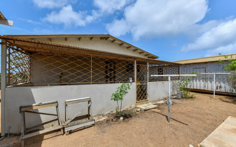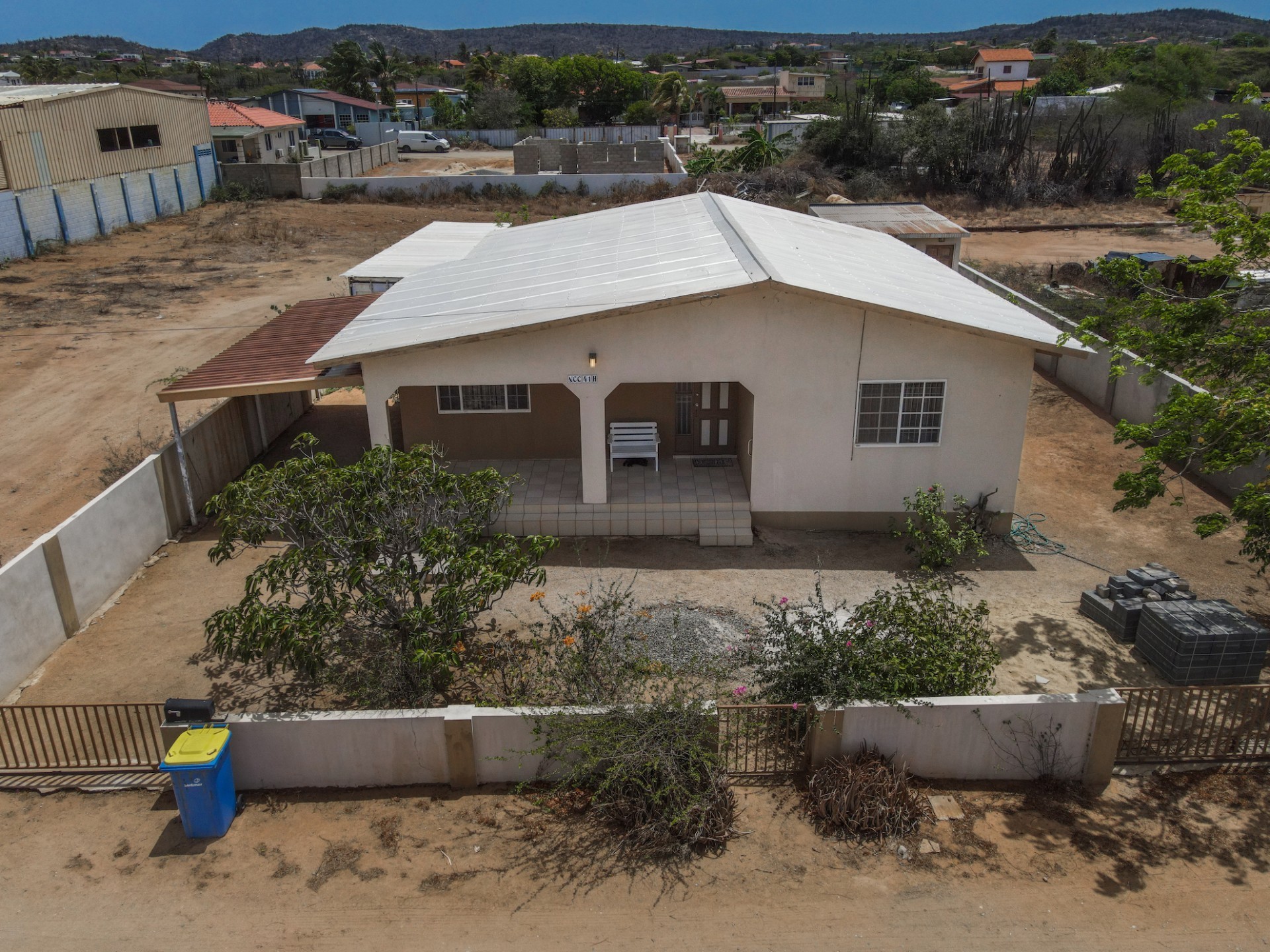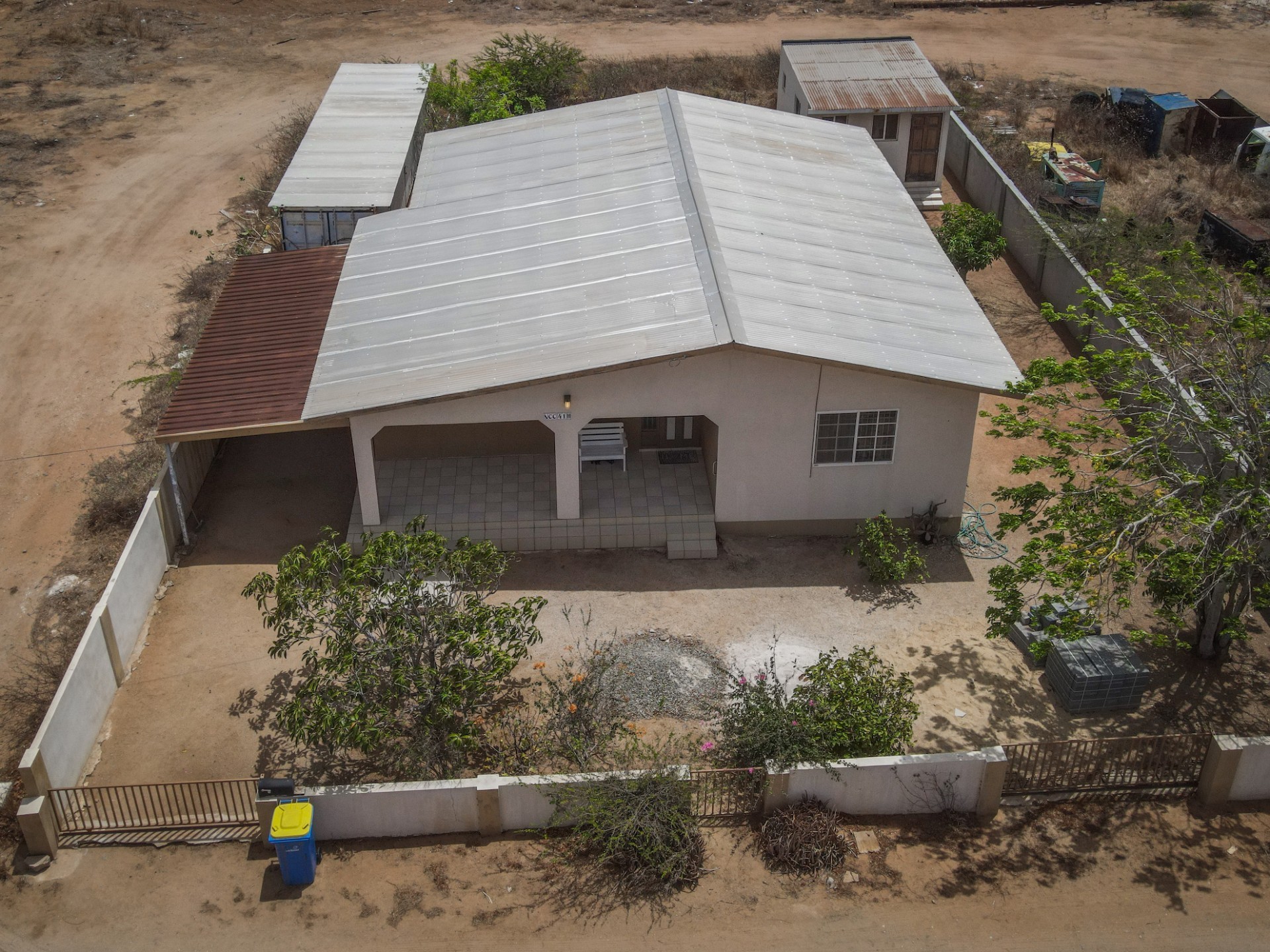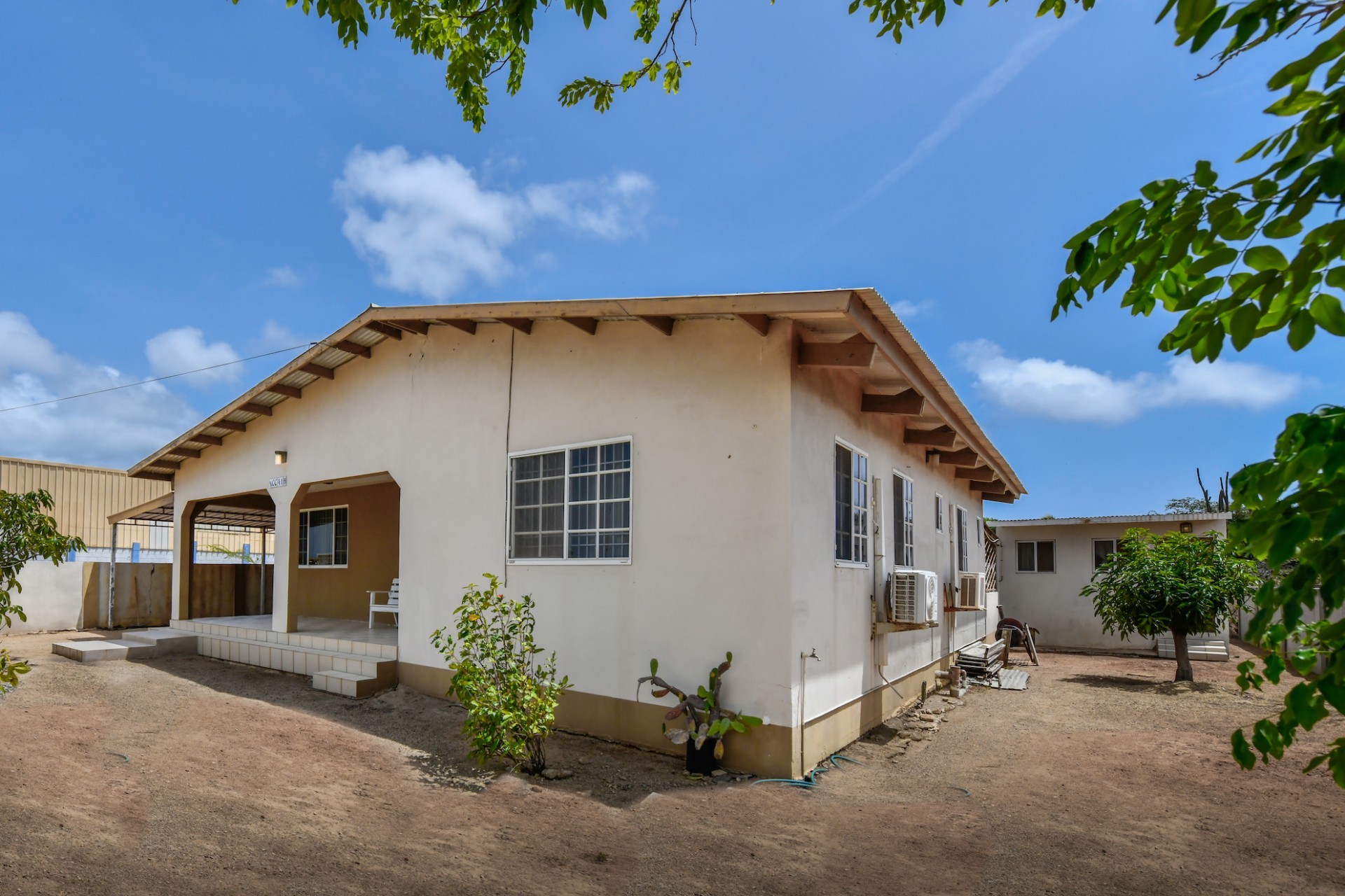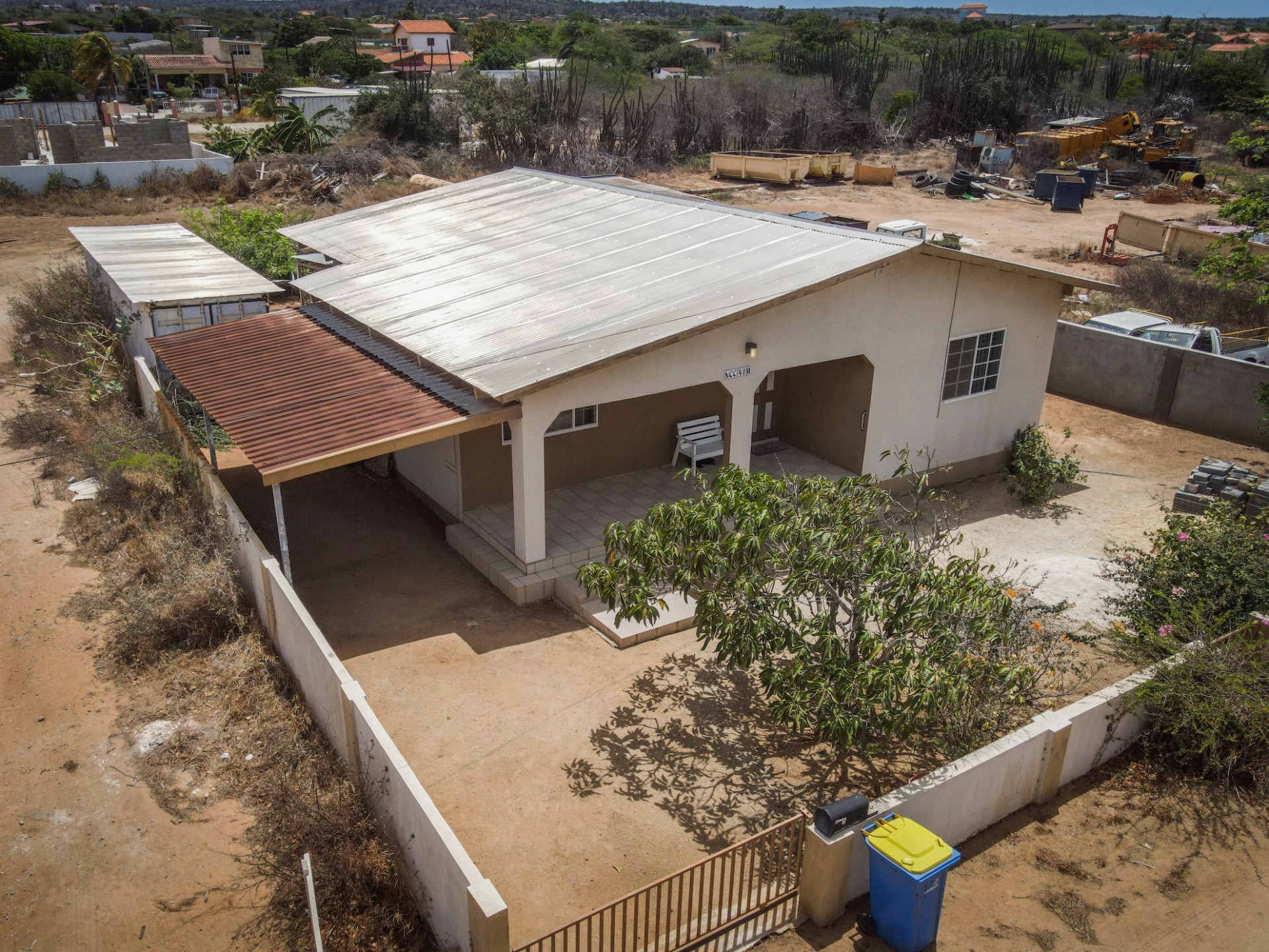 This property, located in the area close to Savaneta in Noord Cura Cabai, is perfect for those looking for a comfortable home with extra space or rental potential. It is located on a large plot of 600 m² property land and has a built-up size of 219 m². The property includes a main house of 115m², a porch and patio of 49m², a garage of 34m² and a separate apartment of 21m² , offering plenty of options for living and hosting. The main house has a cozy patio where you can relax or enjoy the outdoors. Inside, you’ll find a bright spacious living room and a kitchen with space for dining. There are two bedrooms and two bathrooms, as well as two built-in closets for extra storage. An enclosed porch adds even more living space. The apartment is separate from the main house, making it ideal for guests, family, or as a rental unit. It has a combined living room and kitchen, one bedroom, and a bathroom. This property is conveniently located next to an industrial building, providing unique opportunities for those seeking proximity to commercial or industrial areas. With a spacious yard and a flexible layout, this property offers many possibilities. It’s a great opportunity for anyone looking for a home that combines comfort, practicality, and potential.
