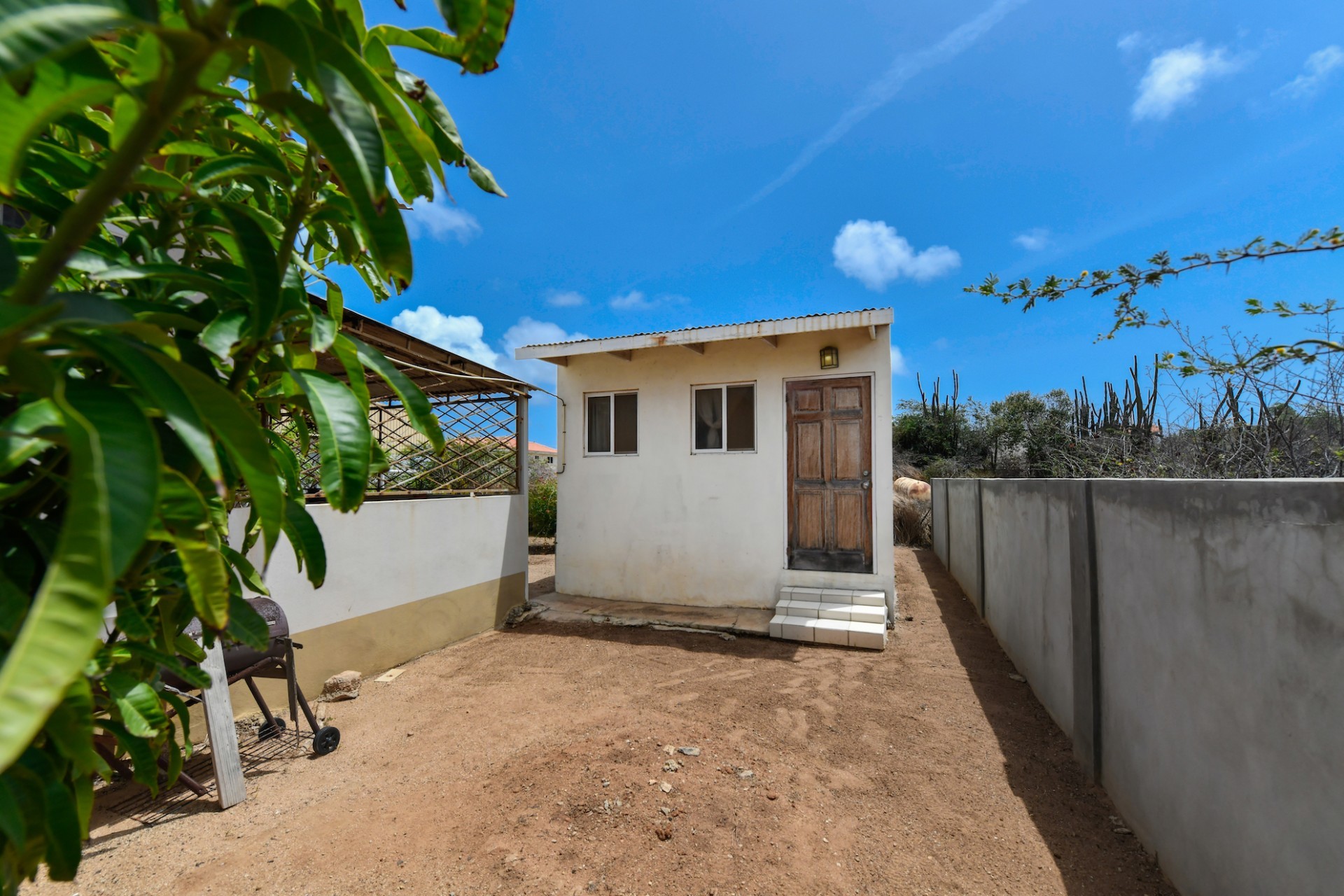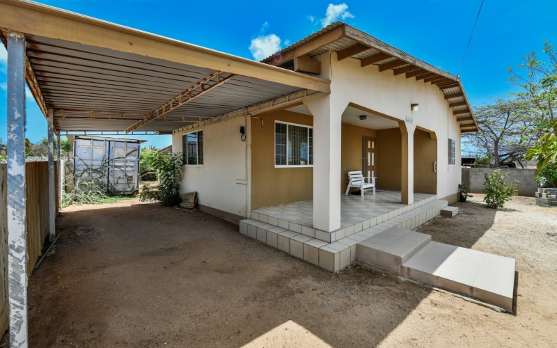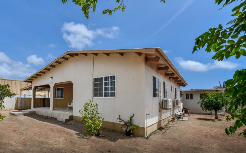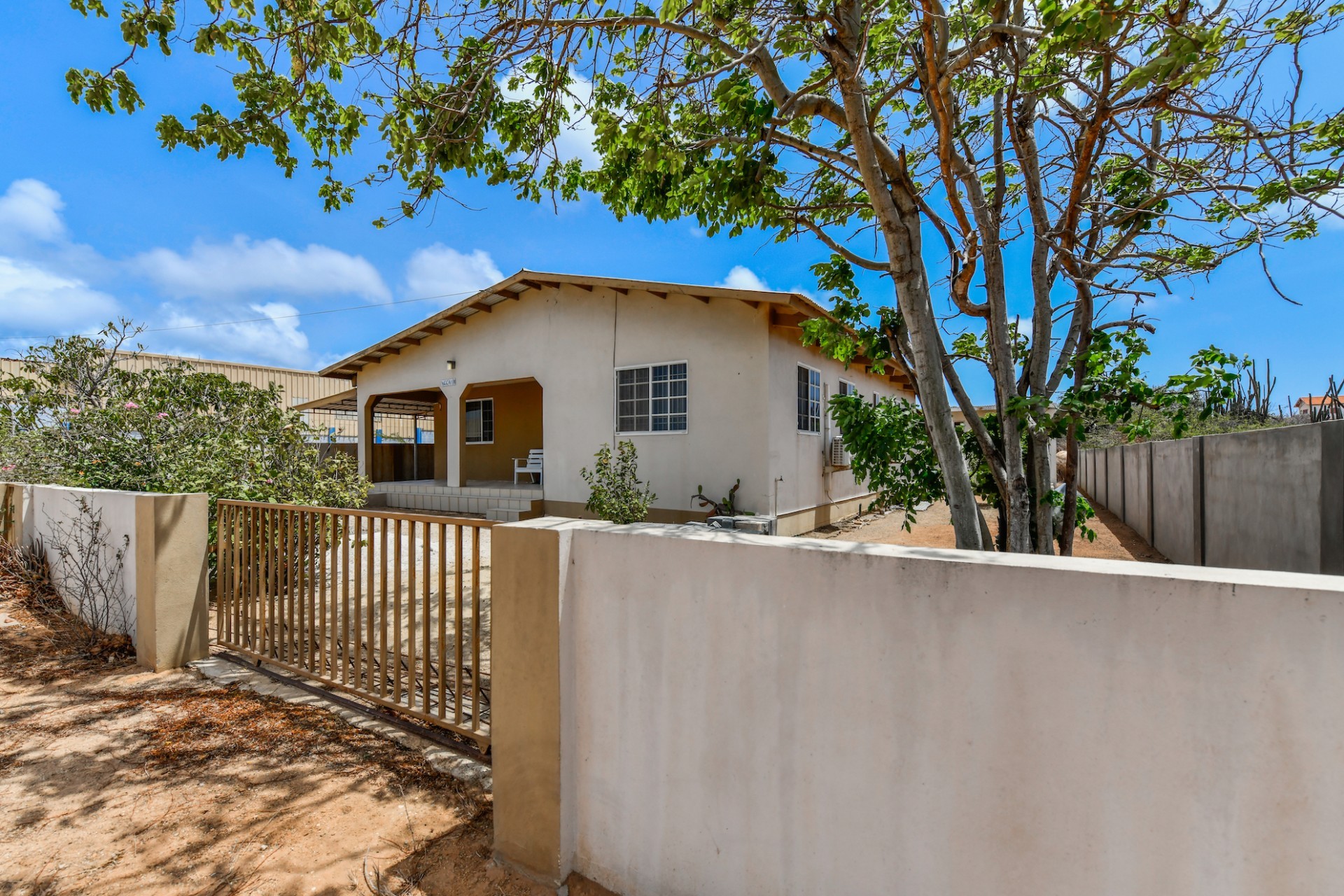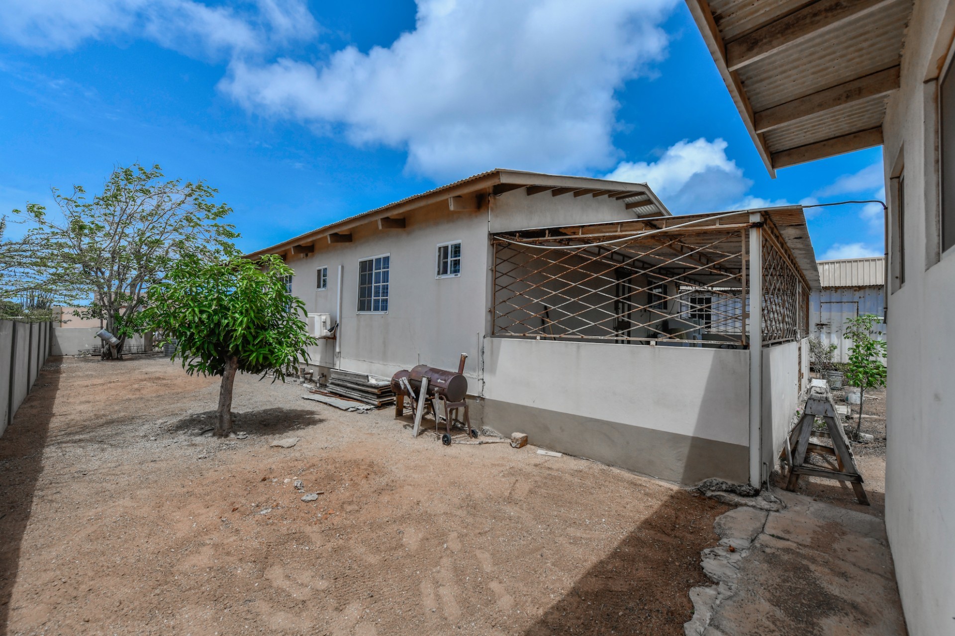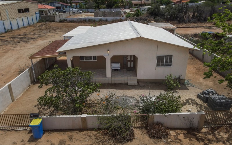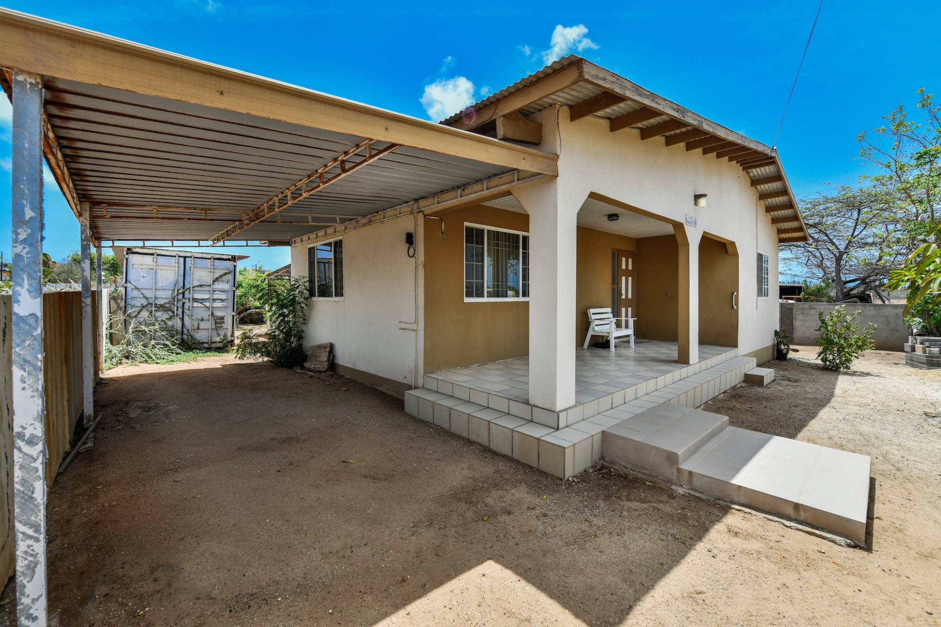 This property, located in the area close to Savaneta in Noord Cura Cabai, is perfect for those looking for a comfortable home with extra space or rental potential. It is located on a large plot of 600 m² property land and has a built-up size of 219 m². The property includes a main house of 115m², a porch and patio of 49m², a garage of 34m² and a separate apartment of 21m² , offering plenty of options for living and hosting. The main house has a cozy patio where you can relax or enjoy the outdoors. Inside, you’ll find a bright spacious living room and a kitchen with space for dining. There are two bedrooms and two bathrooms, as well as two built-in closets for extra storage. An enclosed porch adds even more living space. The apartment is separate from the main house, making it ideal for guests, family, or as a rental unit. It has a combined living room and kitchen, one bedroom, and a bathroom. This property is conveniently located next to an industrial building, providing unique opportunities for those seeking proximity to commercial or industrial areas. With a spacious yard and a flexible layout, this property offers many possibilities. It’s a great opportunity for anyone looking for a home that combines comfort, practicality, and potential.