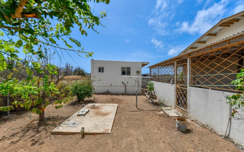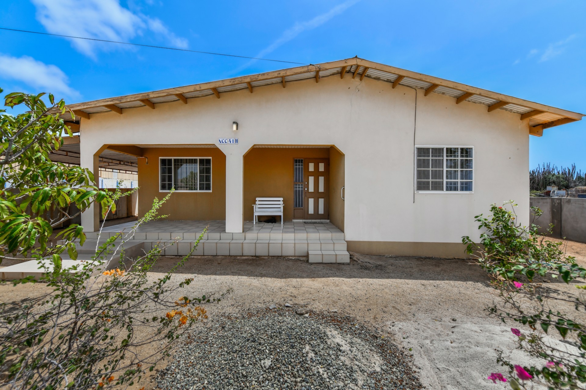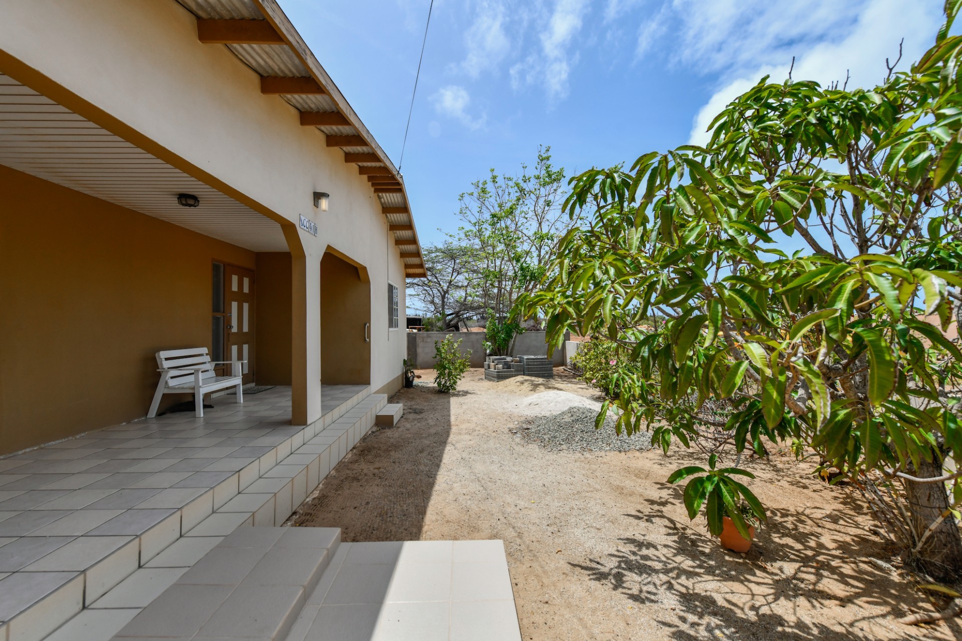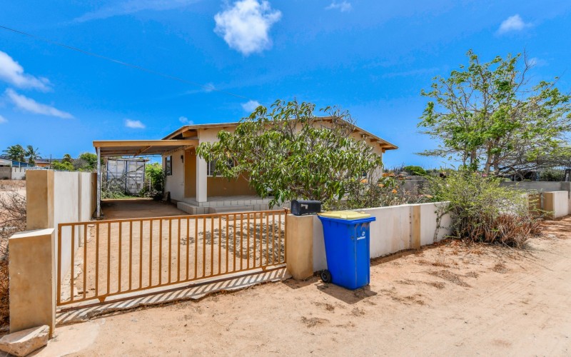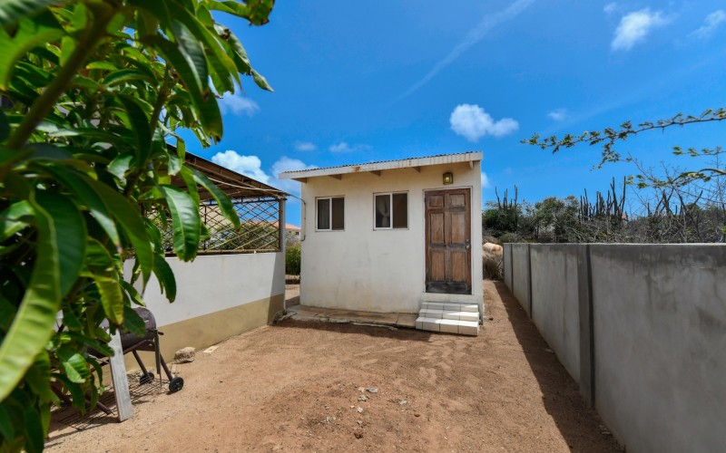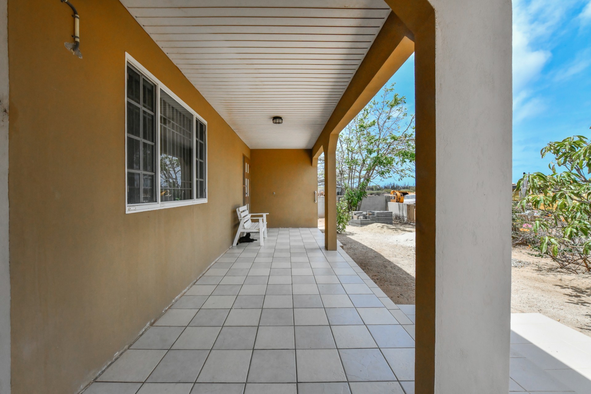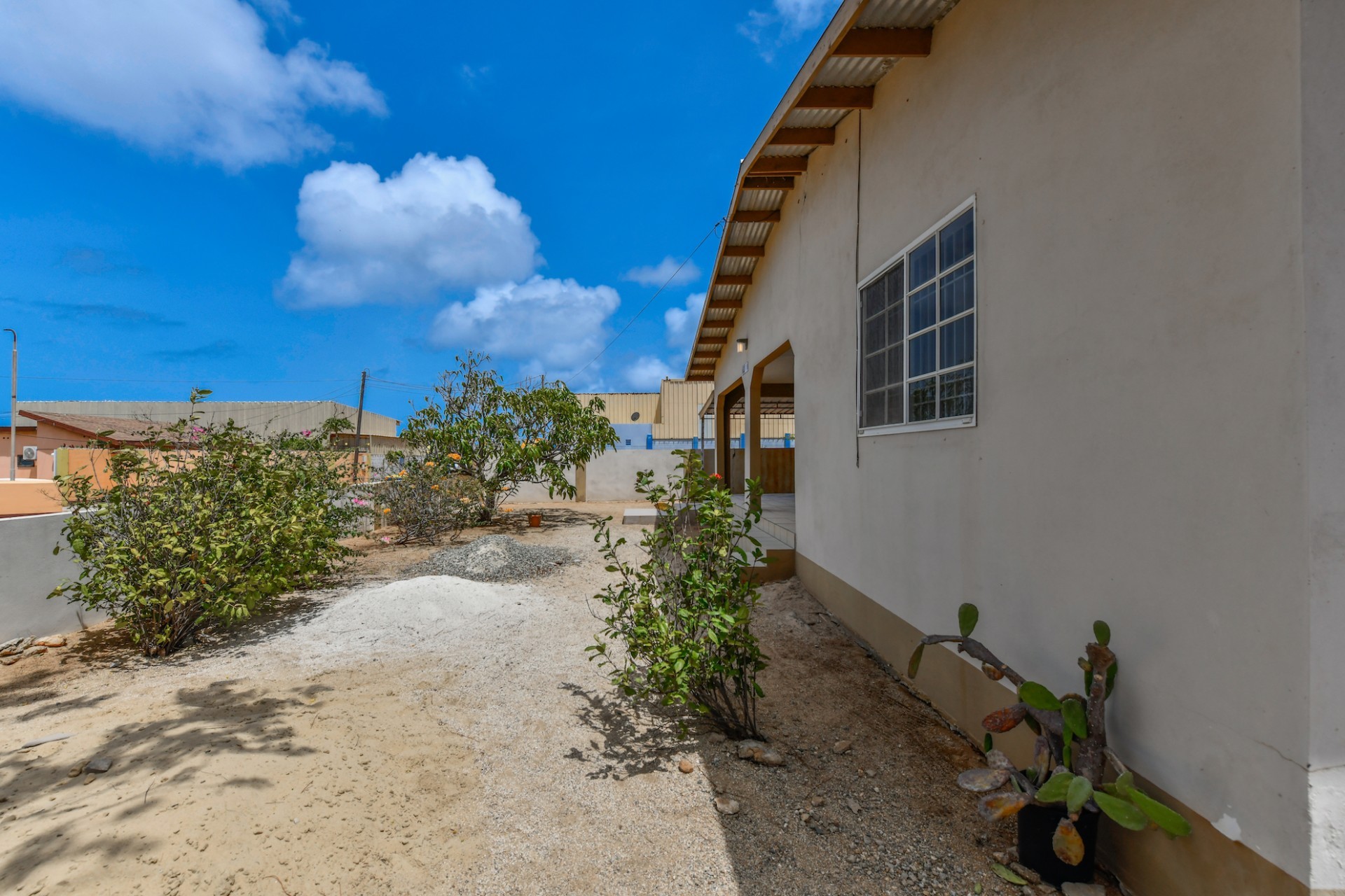 This property, located in the area close to Savaneta in Noord Cura Cabai, is perfect for those looking for a comfortable home with extra space or rental potential. It is located on a large plot of 600 m² property land and has a built-up size of 219 m². The property includes a main house of 115m², a porch and patio of 49m², a garage of 34m² and a separate apartment of 21m² , offering plenty of options for living and hosting. The main house has a cozy patio where you can relax or enjoy the outdoors. Inside, you’ll find a bright spacious living room and a kitchen with space for dining. There are two bedrooms and two bathrooms, as well as two built-in closets for extra storage. An enclosed porch adds even more living space. The apartment is separate from the main house, making it ideal for guests, family, or as a rental unit. It has a combined living room and kitchen, one bedroom, and a bathroom. This property is conveniently located next to an industrial building, providing unique opportunities for those seeking proximity to commercial or industrial areas. With a spacious yard and a flexible layout, this property offers many possibilities. It’s a great opportunity for anyone looking for a home that combines comfort, practicality, and potential.