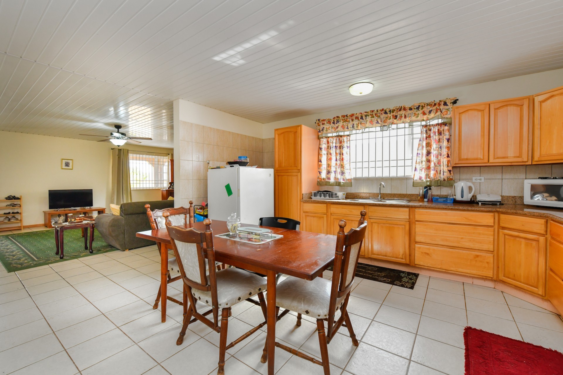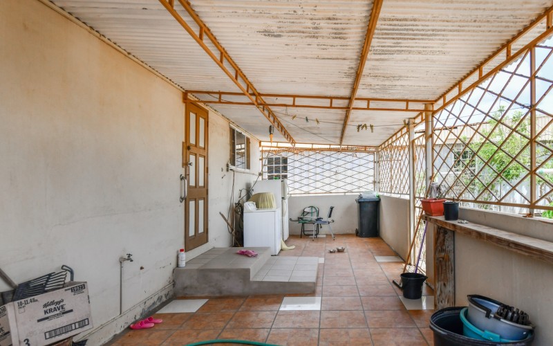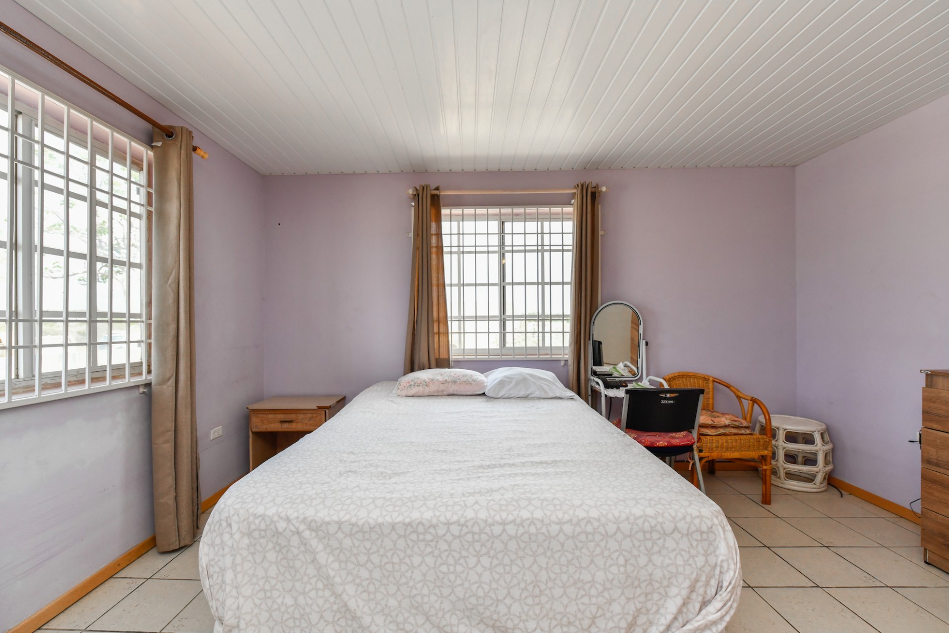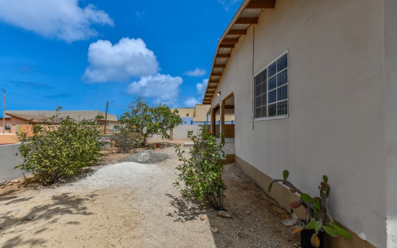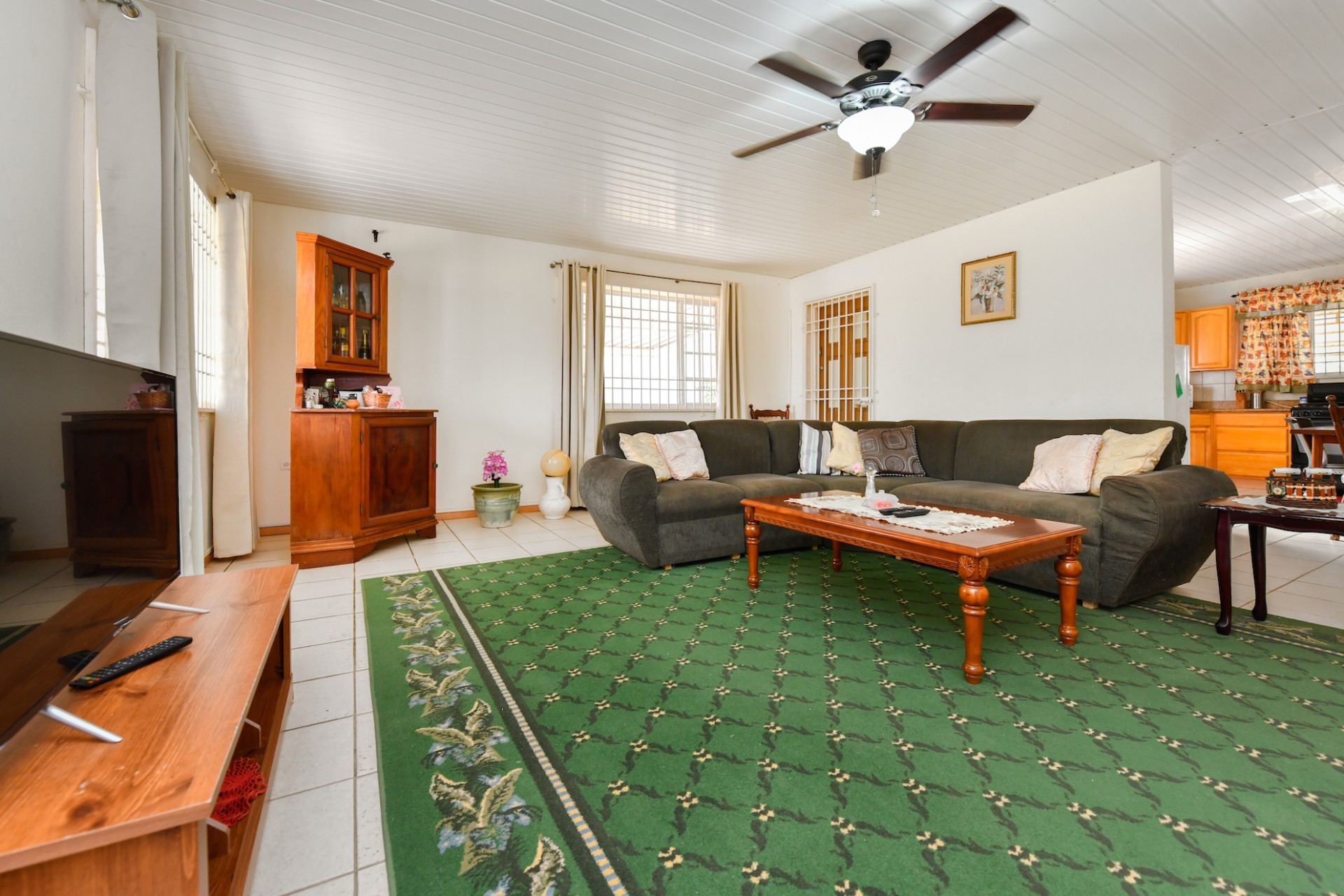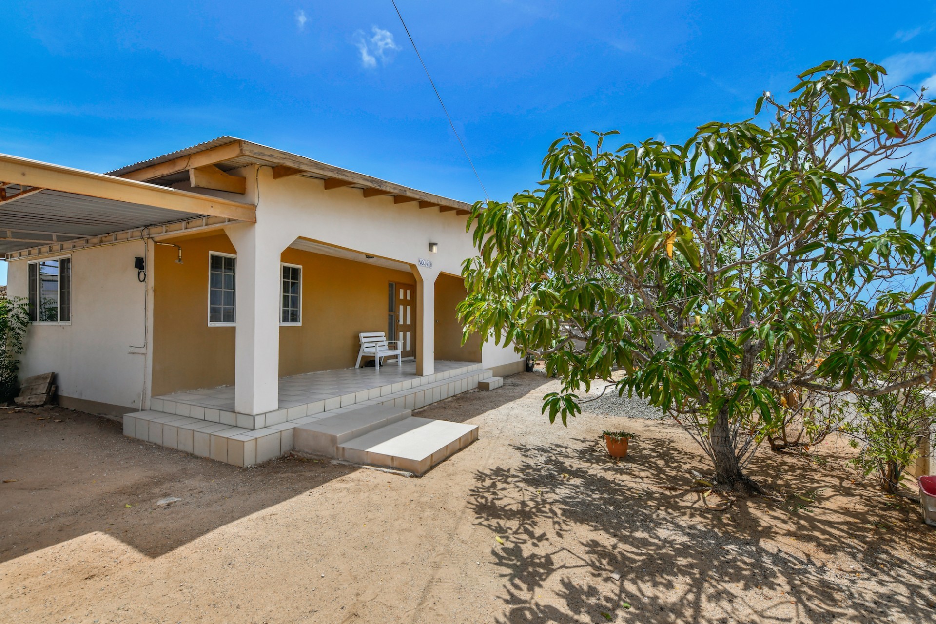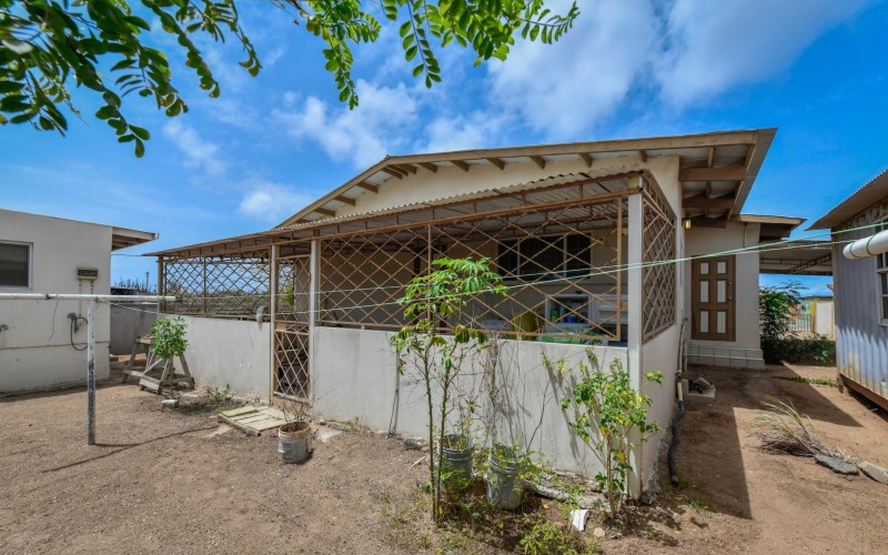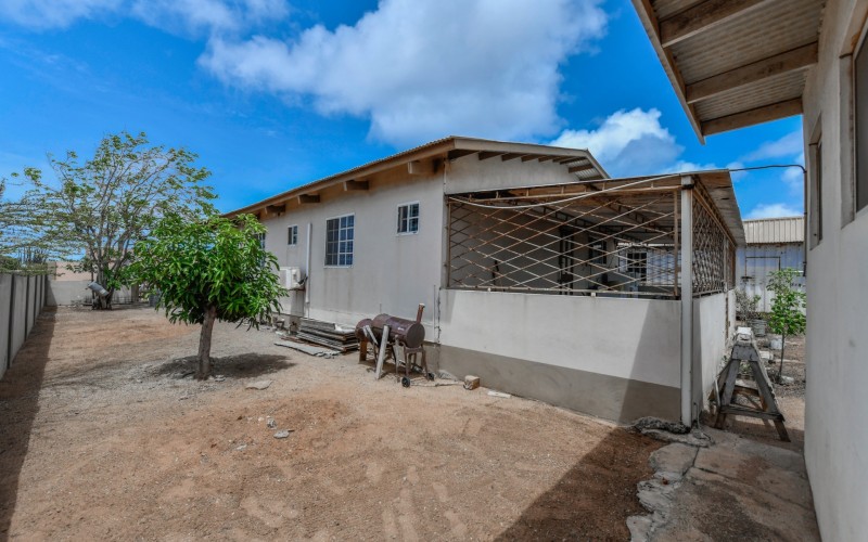 This property, located in the area close to Savaneta in Noord Cura Cabai, is perfect for those looking for a comfortable home with extra space or rental potential. It is located on a large plot of 600 m² property land and has a built-up size of 219 m². The property includes a main house of 115m², a porch and patio of 49m², a garage of 34m² and a separate apartment of 21m² , offering plenty of options for living and hosting. The main house has a cozy patio where you can relax or enjoy the outdoors. Inside, you’ll find a bright spacious living room and a kitchen with space for dining. There are two bedrooms and two bathrooms, as well as two built-in closets for extra storage. An enclosed porch adds even more living space. The apartment is separate from the main house, making it ideal for guests, family, or as a rental unit. It has a combined living room and kitchen, one bedroom, and a bathroom. This property is conveniently located next to an industrial building, providing unique opportunities for those seeking proximity to commercial or industrial areas. With a spacious yard and a flexible layout, this property offers many possibilities. It’s a great opportunity for anyone looking for a home that combines comfort, practicality, and potential.