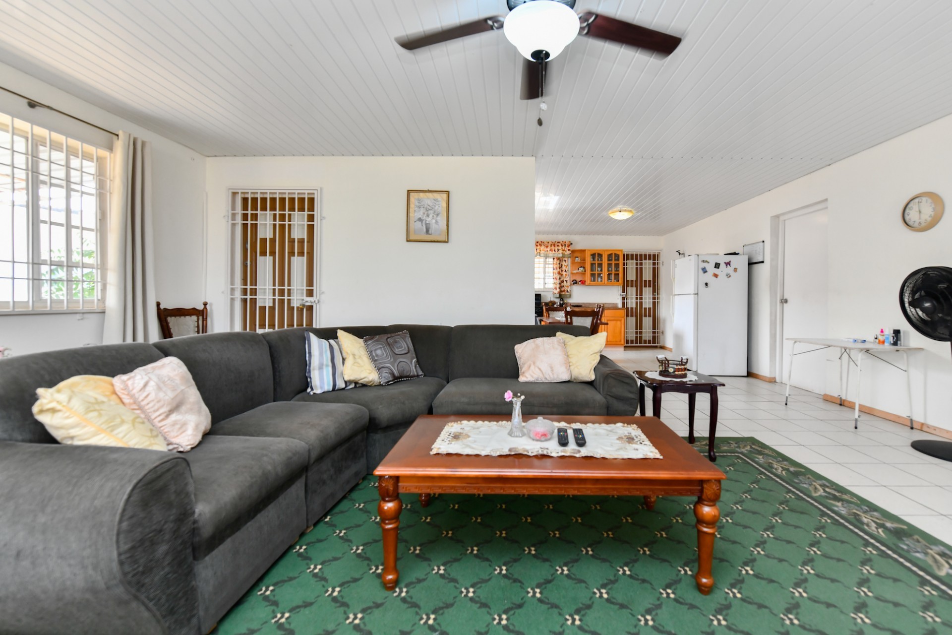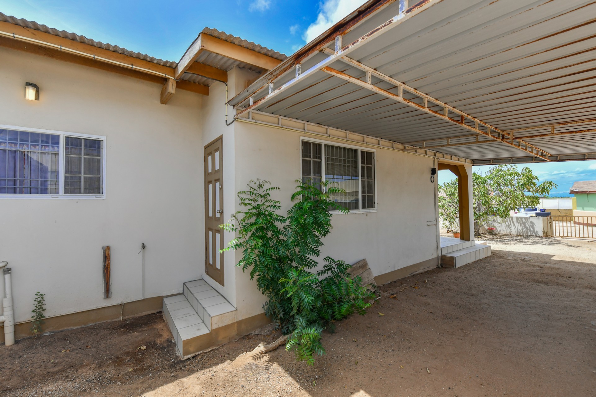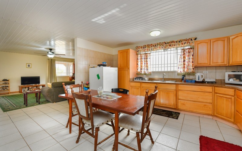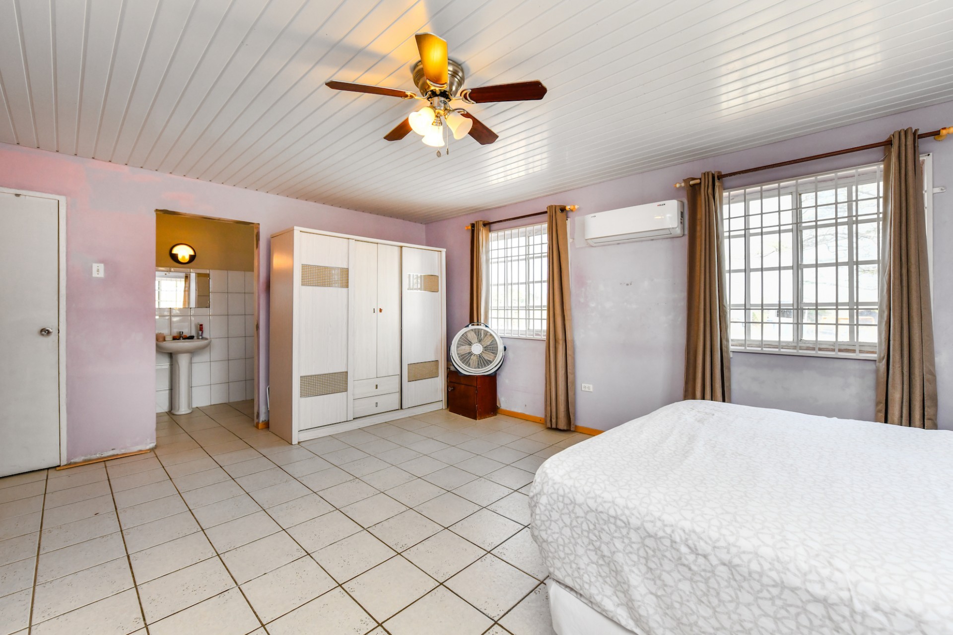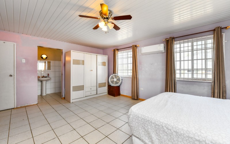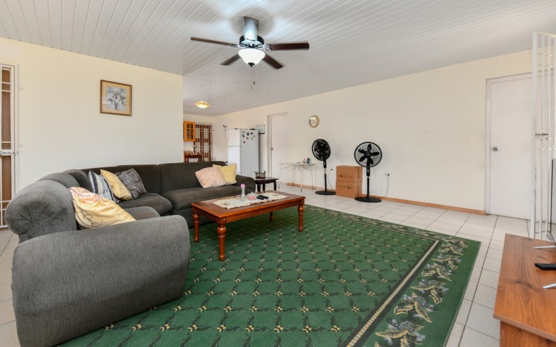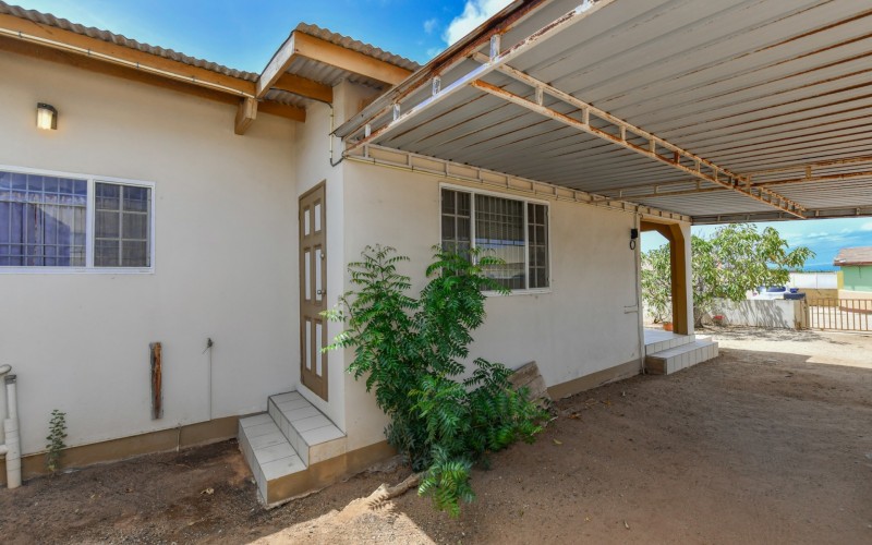 This property, located in the area close to Savaneta in Noord Cura Cabai, is perfect for those looking for a comfortable home with extra space or rental potential. It is located on a large plot of 600 m² property land and has a built-up size of 219 m². The property includes a main house of 115m², a porch and patio of 49m², a garage of 34m² and a separate apartment of 21m² , offering plenty of options for living and hosting. The main house has a cozy patio where you can relax or enjoy the outdoors. Inside, you’ll find a bright spacious living room and a kitchen with space for dining. There are two bedrooms and two bathrooms, as well as two built-in closets for extra storage. An enclosed porch adds even more living space. The apartment is separate from the main house, making it ideal for guests, family, or as a rental unit. It has a combined living room and kitchen, one bedroom, and a bathroom. This property is conveniently located next to an industrial building, providing unique opportunities for those seeking proximity to commercial or industrial areas. With a spacious yard and a flexible layout, this property offers many possibilities. It’s a great opportunity for anyone looking for a home that combines comfort, practicality, and potential.