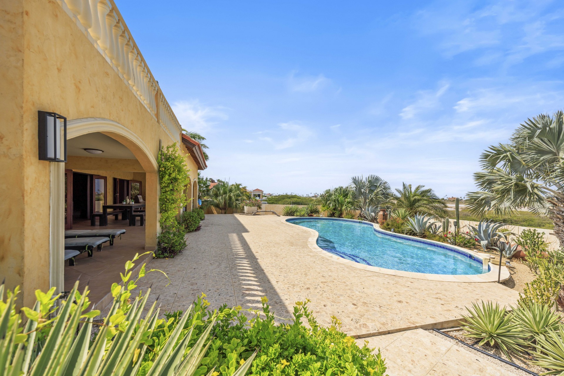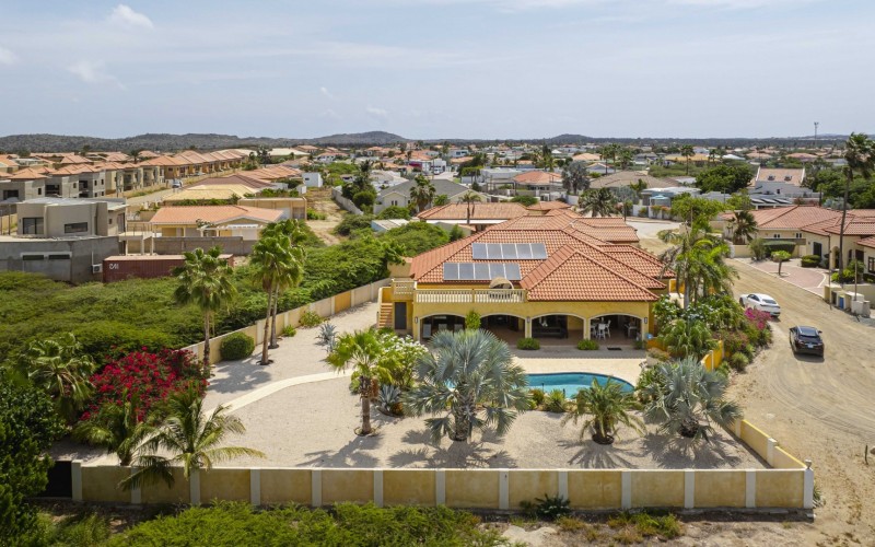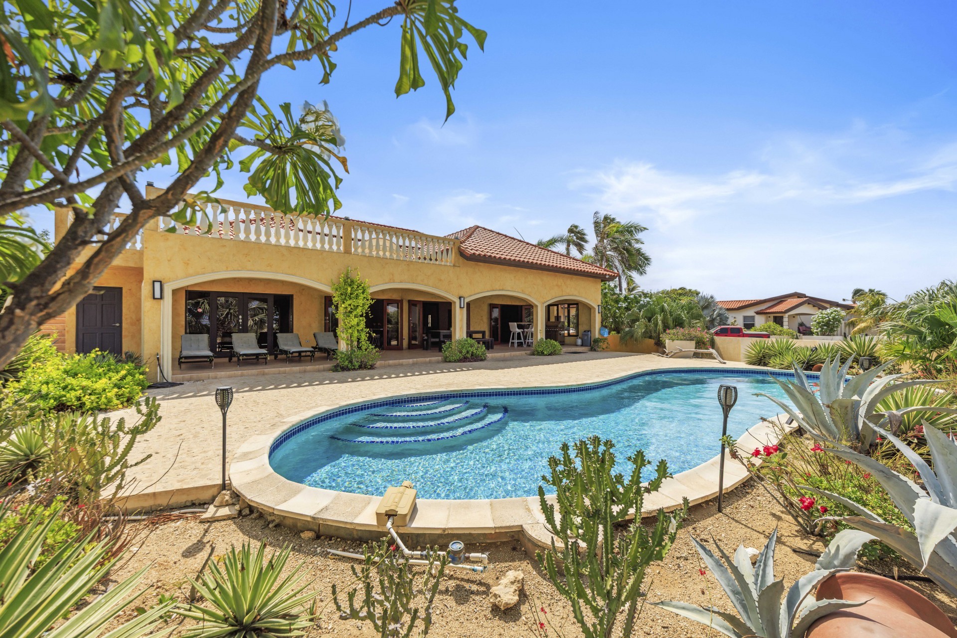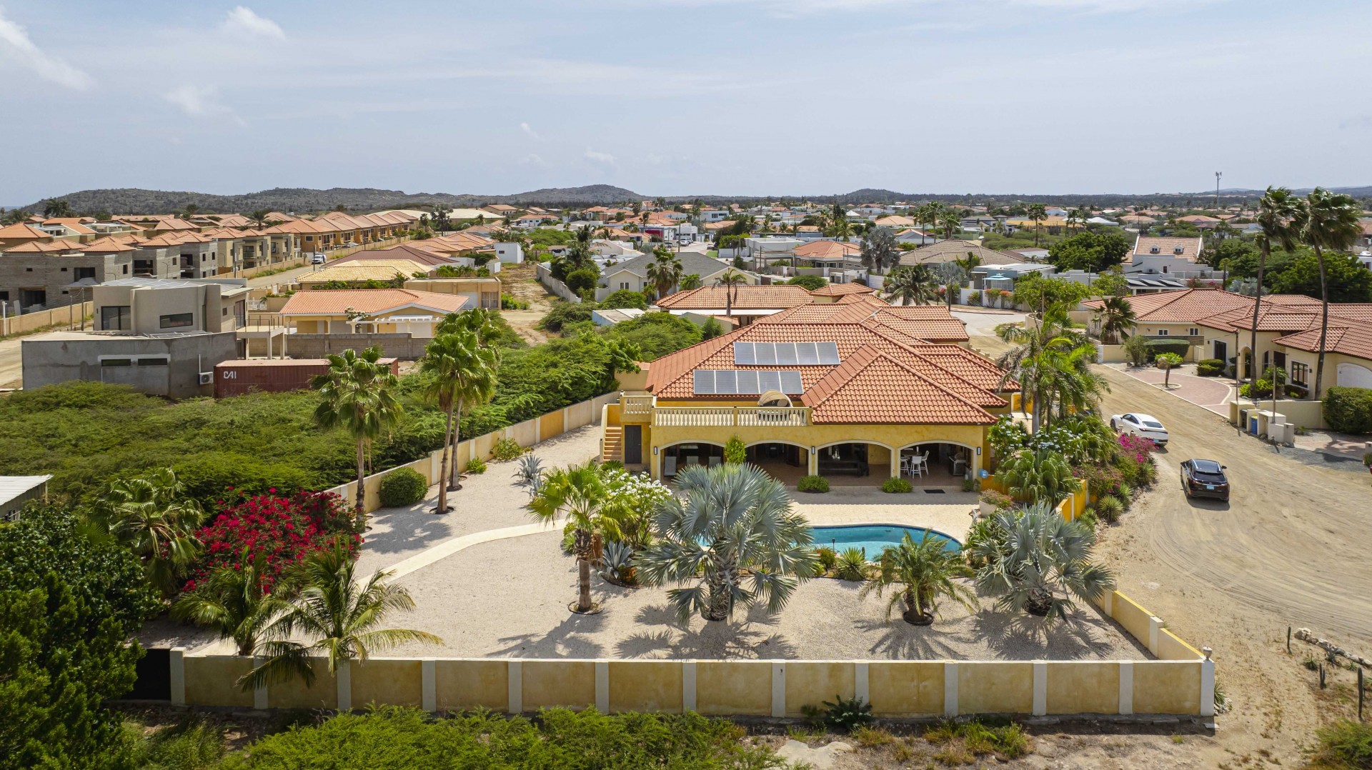 Elegant Spanish-Inspired Villa with Ocean Views Discover refined island living in this Spanish-style villa located in the prestigious Esmeralda neighborhood. Blending Mediterranean character with Caribbean comfort, this residence captures Aruba’s natural beauty and relaxed elegance. Featuring three spacious bedrooms and three and a half bathrooms, the home welcomes you with soaring cathedral ceilings and a bright, open layout that flows effortlessly to the outdoors. The sunset deck offers sweeping ocean and saliña views, creating the perfect setting for evening relaxation or entertaining guests. Situated on an oversized, gated corner lot, the property provides complete privacy and generous space to expand, further enhancing its investment potential. The pool area, surrounded by lush tropical landscaping, evokes the serenity of a private resort. This villa is more than a home — it’s a private sanctuary with panoramic ocean views, golden sunsets, and room to grow. A rare opportunity to own a top-tier investment property in one of Aruba’s most desirable areas. Property Highlights Solar panels for sustainable energy Large swimming pool Garage and abundant storage Fully furnished and move-in ready Beautifully maintained gardens Fully gated for privacy and security Security cameras installed Excellent ROI potential 📞 For viewings or more information: Agata Innamorato 📧 [email protected] 📱 +297 593 6050