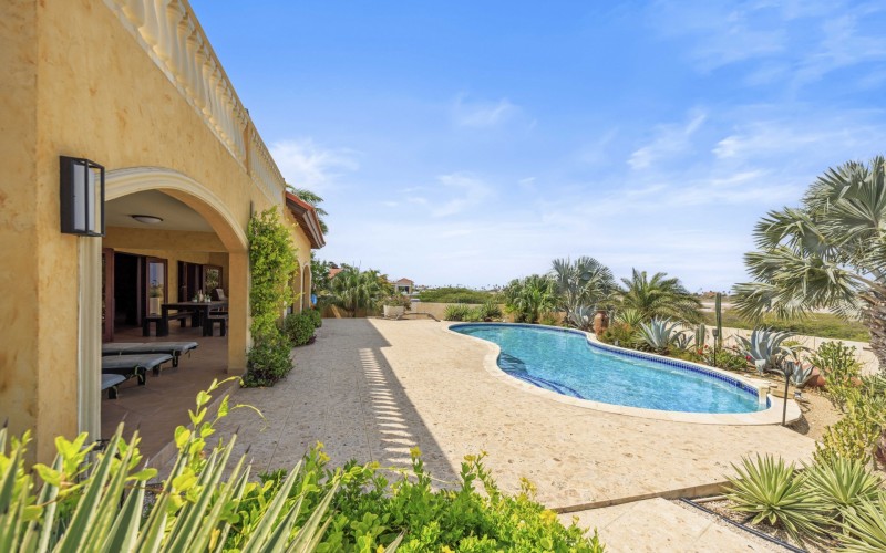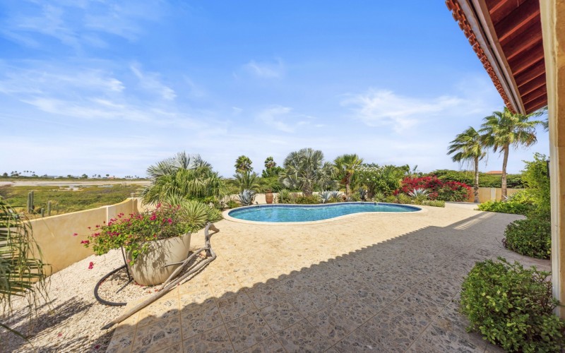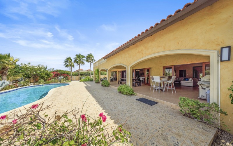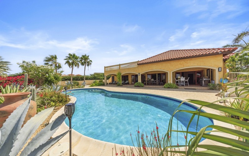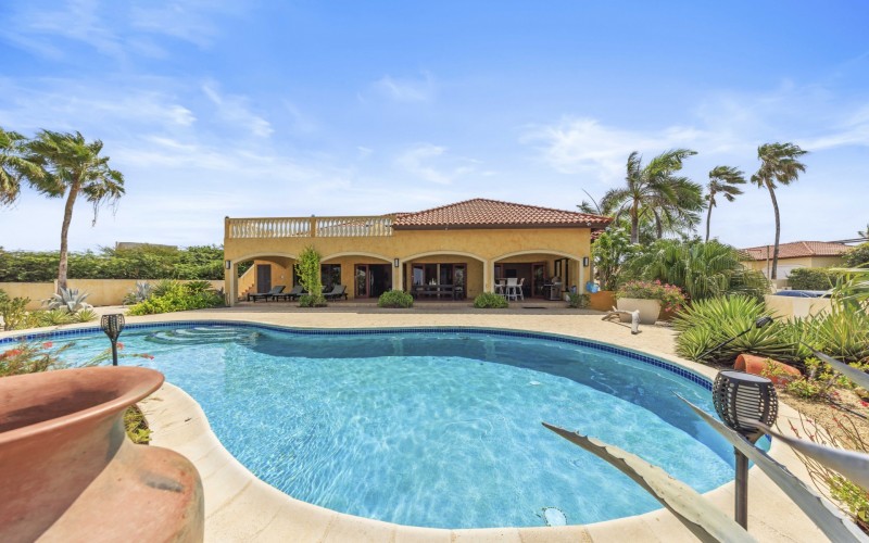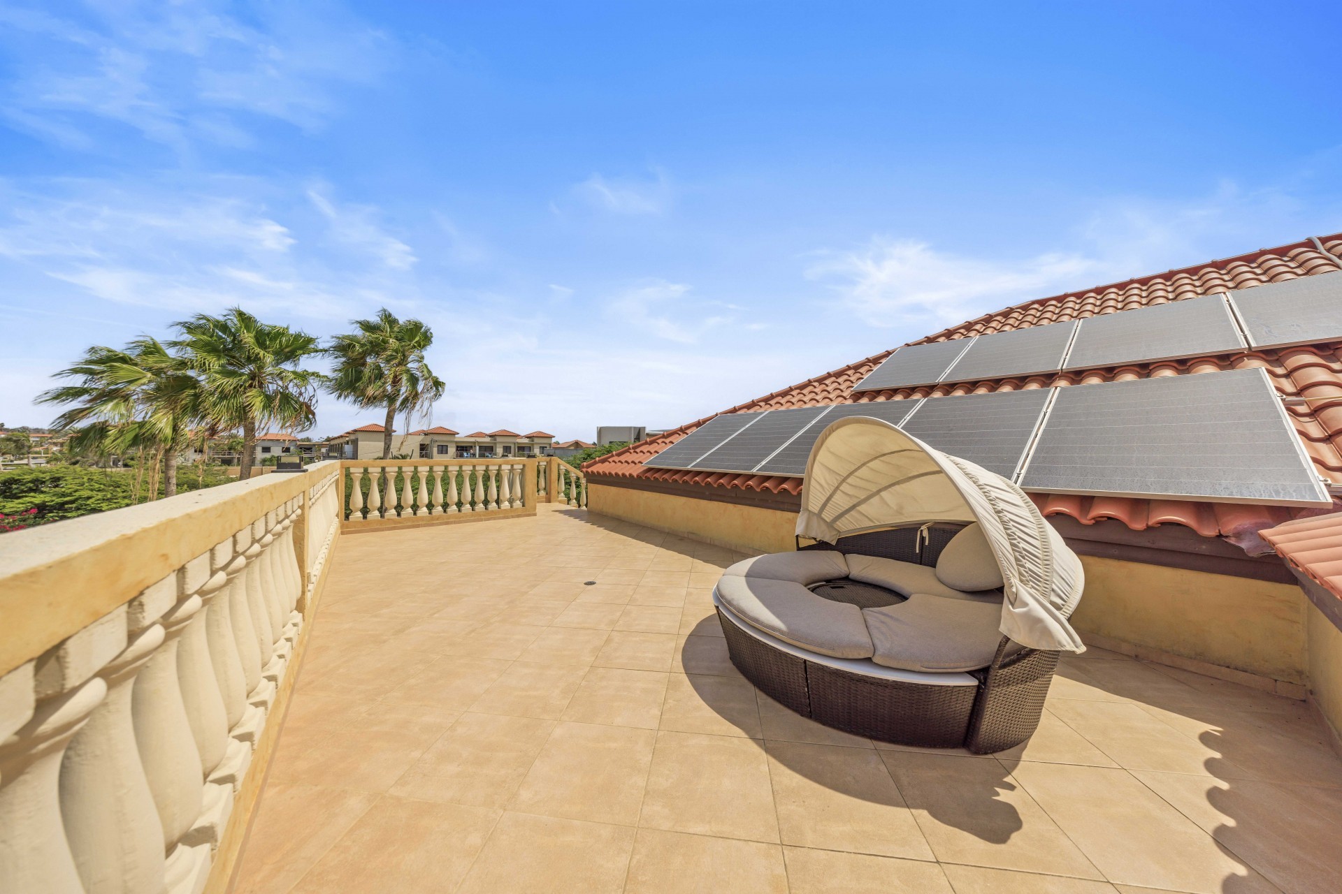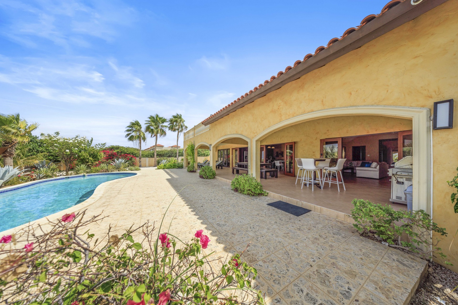 Elegant Spanish-Inspired Villa with Ocean Views Discover refined island living in this Spanish-style villa located in the prestigious Esmeralda neighborhood. Blending Mediterranean character with Caribbean comfort, this residence captures Aruba’s natural beauty and relaxed elegance. Featuring three spacious bedrooms and three and a half bathrooms, the home welcomes you with soaring cathedral ceilings and a bright, open layout that flows effortlessly to the outdoors. The sunset deck offers sweeping ocean and saliña views, creating the perfect setting for evening relaxation or entertaining guests. Situated on an oversized, gated corner lot, the property provides complete privacy and generous space to expand, further enhancing its investment potential. The pool area, surrounded by lush tropical landscaping, evokes the serenity of a private resort. This villa is more than a home — it’s a private sanctuary with panoramic ocean views, golden sunsets, and room to grow. A rare opportunity to own a top-tier investment property in one of Aruba’s most desirable areas. Property Highlights Solar panels for sustainable energy Large swimming pool Garage and abundant storage Fully furnished and move-in ready Beautifully maintained gardens Fully gated for privacy and security Security cameras installed Excellent ROI potential 📞 For viewings or more information: Agata Innamorato 📧 [email protected] 📱 +297 593 6050