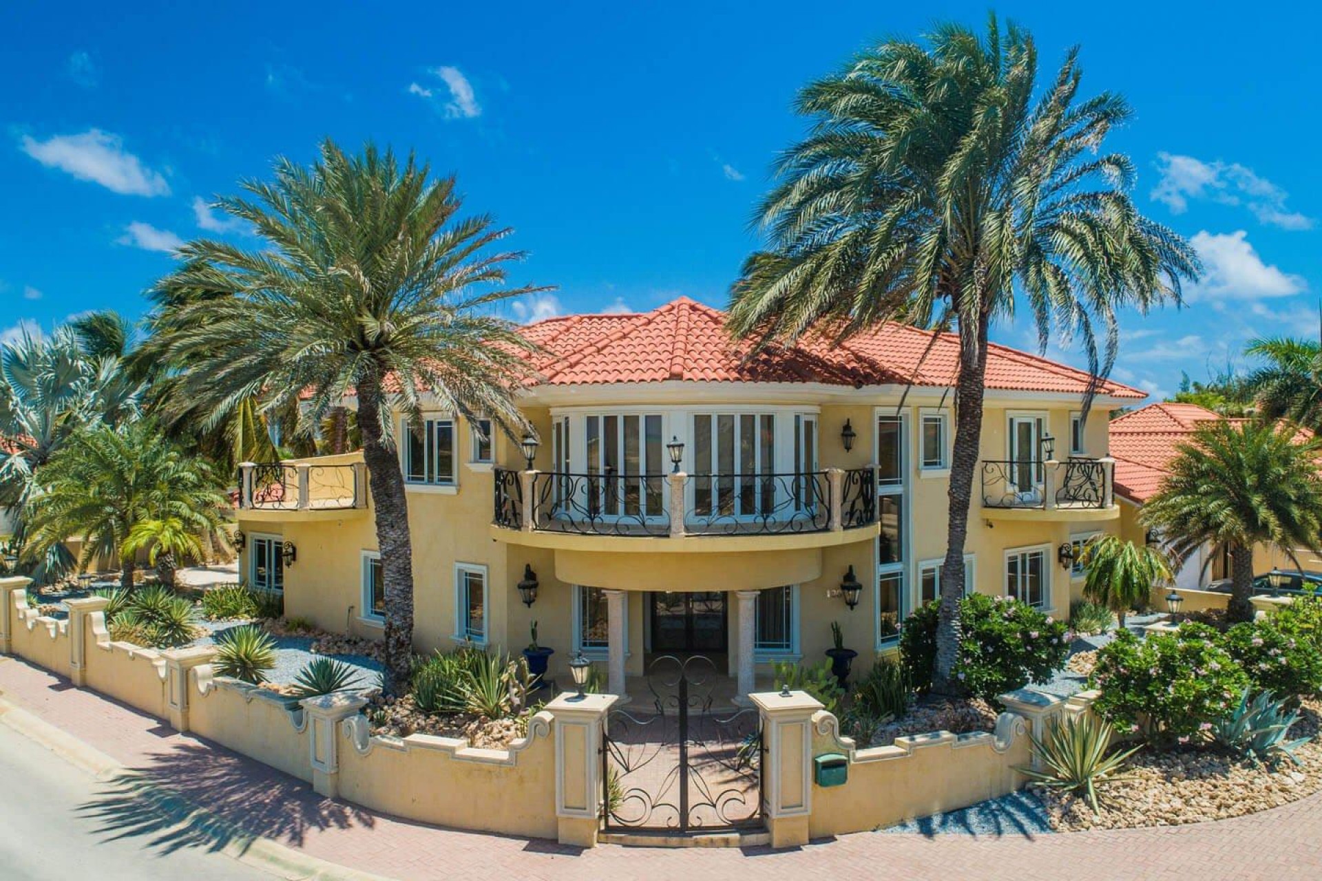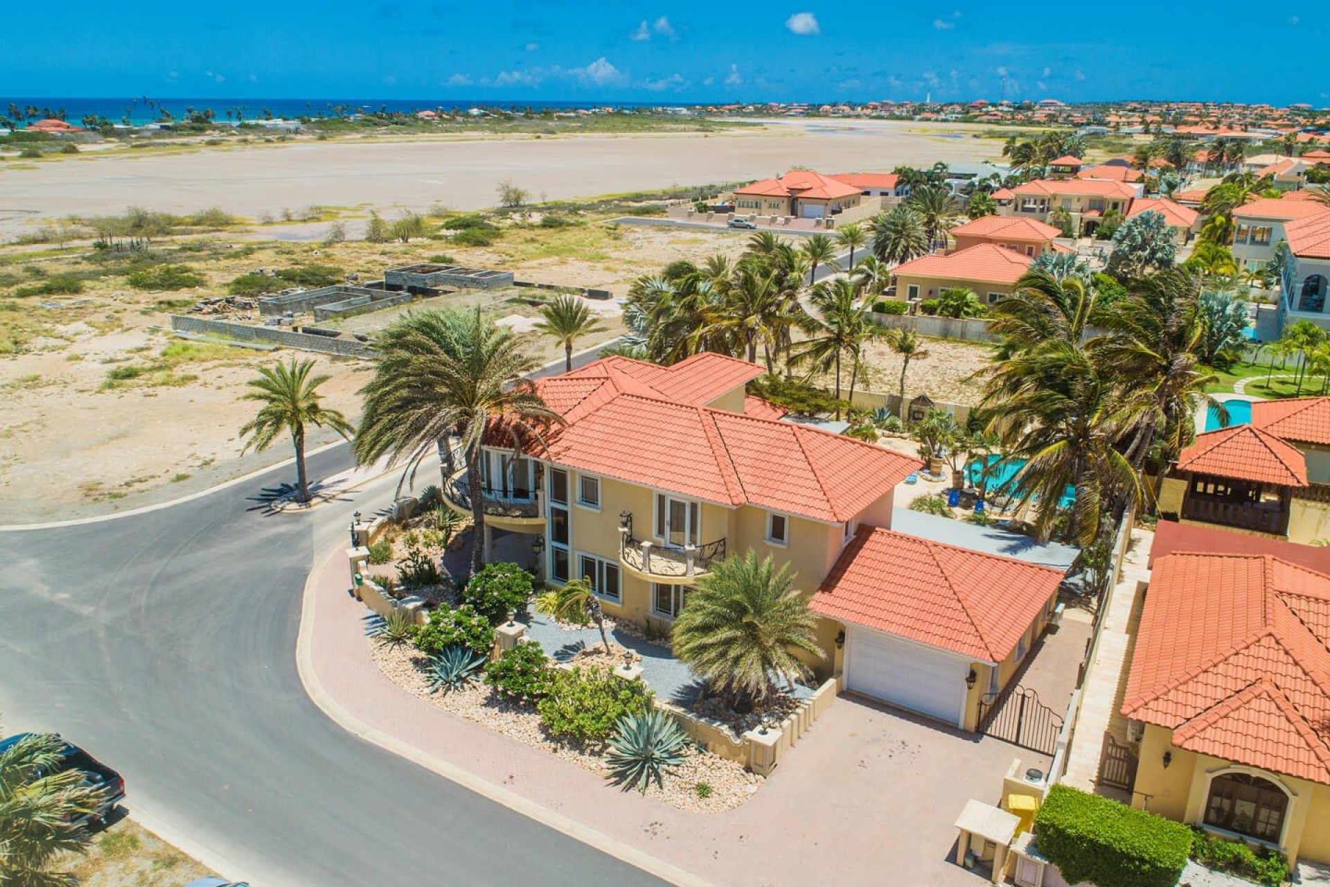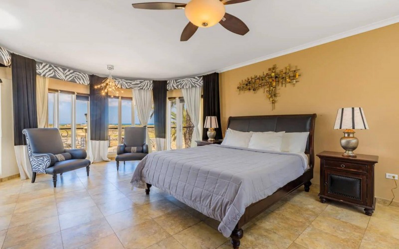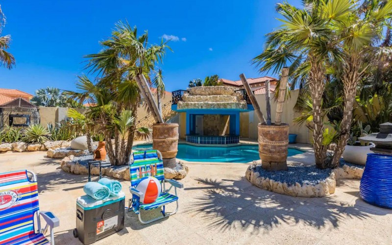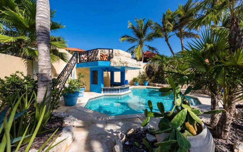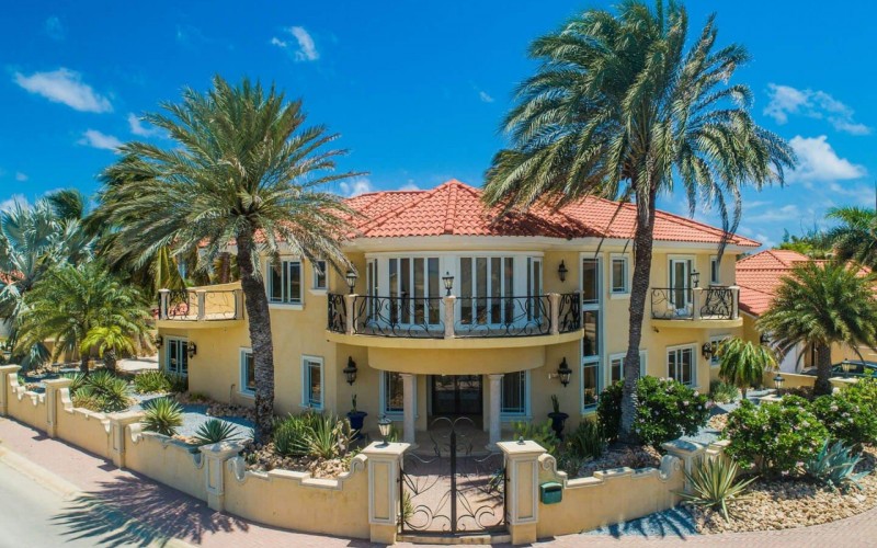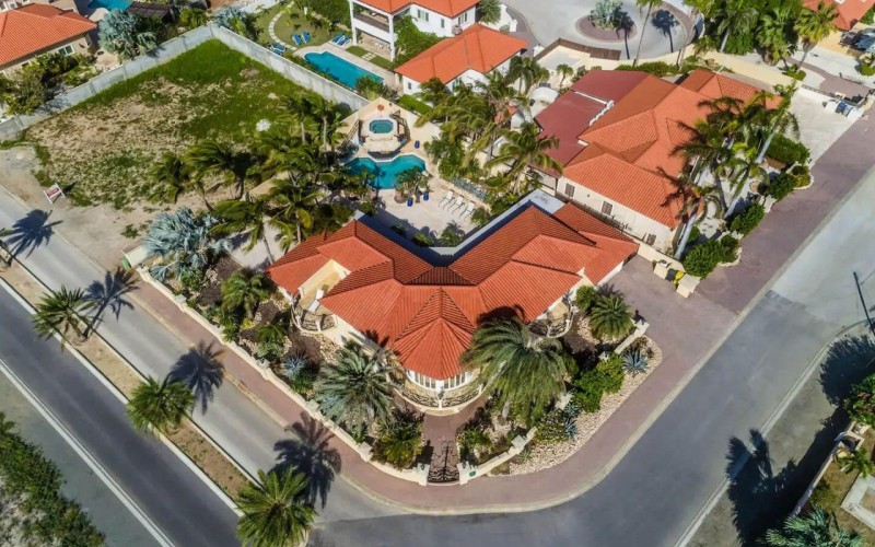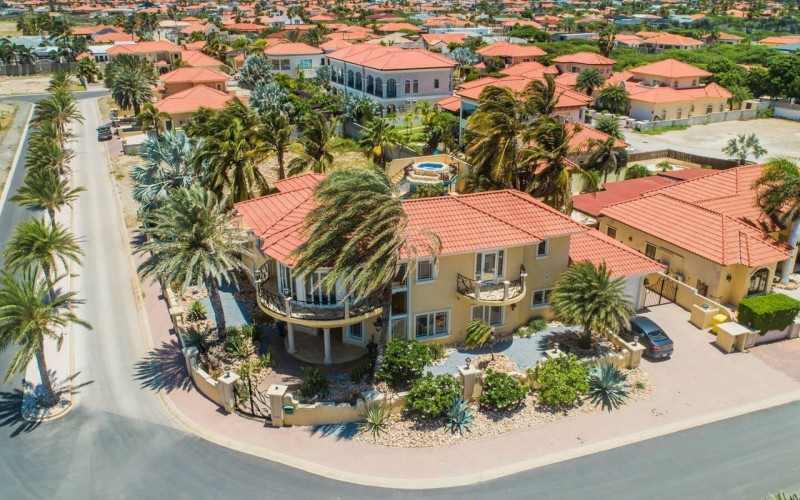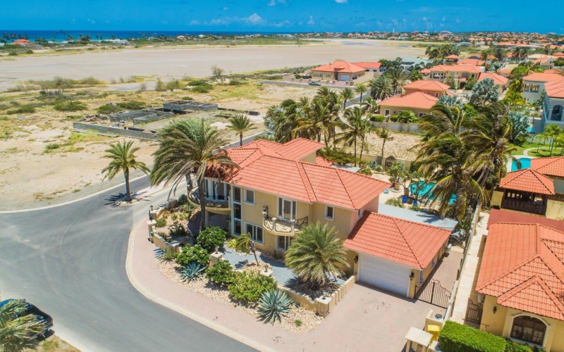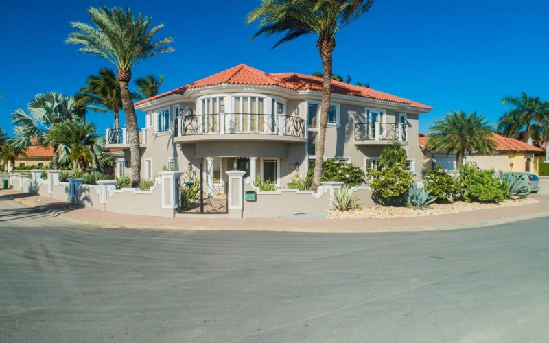 Paradise amongst the palm trees This villa is located in the beautiful neighbourhood of Opal, only a few minutes away from breathtaking beaches, with crystal clear water and dazzling white soft sand. This well-maintained home features an open floor, 4 bedrooms, 4 bathrooms, and a guesthouse with a private bathroom. The moment you arrive at this executive home, you will fall in love with the spacious landscaped backyard that is perfect for a relaxing day at the private pool. By entering the villa you will be welcomed by high ceilings, and large windows offering natural lighting in a modern and luxurious atmosphere. You will find a fully equipped U-form kitchen with a large kitchen island for cooking and entertainment. The kitchen features a double-sided refrigerator, dishwasher, built-in oven, double basin sink, microwave and a big stove. Stop by the mid-century-styled living room, and take the curved staircase leading to the 2nd floor. There you will find the master bedroom that offers you a walk-in closet and a private balcony with a stunning ocean view. The master bathroom presents a whirlpool and is ideal for relaxing after a stressful day. The guest rooms are covered in a modern Caribbean style and feature a walk-in closet and a separate bathroom. Enjoy the Caribbean weather in the backyard surrounded by tropical plants, take a dip in the swimming pool and relax in the gazebo. Make unforgettable memories in your new home. Property highlights: 4 bedrooms I 4,5 bathrooms private pool with waterfall top floor gazebo area master bedroom with private balcony walk-in closet children playground For viewing requests contact Edwin Hekman at +297 592 2506 or [email protected]