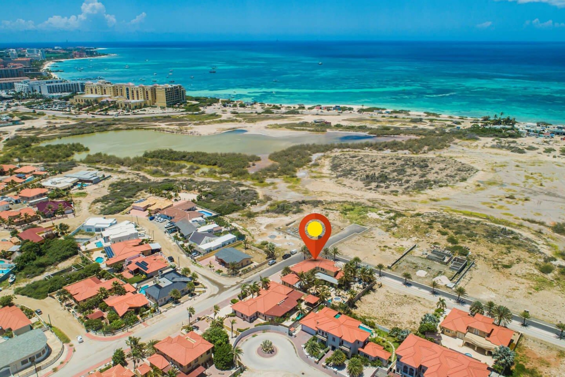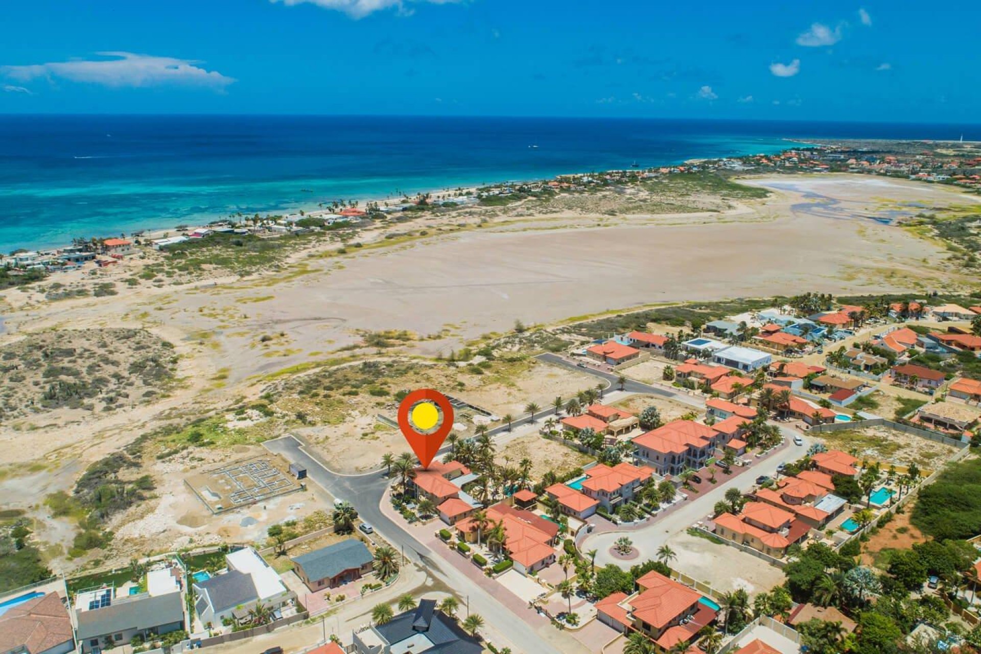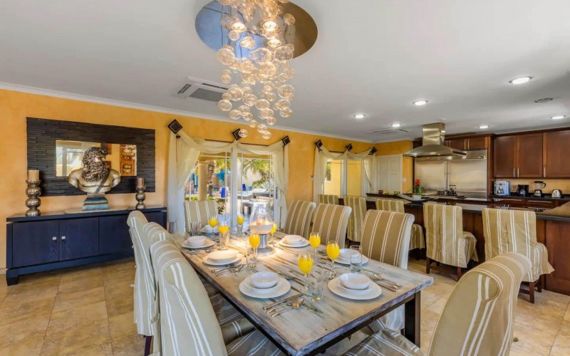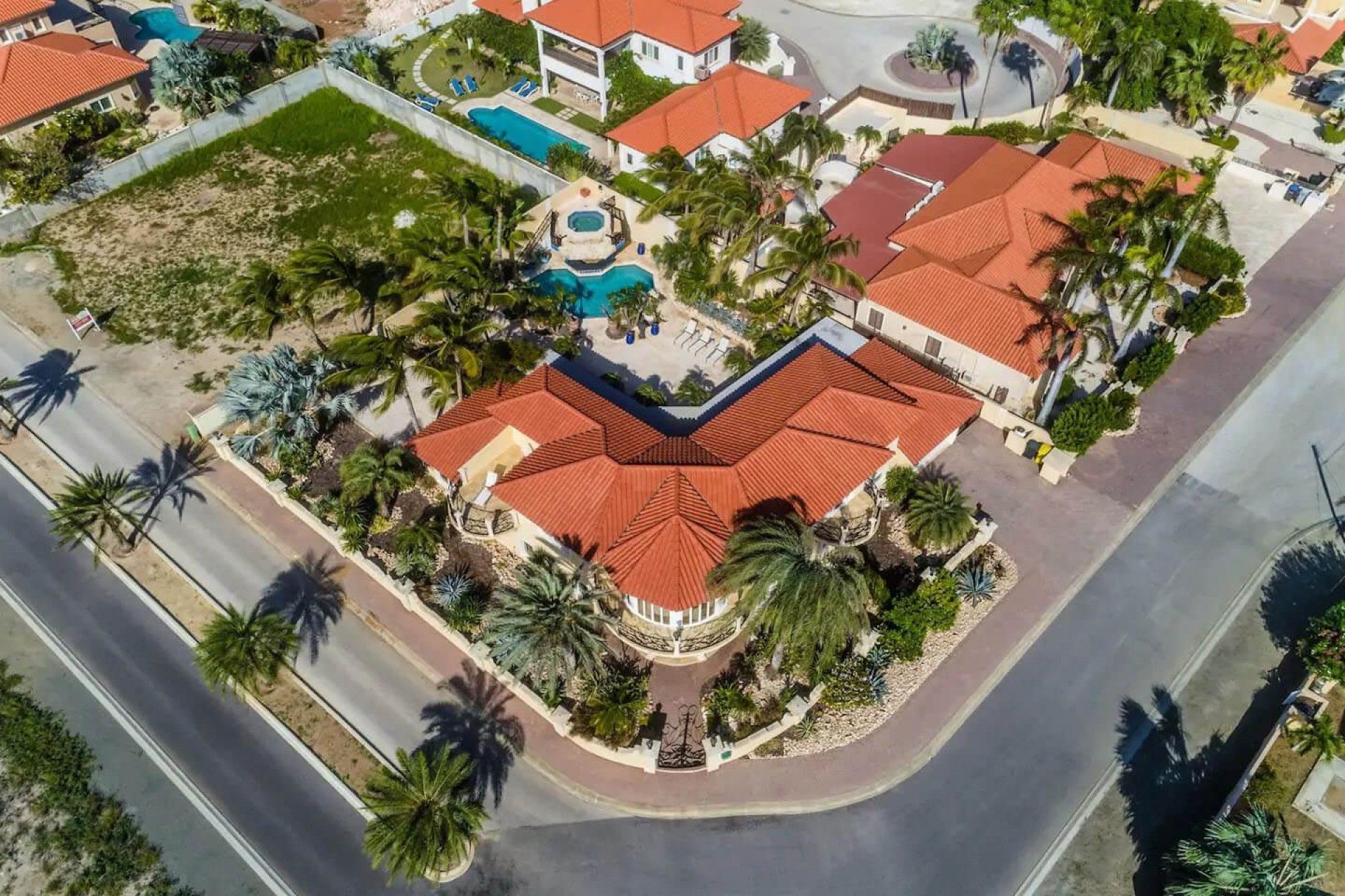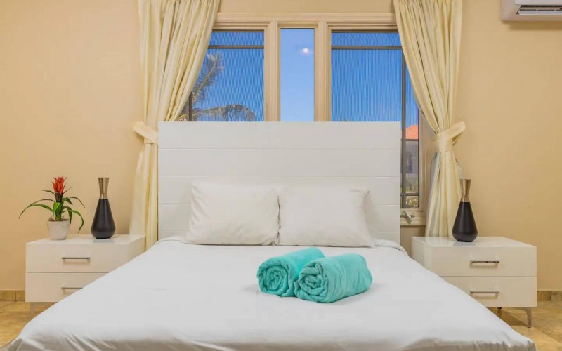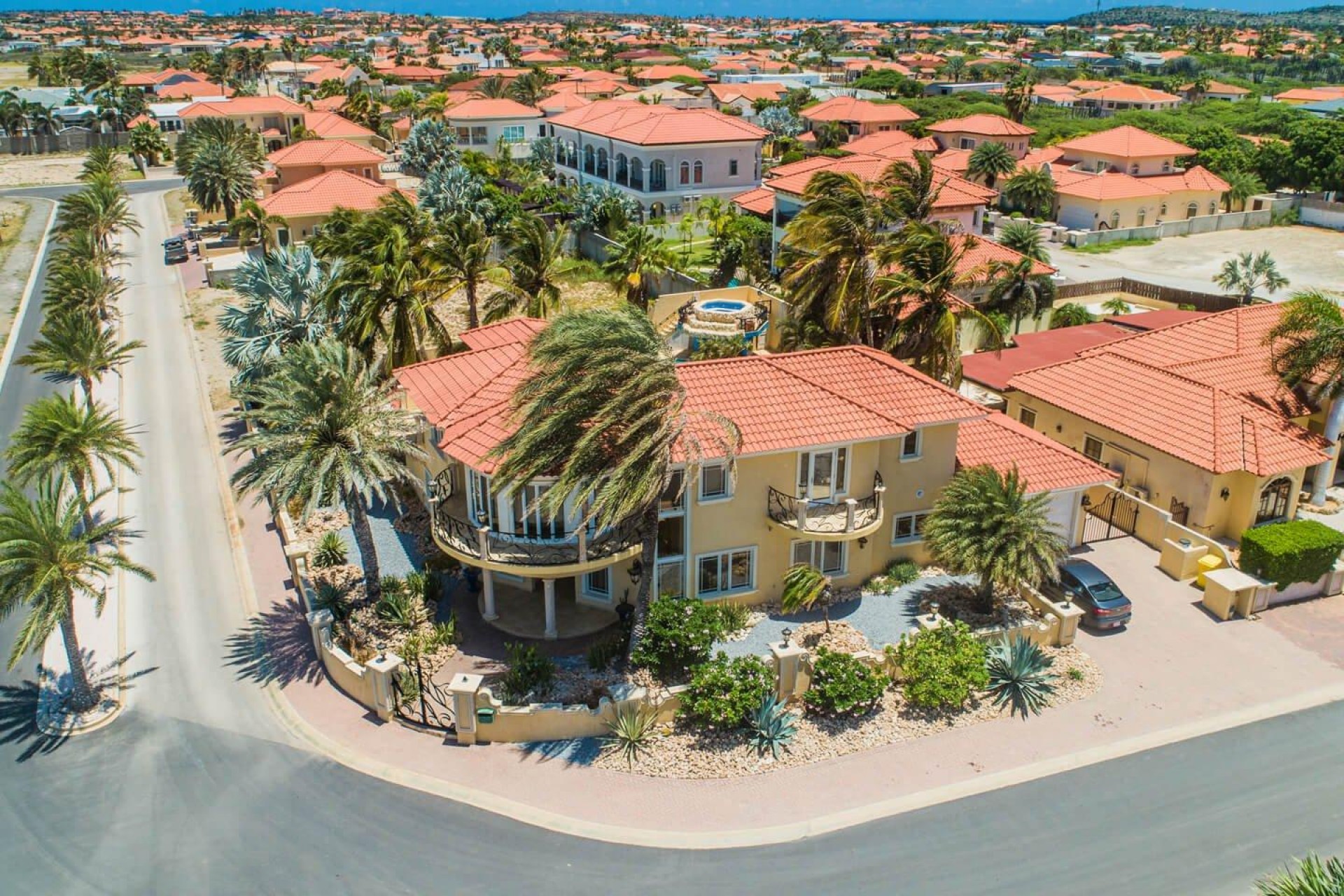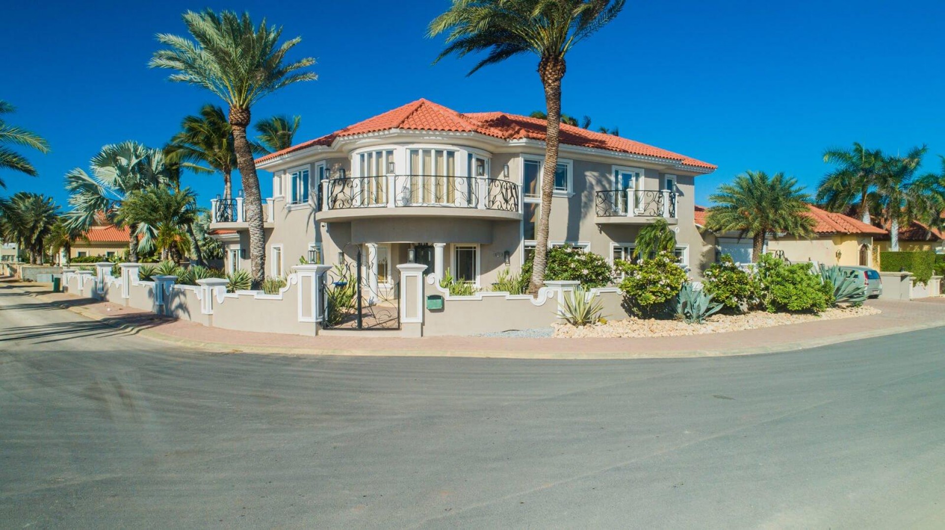 Paradise amongst the palm trees This villa is located in the beautiful neighbourhood of Opal, only a few minutes away from breathtaking beaches, with crystal clear water and dazzling white soft sand. This well-maintained home features an open floor, 4 bedrooms, 4 bathrooms, and a guesthouse with a private bathroom. The moment you arrive at this executive home, you will fall in love with the spacious landscaped backyard that is perfect for a relaxing day at the private pool. By entering the villa you will be welcomed by high ceilings, and large windows offering natural lighting in a modern and luxurious atmosphere. You will find a fully equipped U-form kitchen with a large kitchen island for cooking and entertainment. The kitchen features a double-sided refrigerator, dishwasher, built-in oven, double basin sink, microwave and a big stove. Stop by the mid-century-styled living room, and take the curved staircase leading to the 2nd floor. There you will find the master bedroom that offers you a walk-in closet and a private balcony with a stunning ocean view. The master bathroom presents a whirlpool and is ideal for relaxing after a stressful day. The guest rooms are covered in a modern Caribbean style and feature a walk-in closet and a separate bathroom. Enjoy the Caribbean weather in the backyard surrounded by tropical plants, take a dip in the swimming pool and relax in the gazebo. Make unforgettable memories in your new home. Property highlights: 4 bedrooms I 4,5 bathrooms private pool with waterfall top floor gazebo area master bedroom with private balcony walk-in closet children playground For viewing requests contact Edwin Hekman at +297 592 2506 or [email protected]
