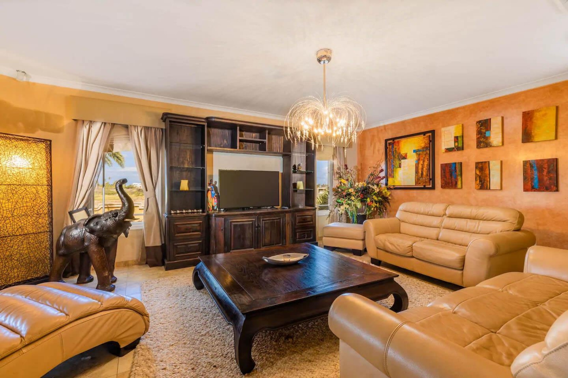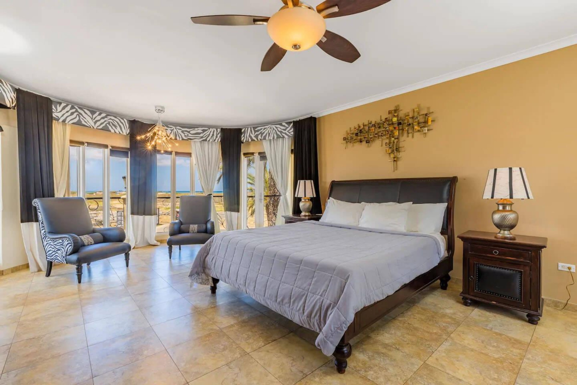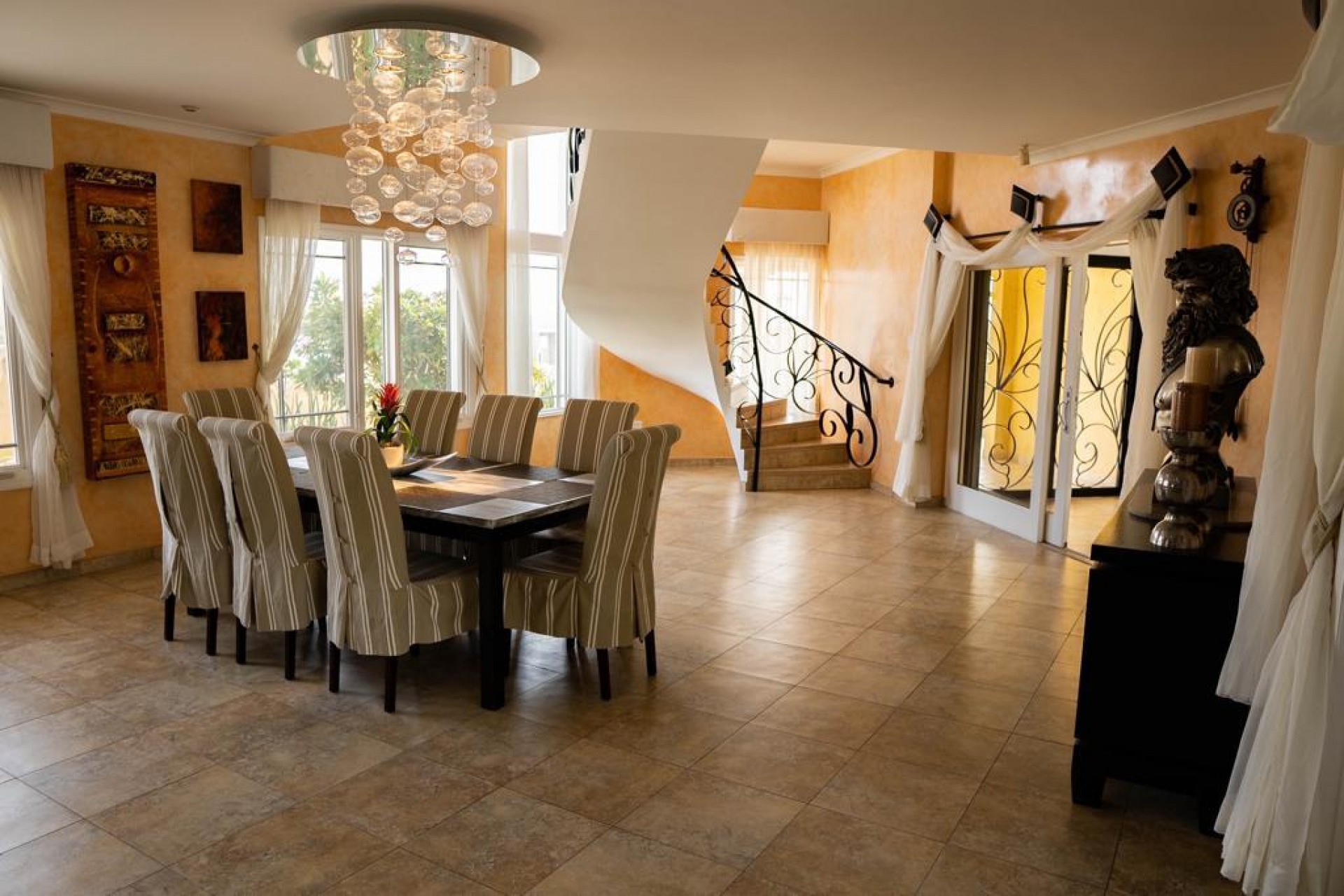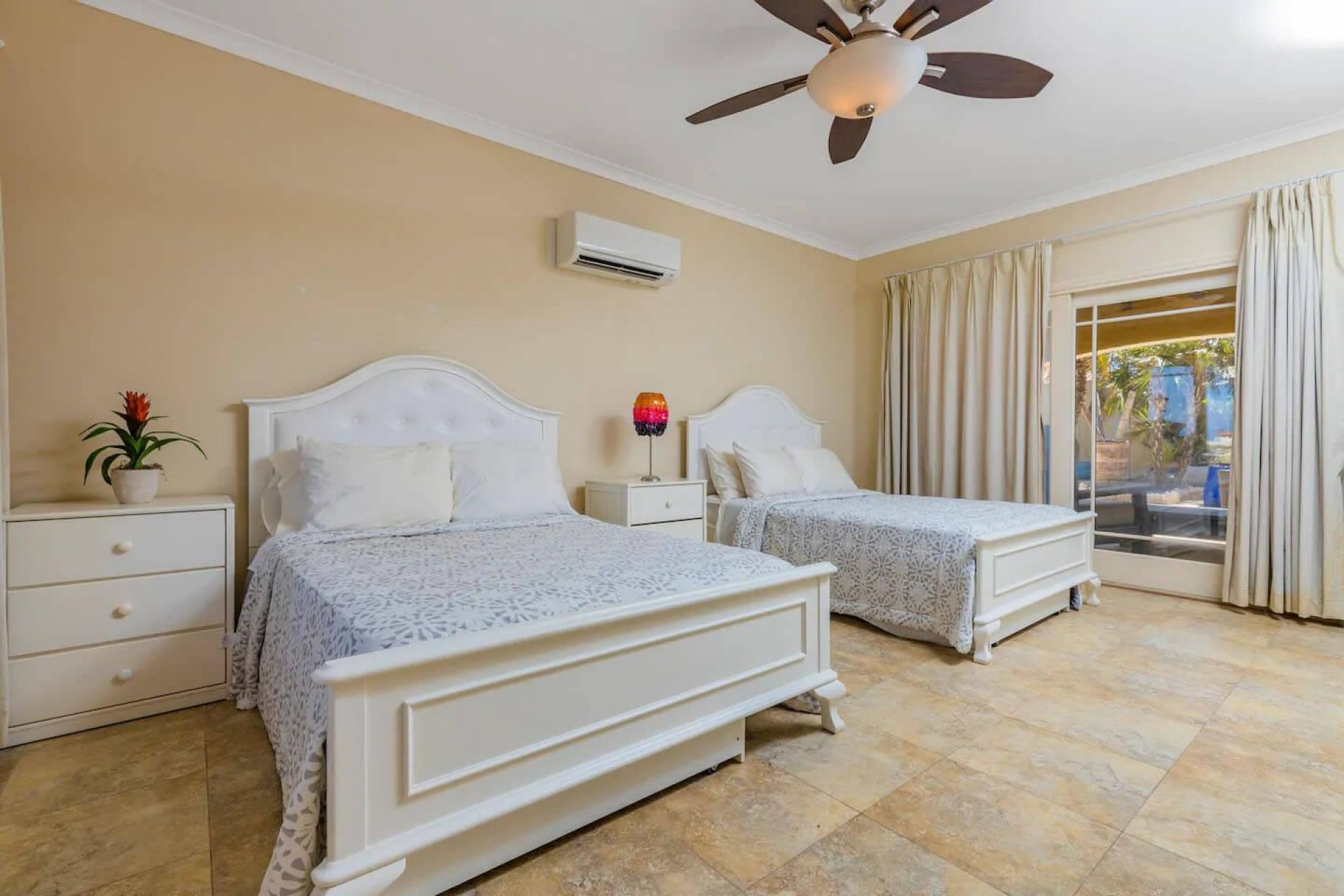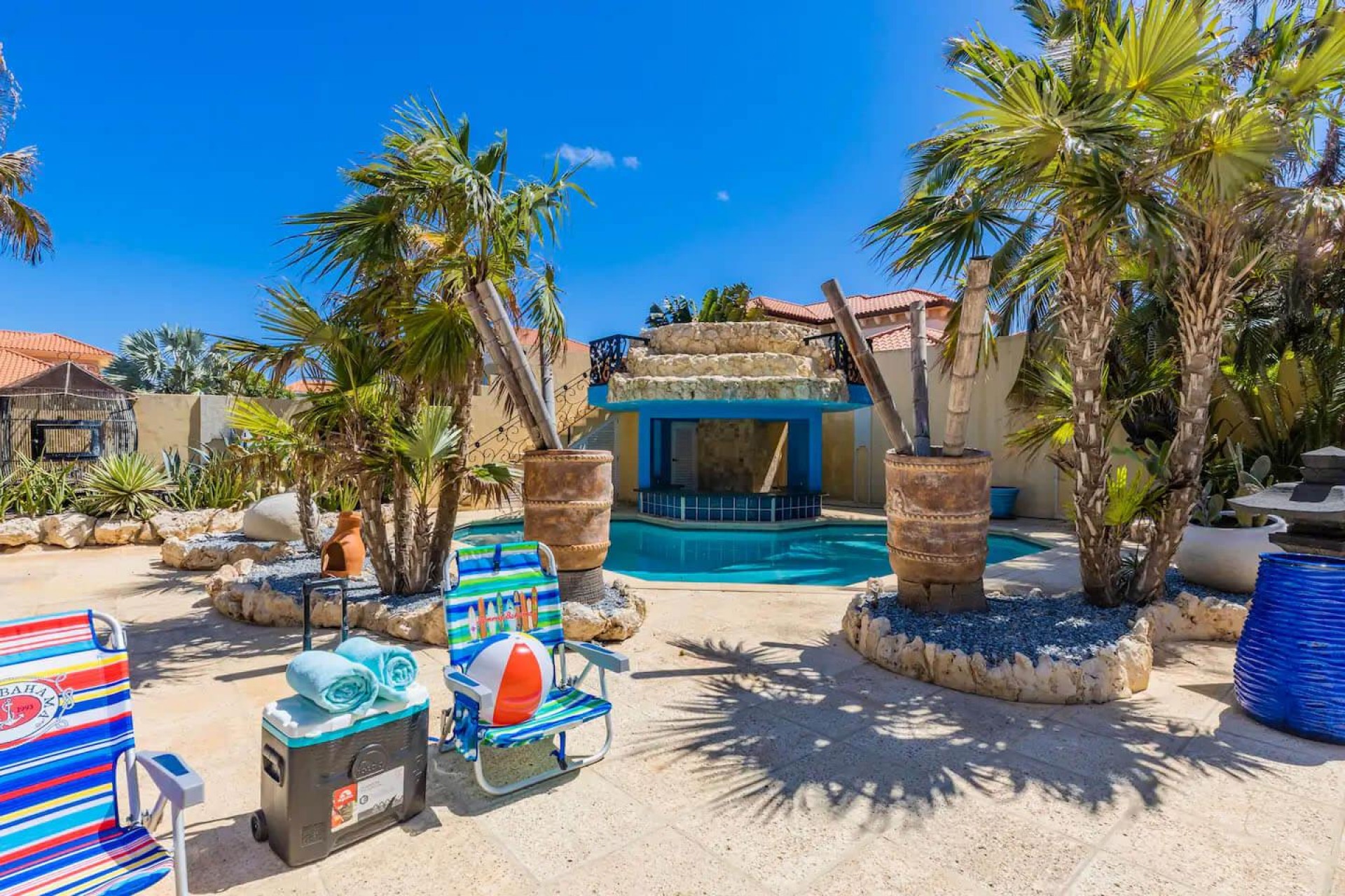Paradise amongst the palm trees This villa is located in the beautiful neighbourhood of Opal, only a few minutes away from breathtaking beaches, with crystal clear water and dazzling white soft sand. This well-maintained home features an open floor, 4 bedrooms, 4 bathrooms, and a guesthouse with a private bathroom. The moment you arrive at this executive home, you will fall in love with the spacious landscaped backyard that is perfect for a relaxing day at the private pool. By entering the villa you will be welcomed by high ceilings, and large windows offering natural lighting in a modern and luxurious atmosphere. You will find a fully equipped U-form kitchen with a large kitchen island for cooking and entertainment. The kitchen features a double-sided refrigerator, dishwasher, built-in oven, double basin sink, microwave and a big stove. Stop by the mid-century-styled living room, and take the curved staircase leading to the 2nd floor. There you will find the master bedroom that offers you a walk-in closet and a private balcony with a stunning ocean view. The master bathroom presents a whirlpool and is ideal for relaxing after a stressful day. The guest rooms are covered in a modern Caribbean style and feature a walk-in closet and a separate bathroom. Enjoy the Caribbean weather in the backyard surrounded by tropical plants, take a dip in the swimming pool and relax in the gazebo. Make unforgettable memories in your new home. Property highlights: 4 bedrooms I 4,5 bathrooms private pool with waterfall top floor gazebo area master bedroom with private balcony walk-in closet children playground For viewing requests contact Edwin Hekman at +297 592 2506 or [email protected]