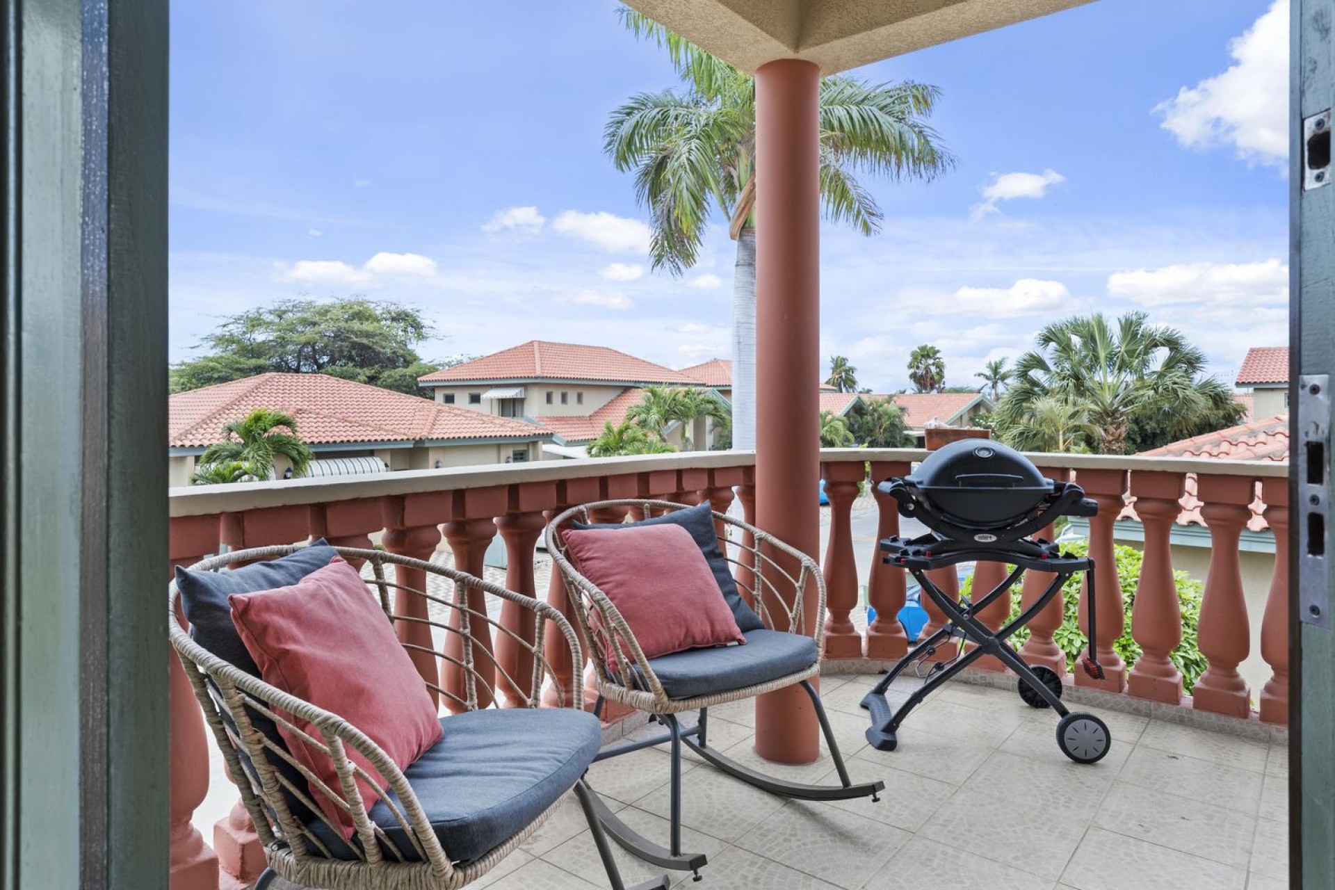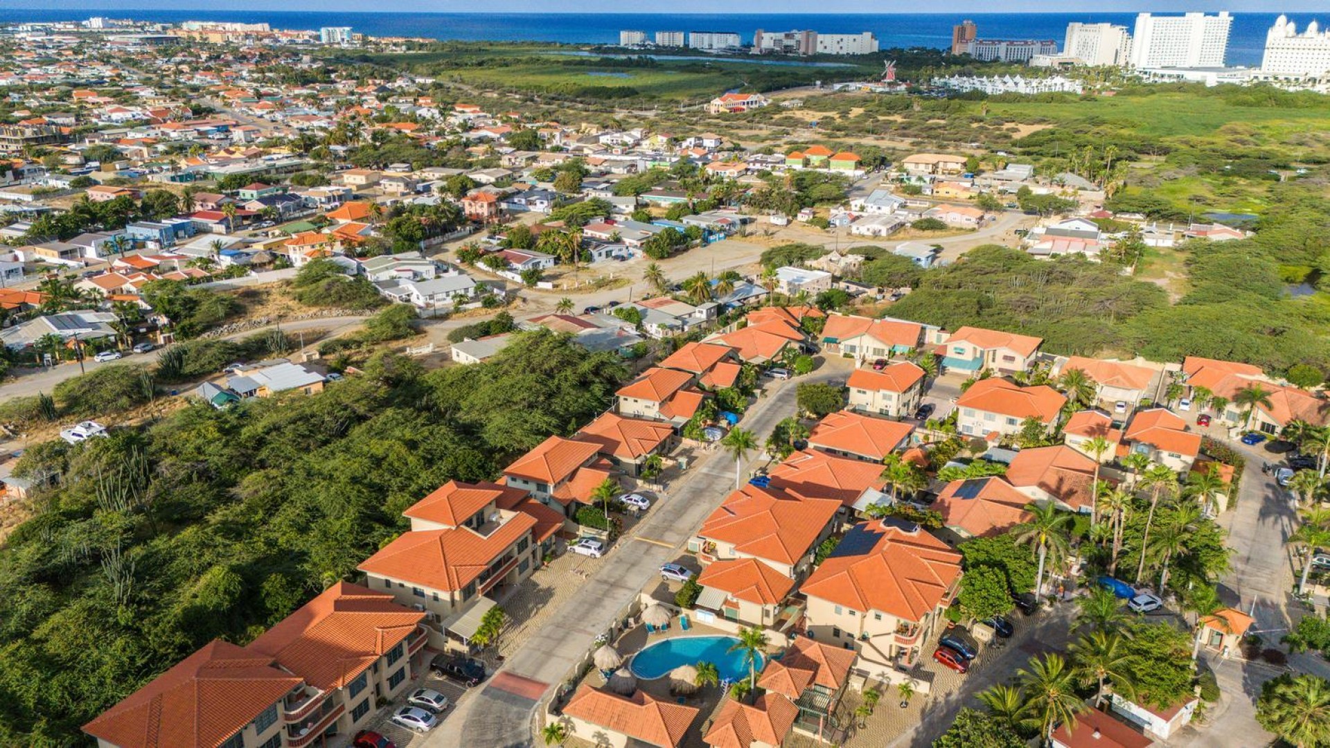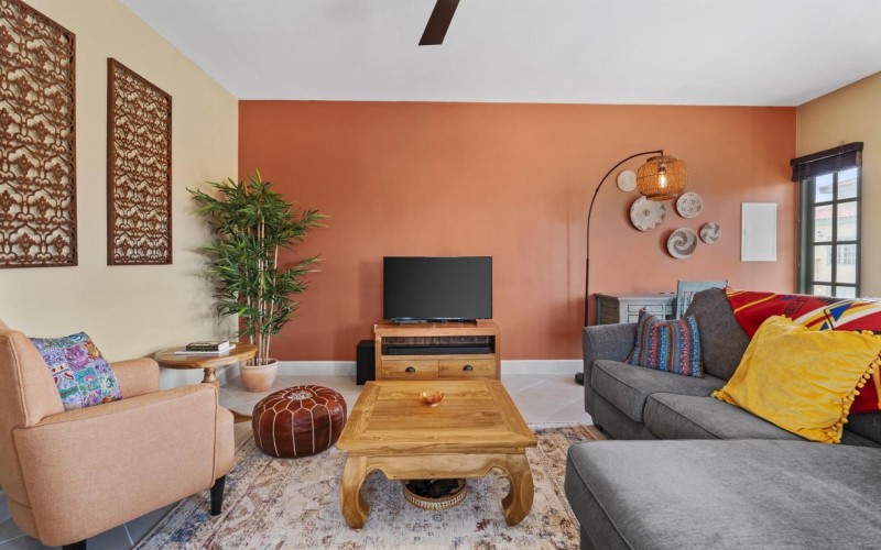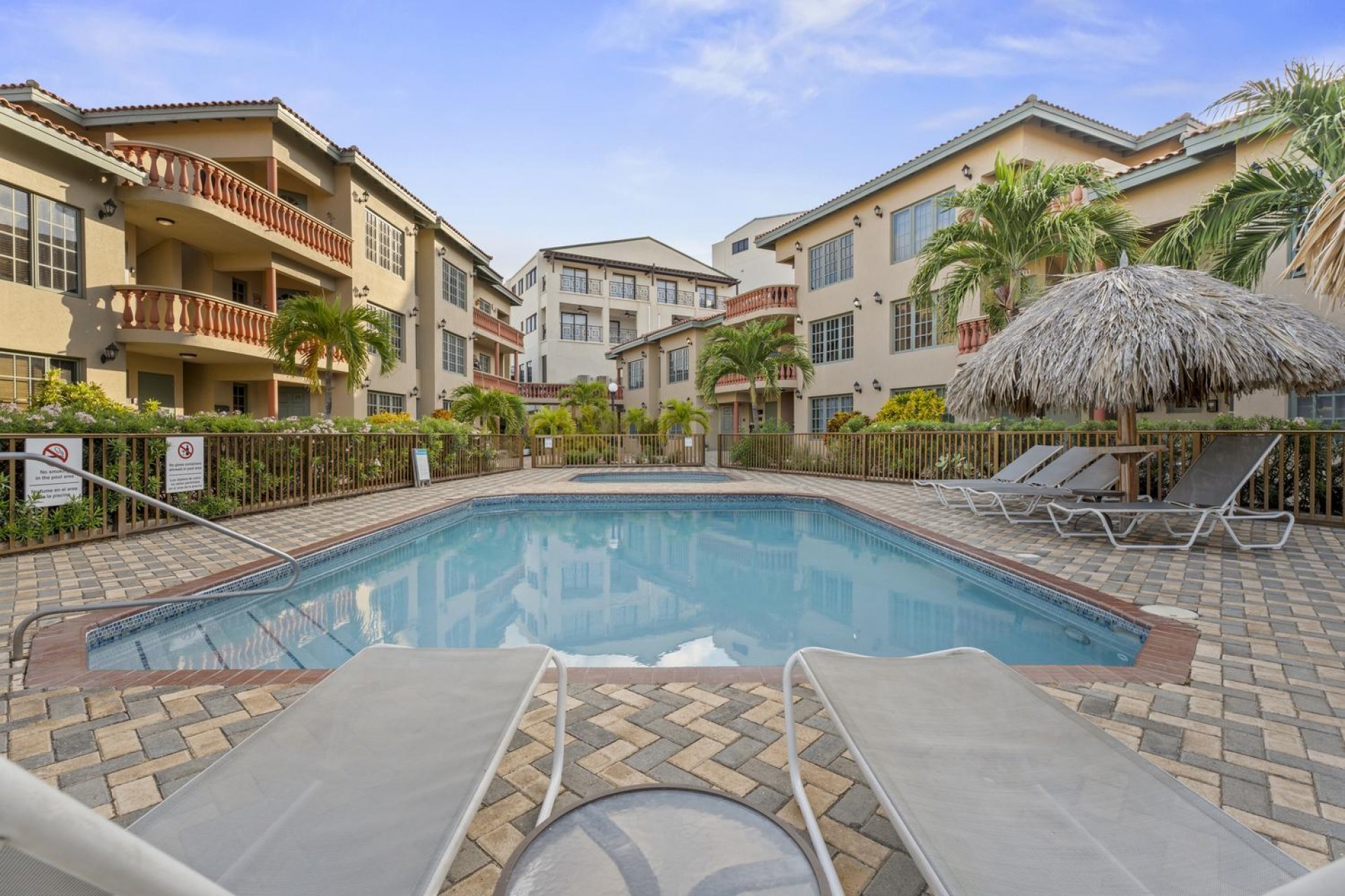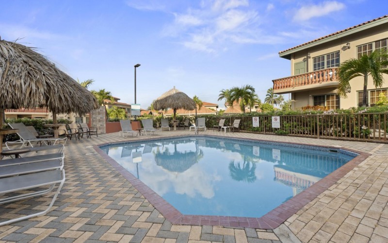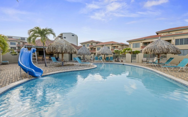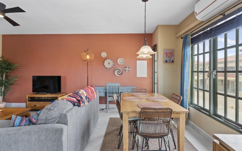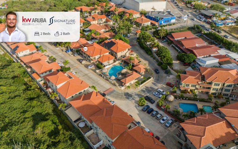 Elegant 2-Bedroom Condo in Palma Real – Prime Palm Beach Location! Discover the perfect blend of tranquility and convenience in this stunning and well maintained 2-bedroom, 2-bathroom condo in Palma Real, a peaceful gated community in the heart of Palm Beach, Aruba. Located within walking distance of the island’s best restaurants, hotels, casinos, and nightlife, yet tucked away in a serene setting with 24/7 security, this condo offers the best of both worlds. Situated on the second floor, the condo features a spacious outdoor patio, perfect for grilling, unwinding with a drink, or simply enjoying the Caribbean breeze. Step inside to an inviting open-concept living area with a comfortable seating space, dining area, and a well-equipped kitchen—ideal for entertaining or relaxing after a day at the beach. The master bedroom is spacious and private, complete with an ensuite bathroom and ample built-in closet space. The second bedroom, located at the back of the unit, is also generously sized with plenty of storage. A washer and dryer are conveniently placed in the hallway, along with a modern guest bathroom for added comfort. With access to beautiful pool areas, lush landscaping, and all the conveniences of Palm Beach at your doorstep, this condo is an incredible opportunity at $400,000 USD. Don’t miss out on this rare find—schedule your viewing today! 📞 +297-742-0129 📨