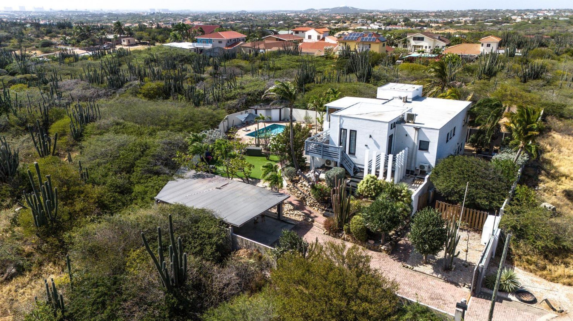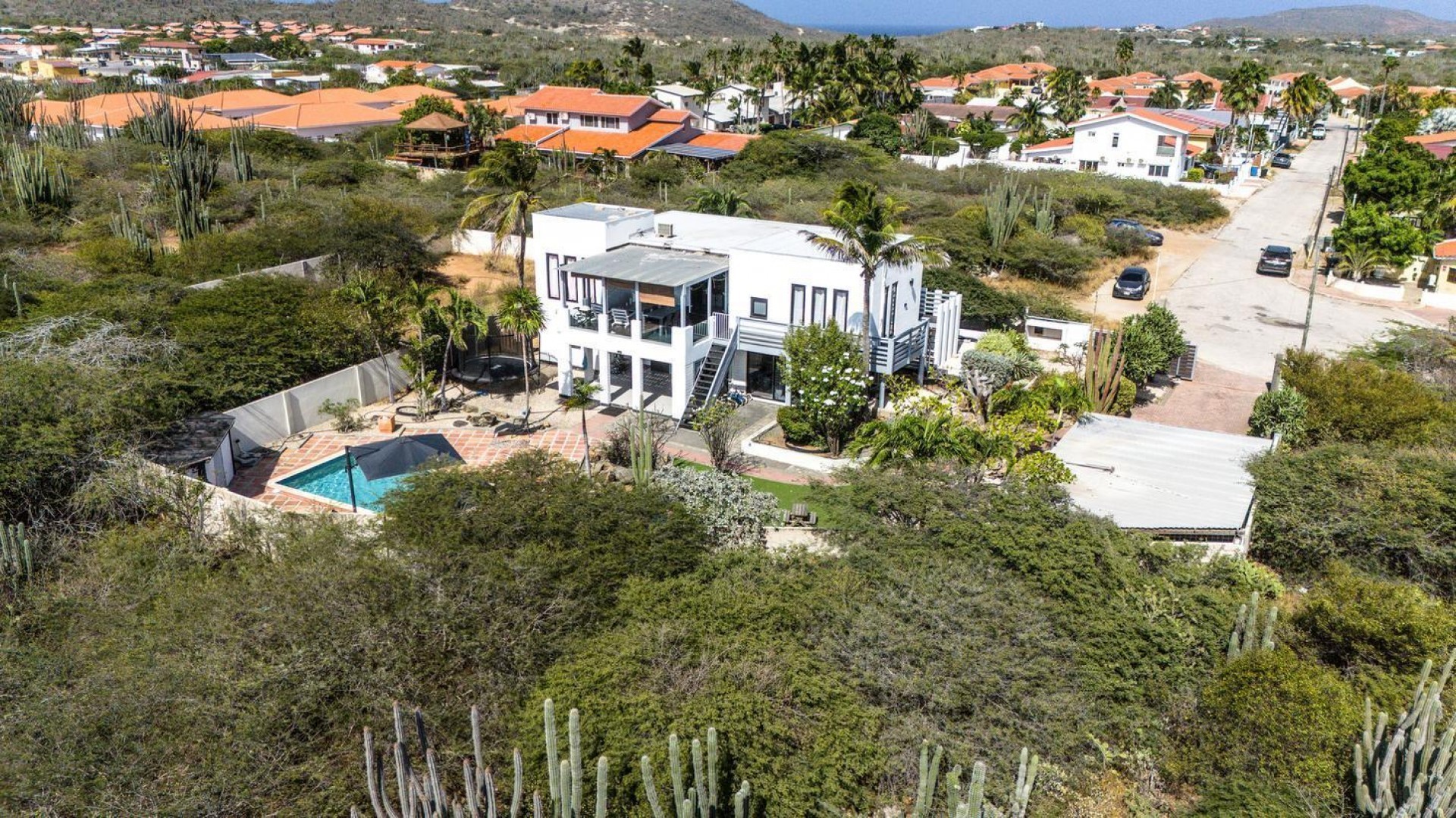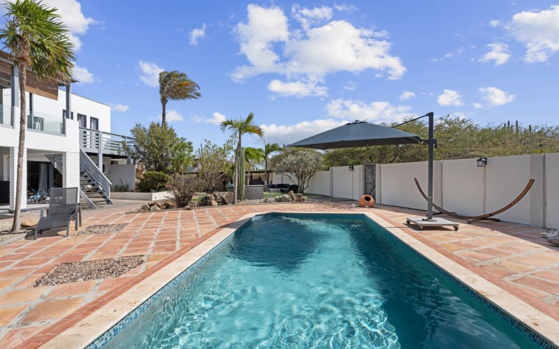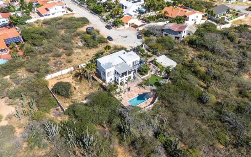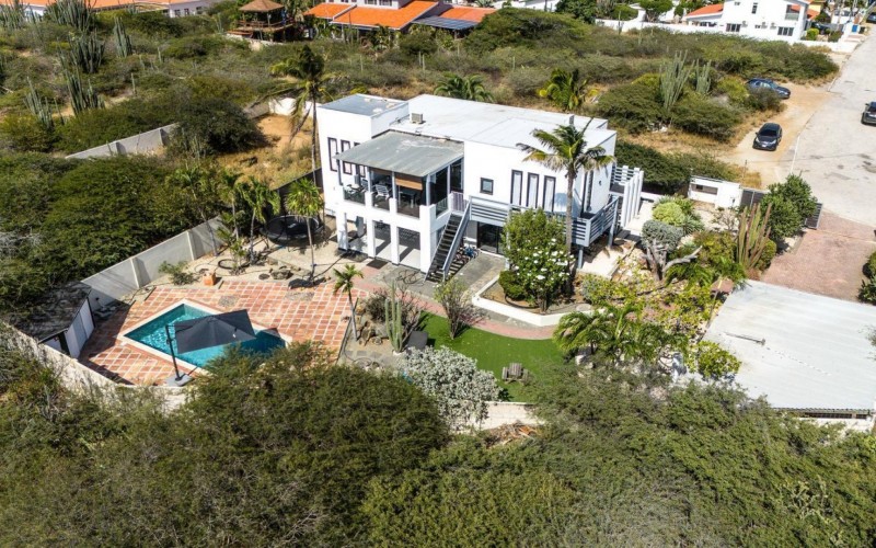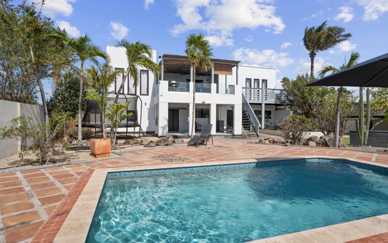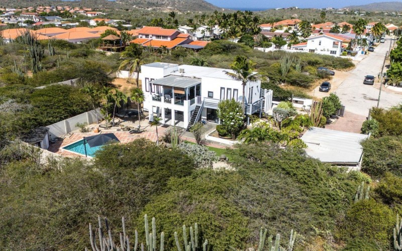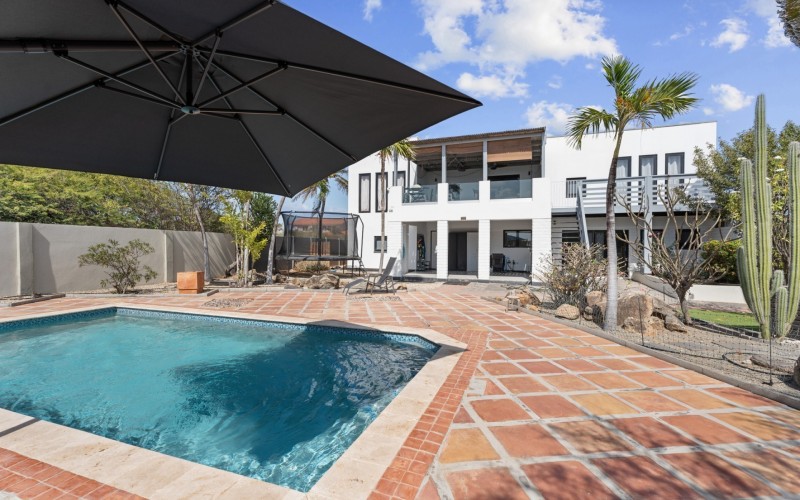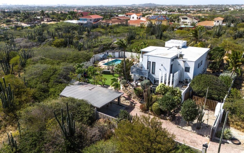 Peaceful Island Living with Panoramic Views – A Spacious Family Home or Investment Opportunity Welcome to Paradera 225, a hidden gem tucked away at the end of a quiet, private cul‑de‑sac. Surrounded by lush tropical greenery and set on 1,254 m² of property land, this unique property delivers the best of both worlds — a serene, private setting that’s only minutes away from schools, supermarkets, restaurants, and main roads. This impressive two‑story residence features 6 bedrooms and 3 bathrooms, making it ideal for a large family or an income‑generating investment. The upper level welcomes you with an expansive, light‑filled living space that flows seamlessly into a modern kitchen with an island. French doors open out to a spacious terrace where 180° panoramic views stretch across the island and out to the Caribbean Sea — a captivating backdrop for everyday living. Upstairs you’ll find 2 bedrooms, 1 bathroom, and a child’s room, creating a comfortable space for family living. The lower level offers 4 additional bedrooms and 2 bathrooms, including two rooms with their own kitchenettes — ideal for guests, extended family, or rental income. The largest downstairs bedroom opens directly to the garden, making it a perfect space for relaxation and privacy. Step outside into a beautifully landscaped garden and spacious backyard centered around a sparkling swimming pool, an ideal setting for relaxation and outdoor living. With a touch of vision and creativity, this property can easily be transformed into something truly special. A stunning family home, a thriving Airbnb, or even a multi-unit investment property. Its space, layout, and location offer endless possibilities. For more information or to schedule your private or online viewing, contact us today! 📞 +297-742-0129 📨