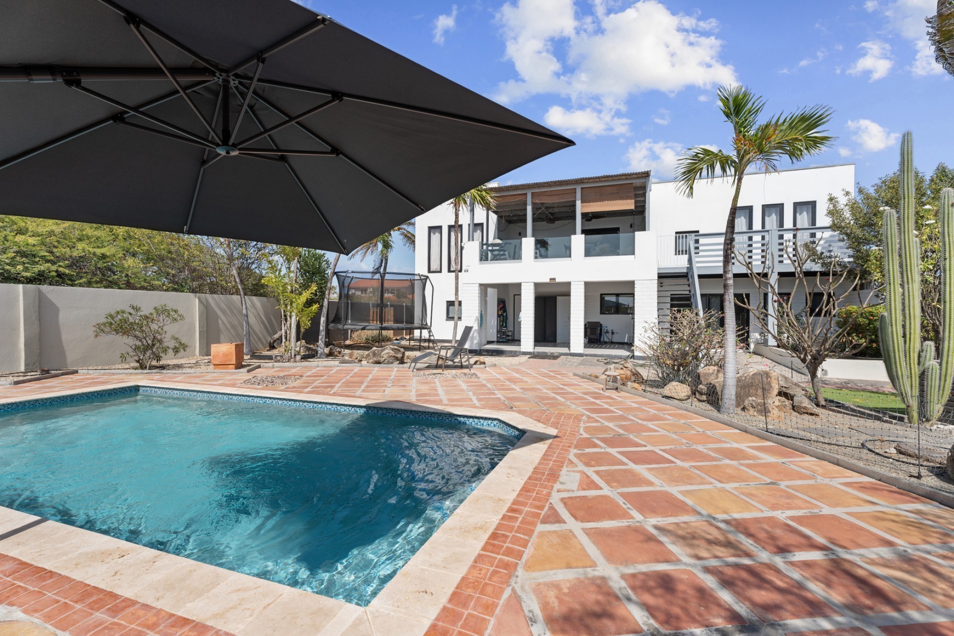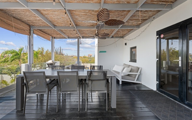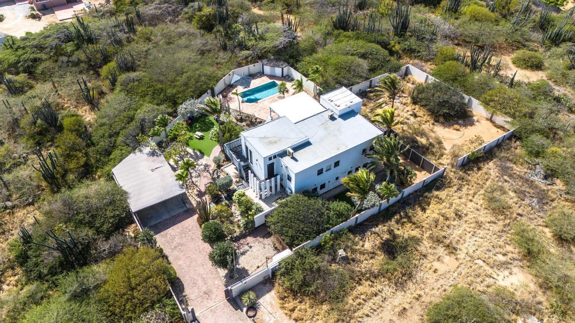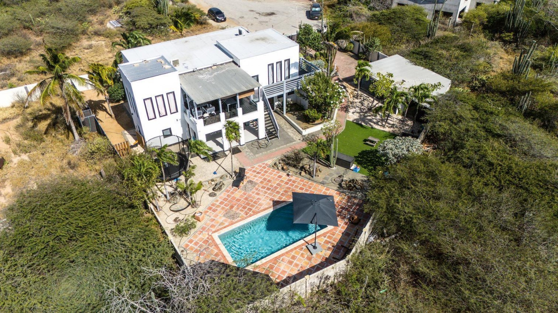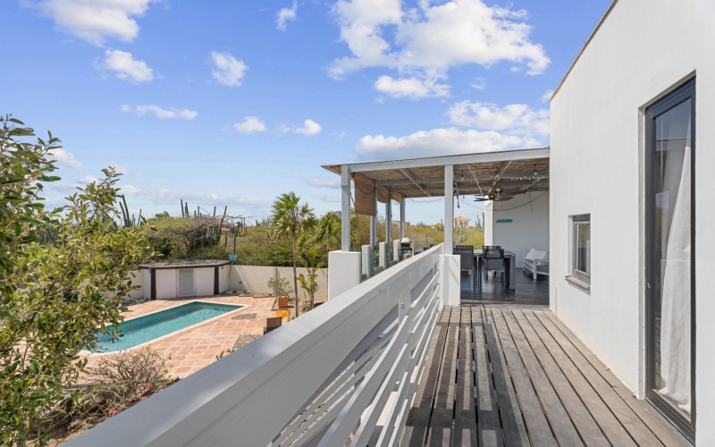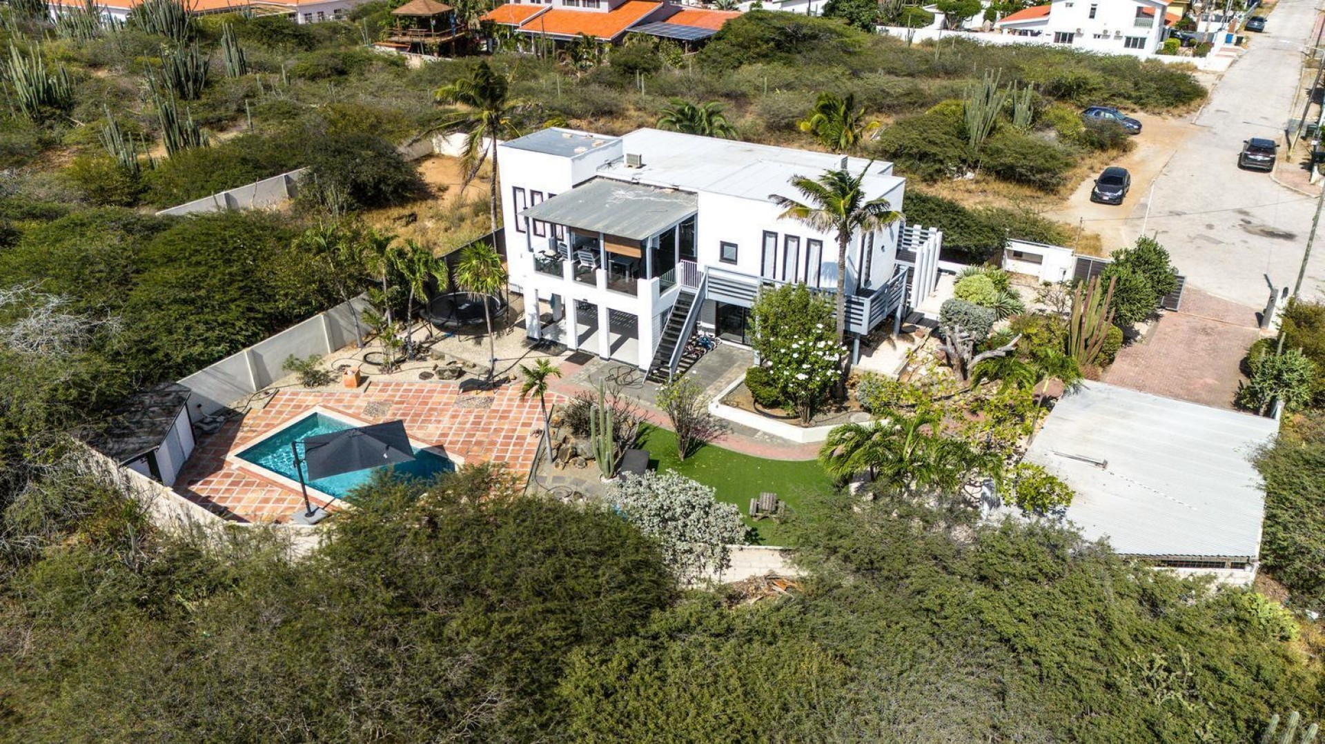 Peaceful Island Living with Panoramic Views – A Spacious Family Home or Investment Opportunity Welcome to Paradera 225, a hidden gem tucked away at the end of a quiet, private cul‑de‑sac. Surrounded by lush tropical greenery and set on 1,254 m² of property land, this unique property delivers the best of both worlds — a serene, private setting that’s only minutes away from schools, supermarkets, restaurants, and main roads. This impressive two‑story residence features 6 bedrooms and 3 bathrooms, making it ideal for a large family or an income‑generating investment. The upper level welcomes you with an expansive, light‑filled living space that flows seamlessly into a modern kitchen with an island. French doors open out to a spacious terrace where 180° panoramic views stretch across the island and out to the Caribbean Sea — a captivating backdrop for everyday living. Upstairs you’ll find 2 bedrooms, 1 bathroom, and a child’s room, creating a comfortable space for family living. The lower level offers 4 additional bedrooms and 2 bathrooms, including two rooms with their own kitchenettes — ideal for guests, extended family, or rental income. The largest downstairs bedroom opens directly to the garden, making it a perfect space for relaxation and privacy. Step outside into a beautifully landscaped garden and spacious backyard centered around a sparkling swimming pool, an ideal setting for relaxation and outdoor living. With a touch of vision and creativity, this property can easily be transformed into something truly special. A stunning family home, a thriving Airbnb, or even a multi-unit investment property. Its space, layout, and location offer endless possibilities. For more information or to schedule your private or online viewing, contact us today! 📞 +297-742-0129 📨