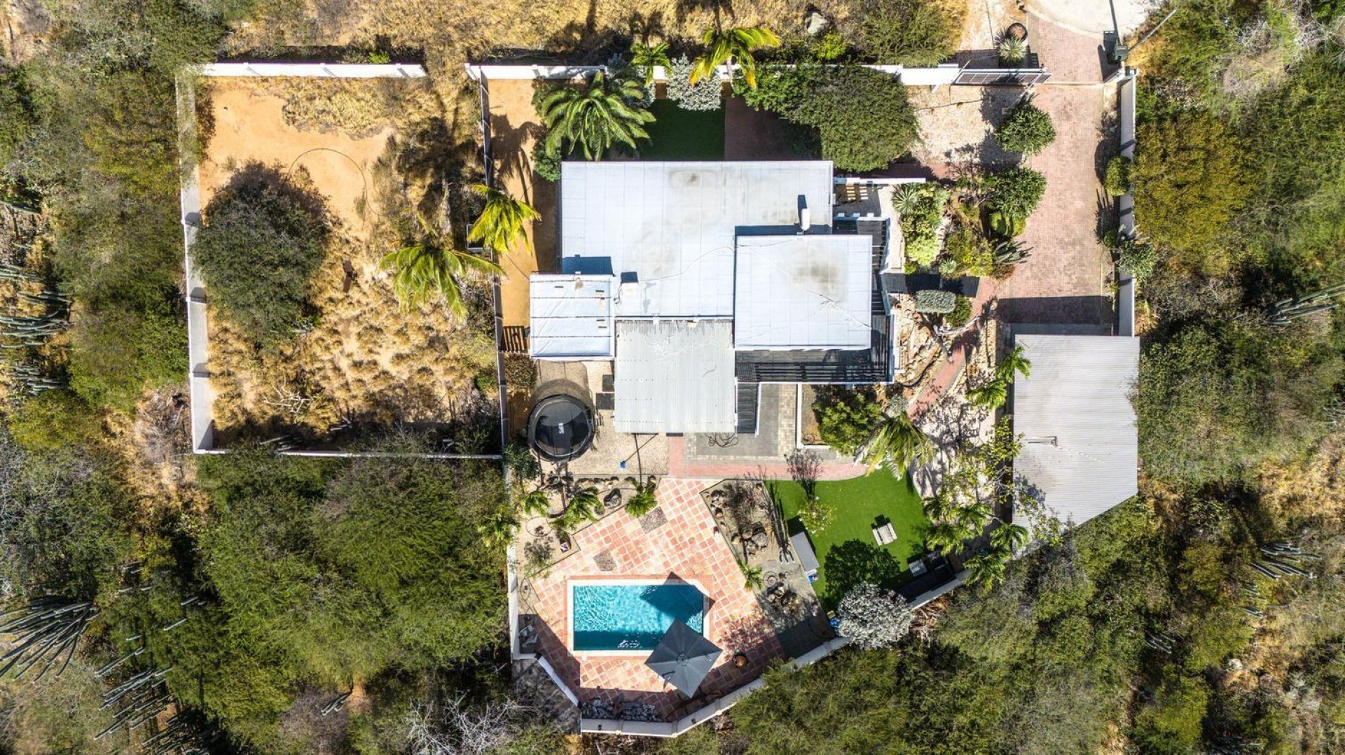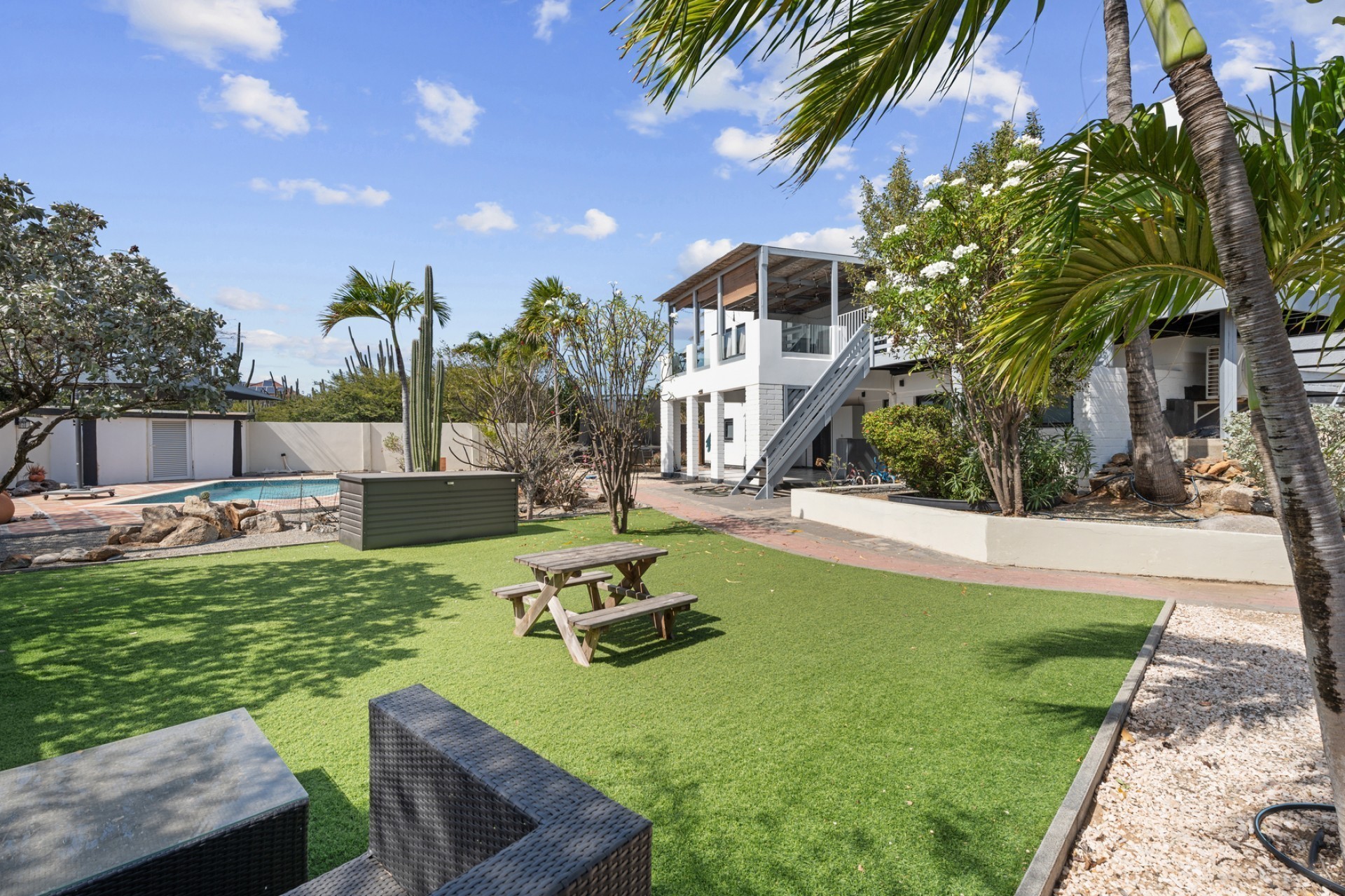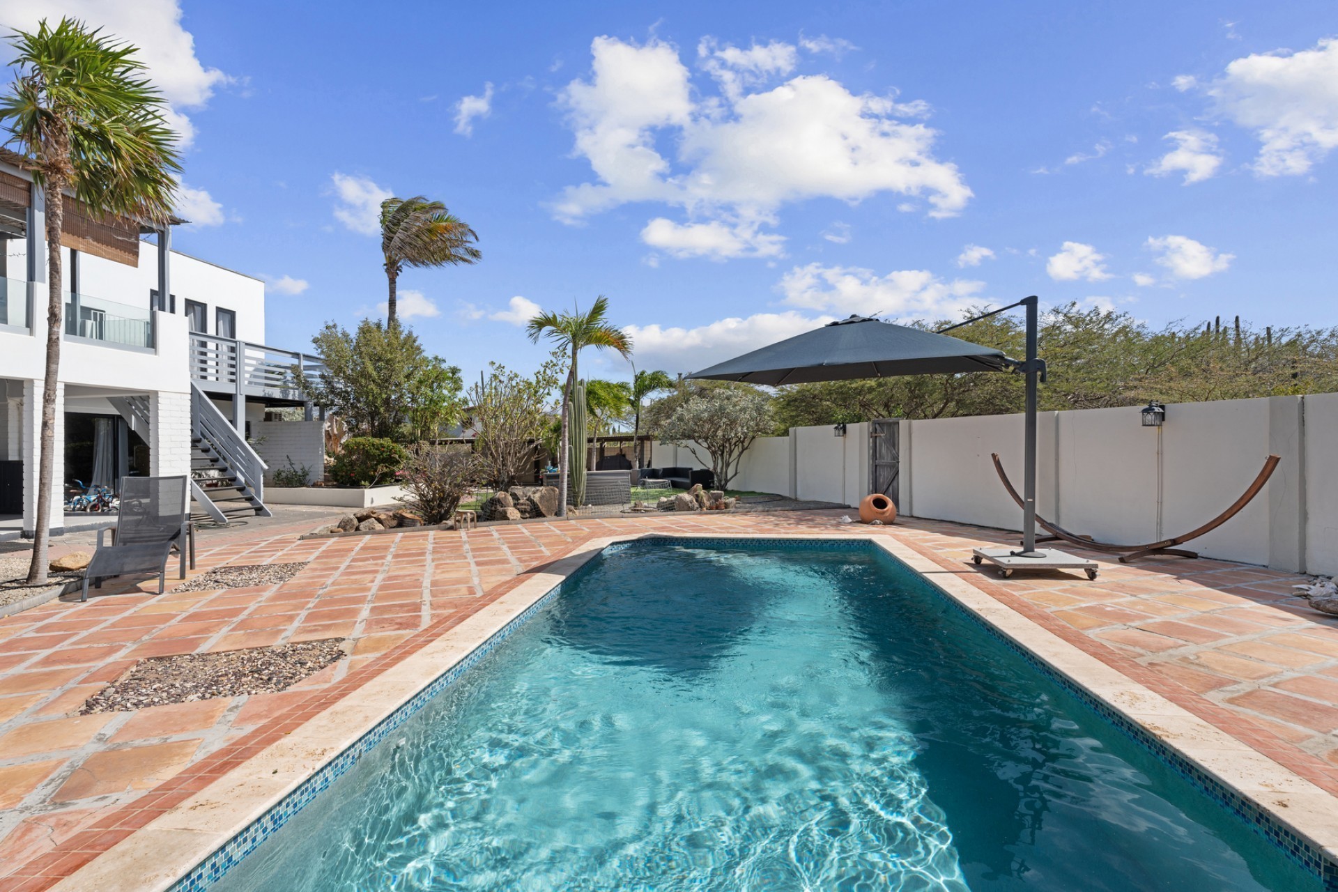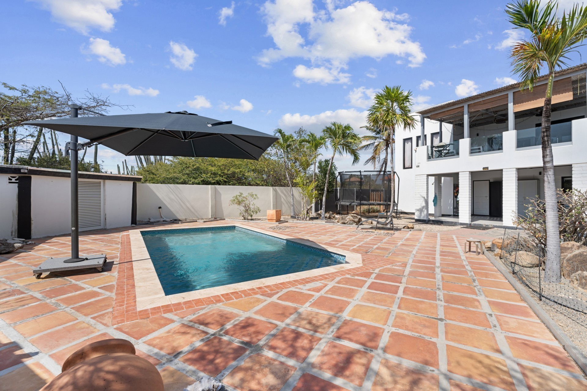 Peaceful Island Living with Panoramic Views – A Spacious Family Home or Investment Opportunity Welcome to Paradera 225, a hidden gem tucked away at the end of a quiet, private cul‑de‑sac. Surrounded by lush tropical greenery and set on 1,254 m² of property land, this unique property delivers the best of both worlds — a serene, private setting that’s only minutes away from schools, supermarkets, restaurants, and main roads. This impressive two‑story residence features 6 bedrooms and 3 bathrooms, making it ideal for a large family or an income‑generating investment. The upper level welcomes you with an expansive, light‑filled living space that flows seamlessly into a modern kitchen with an island. French doors open out to a spacious terrace where 180° panoramic views stretch across the island and out to the Caribbean Sea — a captivating backdrop for everyday living. Upstairs you’ll find 2 bedrooms, 1 bathroom, and a child’s room, creating a comfortable space for family living. The lower level offers 4 additional bedrooms and 2 bathrooms, including two rooms with their own kitchenettes — ideal for guests, extended family, or rental income. The largest downstairs bedroom opens directly to the garden, making it a perfect space for relaxation and privacy. Step outside into a beautifully landscaped garden and spacious backyard centered around a sparkling swimming pool, an ideal setting for relaxation and outdoor living. With a touch of vision and creativity, this property can easily be transformed into something truly special. A stunning family home, a thriving Airbnb, or even a multi-unit investment property. Its space, layout, and location offer endless possibilities. For more information or to schedule your private or online viewing, contact us today! 📞 +297-742-0129 📨