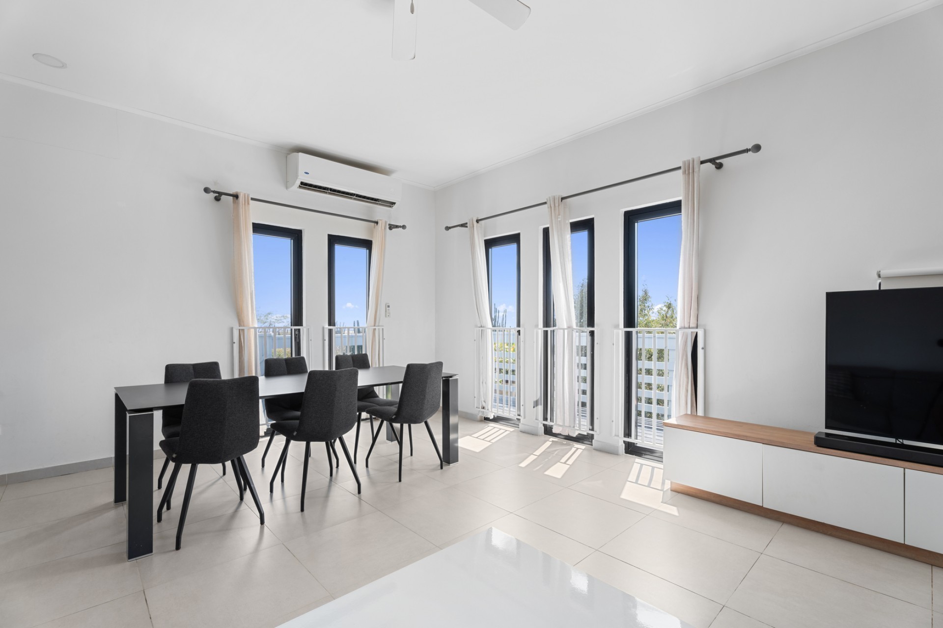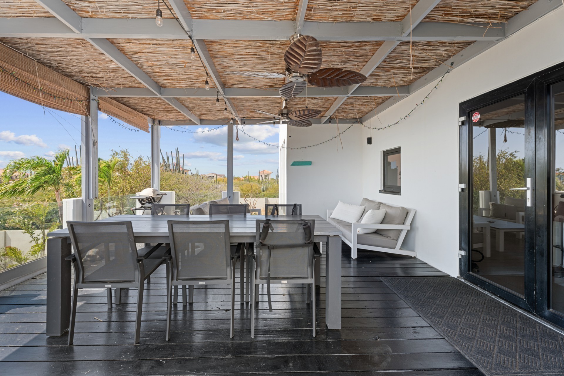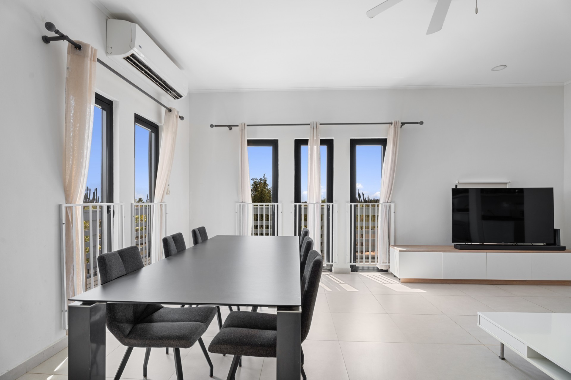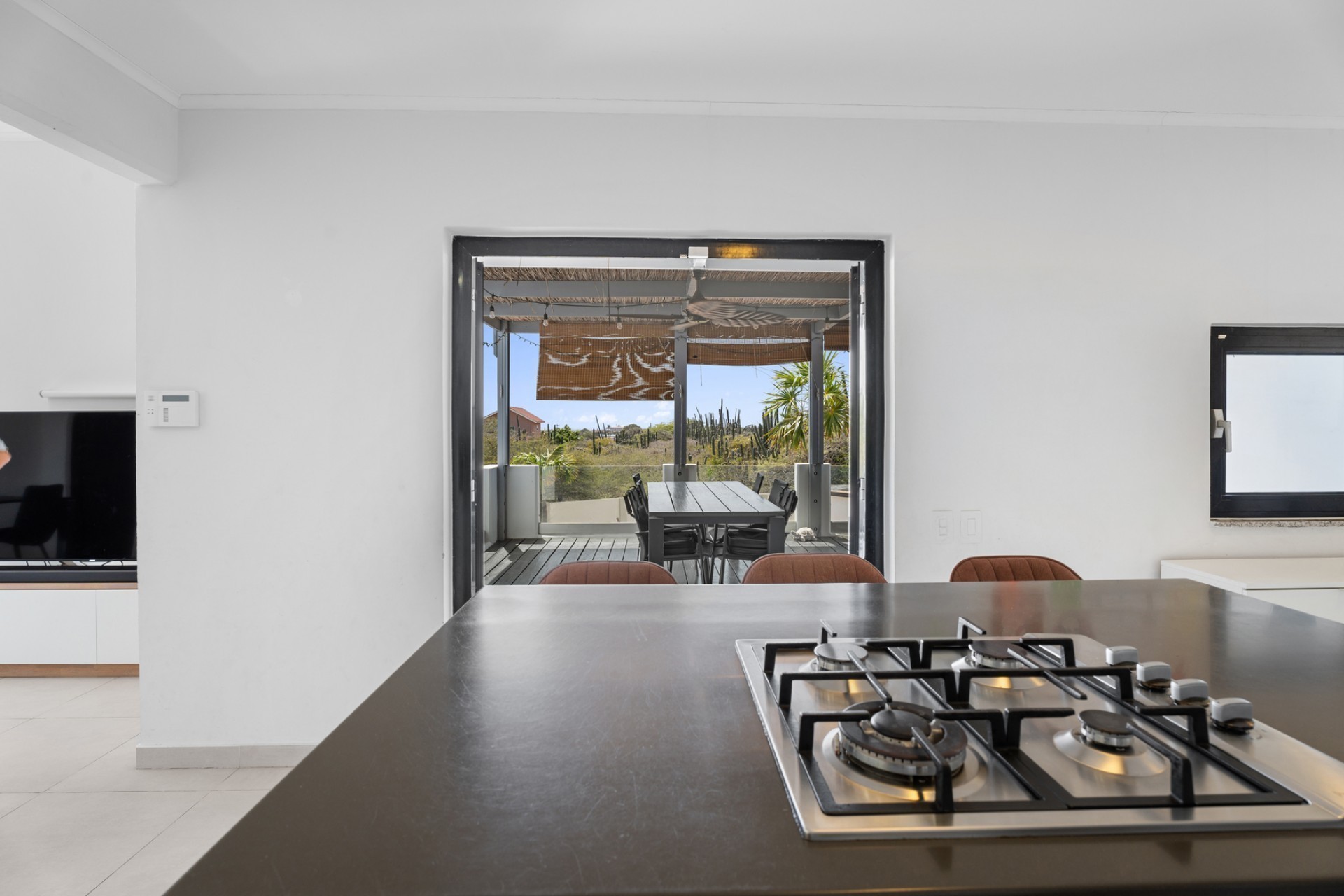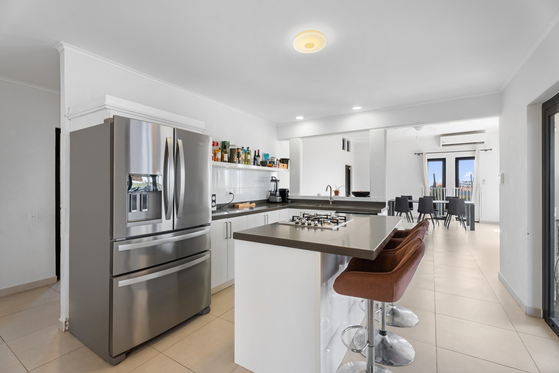 Peaceful Island Living with Panoramic Views – A Spacious Family Home or Investment Opportunity Welcome to Paradera 225, a hidden gem tucked away at the end of a quiet, private cul‑de‑sac. Surrounded by lush tropical greenery and set on 1,254 m² of property land, this unique property delivers the best of both worlds — a serene, private setting that’s only minutes away from schools, supermarkets, restaurants, and main roads. This impressive two‑story residence features 6 bedrooms and 3 bathrooms, making it ideal for a large family or an income‑generating investment. The upper level welcomes you with an expansive, light‑filled living space that flows seamlessly into a modern kitchen with an island. French doors open out to a spacious terrace where 180° panoramic views stretch across the island and out to the Caribbean Sea — a captivating backdrop for everyday living. Upstairs you’ll find 2 bedrooms, 1 bathroom, and a child’s room, creating a comfortable space for family living. The lower level offers 4 additional bedrooms and 2 bathrooms, including two rooms with their own kitchenettes — ideal for guests, extended family, or rental income. The largest downstairs bedroom opens directly to the garden, making it a perfect space for relaxation and privacy. Step outside into a beautifully landscaped garden and spacious backyard centered around a sparkling swimming pool, an ideal setting for relaxation and outdoor living. With a touch of vision and creativity, this property can easily be transformed into something truly special. A stunning family home, a thriving Airbnb, or even a multi-unit investment property. Its space, layout, and location offer endless possibilities. For more information or to schedule your private or online viewing, contact us today! 📞 +297-742-0129 📨