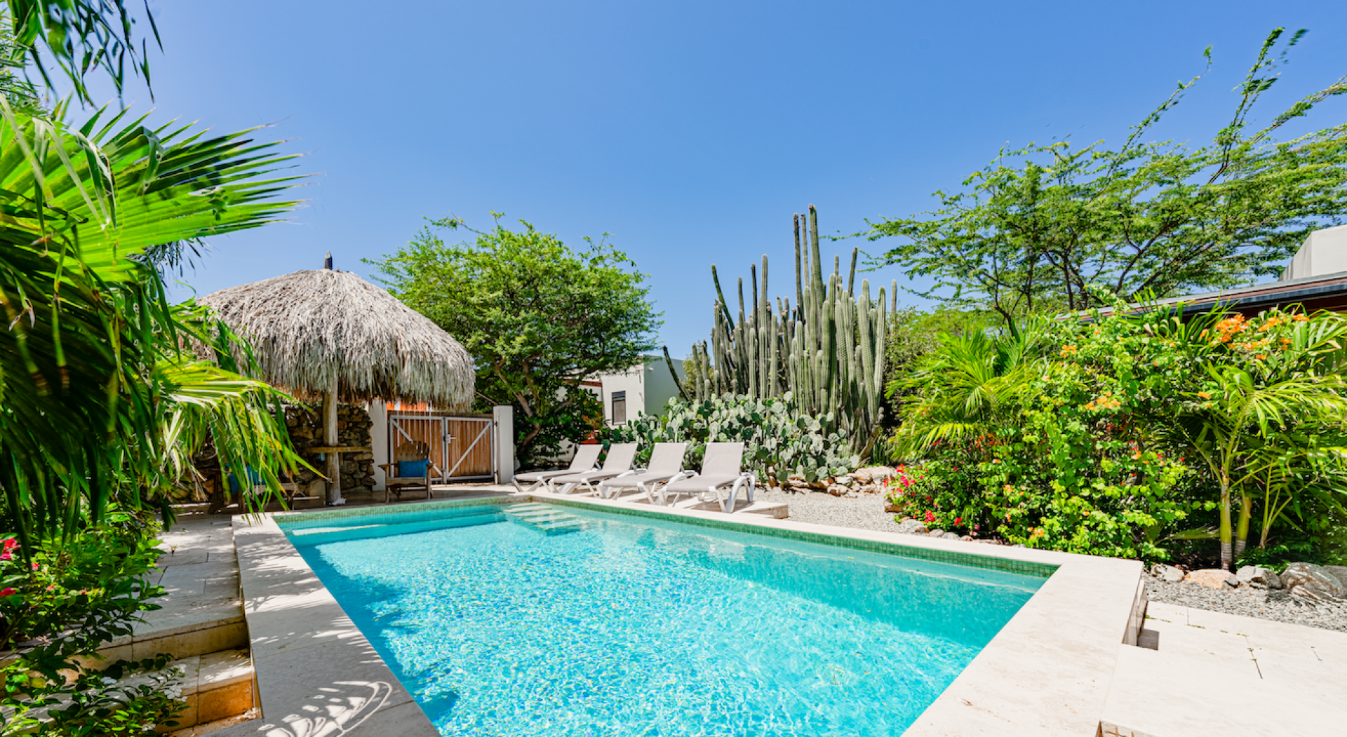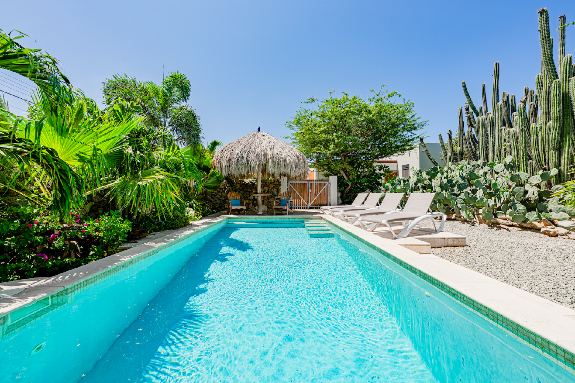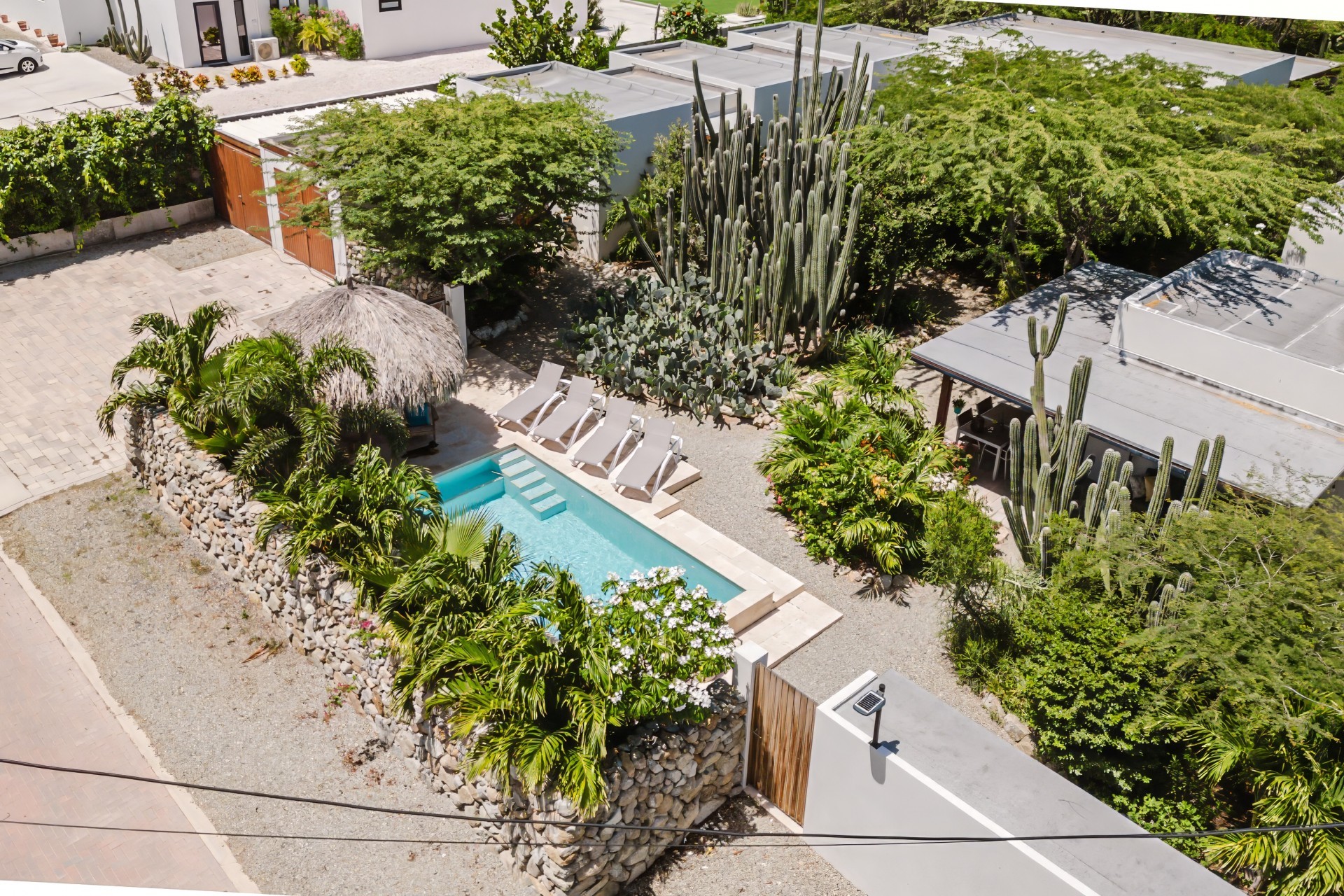 Welcome to Picaron in Santa Cruz A rare opportunity on 1,578 m² of full ownership land, property tucked away at the end of a quiet cul-de-sac in the green surroundings of Santa Cruz Picaron blends serene island living with smart investment potential. Construction & Layout Built in 2019, the main residence combines traditional island charm with modern style. Designed with a spacious L-shaped layout, Picaron is a peaceful area surrounded by Aruba’s natural beauty. The main house offers three bedrooms and two and a half bathrooms, with a total built area of 257.21 m². The design offers a spacious living and dining area, with an open concept kitchen, and laundry room. A large covered patio extends the living space outdoors, creating the perfect setting for dining, lounging, or entertaining guests. Outside, you'll find a private swimming pool with a gazebo, ideal for relaxing afternoons or hosting gatherings. The property also includes a private garage, additional storage, and private parking, offering both convenience and security. the two fully independent apartments, built in 2020. Each unit is fully furnished, featuring two bedrooms, one bathroom, a comfortable living space, and a private patio. Both apartments enjoy direct access to the pool area. These apartments are not only well-designed but also perform excellently on Airbnb, providing a turnkey investment opportunity with strong rental income. Highlight Full ownership land proven Airbnb performance Wooden design accents warm and timeless character Indoor-outdoor flow large doors and natural light throughout Private yet connected ideal for multi-generational living or hosting Potential to build an jacuzzi, a second pool, or apartment The Location Santa Cruz is one of Aruba’s hidden gems offering peace, natural surroundings, and easy access to the island’s main roads, beaches, and hotspots. Enjoy the privacy of nature without sacrificing convenience. Ready to make THE MOVE? schedule a private showing or request more details. 📞 + 297 592 2506 📧