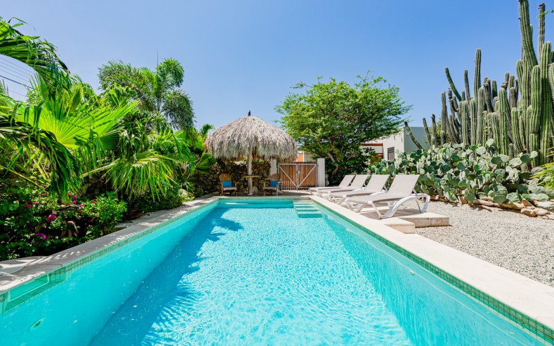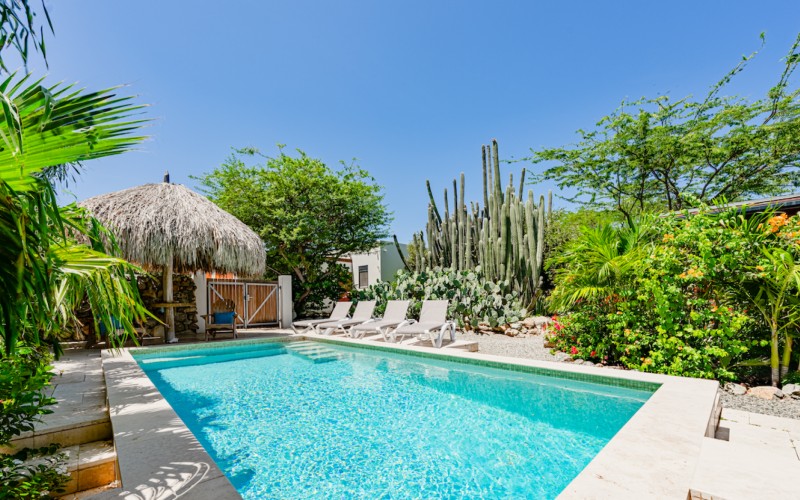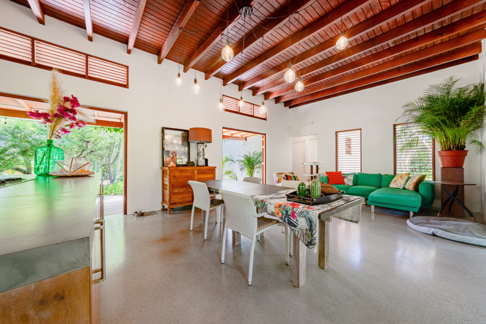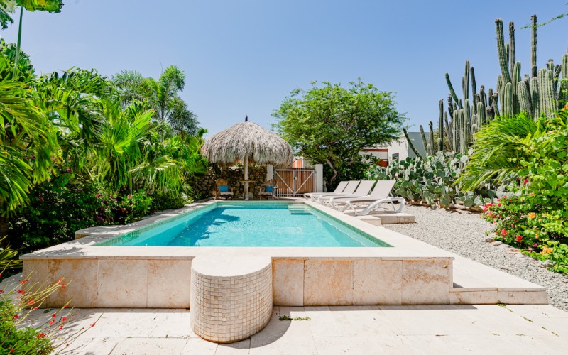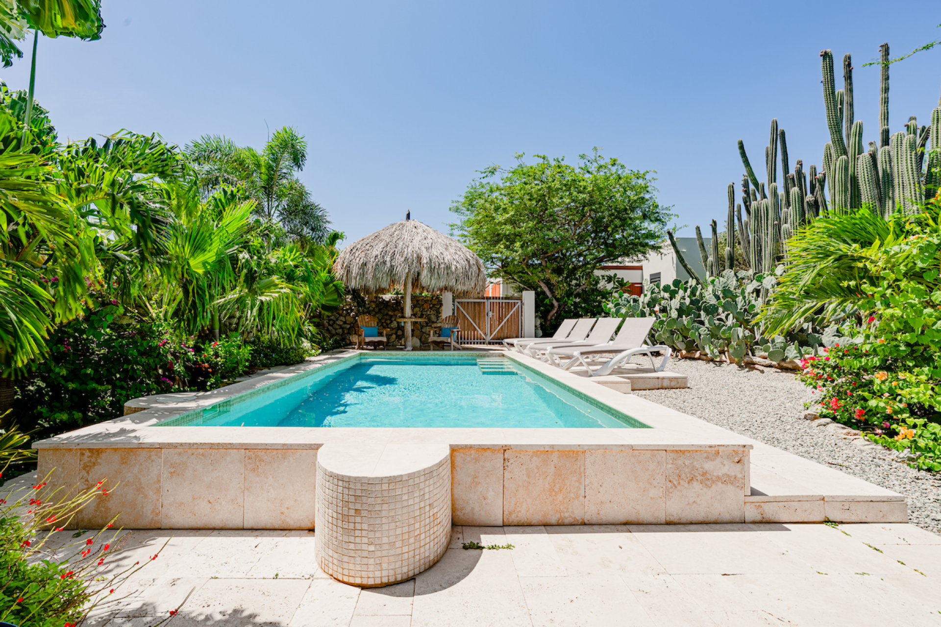 Welcome to Picaron in Santa Cruz A rare opportunity on 1,578 m² of full ownership land, property tucked away at the end of a quiet cul-de-sac in the green surroundings of Santa Cruz Picaron blends serene island living with smart investment potential. Construction & Layout Built in 2019, the main residence combines traditional island charm with modern style. Designed with a spacious L-shaped layout, Picaron is a peaceful area surrounded by Aruba’s natural beauty. The main house offers three bedrooms and two and a half bathrooms, with a total built area of 257.21 m². The design offers a spacious living and dining area, with an open concept kitchen, and laundry room. A large covered patio extends the living space outdoors, creating the perfect setting for dining, lounging, or entertaining guests. Outside, you'll find a private swimming pool with a gazebo, ideal for relaxing afternoons or hosting gatherings. The property also includes a private garage, additional storage, and private parking, offering both convenience and security. the two fully independent apartments, built in 2020. Each unit is fully furnished, featuring two bedrooms, one bathroom, a comfortable living space, and a private patio. Both apartments enjoy direct access to the pool area. These apartments are not only well-designed but also perform excellently on Airbnb, providing a turnkey investment opportunity with strong rental income. Highlight Full ownership land proven Airbnb performance Wooden design accents warm and timeless character Indoor-outdoor flow large doors and natural light throughout Private yet connected ideal for multi-generational living or hosting Potential to build an jacuzzi, a second pool, or apartment The Location Santa Cruz is one of Aruba’s hidden gems offering peace, natural surroundings, and easy access to the island’s main roads, beaches, and hotspots. Enjoy the privacy of nature without sacrificing convenience. Ready to make THE MOVE? schedule a private showing or request more details. 📞 + 297 592 2506 📧