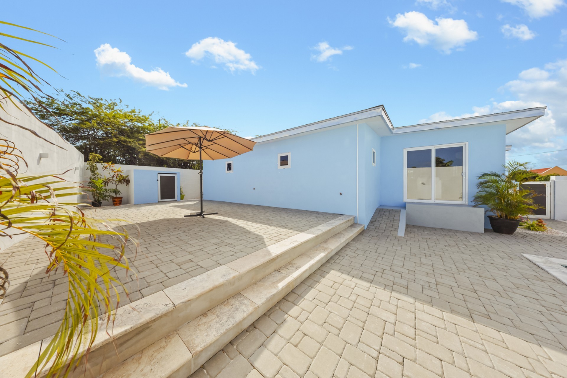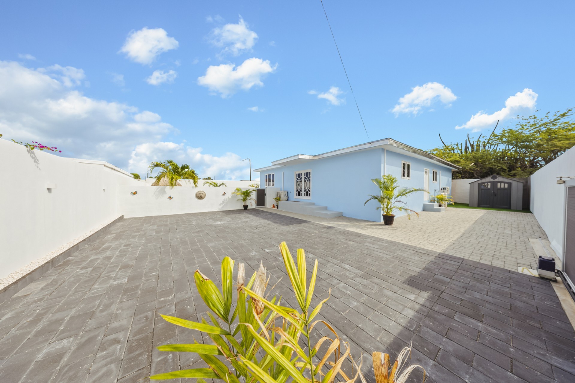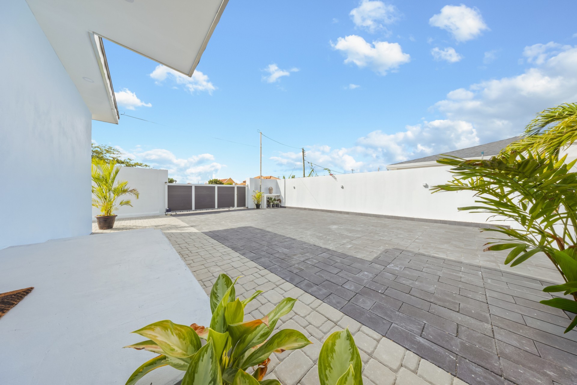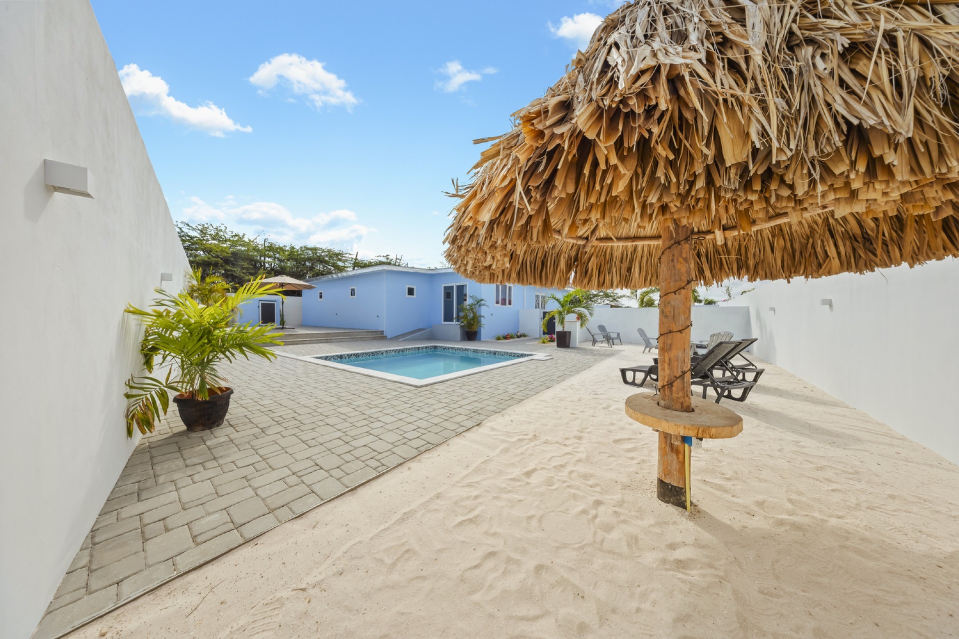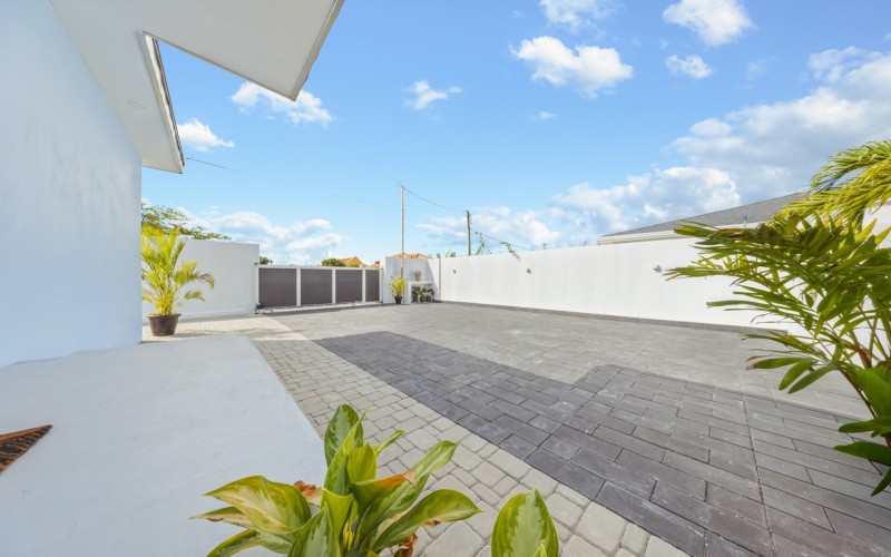 Tropical Luxury in Noord – Fully Renovated 4-Bedroom Villa Near Eagle Beach Tucked away in a quiet cul-de-sac in Noord, just 1 mile from Eagle Beach, this completely renovated villa delivers the perfect blend of privacy, modern comfort, and island lifestyle. Sitting on 607 m² of full-ownership land, fully gated and move-in ready, this home is designed to impress from the moment you arrive. A generous private driveway leads you into your own oasis. Step into a beautifully landscaped tropical garden featuring your private beach-style lounge with palapa, a cozy fire pit for evenings under the stars, and multiple relaxation areas—all centered around a sparkling pool. The expansive backyard still offers ample space to bring your own vision to life, whether that’s a pergola with dining for large gatherings or a custom outdoor lounge designed for effortless entertaining. Inside feels like a brand-new home. The open-concept layout centers around a sleek kitchen with a large island, abundant storage, and modern appliances, flowing seamlessly into a bright living area with sliding doors to the garden—creating effortless indoor-outdoor living. All four bedrooms have their own en-suite bathrooms, finished in a clean, contemporary style. Two featuring soaking tubs and walk-in showers, and two with spacious walk-in showers. A dedicated laundry room with washer and dryer adds everyday convenience, while a beautifully finished half bathroom completes the home’s thoughtful layout. Whether you’re searching for a luxury vacation home or a high-potential investment, this turnkey villa checks every box. All brand new, fully renovated, and minutes from Aruba’s most famous beach. Homes like this don’t stay on the market long. Contact us today for more info, or to schedule your private viewing. 📞 +297 742 0129 📨