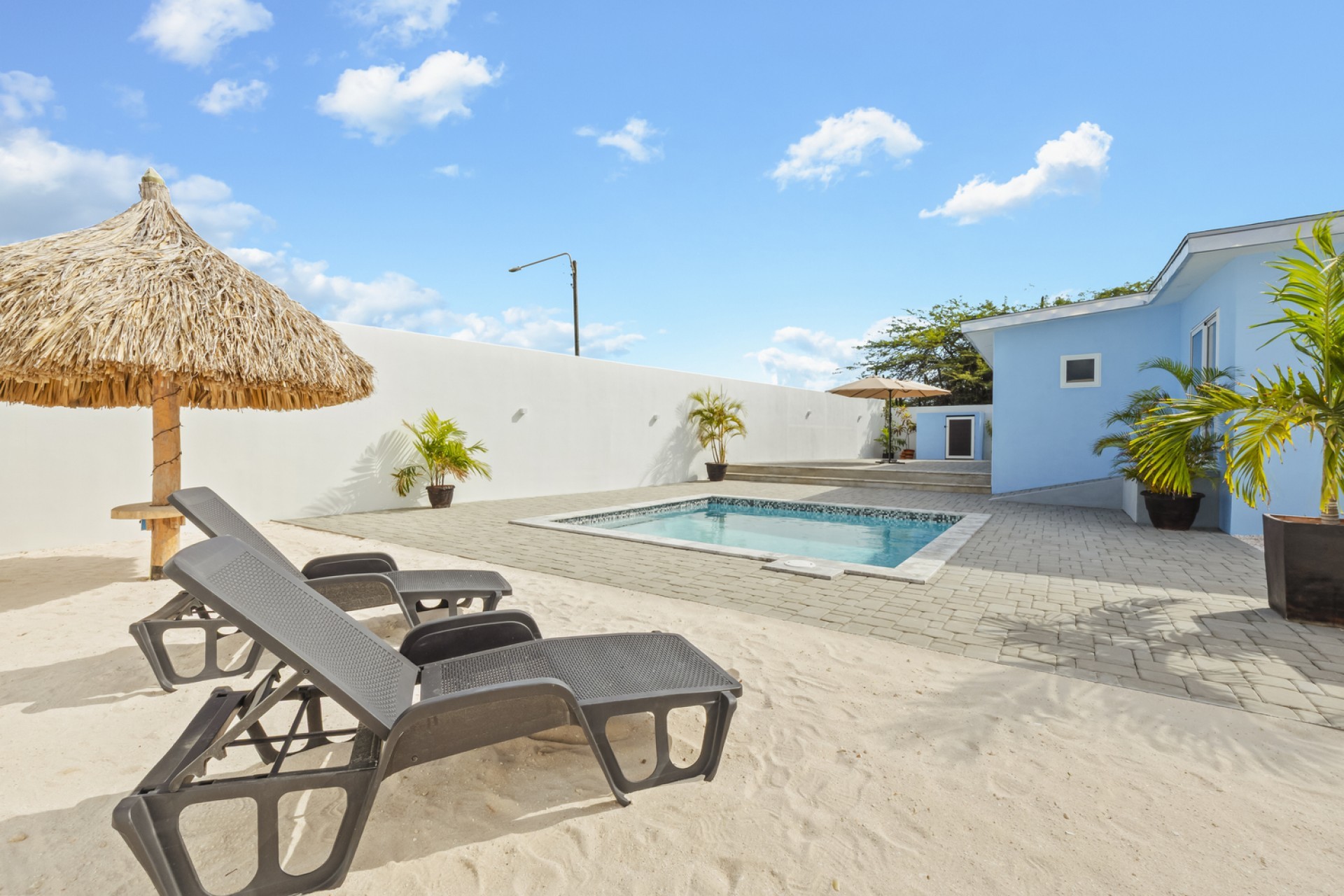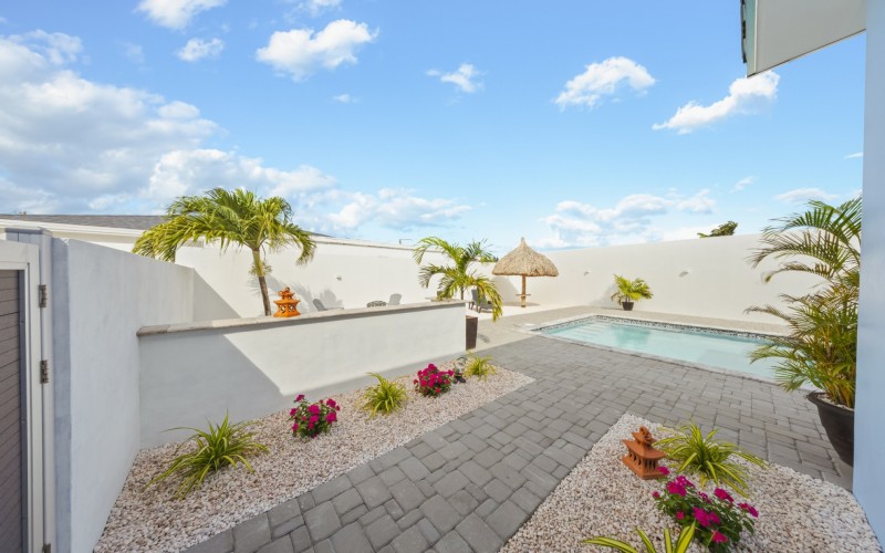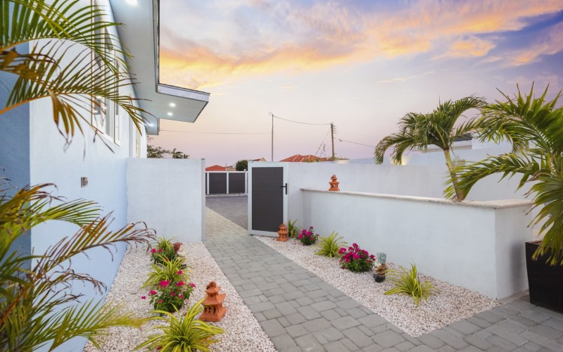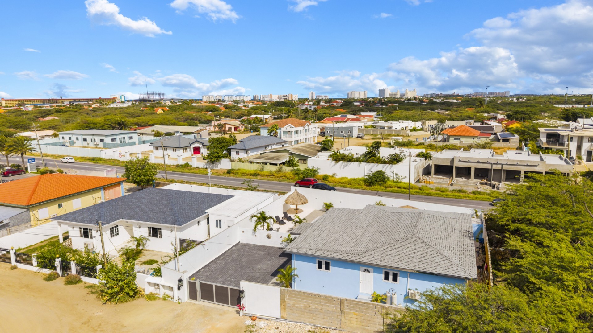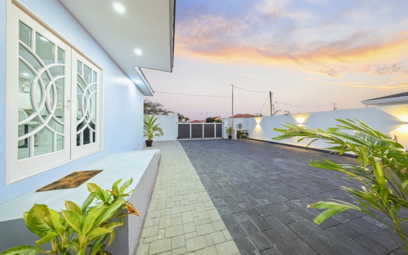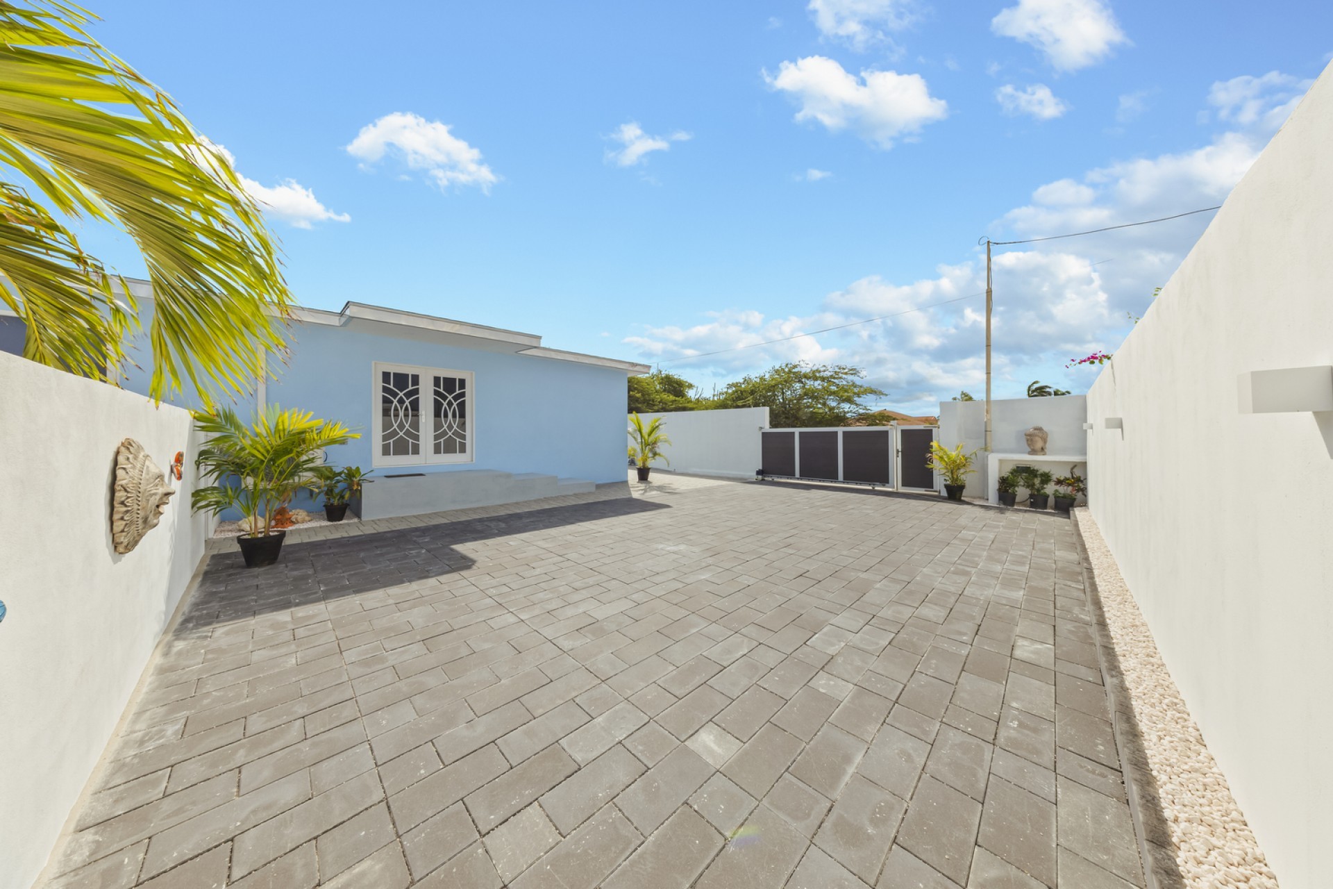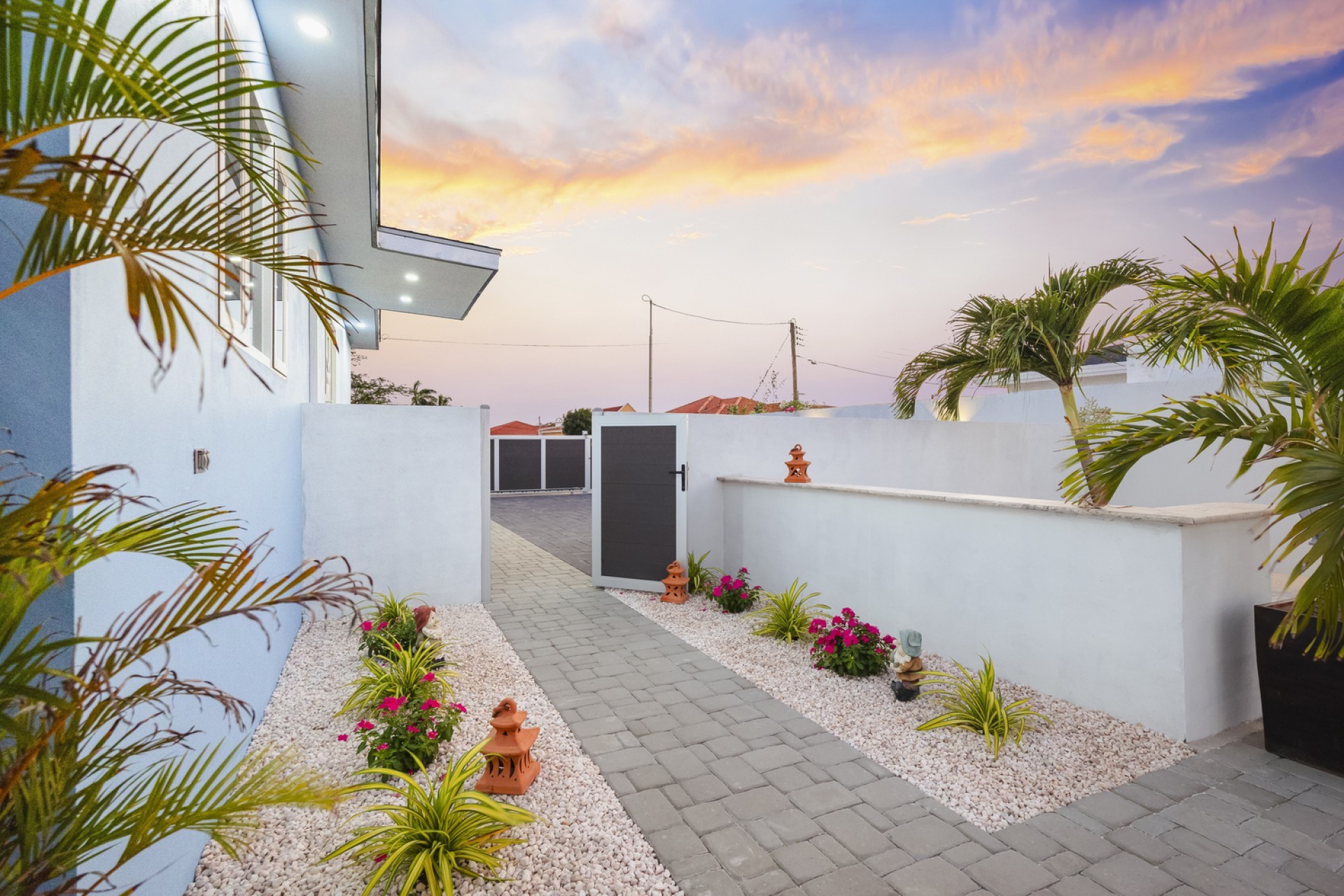 Tropical Luxury in Noord – Fully Renovated 4-Bedroom Villa Near Eagle Beach Tucked away in a quiet cul-de-sac in Noord, just 1 mile from Eagle Beach, this completely renovated villa delivers the perfect blend of privacy, modern comfort, and island lifestyle. Sitting on 607 m² of full-ownership land, fully gated and move-in ready, this home is designed to impress from the moment you arrive. A generous private driveway leads you into your own oasis. Step into a beautifully landscaped tropical garden featuring your private beach-style lounge with palapa, a cozy fire pit for evenings under the stars, and multiple relaxation areas—all centered around a sparkling pool. The expansive backyard still offers ample space to bring your own vision to life, whether that’s a pergola with dining for large gatherings or a custom outdoor lounge designed for effortless entertaining. Inside feels like a brand-new home. The open-concept layout centers around a sleek kitchen with a large island, abundant storage, and modern appliances, flowing seamlessly into a bright living area with sliding doors to the garden—creating effortless indoor-outdoor living. All four bedrooms have their own en-suite bathrooms, finished in a clean, contemporary style. Two featuring soaking tubs and walk-in showers, and two with spacious walk-in showers. A dedicated laundry room with washer and dryer adds everyday convenience, while a beautifully finished half bathroom completes the home’s thoughtful layout. Whether you’re searching for a luxury vacation home or a high-potential investment, this turnkey villa checks every box. All brand new, fully renovated, and minutes from Aruba’s most famous beach. Homes like this don’t stay on the market long. Contact us today for more info, or to schedule your private viewing. 📞 +297 742 0129 📨