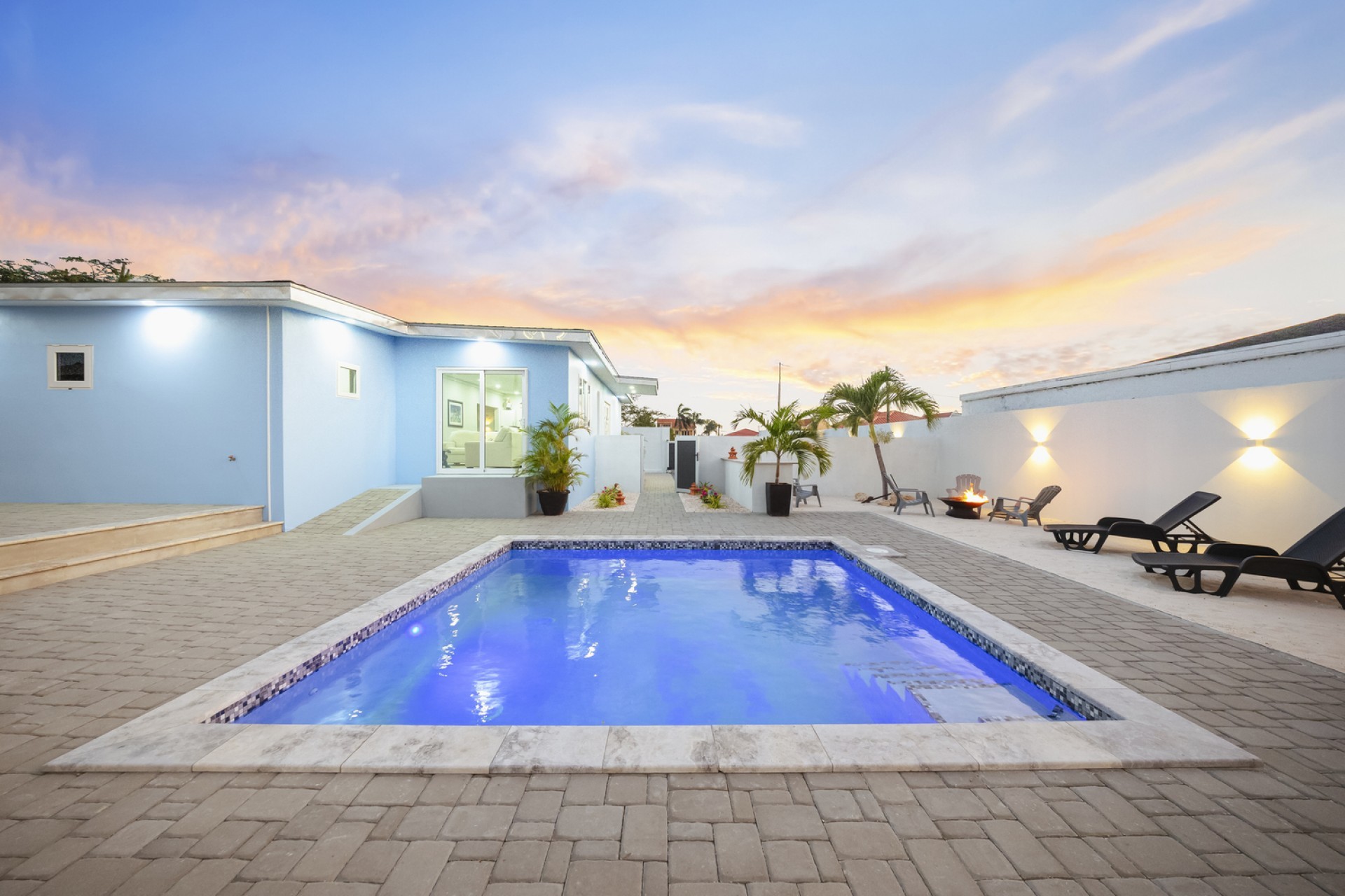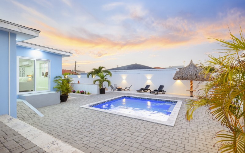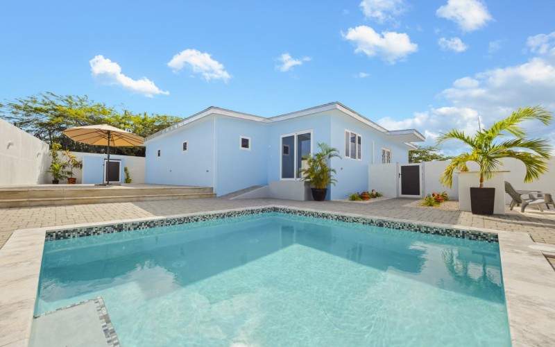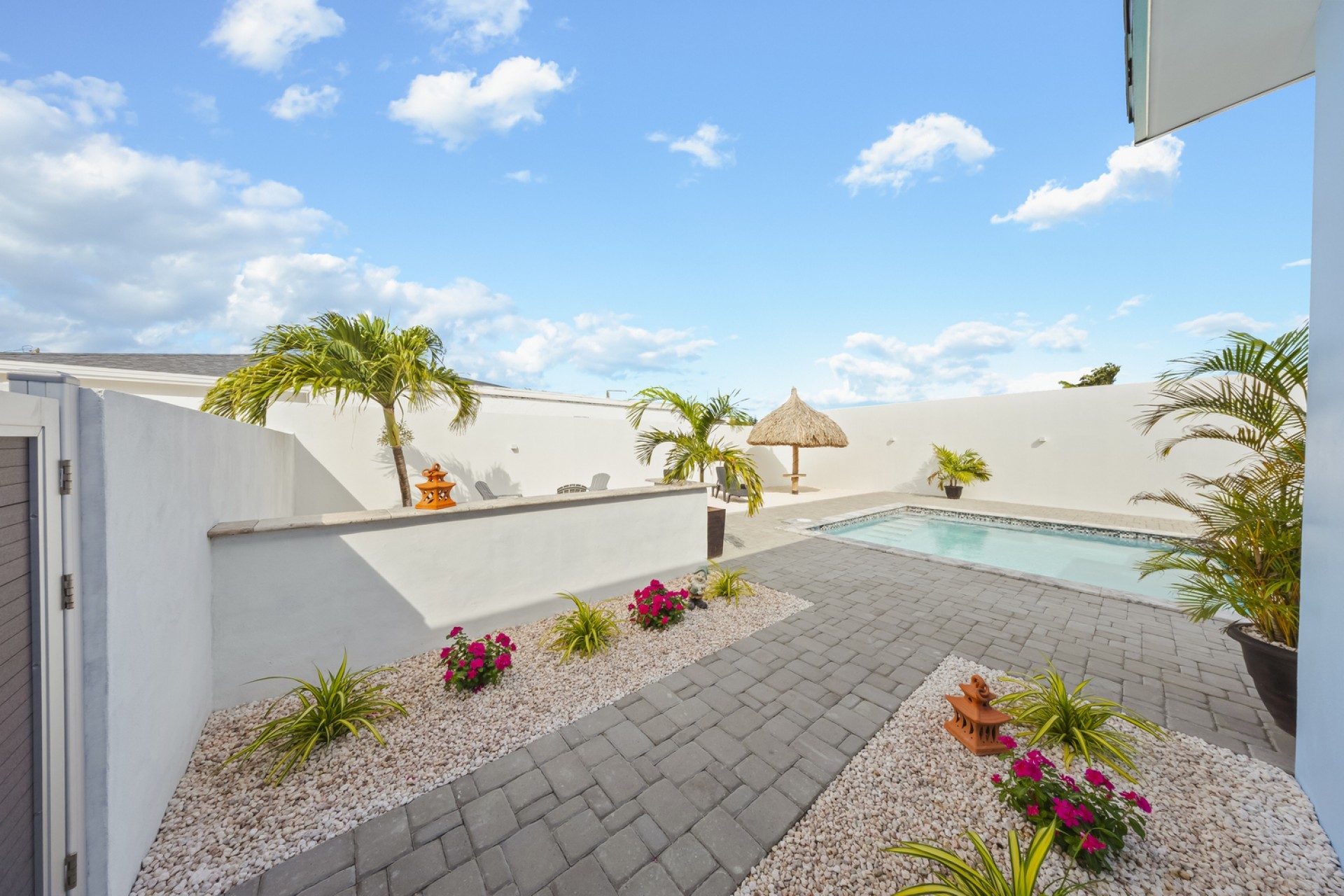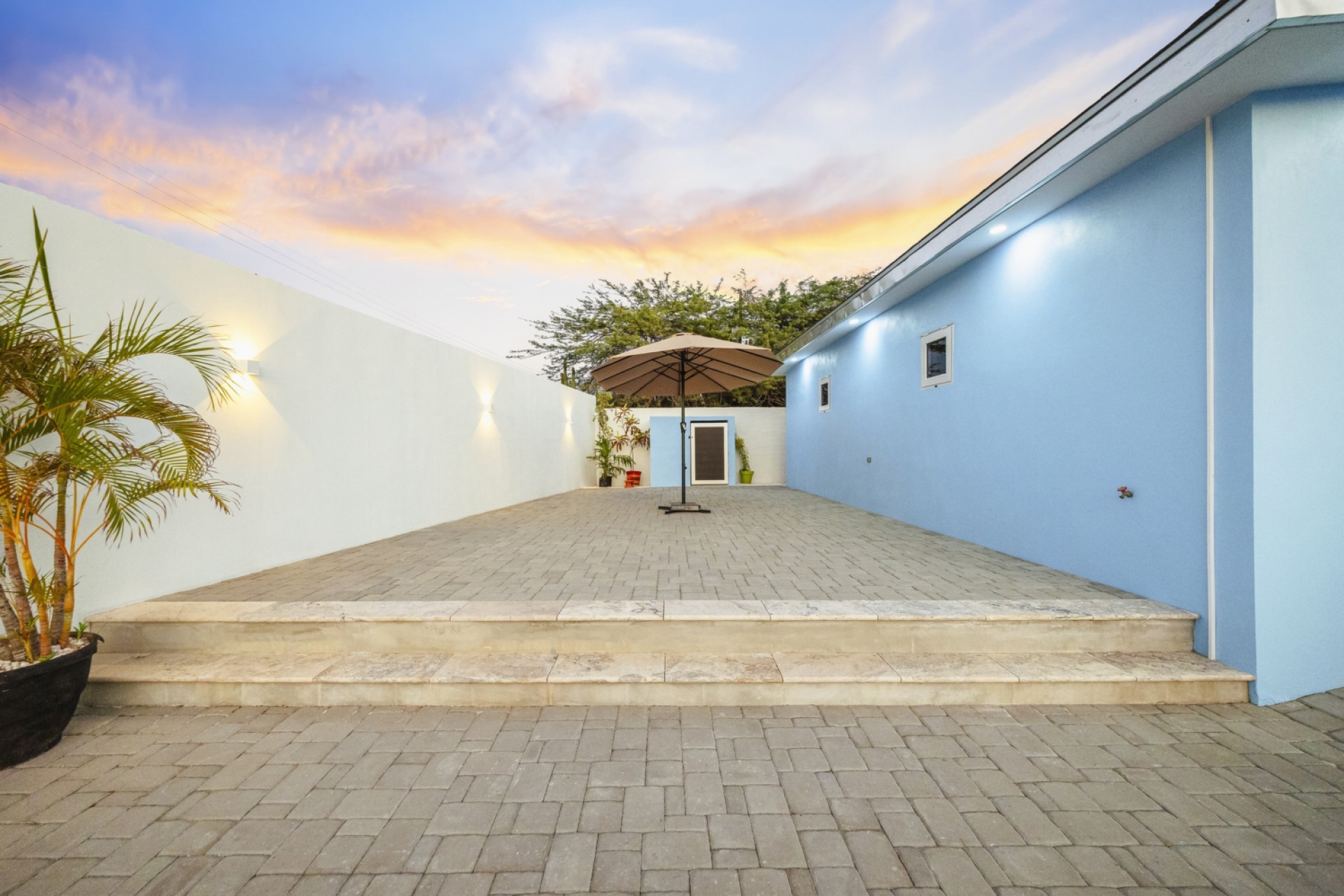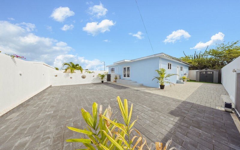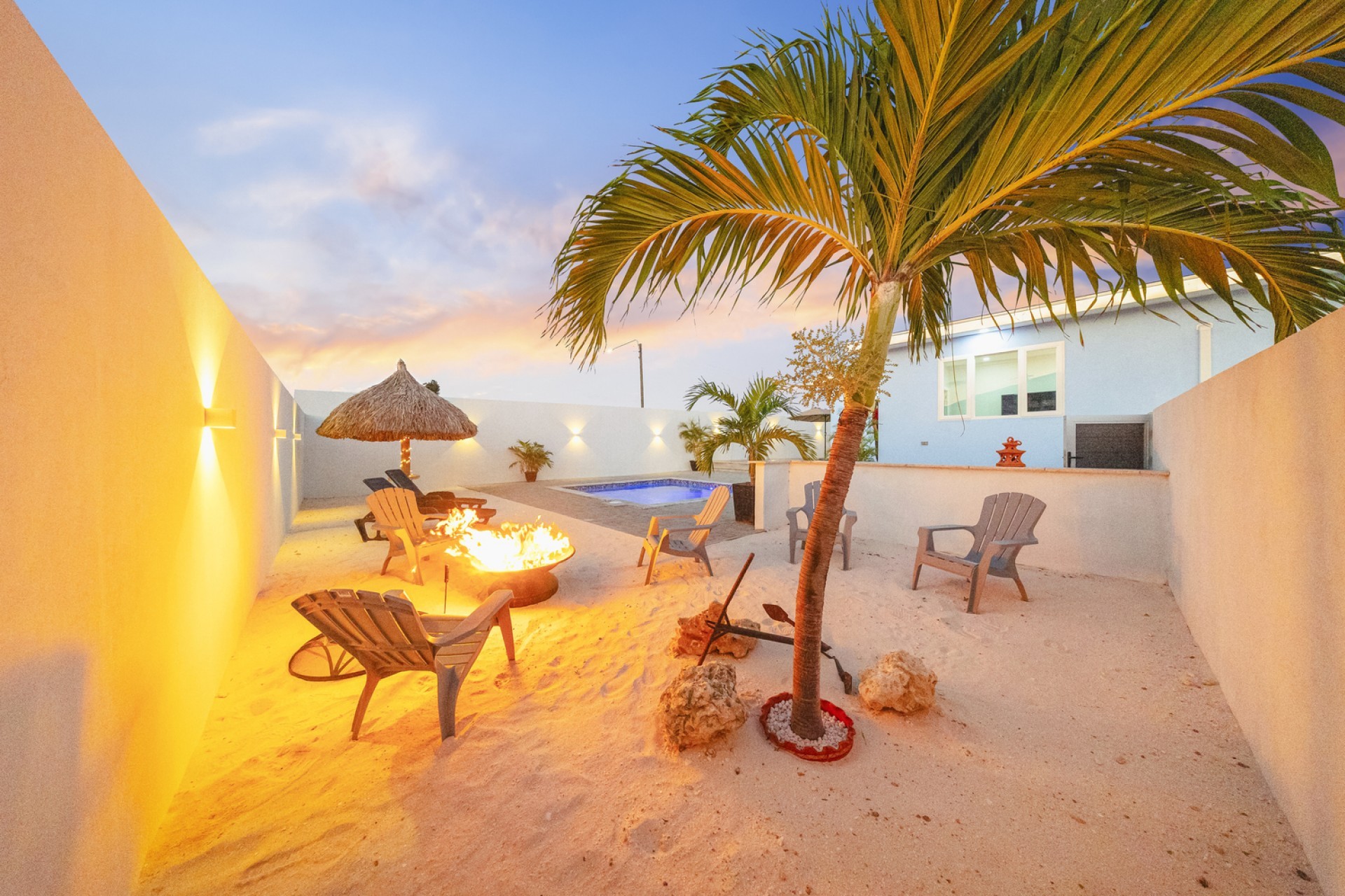 Tropical Luxury in Noord – Fully Renovated 4-Bedroom Villa Near Eagle Beach Tucked away in a quiet cul-de-sac in Noord, just 1 mile from Eagle Beach, this completely renovated villa delivers the perfect blend of privacy, modern comfort, and island lifestyle. Sitting on 607 m² of full-ownership land, fully gated and move-in ready, this home is designed to impress from the moment you arrive. A generous private driveway leads you into your own oasis. Step into a beautifully landscaped tropical garden featuring your private beach-style lounge with palapa, a cozy fire pit for evenings under the stars, and multiple relaxation areas—all centered around a sparkling pool. The expansive backyard still offers ample space to bring your own vision to life, whether that’s a pergola with dining for large gatherings or a custom outdoor lounge designed for effortless entertaining. Inside feels like a brand-new home. The open-concept layout centers around a sleek kitchen with a large island, abundant storage, and modern appliances, flowing seamlessly into a bright living area with sliding doors to the garden—creating effortless indoor-outdoor living. All four bedrooms have their own en-suite bathrooms, finished in a clean, contemporary style. Two featuring soaking tubs and walk-in showers, and two with spacious walk-in showers. A dedicated laundry room with washer and dryer adds everyday convenience, while a beautifully finished half bathroom completes the home’s thoughtful layout. Whether you’re searching for a luxury vacation home or a high-potential investment, this turnkey villa checks every box. All brand new, fully renovated, and minutes from Aruba’s most famous beach. Homes like this don’t stay on the market long. Contact us today for more info, or to schedule your private viewing. 📞 +297 742 0129 📨