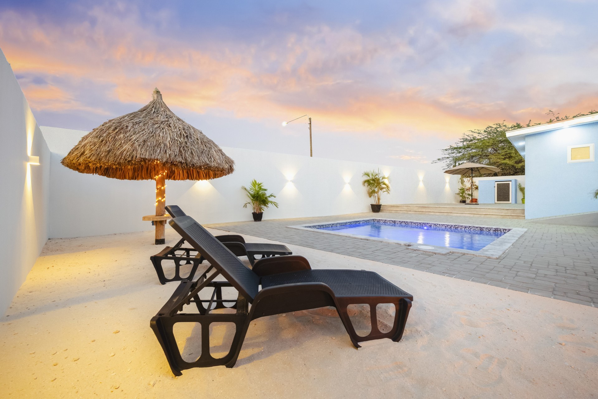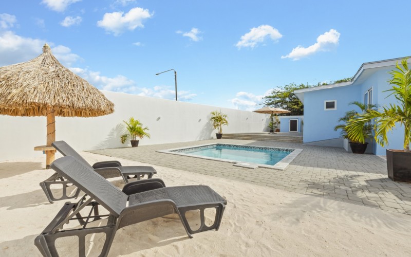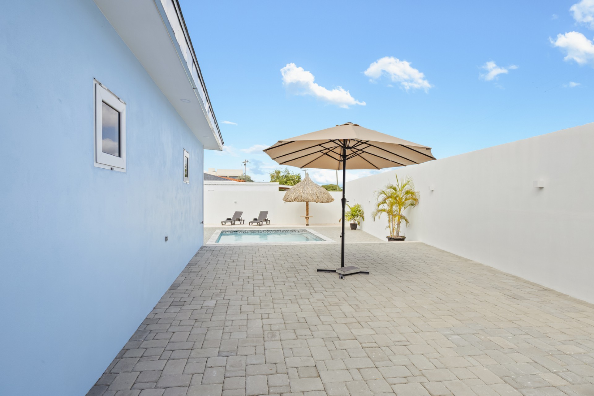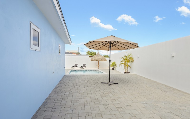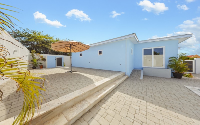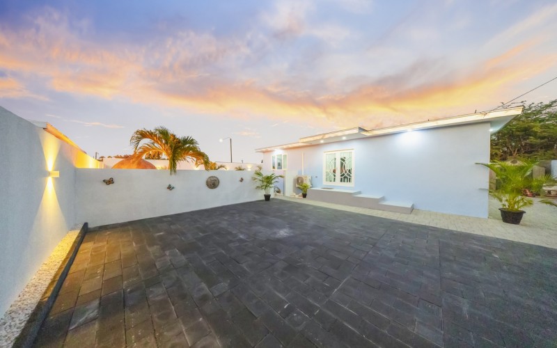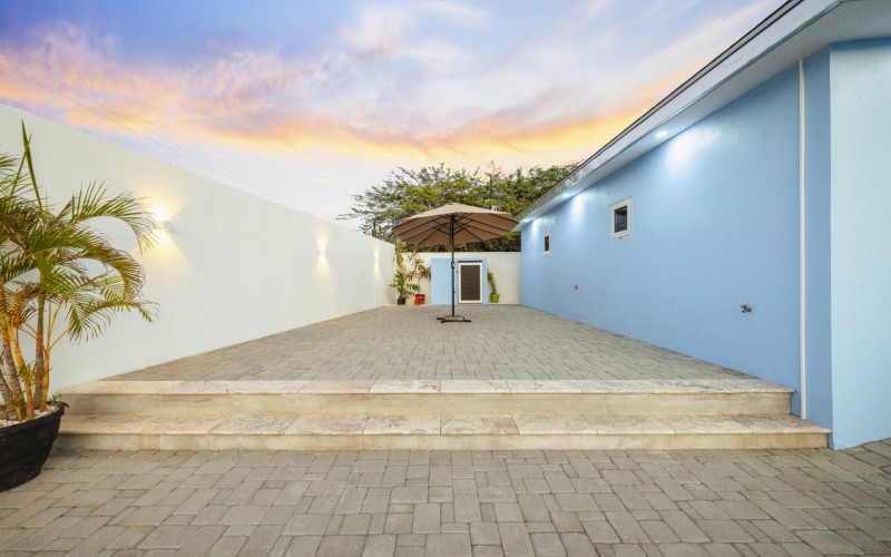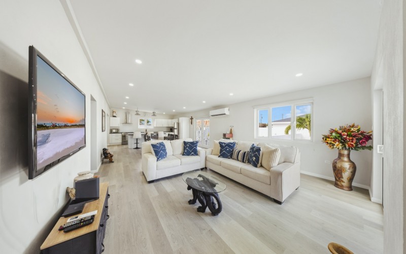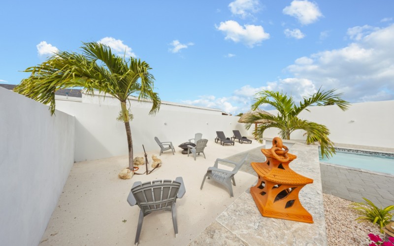 Tropical Luxury in Noord – Fully Renovated 4-Bedroom Villa Near Eagle Beach Tucked away in a quiet cul-de-sac in Noord, just 1 mile from Eagle Beach, this completely renovated villa delivers the perfect blend of privacy, modern comfort, and island lifestyle. Sitting on 607 m² of full-ownership land, fully gated and move-in ready, this home is designed to impress from the moment you arrive. A generous private driveway leads you into your own oasis. Step into a beautifully landscaped tropical garden featuring your private beach-style lounge with palapa, a cozy fire pit for evenings under the stars, and multiple relaxation areas—all centered around a sparkling pool. The expansive backyard still offers ample space to bring your own vision to life, whether that’s a pergola with dining for large gatherings or a custom outdoor lounge designed for effortless entertaining. Inside feels like a brand-new home. The open-concept layout centers around a sleek kitchen with a large island, abundant storage, and modern appliances, flowing seamlessly into a bright living area with sliding doors to the garden—creating effortless indoor-outdoor living. All four bedrooms have their own en-suite bathrooms, finished in a clean, contemporary style. Two featuring soaking tubs and walk-in showers, and two with spacious walk-in showers. A dedicated laundry room with washer and dryer adds everyday convenience, while a beautifully finished half bathroom completes the home’s thoughtful layout. Whether you’re searching for a luxury vacation home or a high-potential investment, this turnkey villa checks every box. All brand new, fully renovated, and minutes from Aruba’s most famous beach. Homes like this don’t stay on the market long. Contact us today for more info, or to schedule your private viewing. 📞 +297 742 0129 📨