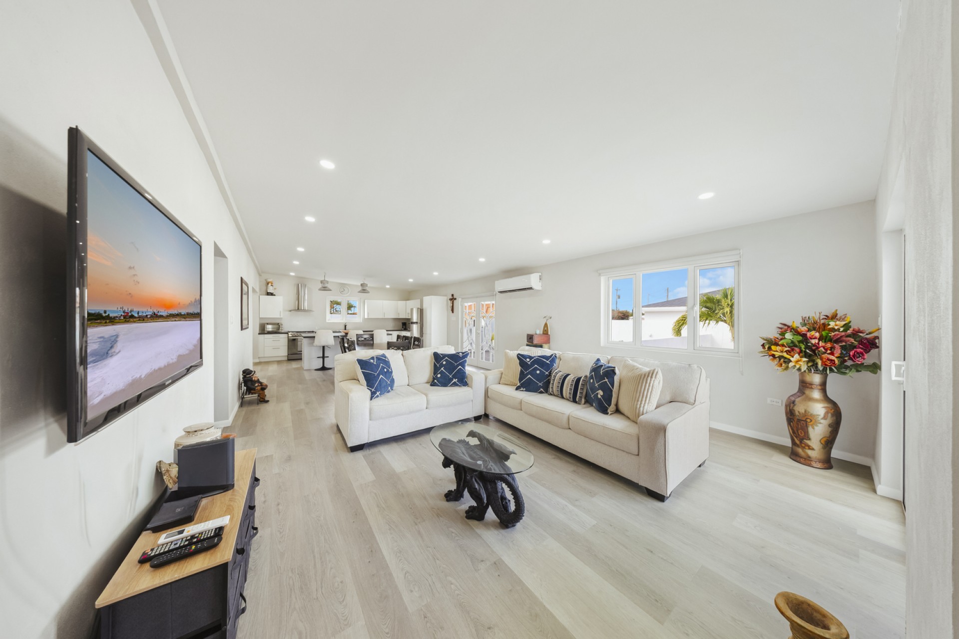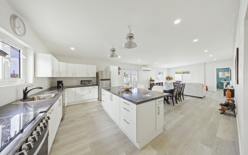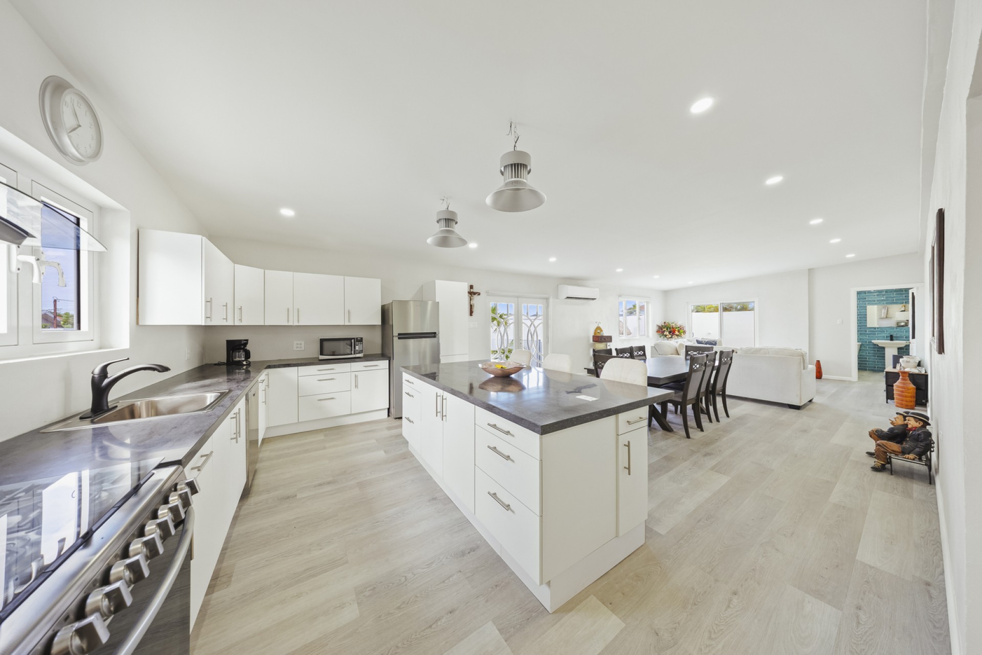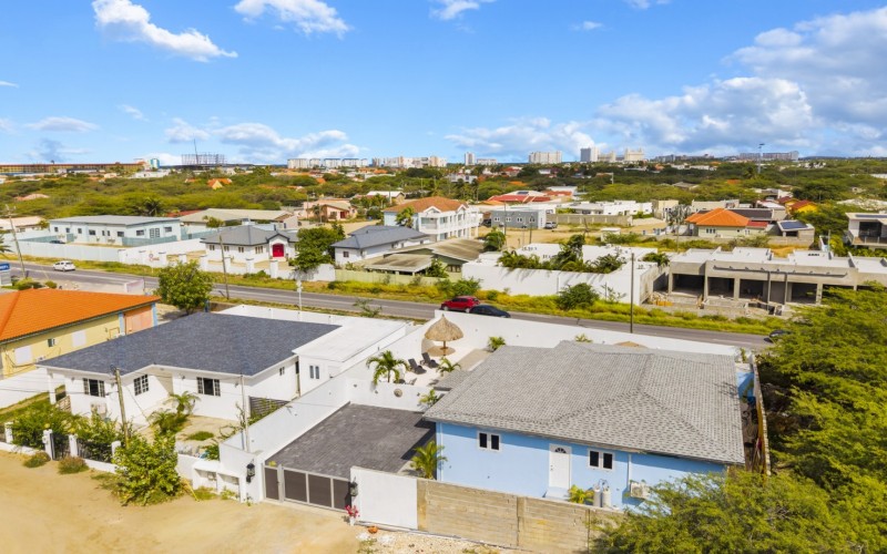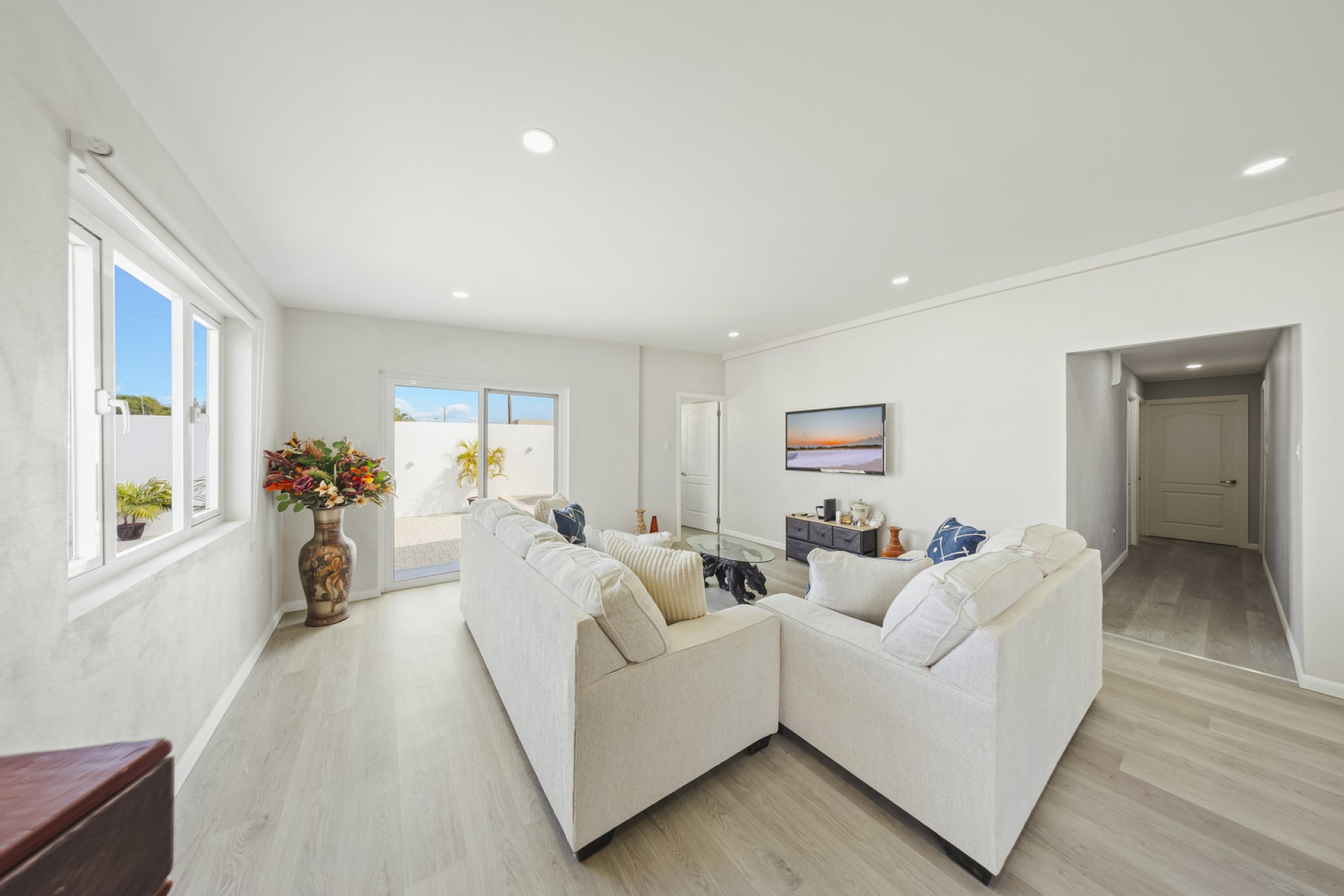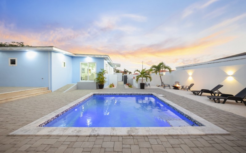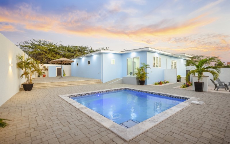 Tropical Luxury in Noord – Fully Renovated 4-Bedroom Villa Near Eagle Beach Tucked away in a quiet cul-de-sac in Noord, just 1 mile from Eagle Beach, this completely renovated villa delivers the perfect blend of privacy, modern comfort, and island lifestyle. Sitting on 607 m² of full-ownership land, fully gated and move-in ready, this home is designed to impress from the moment you arrive. A generous private driveway leads you into your own oasis. Step into a beautifully landscaped tropical garden featuring your private beach-style lounge with palapa, a cozy fire pit for evenings under the stars, and multiple relaxation areas—all centered around a sparkling pool. The expansive backyard still offers ample space to bring your own vision to life, whether that’s a pergola with dining for large gatherings or a custom outdoor lounge designed for effortless entertaining. Inside feels like a brand-new home. The open-concept layout centers around a sleek kitchen with a large island, abundant storage, and modern appliances, flowing seamlessly into a bright living area with sliding doors to the garden—creating effortless indoor-outdoor living. All four bedrooms have their own en-suite bathrooms, finished in a clean, contemporary style. Two featuring soaking tubs and walk-in showers, and two with spacious walk-in showers. A dedicated laundry room with washer and dryer adds everyday convenience, while a beautifully finished half bathroom completes the home’s thoughtful layout. Whether you’re searching for a luxury vacation home or a high-potential investment, this turnkey villa checks every box. All brand new, fully renovated, and minutes from Aruba’s most famous beach. Homes like this don’t stay on the market long. Contact us today for more info, or to schedule your private viewing. 📞 +297 742 0129 📨