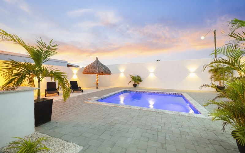 [email protected] 607 m² Full Ownership Land 4 Bedrooms & 4.5 Bathrooms (all en-suite) Open-Concept Living with Modern Kitchen & Island Sparkling Pool + Private Beach Area with Palapa & Fire Pit Quiet Cul-de-Sac Location in Noord Only 1 Mile from Eagle Beach