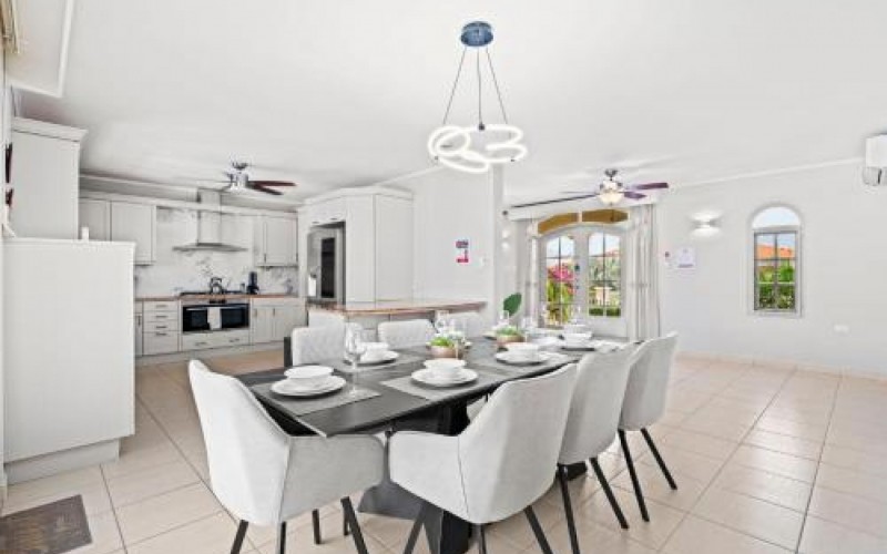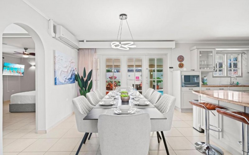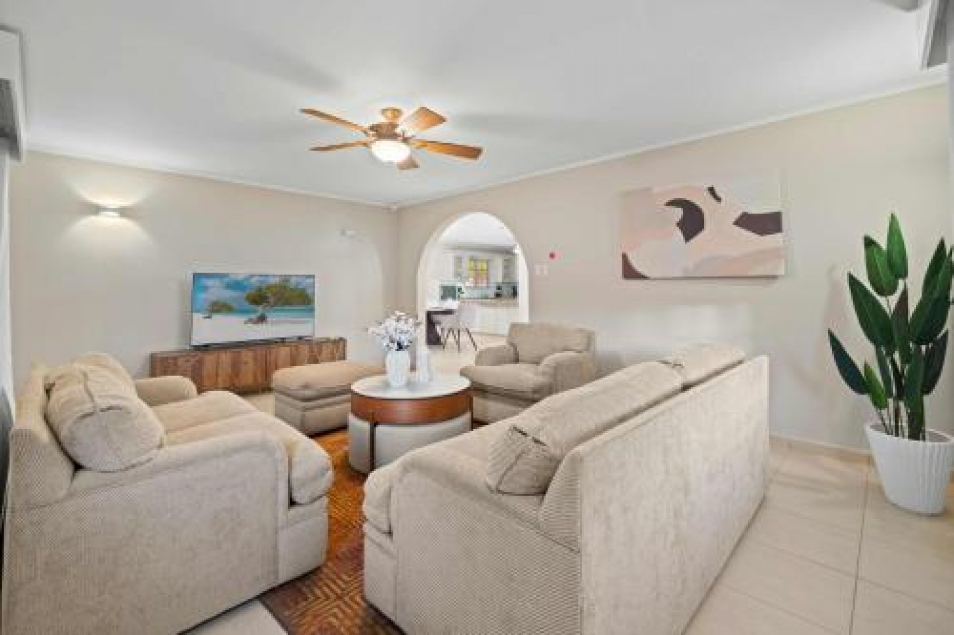 Villa Rooi Kochi – Elegant Island Living Experience the beauty of Aruba from Villa Rooi Kochi, a stunning and newly renovated rental villa located in the exclusive, peaceful neighborhood of Rooi Kochi in Savaneta. Surrounded by lush tropical landscaping and featuring a private pool, this elegant property is the perfect choice for those seeking a luxurious and serene island lifestyle. This spacious villa offers 4 bedrooms and 3.5 bathrooms, ideal for families, couples, or professionals who want comfort and style. The open-concept floorplan boasts a bright living area, dining space, and a fully equipped kitchen—perfect for hosting guests or enjoying cozy nights at home. Additional features include a veranda, corridor, and walk-in closet for extra convenience. Step into your private tropical paradise: enjoy the landscaped backyard with its private pool, gazebo, pergola, and outdoor barbecue area. It is perfect for sunny afternoons and entertaining. This villa comes fully furnished and move-in ready. Simply bring your suitcase and start enjoying island life right away! Located just 5 minutes from Mangel Halto and Santo Largo beaches, known for their crystal-clear waters and world-class snorkeling, and close to Aruba’s iconic dining spots like Zeerovers and Flying Fishbone. Oranjestad’s top restaurants, shops, and nightlife are only 15 minutes away. Rental Highlights: ✅ Main dweling: 3 Bedrooms | 2.5 Bathrooms ✅ Open Floorplan: Living, Dining & Kitchen ✅ One Bedroom Apartment ✅ Private Pool with Gazebo & Pergola ✅ Outdoor BBQ ✅ Fully Furnished & Move-in Ready ✅ Garages, Pumphouse & Ample Storage ✅ Built on 1008 m² of Property Land ✅ Located in Upscale & Safe Rooi Kochi Neighborhood Available per: 1 April Stay: 3 to 12 Months Monthly Rent: USD 3,500 / AWG 6,230 Excludes: All utilities and pool services Whether you're looking for a long-term rental or a luxurious temporary escape, Villa Rooi Kochi offers the ultimate island experience.