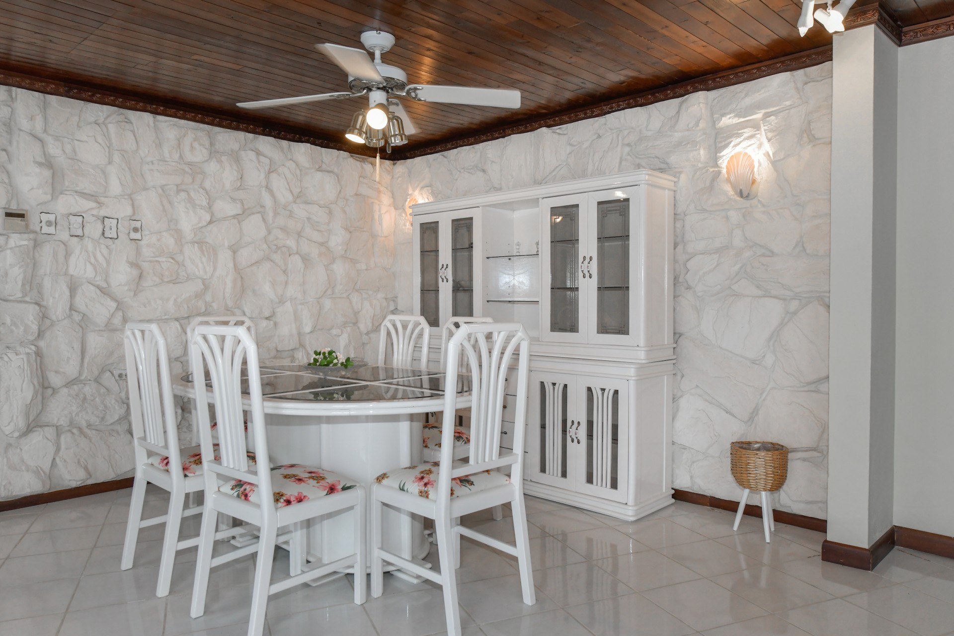 Rooi Koochi 3A Rooi Koochi is a neighborhood in Aruba, and its unique features are its location in the tranquil, natural area of Savaneta and its distinctive residential architecture, which often features classical or modern Aruban "Cunucu" house styles. The area is known for its peaceful surroundings, green nature, rolling hills, and proximity to the coast and local cultural sites like the Lourdes Grotto Property Highlights: 🟥 Lease Land that consist of 818m2 🟥 Build up consist of 411m2 🟥 Bedrooms: 4 very spacious bedrooms ideal for family living 🟥 Bathrooms: 2 well-appointed bathrooms and a bathroom featured in the additional outside space 🟥 Equipped kitchen 🟥 Partial ocean view 🟥 Backyard oasis with a large covered tiki gazebo and expansive yard with tropical gardening 🟥 Additionally there is a 80m2 space in the back (was used as a personal beauty salon), detached from the main house, that can potentially be used as an extra 1-2 bedroom apartment Construction layout: 🟥 4 bedrooms 🟥 2 bathrooms 🟥 Living room and dining room 🟥 Full equipped kitchen and additional bar countertop; flows seamlessly into the spacious dining and living rooms 🟥 Allot of natural light and windows that frame the surrounding view 🟥 Pantry space and storage 🟥 Spacious utility room with washer, dryer and additional storage 🟥 Family room with small balcony in front 🟥 Split unit air conditioning systems throughout the house 🟥 Concrete car port with electric gate 🟥 Landscaped and hardscape throughout the entire property 🟥 TIki gazebo 16m2 🟥 Covered outdoor patio 59m2 🟥 Fenced all around the house 🟥 Gable roof design with asphalt shingles 🟥 Located on public paved road with water and electricity connections. Sewage water via septic tank Unique Features: 🟥 Custom wood windows and doors 🟥 In the dining space; Interior decorated stone walls 🟥 The property is situated high on a hillside with partial ocean view 🟥 The back additional space can be used as a potential apartment, generating passive income long term Don't miss the opportunity to make this wonderful property your own. Contact us to arrange a viewing and experience the beauty of Rooi Koochi in person. Cado de Lannoy +297 5941420 or [email protected]