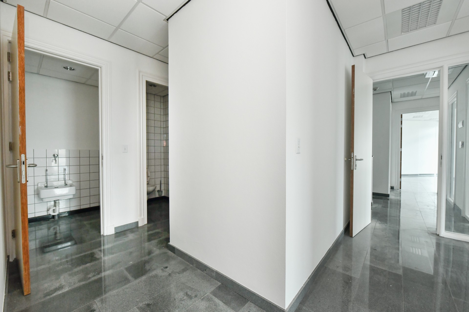 For Rent: Prime Office Space at Rumbastraat Office Park Available for rent: A 150m² office located on the first floor of a prestigious building within the Rumbastraat Office Park. This well-designed space is efficiently laid out with five smaller offices, offering room for at least six workstations and/or a separate conference room. Key Features: Excellent Location: Highly visible and easily accessible, just 5 minutes from the airport. Ideal for Various Businesses: Perfect for startups, service companies, airlines, accountants, real estate agencies, and back-office operations. Prime Neighborhood: Secure and private, located near the Public Prosecutor's Office, AZV, reputable companies, and government offices. Modern Building: A well-appointed, modern facility constructed with high-quality materials, energy-efficient features, and excellent finishes. Comfortable Work Environment: Bright, spacious areas with granite floors, a kitchen, and well-maintained bathrooms. This office space offers both style and functionality, creating an ideal work environment for your business.