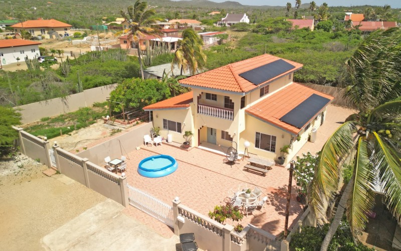 On 891m2 property owned land a spacious 4-Bedroom, 3-Bathroom house for sale in Sabanilla Abao, Santa Cruz Welcome to your new home in Sabanilla Abauo, Aruba! This generously sized 4-bedroom, 3-bathroom property offers a comfortable lifestyle in a secluded location in Santa Cruz. Currently the house is split into 2 sections to help generate passive income with a 2 bedroom apartment section. The living room of the main house has a sealed off door section, which can be knocked down to have the entire house connected again. Property Highlights - Total 4 bedrooms and 3 bathrooms, providing ample space for your family - Downstairs features a living room, kitchen, dining area, a bedrooms, and a bathrooms - Upstairs boasts the primary bedroom, private balcony, walk in closet and an ensuite bathroom - Enjoy the covered front patio downstairs, perfect for soaking in the refreshing breeze - Air conditioners in all bedrooms - Solar panels + 2 inverters for reduced energy costs and increased property value - The property listing price is listed below the Appraised Foreclosure value, huge benefit for local financing Outdoor Delights: - The right side yard features a large space and fully tiled ideal for setting up an above-ground pool or a children's area and the left side of the yard has ample room for your own creation - Outside washing machine and dryer section, with a covered ceiling - All 891m2 of the property is fenced with concrete blocks for security and peace of mind - Inside parking and outside parking - Outside area tiled all around - Low maintenance. Location Benefits: 📍 Santa Cruz, Aruba. Close proximity to local amenities and stores for your daily needs in Santa Cruz Additional information: - Additional apartment pictures coming soon! - All approved DOW Building plans on file - Appraisal 2025 on file This property is your opportunity to embrace peace and convenience. Contact me now to schedule a viewing Cado de Lannoy+2975941420 or email [email protected]