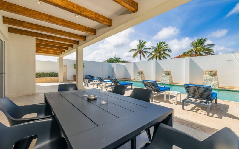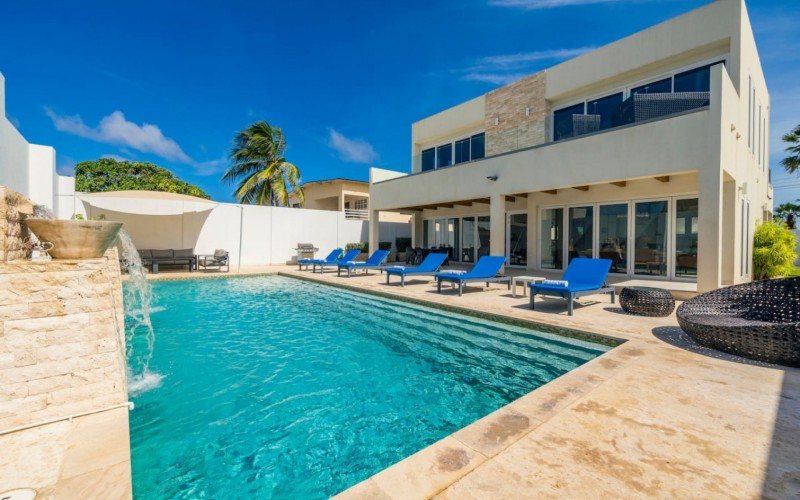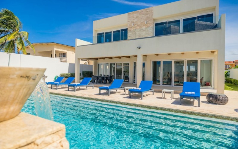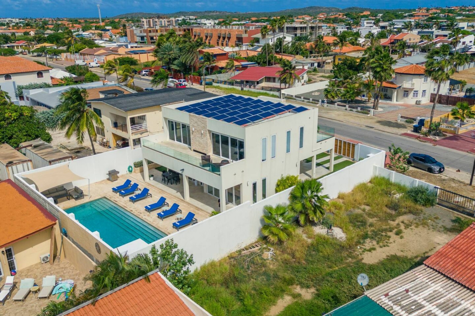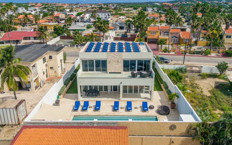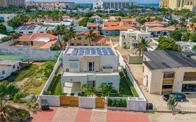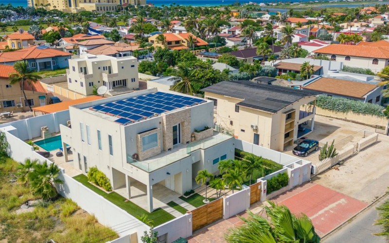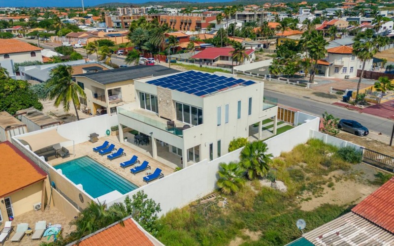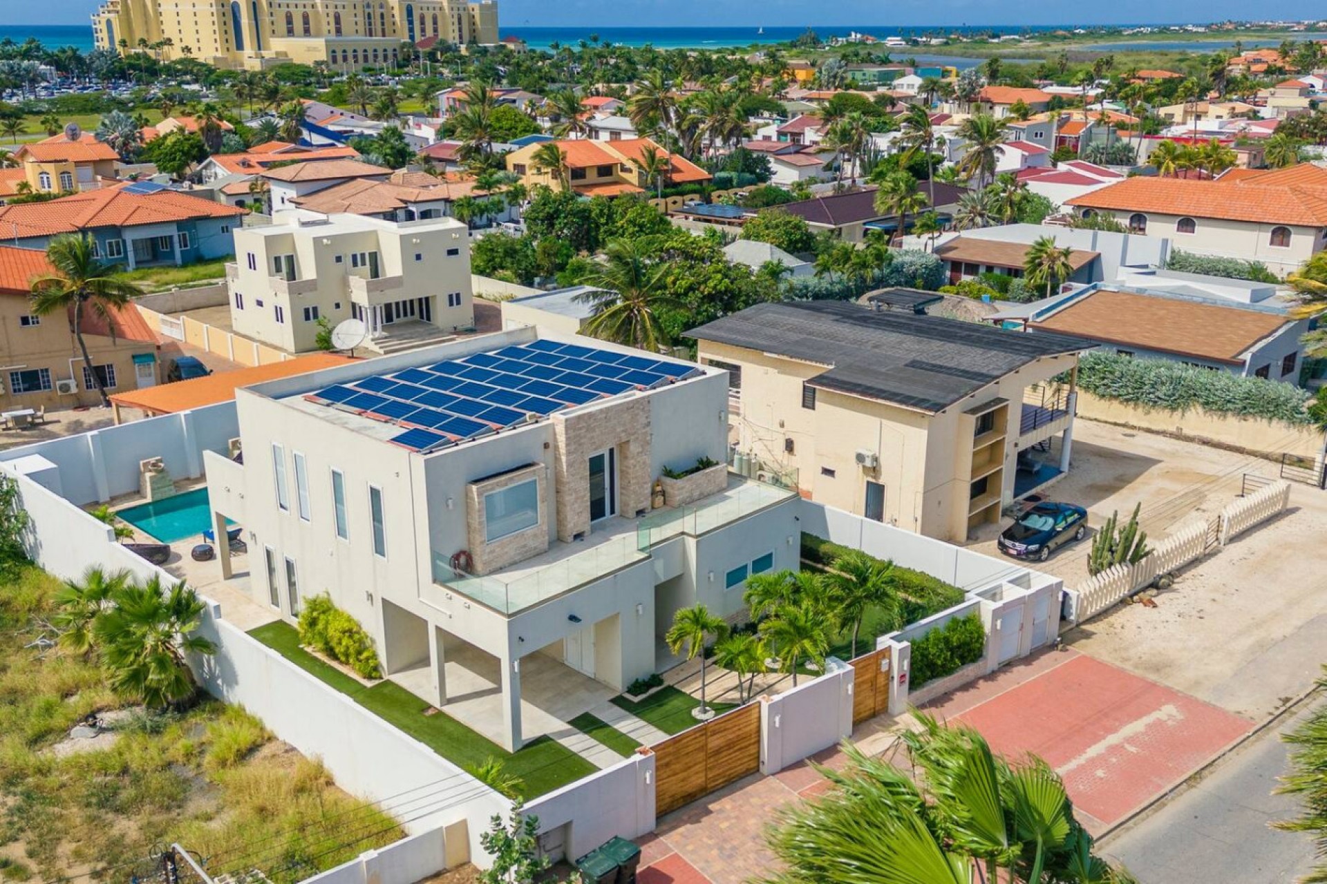 Villa Palma - Saliña Cerca 31 A stunning 2-bedroom home in the heart of Aruba. Surrounded by lush landscapes and just minutes from world-class beaches, this property offers the perfect blend of modern comfort and island serenity. Enjoy spacious living areas, a private garden, 2 balconies, and a refreshing pool, all within a tranquil setting. Whether as a family holiday home or investment opportunity , Villa Palma is your ideal retreat in paradise. Prime Location: Saliña Cerca – Bakval is a well established and luxury residential area. The spacious set up is remarkable; large lots, asphalt roads with footpaths. Saliña Cerca is also popular because of its central location, most amenities are only minutes away; Marriott, Starbucks, Ritz Carlton, Paseo Herencia shopping’s mall, popular beach bars, nightlife and restaurants. Property Highlights: Lease Land that consist of 672m2 which is 7233ft² Build up consist of 415m2 which is 4467ft² Bedrooms: 2 very spacious bedrooms ideal for family living or hosting guests both with en-suite bathrooms Bathrooms: 2 well-appointed bathrooms upstairs and powder room downstairs A fully equipped kitchen: state of the art appliances and integrated refrigerator + freezer with wine coolers Open Living Space: The heart of this home features an open layout seamlessly connecting the kitchen, living room and dining room; perfect for entertaining or cozy evenings Front and back balconies overlooking the Bakval area and high rise hotels Outdoor Oasis: Step outside to a large covered patio and expansive yard with tropical gardening 39 foot pool with decor water falls Construction highlight: Bedroom 1: King-Size Bed + a walk-in closet and a spa-like en-suite with a luxurious bathtub, shower and double vanity Bedroom 2: 2 Queen-Size beds + Ensuite bathroom and walk in closet space Back and front balconies with glass railings Open living concept with lots of natural light, creating a warm and airy atmosphere Full equipped kitchen and island; flows seamlessly into the spacious dining and living rooms Large pvc windows and doors that frame the surrounding tropical scenery Powder room A covered patio area connecting to the pool deck Spacious utility room with washer, dryer and additional storage AC system throughout the entire house Covered car port Landscaped and hardscape throughout the entire property with irrigation system Solar panels for efficiency Electric car port gate Located on public paved road with water and electricity connections. Sewage water via septic tank Unique Features: Modern kitchen boasts sleek granite countertops, high-quality cabinetry, and state-of-the-art appliances Contemporary fixtures and design, stylish tiles, and ample storage throughout the property Walking distance to the beach The Saliña Cerca area features a unique mix of residential homes and well-known vacation rentals managed by top companies, making it a vibrant and dynamic community Villa Palma is currently managed by Bocobay as a short term rental; financial report available upon request Villa Palma offers endless possibilities to create your own paradise in the heart of Aruba. Don't miss the opportunity to make this wonderful property your own. Contact us to arrange a viewing and experience the charm of Villa Palma in person. Cado de Lannoy +297 5941420 or [email protected]