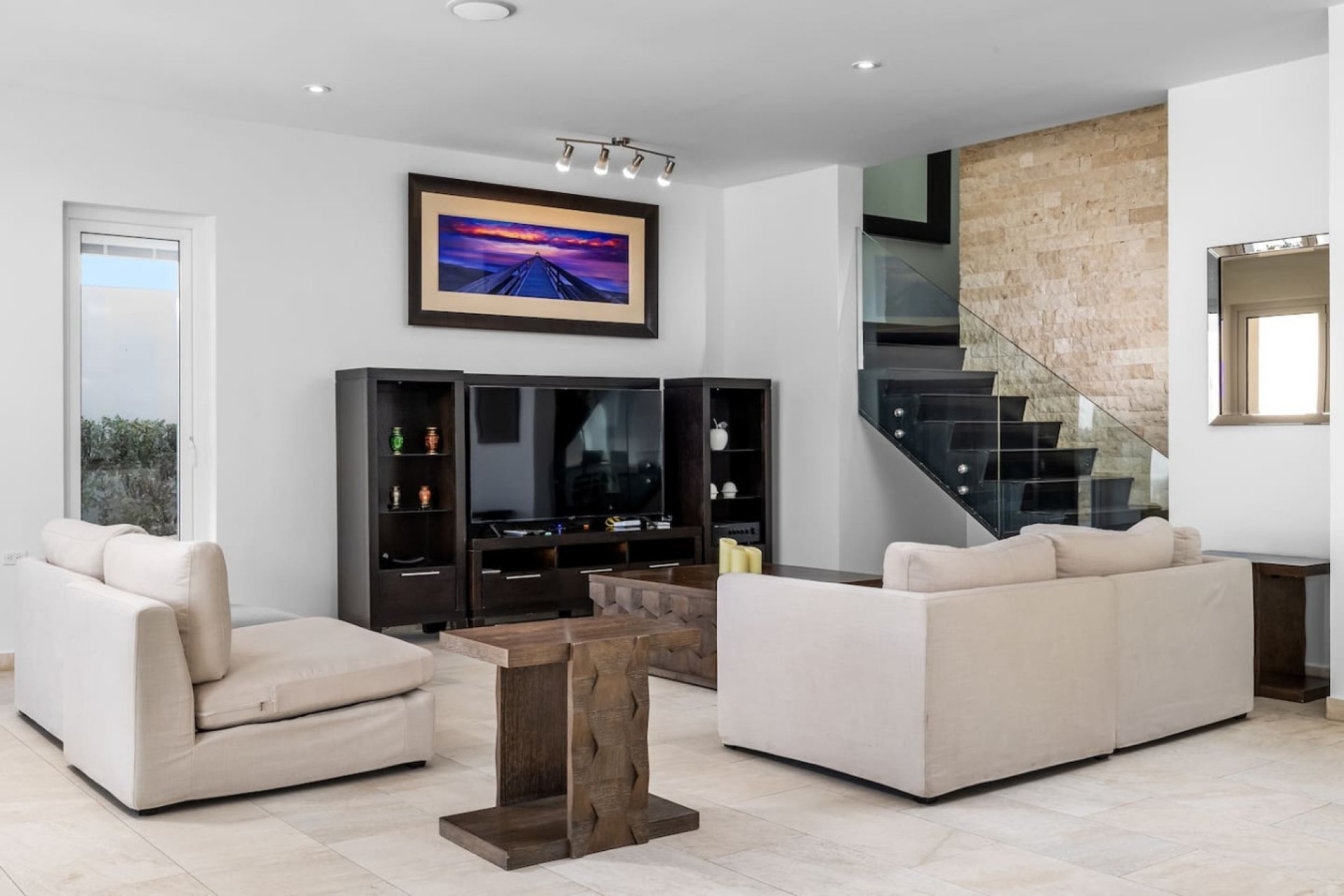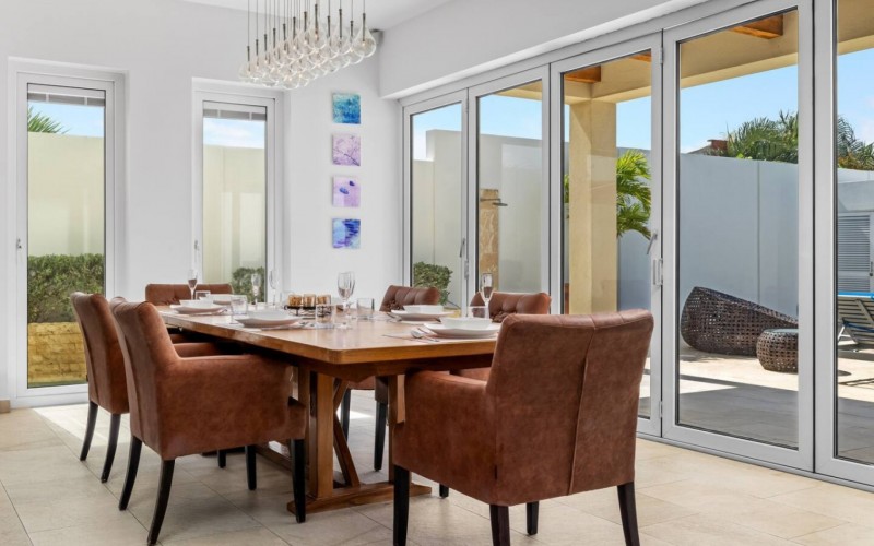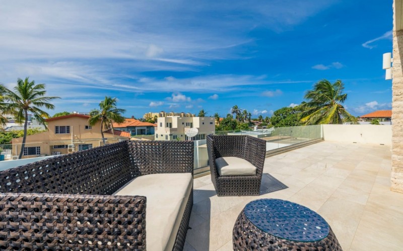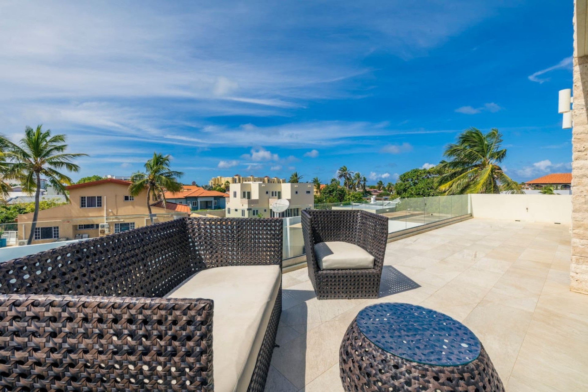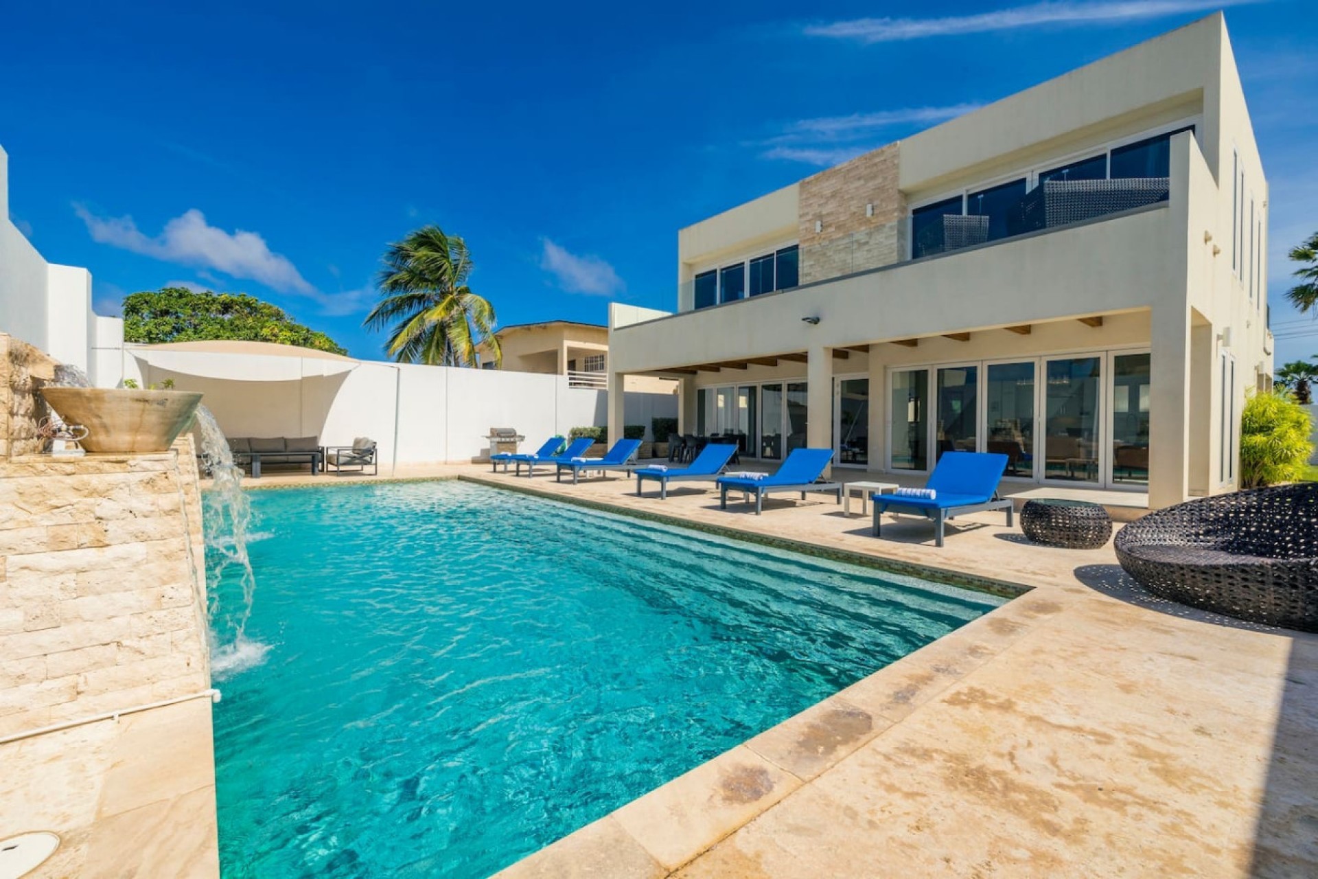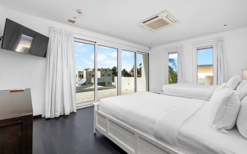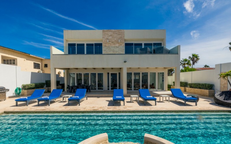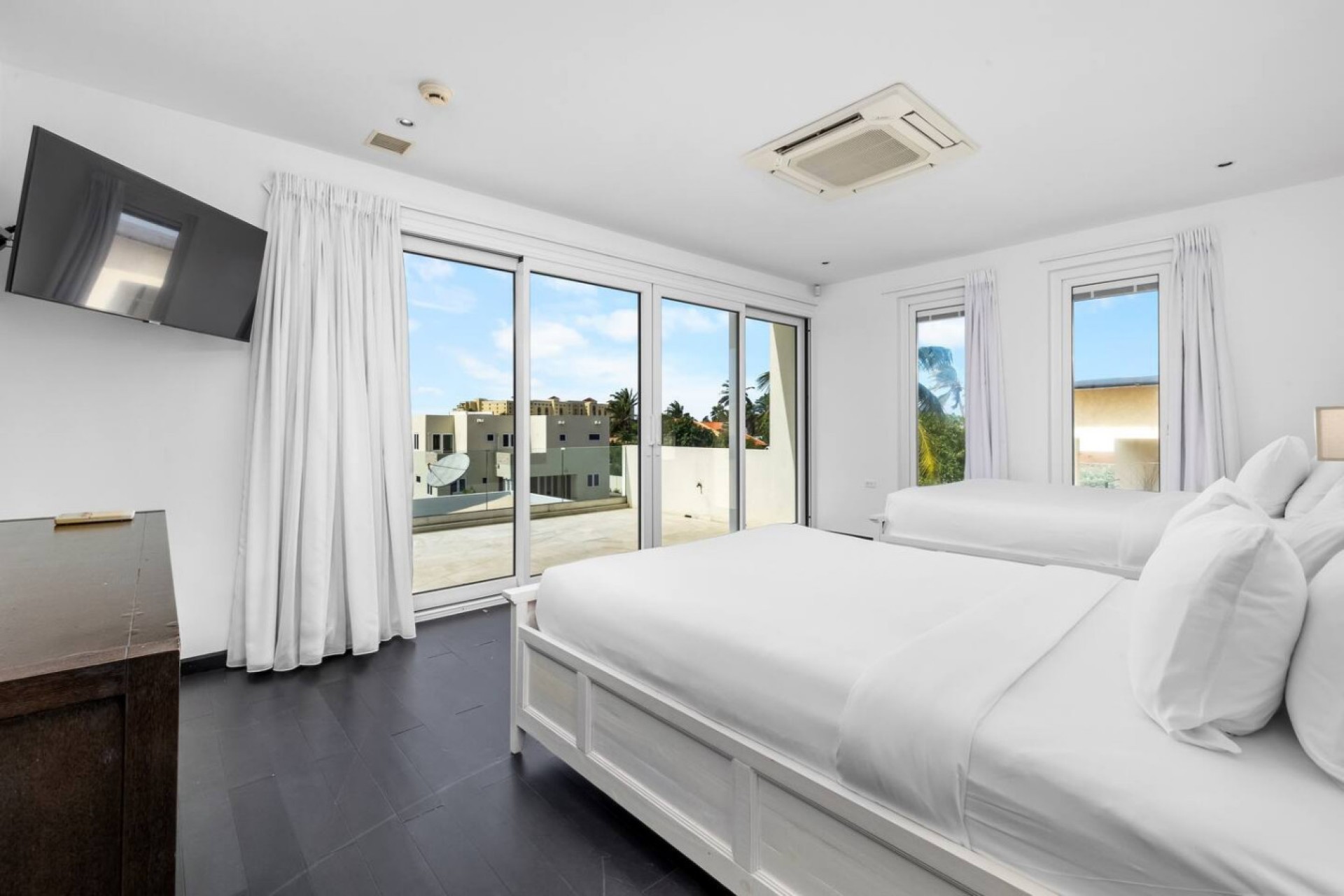 Villa Palma - Saliña Cerca 31 A stunning 2-bedroom home in the heart of Aruba. Surrounded by lush landscapes and just minutes from world-class beaches, this property offers the perfect blend of modern comfort and island serenity. Enjoy spacious living areas, a private garden, 2 balconies, and a refreshing pool, all within a tranquil setting. Whether as a family holiday home or investment opportunity , Villa Palma is your ideal retreat in paradise. Prime Location: Saliña Cerca – Bakval is a well established and luxury residential area. The spacious set up is remarkable; large lots, asphalt roads with footpaths. Saliña Cerca is also popular because of its central location, most amenities are only minutes away; Marriott, Starbucks, Ritz Carlton, Paseo Herencia shopping’s mall, popular beach bars, nightlife and restaurants. Property Highlights: Lease Land that consist of 672m2 which is 7233ft² Build up consist of 415m2 which is 4467ft² Bedrooms: 2 very spacious bedrooms ideal for family living or hosting guests both with en-suite bathrooms Bathrooms: 2 well-appointed bathrooms upstairs and powder room downstairs A fully equipped kitchen: state of the art appliances and integrated refrigerator + freezer with wine coolers Open Living Space: The heart of this home features an open layout seamlessly connecting the kitchen, living room and dining room; perfect for entertaining or cozy evenings Front and back balconies overlooking the Bakval area and high rise hotels Outdoor Oasis: Step outside to a large covered patio and expansive yard with tropical gardening 39 foot pool with decor water falls Construction highlight: Bedroom 1: King-Size Bed + a walk-in closet and a spa-like en-suite with a luxurious bathtub, shower and double vanity Bedroom 2: 2 Queen-Size beds + Ensuite bathroom and walk in closet space Back and front balconies with glass railings Open living concept with lots of natural light, creating a warm and airy atmosphere Full equipped kitchen and island; flows seamlessly into the spacious dining and living rooms Large pvc windows and doors that frame the surrounding tropical scenery Powder room A covered patio area connecting to the pool deck Spacious utility room with washer, dryer and additional storage AC system throughout the entire house Covered car port Landscaped and hardscape throughout the entire property with irrigation system Solar panels for efficiency Electric car port gate Located on public paved road with water and electricity connections. Sewage water via septic tank Unique Features: Modern kitchen boasts sleek granite countertops, high-quality cabinetry, and state-of-the-art appliances Contemporary fixtures and design, stylish tiles, and ample storage throughout the property Walking distance to the beach The Saliña Cerca area features a unique mix of residential homes and well-known vacation rentals managed by top companies, making it a vibrant and dynamic community Villa Palma is currently managed by Bocobay as a short term rental; financial report available upon request Villa Palma offers endless possibilities to create your own paradise in the heart of Aruba. Don't miss the opportunity to make this wonderful property your own. Contact us to arrange a viewing and experience the charm of Villa Palma in person. Cado de Lannoy +297 5941420 or [email protected]