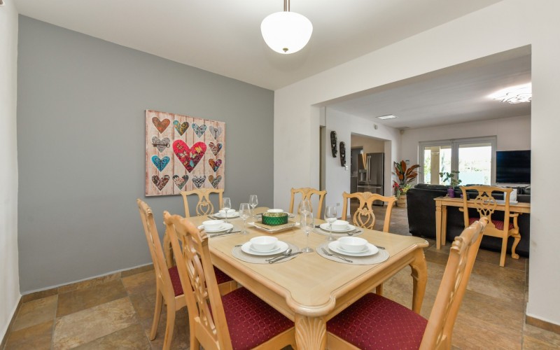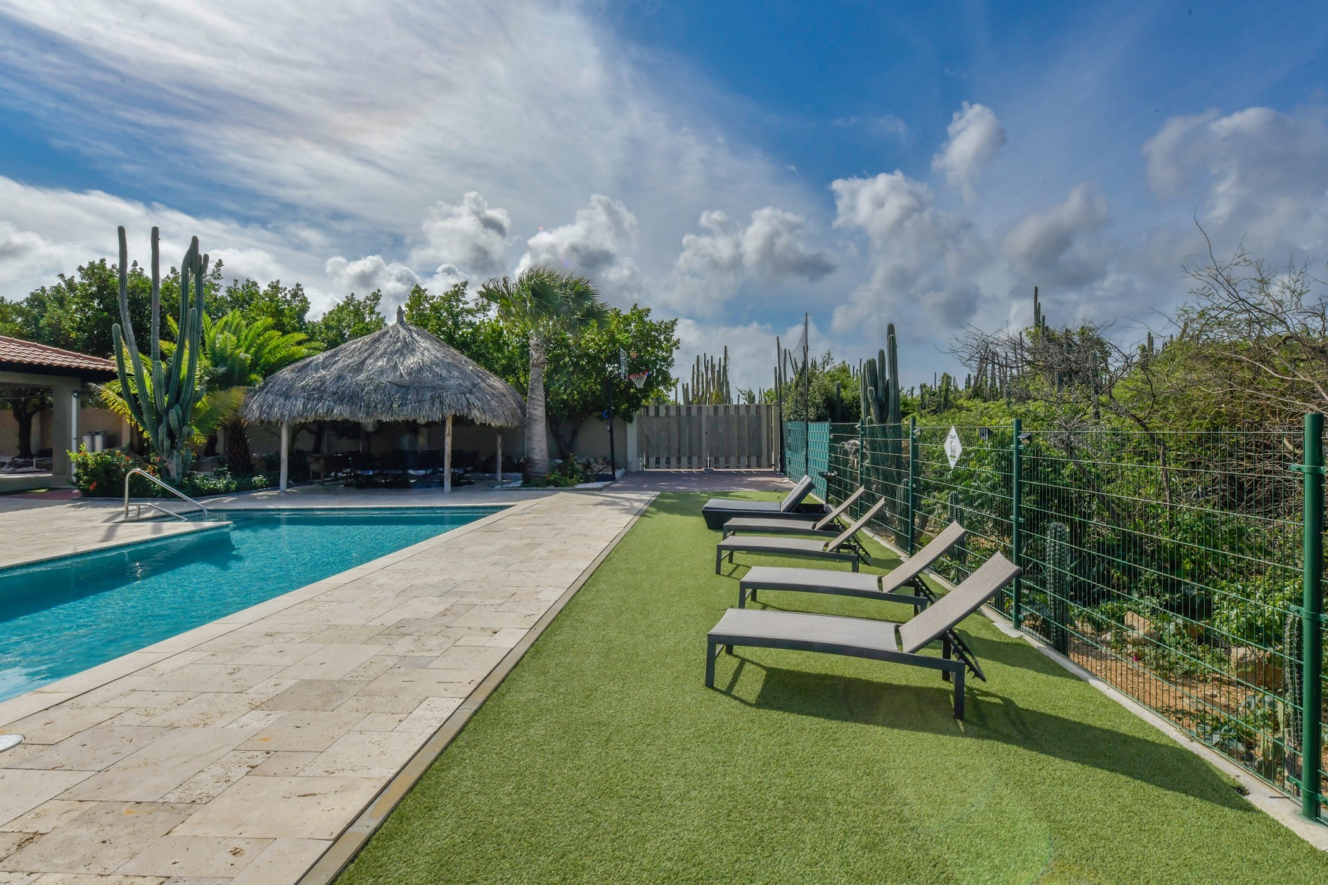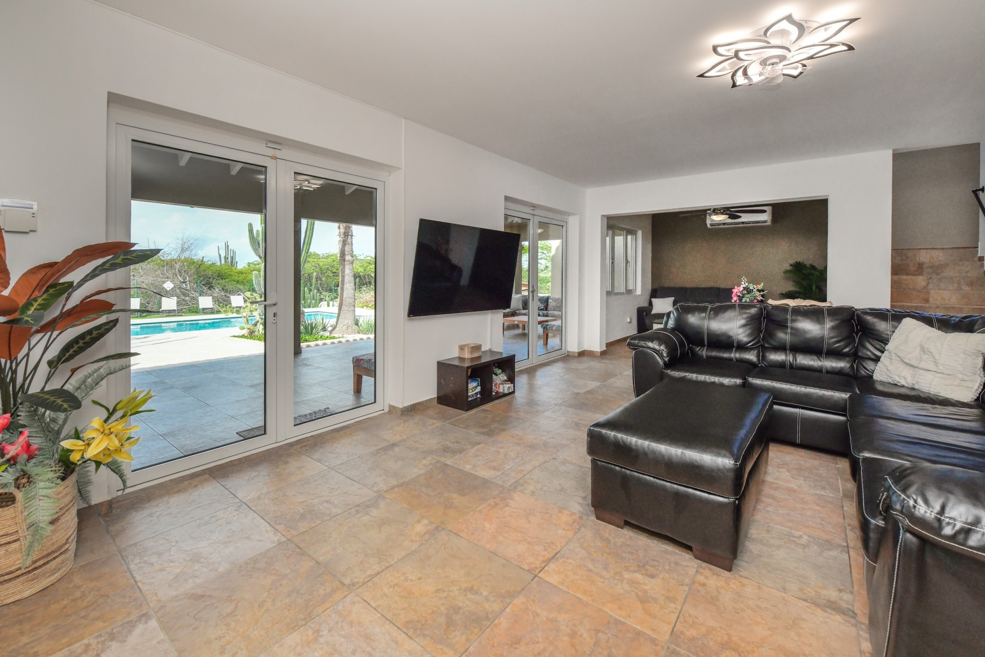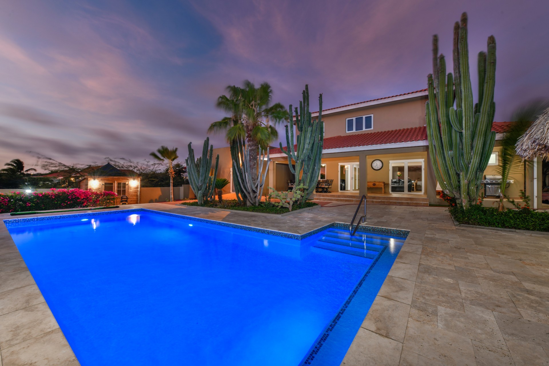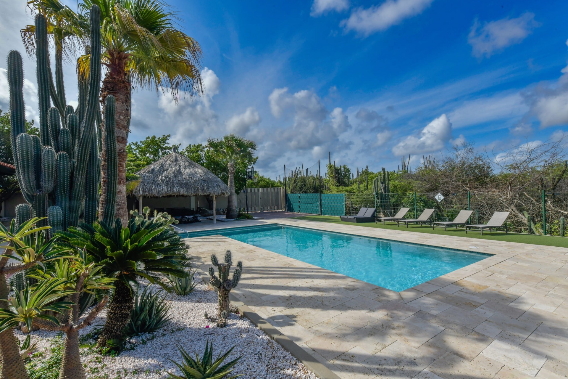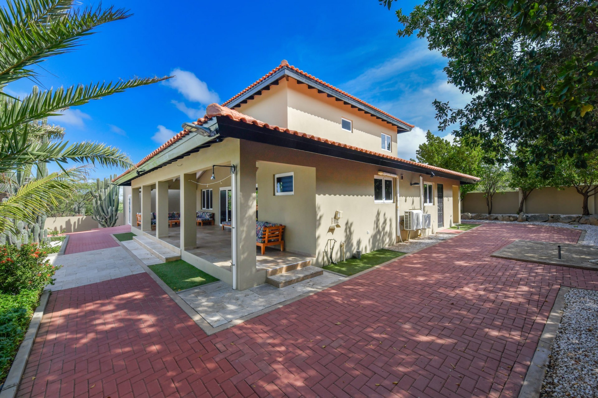 Stunning 5-Bedroom Villa with Pool + Apartment, and Expansive Garden in Santa Cruz Discover an exceptional property nestled in the tranquil, natural surroundings of Santa Cruz. This impressive villa sits on a generous 1,110 m² plot of property land, offering approximately 276m² of luxurious living space designed for comfort, privacy, and sophisticated living, with stunning views throughout the villa. The residence features 6 spacious bedrooms and 4.5 bathrooms, providing ample space for family, guests, and entertaining. The layout seamlessly balances openness with intimacy, creating an inviting atmosphere for both family life and social gatherings. On the ground floor, you will find a spacious living room, a half-open dining room, and kitchen. This level also includes two bedrooms, one full en-suite bathroom, and a guest toilet. Upstairs, the three bedrooms offer exceptional views, space, and comfort. A spacious one-bedroom apartment further enhances the villa, providing private accommodation ideal for guests, rental purposes, or use as a home office. Outside, the property is a true oasis, featuring a beautifully landscaped garden surrounding a swimming pool. The extensive grounds offer plenty of space to enjoy the peaceful, natural environment of Santa Cruz. This is a rare opportunity to own a luxurious home in a great residential area that combines generous indoor and outdoor spaces, a stunning garden, and a serene, nature-filled location—perfect for those seeking privacy, elegance, and an exceptional lifestyle. Key Features Total of 6 bedrooms & 4.5 bathrooms Property land: 1.110 m² Estimated build up size: 276 m² Spacious one bedroom apartment Palapa lounge and Swimming Pool for outdoor relaxation Contact us today to schedule a viewing and see this beautiful property for yourself! Bibi Louwers 📞 +297 569 7343 📧