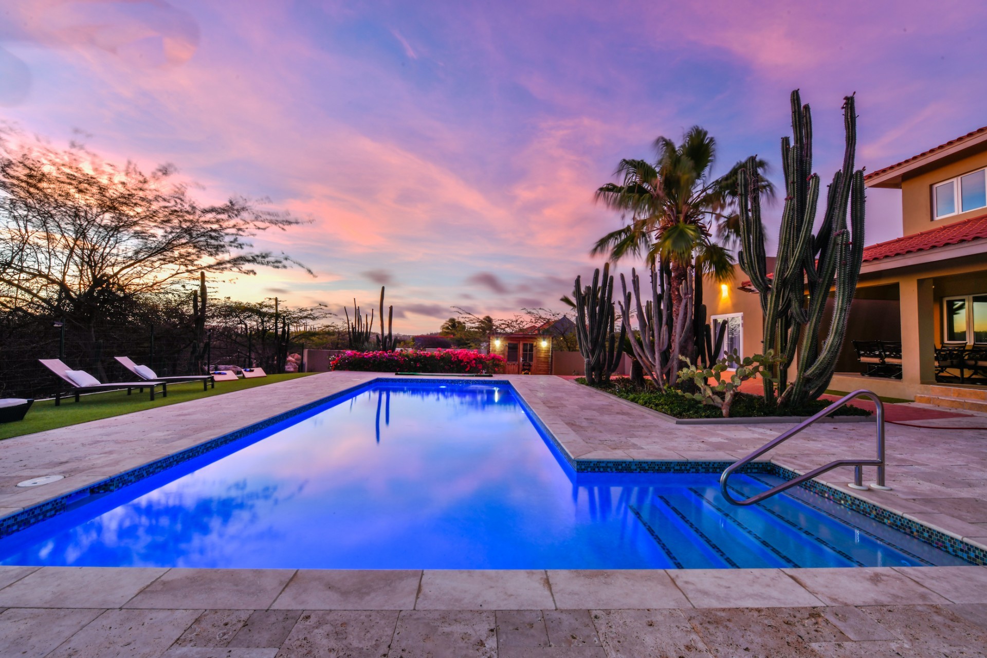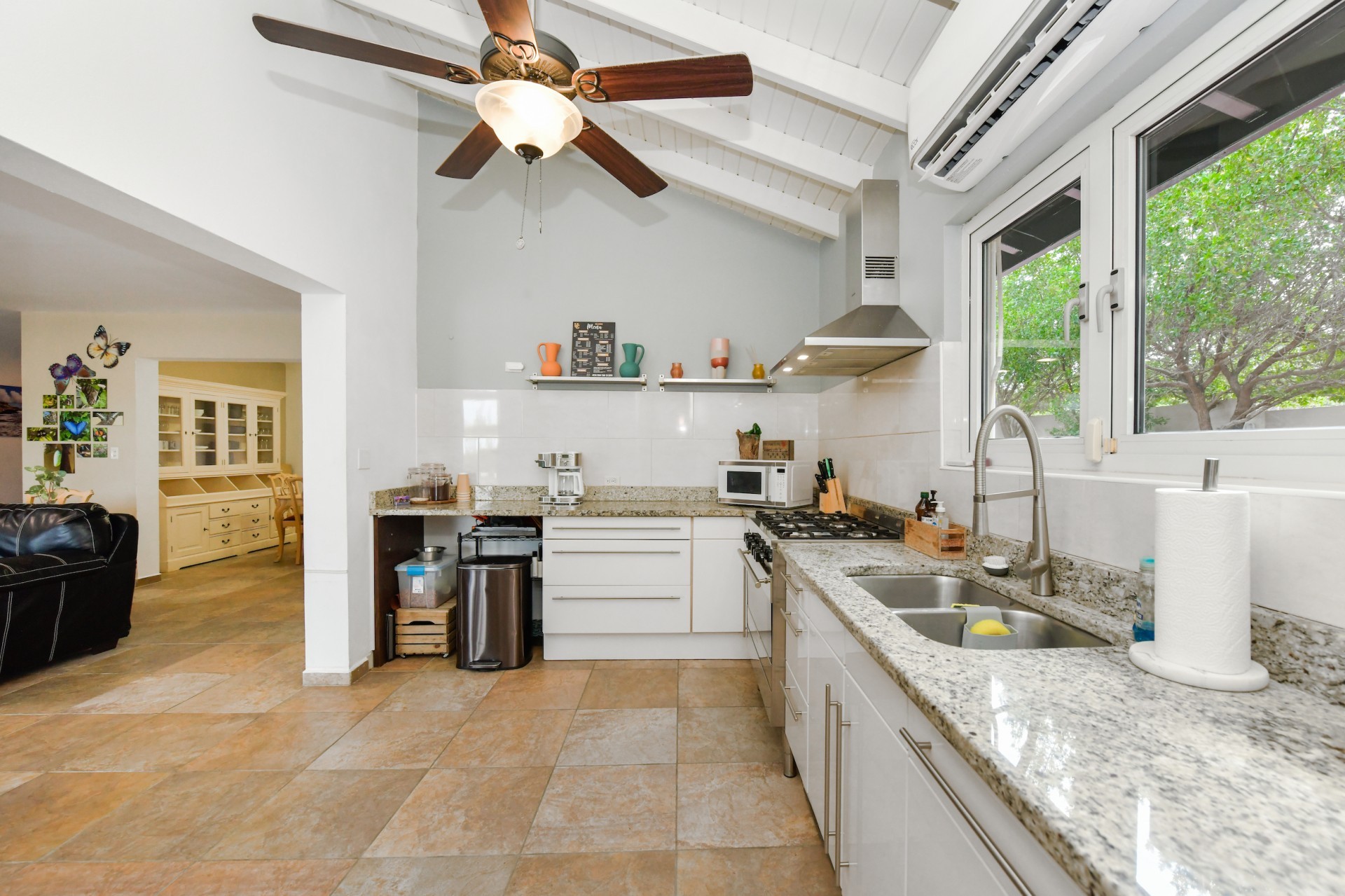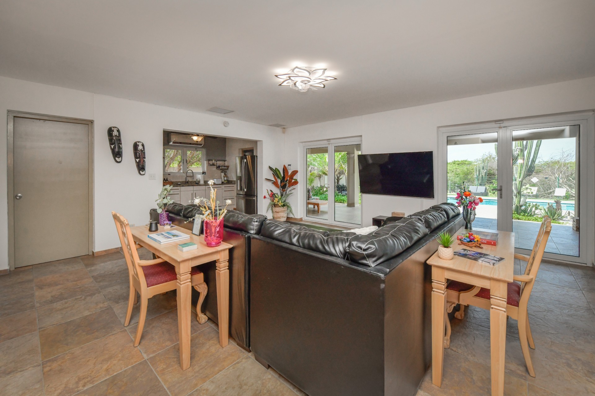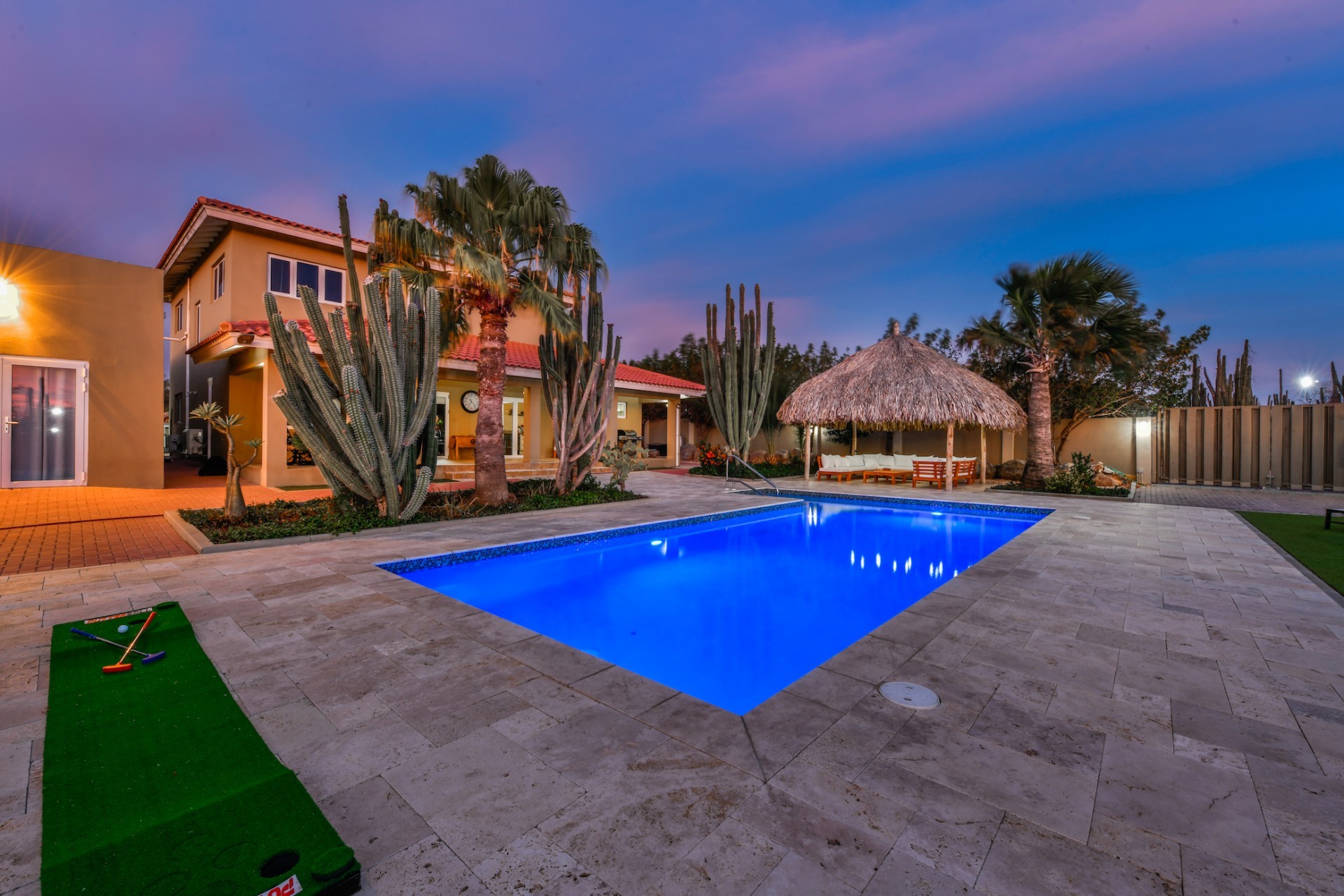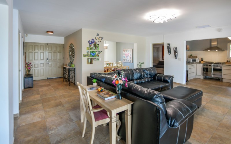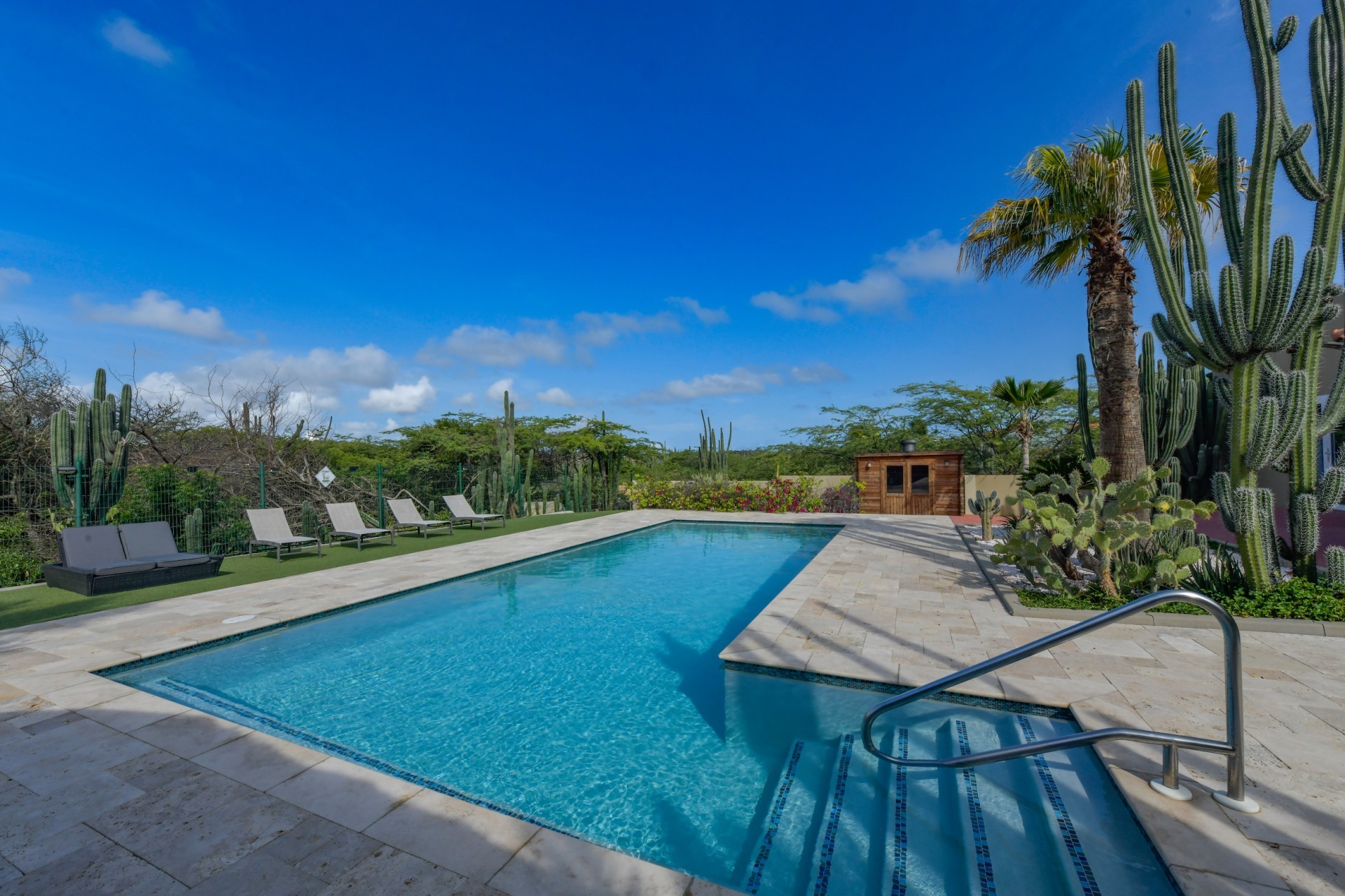 Stunning 5-Bedroom Villa with Pool + Apartment, and Expansive Garden in Santa Cruz Discover an exceptional property nestled in the tranquil, natural surroundings of Santa Cruz. This impressive villa sits on a generous 1,110 m² plot of property land, offering approximately 276m² of luxurious living space designed for comfort, privacy, and sophisticated living, with stunning views throughout the villa. The residence features 6 spacious bedrooms and 4.5 bathrooms, providing ample space for family, guests, and entertaining. The layout seamlessly balances openness with intimacy, creating an inviting atmosphere for both family life and social gatherings. On the ground floor, you will find a spacious living room, a half-open dining room, and kitchen. This level also includes two bedrooms, one full en-suite bathroom, and a guest toilet. Upstairs, the three bedrooms offer exceptional views, space, and comfort. A spacious one-bedroom apartment further enhances the villa, providing private accommodation ideal for guests, rental purposes, or use as a home office. Outside, the property is a true oasis, featuring a beautifully landscaped garden surrounding a swimming pool. The extensive grounds offer plenty of space to enjoy the peaceful, natural environment of Santa Cruz. This is a rare opportunity to own a luxurious home in a great residential area that combines generous indoor and outdoor spaces, a stunning garden, and a serene, nature-filled location—perfect for those seeking privacy, elegance, and an exceptional lifestyle. Key Features Total of 6 bedrooms & 4.5 bathrooms Property land: 1.110 m² Estimated build up size: 276 m² Spacious one bedroom apartment Palapa lounge and Swimming Pool for outdoor relaxation Contact us today to schedule a viewing and see this beautiful property for yourself! Bibi Louwers 📞 +297 569 7343 📧