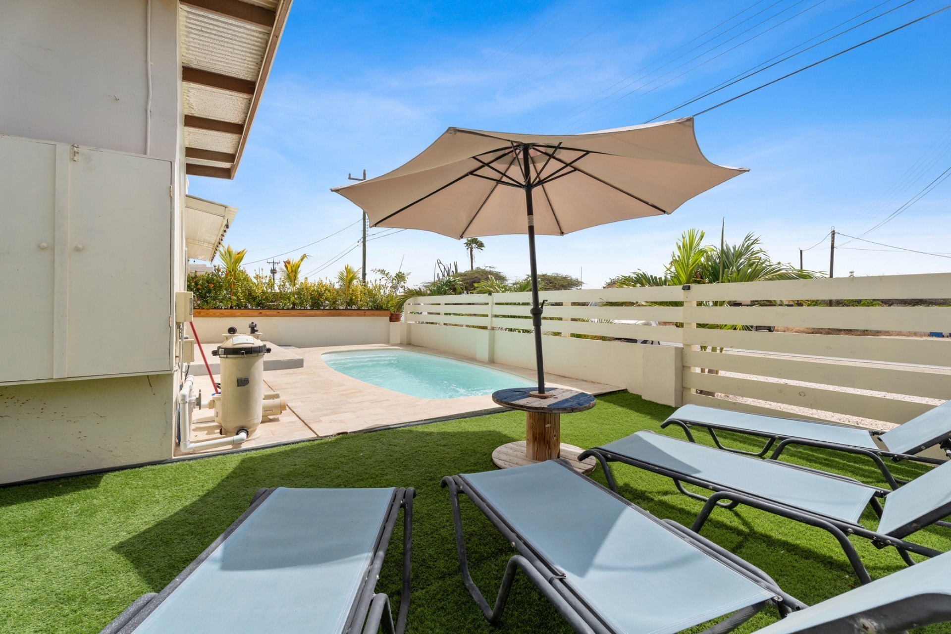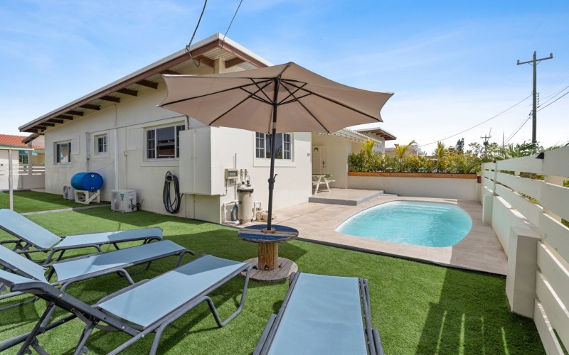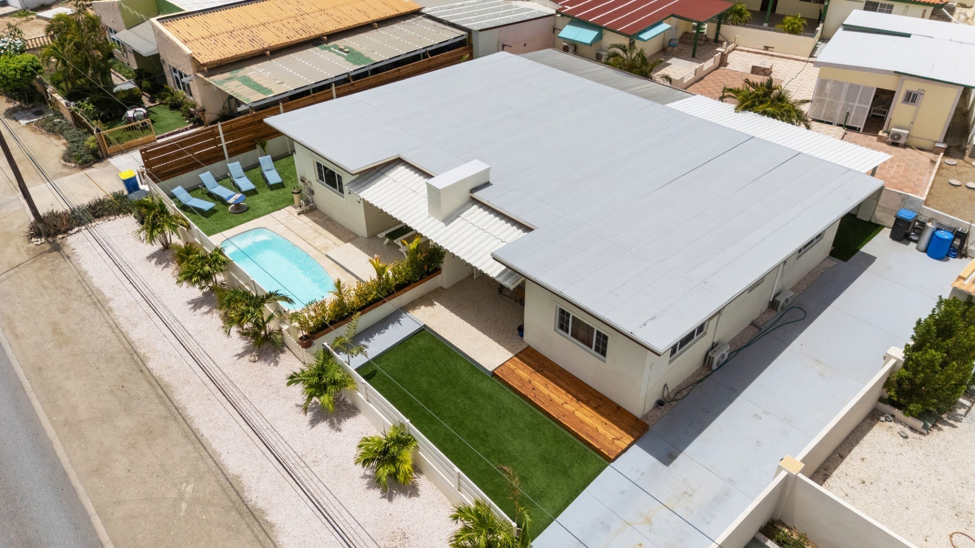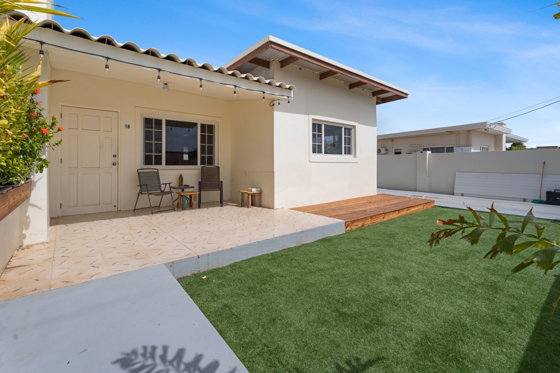 Two-Apartment Property Ideal for Long or Short-Term Rentals near Eagle Beach Discover a rare investment opportunity in the highly desirable neighborhood of San Miguel, just minutes from the world‑famous Eagle Beach and Super Food Plaza. This versatile property features two spacious apartments under one roof, each with their own entrance, offering comfort, privacy, and exceptional rental potential. This charming home sits on a spacious lot with a low maintenance front and back garden, providing plenty of outdoor living space and tropical landscaping possibilities. The property includes: Apartment 1 – Turnkey Vacation Rental with Pool 2 spacious bedrooms 1 full bathroom Open plan living and dining area with fully equipped modern kitchen, including 1x 220v outlet Back patio Private pool Outdoor lounging area ideal for sunbathing and entertaining Proven track record as a successful vacation rental Apartment 2 – Residential or Income‑Generating Potential 2 comfortable bedrooms 1 full bathroom Open plan living and dining area with fully equipped modern kitchen, including 1x 220v outlet Back patio Low maintenance driveway with space up to three cars Space for pool or jacuzzi Ready to be used as a long‑term rental or converted into a second vacation rental The property has recently been renovated and comes with a new isolated roof, updated kitchens and a low maintenance tropical garden. Its location offers a peaceful residential atmosphere while being incredibly close to Aruba’s best amenities. With two separate units, this property is ideal for: Investors seeking dual rental income Owners wanting to live in one unit while renting the other Families needing multi‑generational living options This is your chance to own a slice of paradise in one of Aruba’s most desirable locations. Connect with Iris Valentyns to schedule a private viewing. Cell phone / Whatsapp / FaceTime: +297-747-5610, Email: [email protected]