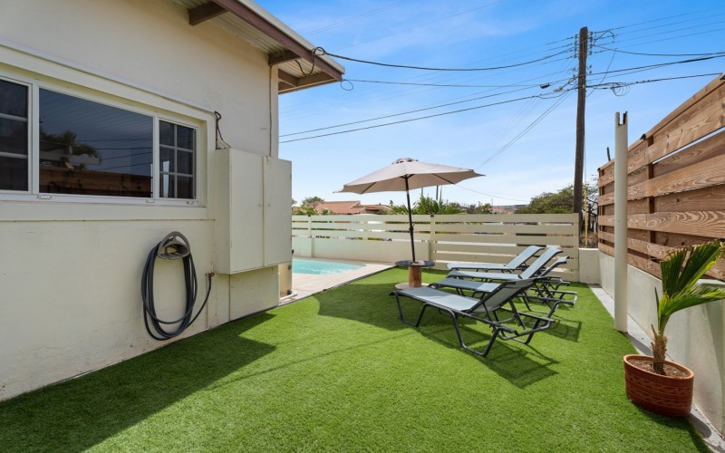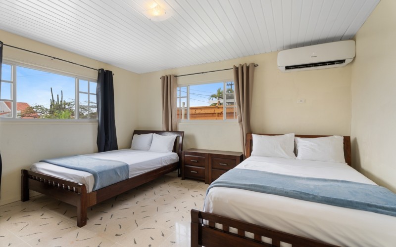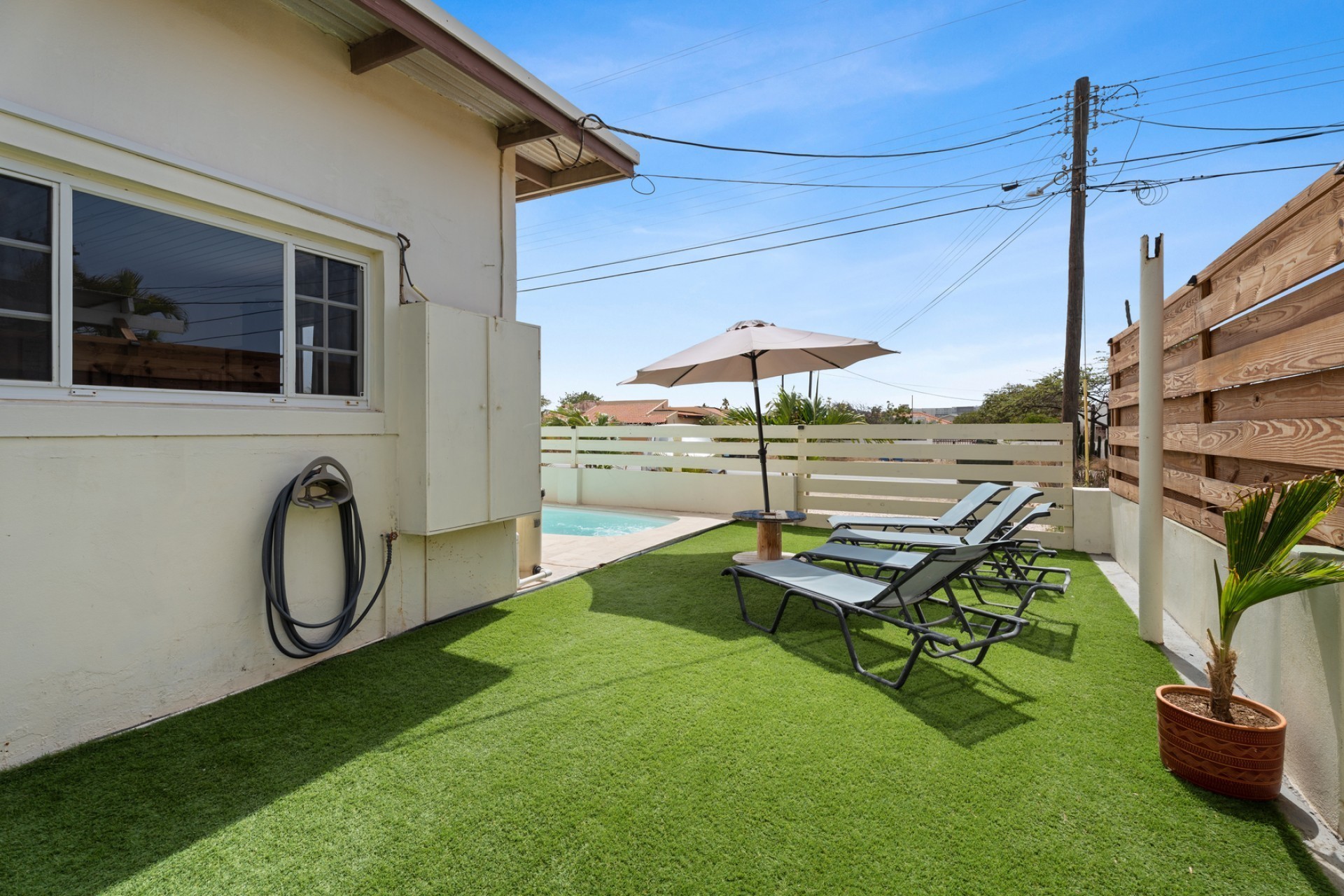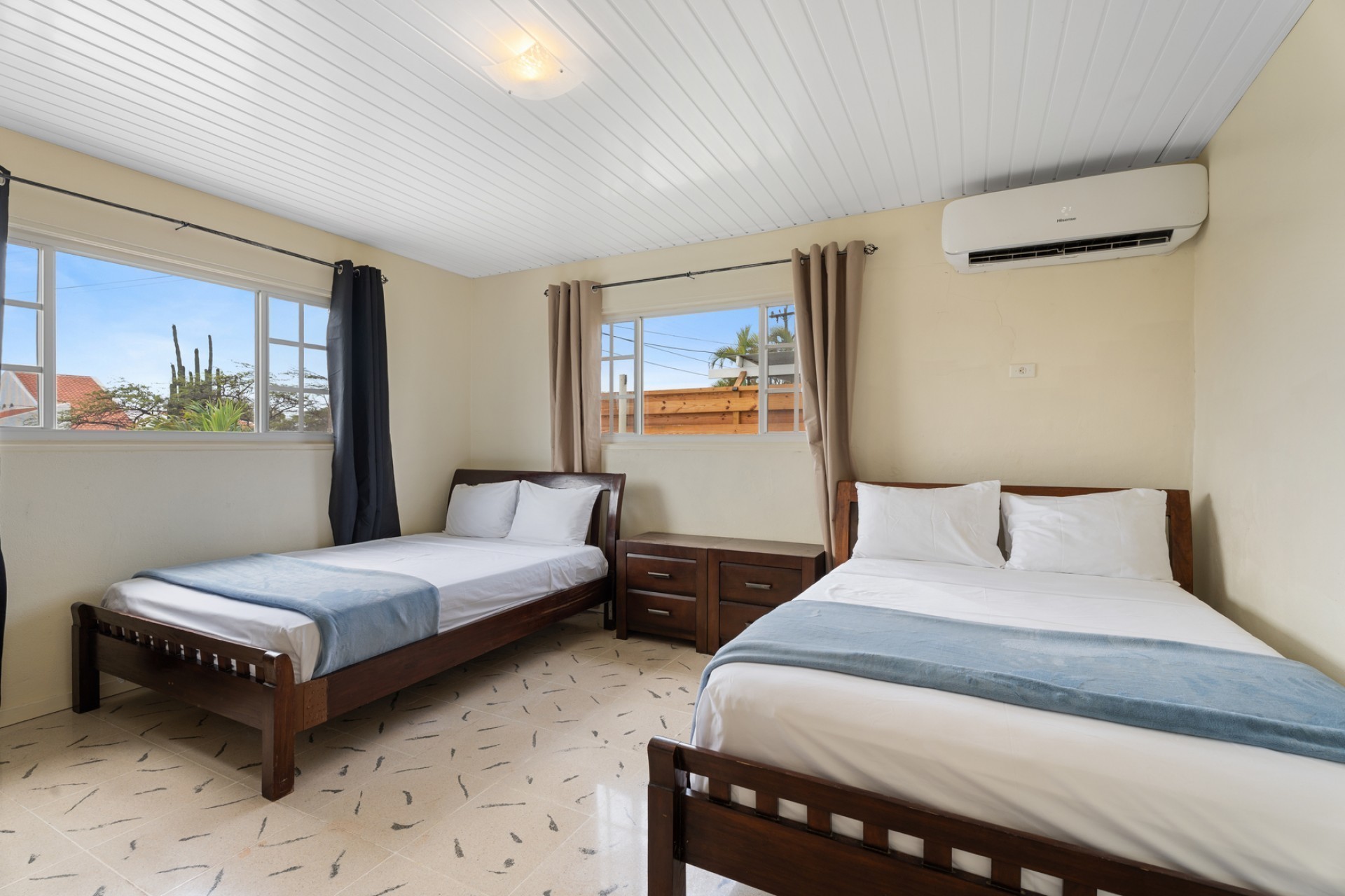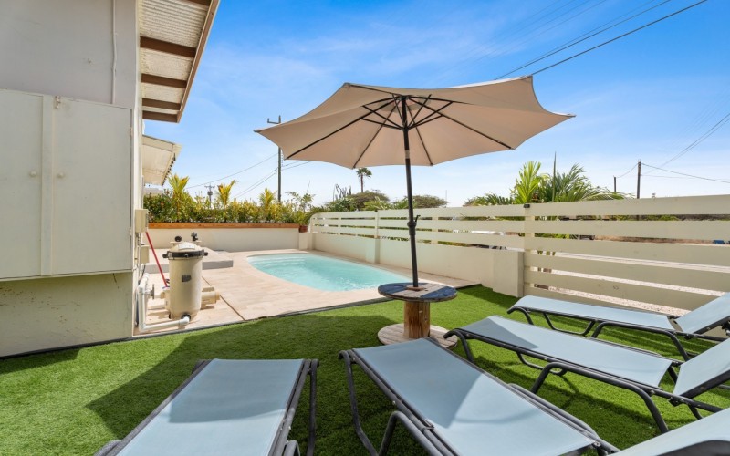 Two-Apartment Property Ideal for Long or Short-Term Rentals near Eagle Beach Discover a rare investment opportunity in the highly desirable neighborhood of San Miguel, just minutes from the world‑famous Eagle Beach and Super Food Plaza. This versatile property features two spacious apartments under one roof, each with their own entrance, offering comfort, privacy, and exceptional rental potential. This charming home sits on a spacious lot with a low maintenance front and back garden, providing plenty of outdoor living space and tropical landscaping possibilities. The property includes: Apartment 1 – Turnkey Vacation Rental with Pool 2 spacious bedrooms 1 full bathroom Open plan living and dining area with fully equipped modern kitchen, including 1x 220v outlet Back patio Private pool Outdoor lounging area ideal for sunbathing and entertaining Proven track record as a successful vacation rental Apartment 2 – Residential or Income‑Generating Potential 2 comfortable bedrooms 1 full bathroom Open plan living and dining area with fully equipped modern kitchen, including 1x 220v outlet Back patio Low maintenance driveway with space up to three cars Space for pool or jacuzzi Ready to be used as a long‑term rental or converted into a second vacation rental The property has recently been renovated and comes with a new isolated roof, updated kitchens and a low maintenance tropical garden. Its location offers a peaceful residential atmosphere while being incredibly close to Aruba’s best amenities. With two separate units, this property is ideal for: Investors seeking dual rental income Owners wanting to live in one unit while renting the other Families needing multi‑generational living options This is your chance to own a slice of paradise in one of Aruba’s most desirable locations. Connect with Iris Valentyns to schedule a private viewing. Cell phone / Whatsapp / FaceTime: +297-747-5610, Email: [email protected]