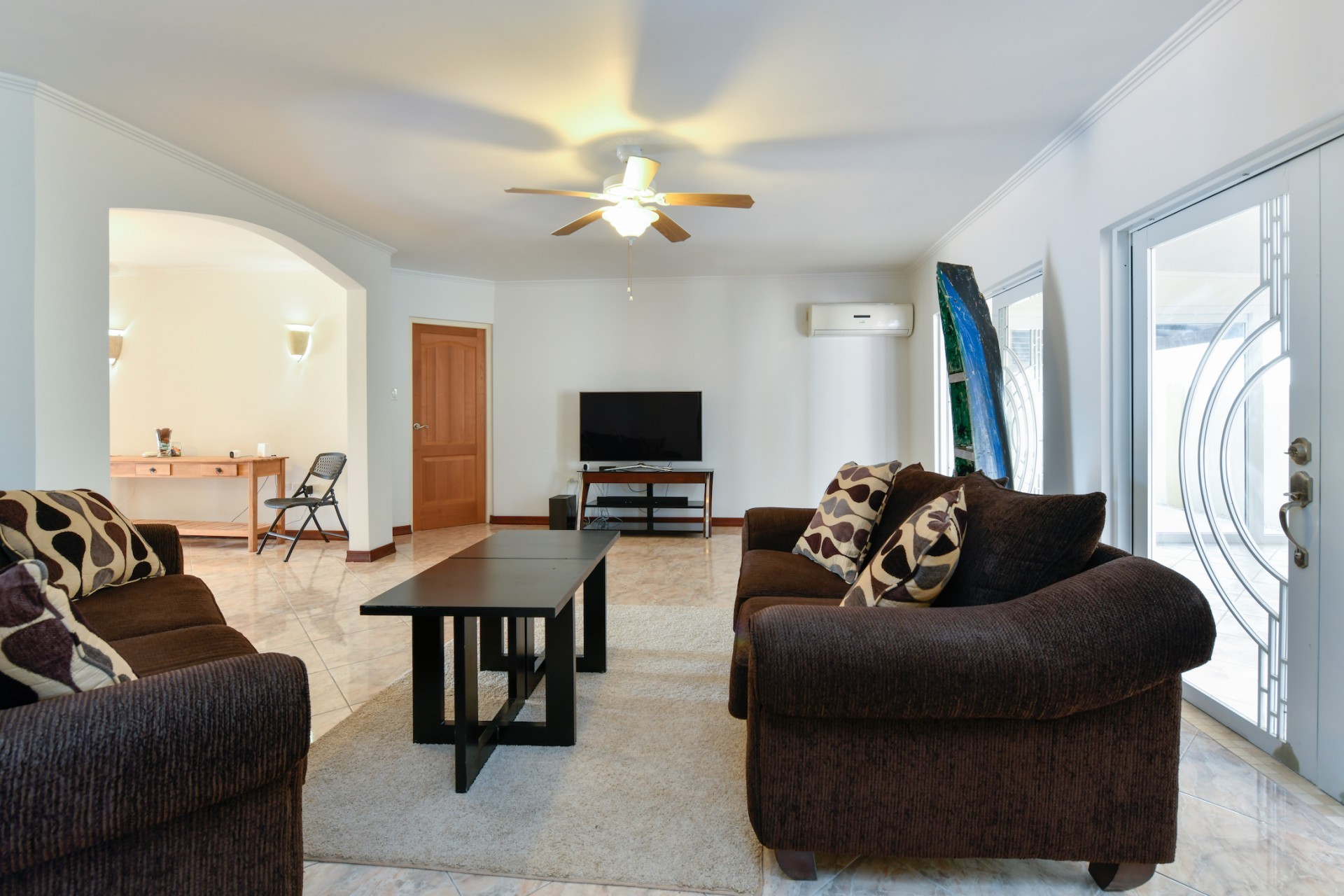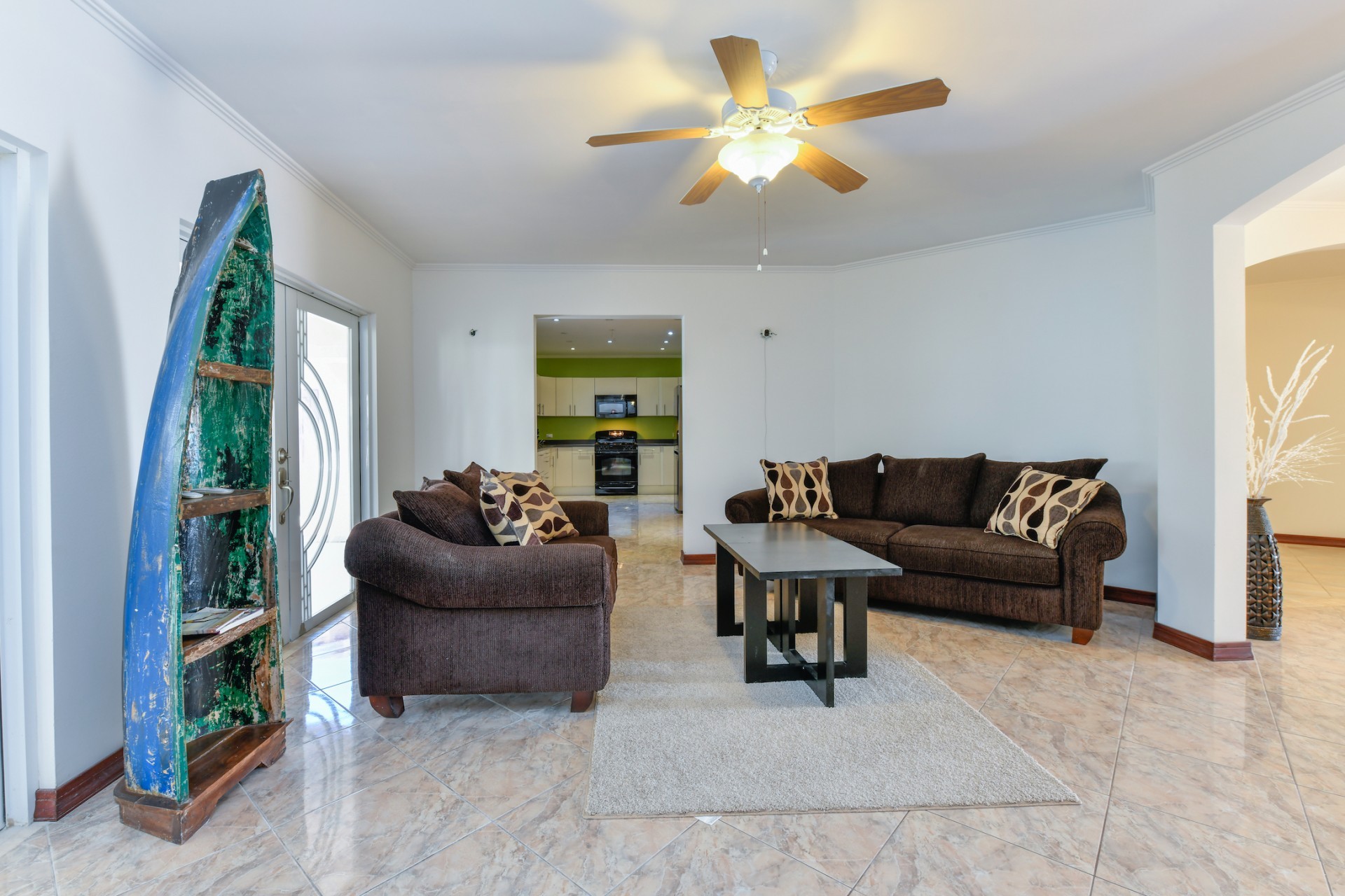 Attention Baby Beach lovers! This spacious property is located just minutes away from Aruba’s popular Baby Beach! Amazing turquoise blue waters just walking distance away from you! The property is located in Seroe Colorado and features a total of 4 bedrooms and 3.5 bathrooms. The property has a wide open space living / kitchen layout, covered outdoor patio, plenty of space for a pool site, a large 2 -car garage and several peaceful seating areas. In the back of the house you will find a detached storage space with a bathroom. As you make your way through this spacious home you will be introduced by a nicely connected living, dining and kitchen space. On both sides of the living / dining room you will find the property's bedrooms. Connected to the living is the fully equipped kitchen with branded stainless-steel appliances e.g. double door refrigerator, cooking stove and hood range microwave. From out the living room there is a passage to a large entertainment room which is connected to the outside area. Outside you have marvelous landscaping including some stunning maturing Palm Trees. On the left side of the house you will find a large covered patio which is the ultimate place to relax! The outside area is spacious enough to build a large style pool + seating area and gazebo! Plenty of space to make your own tropical gem in paradise! On top of all of this you will find the covered parking garage which facilitates 2 cars and plenty of storage possibilities. This property is fully fenced and has an electrical gate to open and enter with your car. Connected to the garage there is the laundry room. Property highlights - 4 bedrooms - 3,5 bathrooms - Great outdoor space - Just minutes away from Baby Beach - Plenty of space for a pool area - Covered garage - Covered patio - Storage Would you like to be the new owner of this fantastic property? Don't hestitate and let's get in touch! Contact Ruben Metz for a viewing! (+297) 568 6490 [email protected]