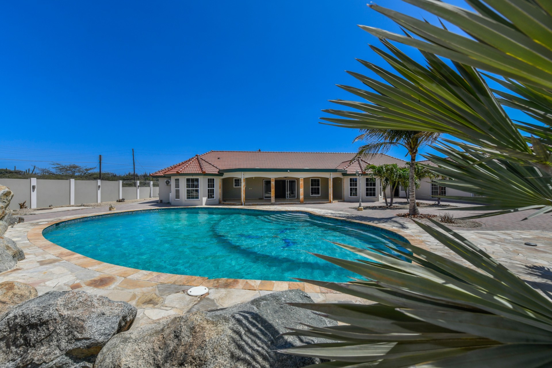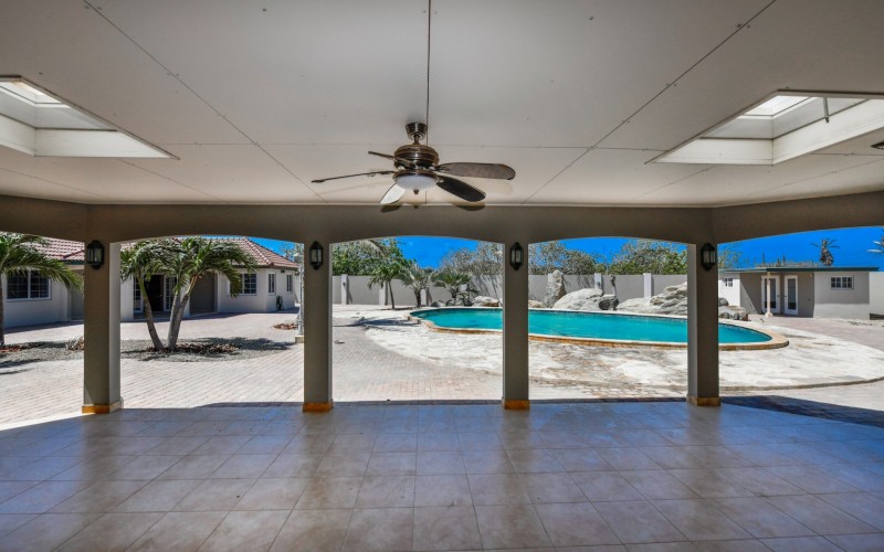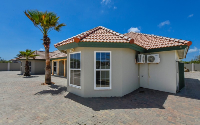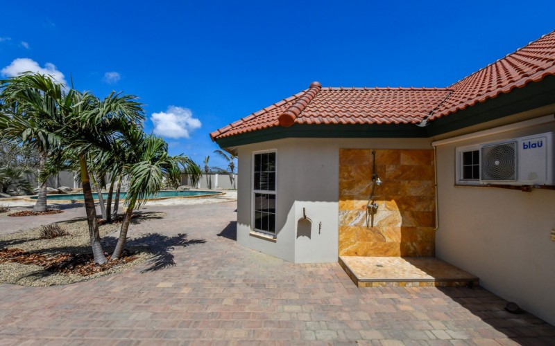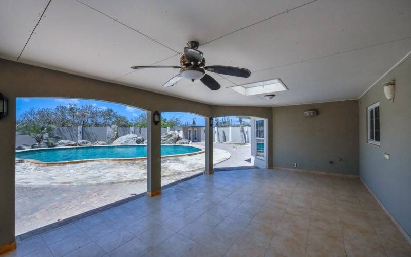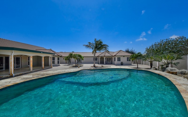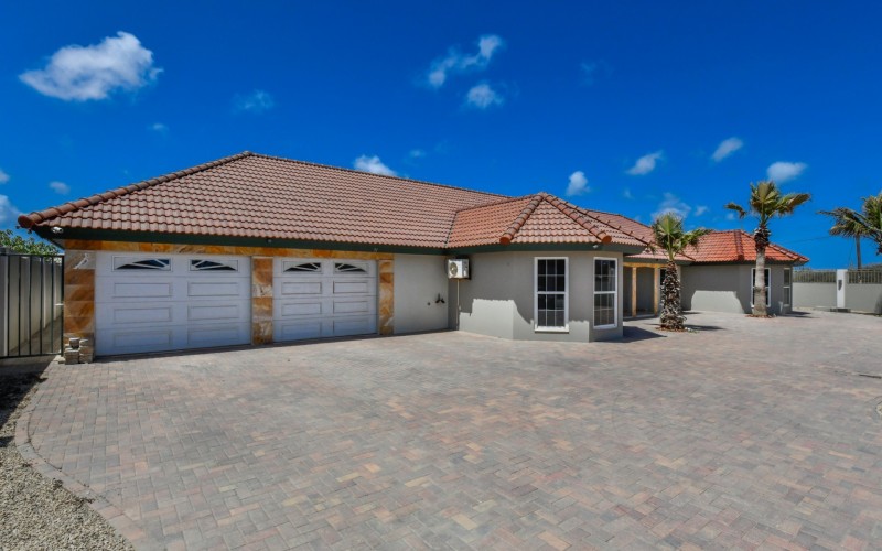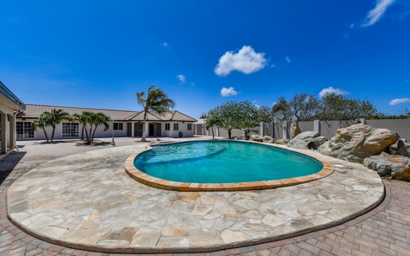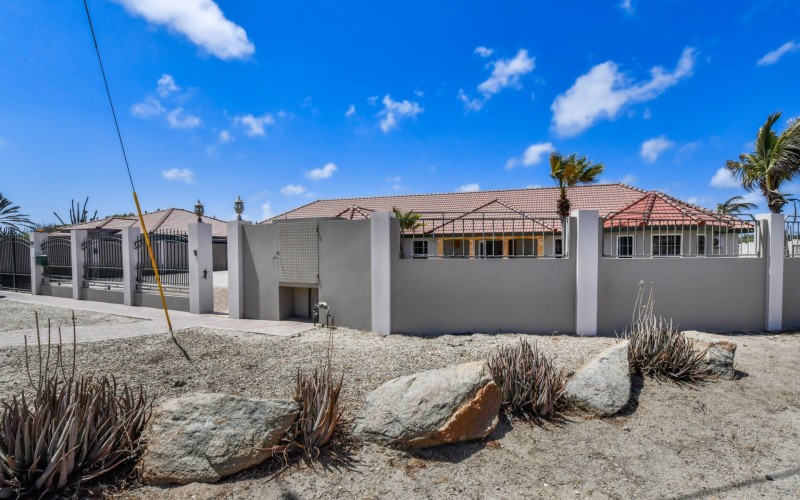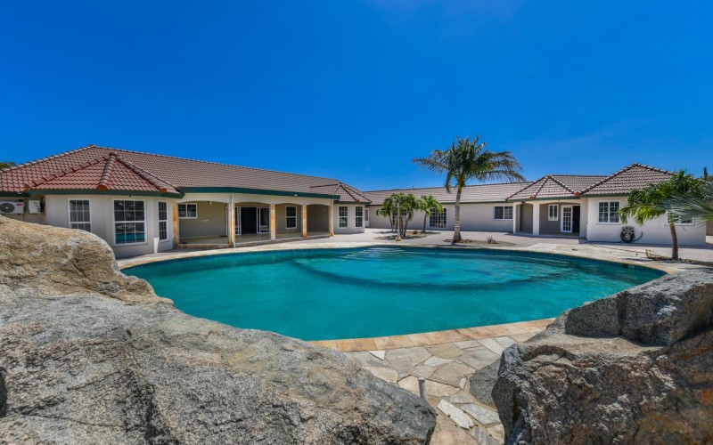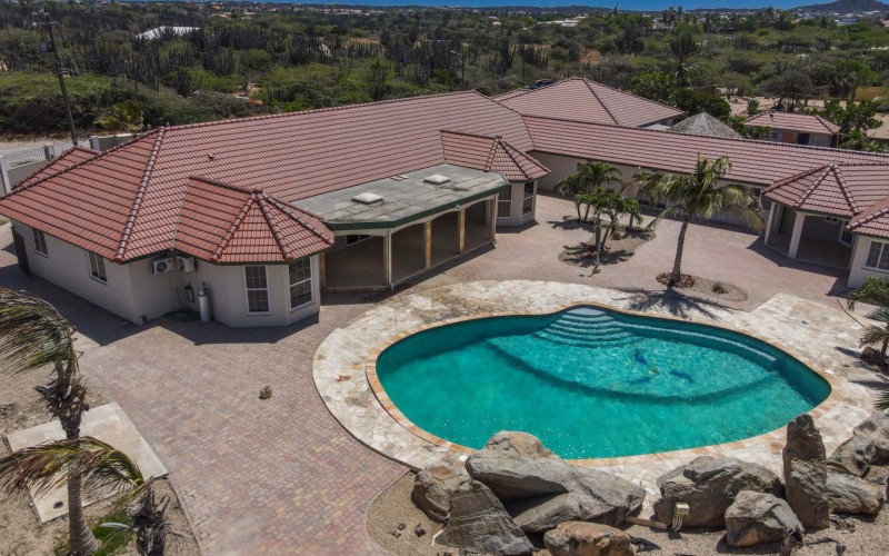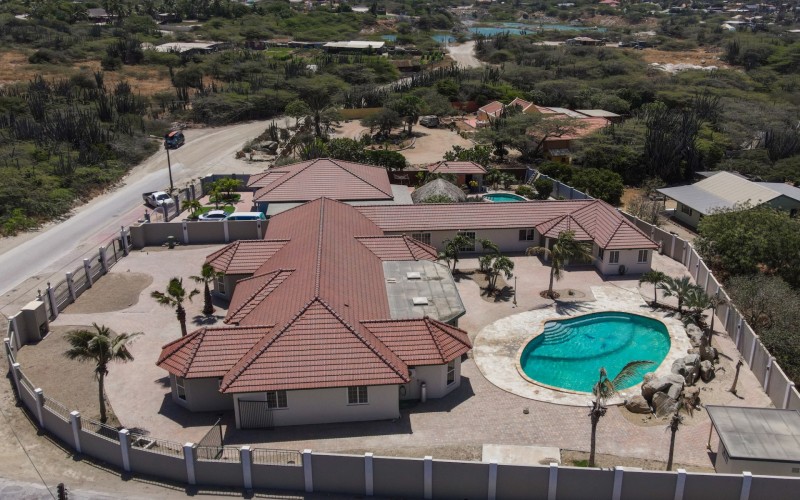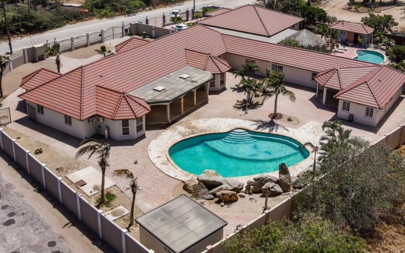This spacious villa is a gem, the large swimming pool is the eye catcher of this beautiful property. The main house has 5 spacious bedrooms and 2.5 bathrooms. There is a separate guest house with 2 bedrooms and a bathroom. In the yard you will find an extra bathroom. The house is very centrally located in Seroe Janchi, North Aruba. The main house has an open floor plan, with a large fully equipped kitchen. On both sides of the living room you will find bedrooms. A spiral staircase takes you to a separate room where you have a beautiful view over the living room. Outside there is a covered patio with a lovely large swimming pool. A large garage connects the guest house with the main house. In the guest house you will find 2 bedrooms and 1 bathroom. On top of all this there is a storage room of 41m2 that can easily converted in a big office space. This beautiful property is build on 1464m2 property land with a build size of 562m2. Property highlights - 7 bedrooms - 3,5 bathrooms - very large pool - centrally located - guest house - 1464m2 property land - 562m2 build up size (338m2 house, 63m2 garage, 41 storage, 101m2 guest house) For more information or to schedule a viewing please contact Bibi Louwers: +297 569 7343 or [email protected]