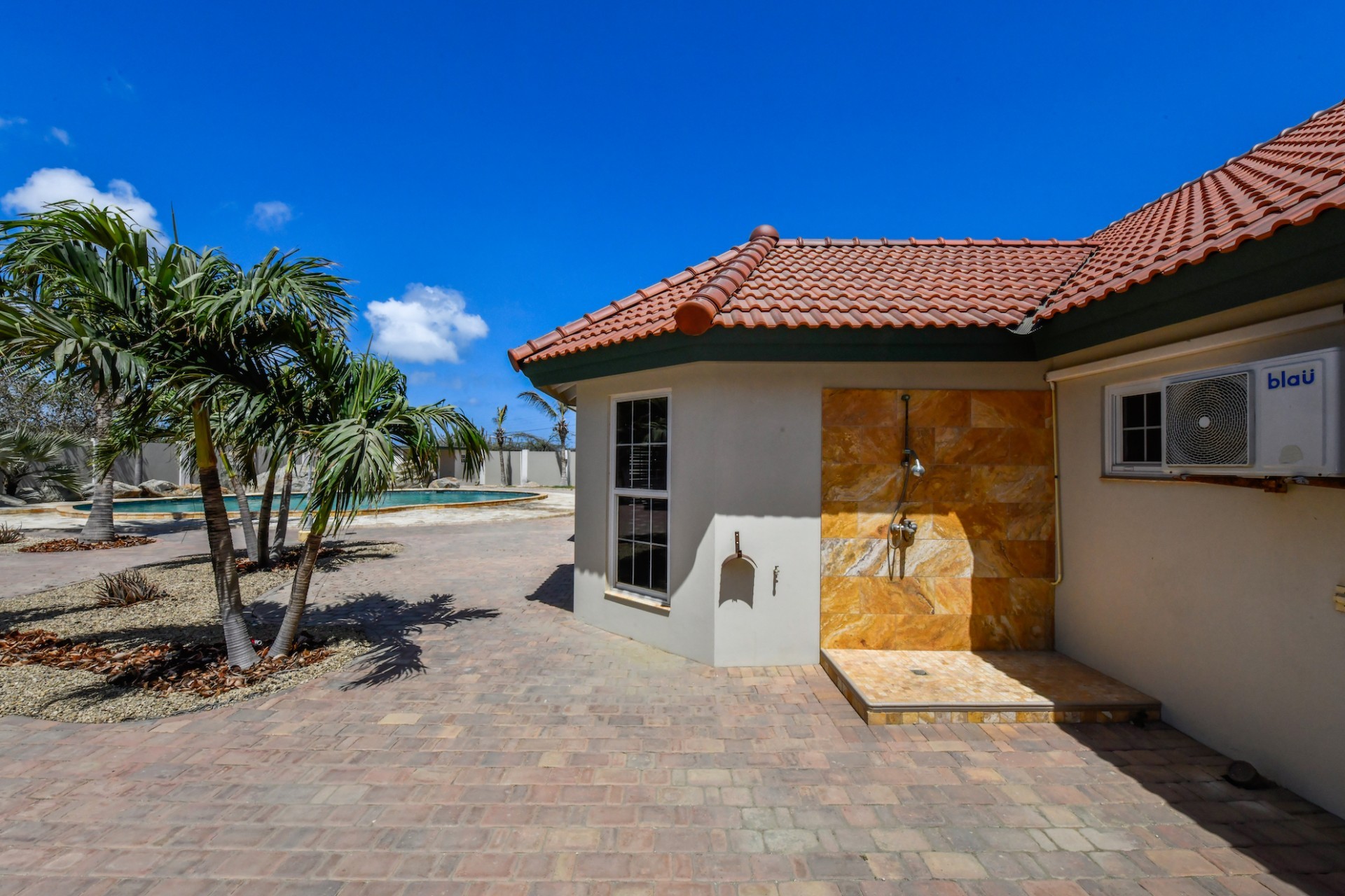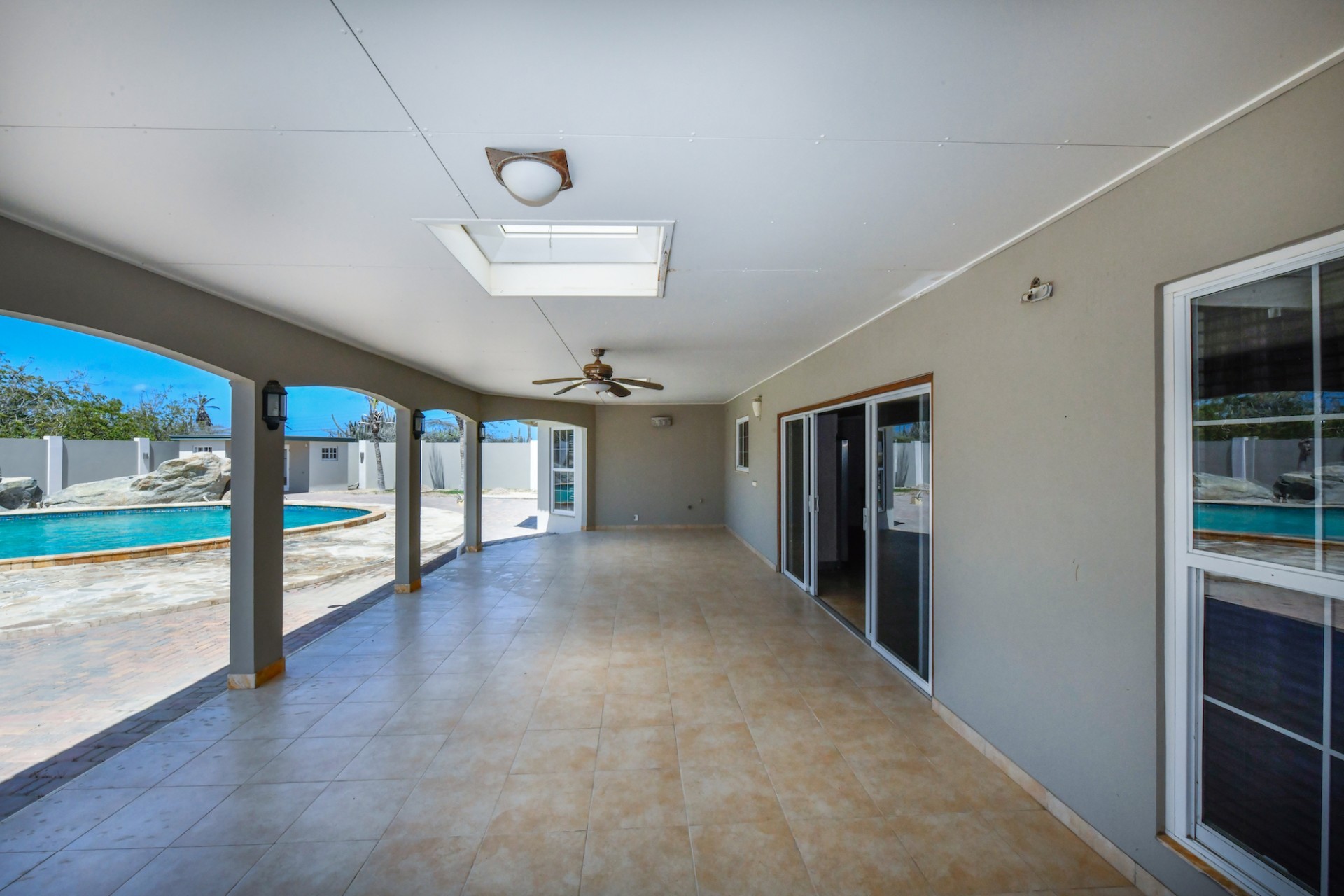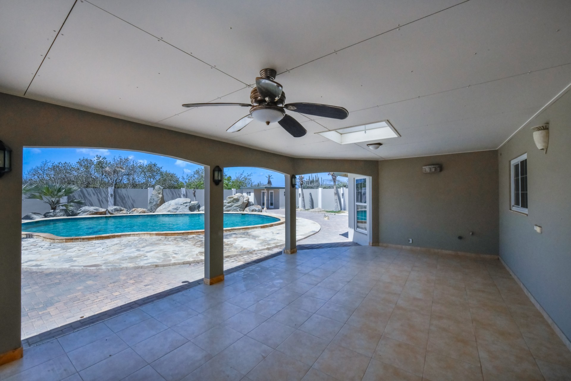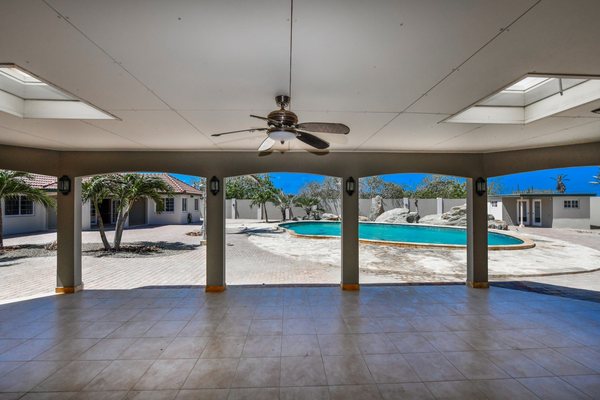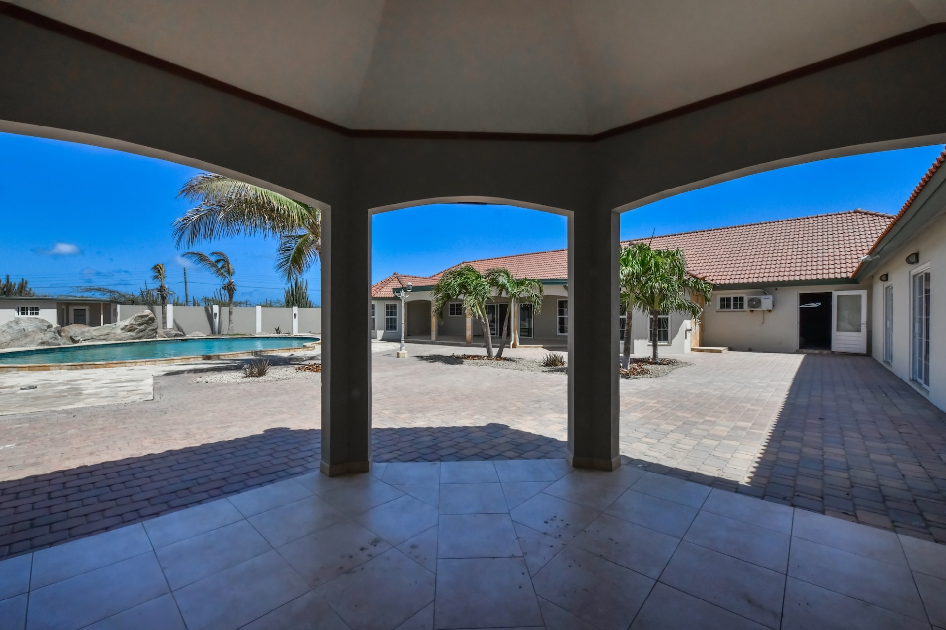 This spacious villa is a gem, the large swimming pool is the eye catcher of this beautiful property. The main house has 5 spacious bedrooms and 2.5 bathrooms. There is a separate guest house with 2 bedrooms and a bathroom. In the yard you will find an extra bathroom. The house is very centrally located in Seroe Janchi, North Aruba. The main house has an open floor plan, with a large fully equipped kitchen. On both sides of the living room you will find bedrooms. A spiral staircase takes you to a separate room where you have a beautiful view over the living room. Outside there is a covered patio with a lovely large swimming pool. A large garage connects the guest house with the main house. In the guest house you will find 2 bedrooms and 1 bathroom. On top of all this there is a storage room of 41m2 that can easily converted in a big office space. This beautiful property is build on 1464m2 property land with a build size of 562m2. Property highlights - 7 bedrooms - 3,5 bathrooms - very large pool - centrally located - guest house - 1464m2 property land - 562m2 build up size (338m2 house, 63m2 garage, 41 storage, 101m2 guest house) For more information or to schedule a viewing please contact Bibi Louwers: +297 569 7343 or [email protected]