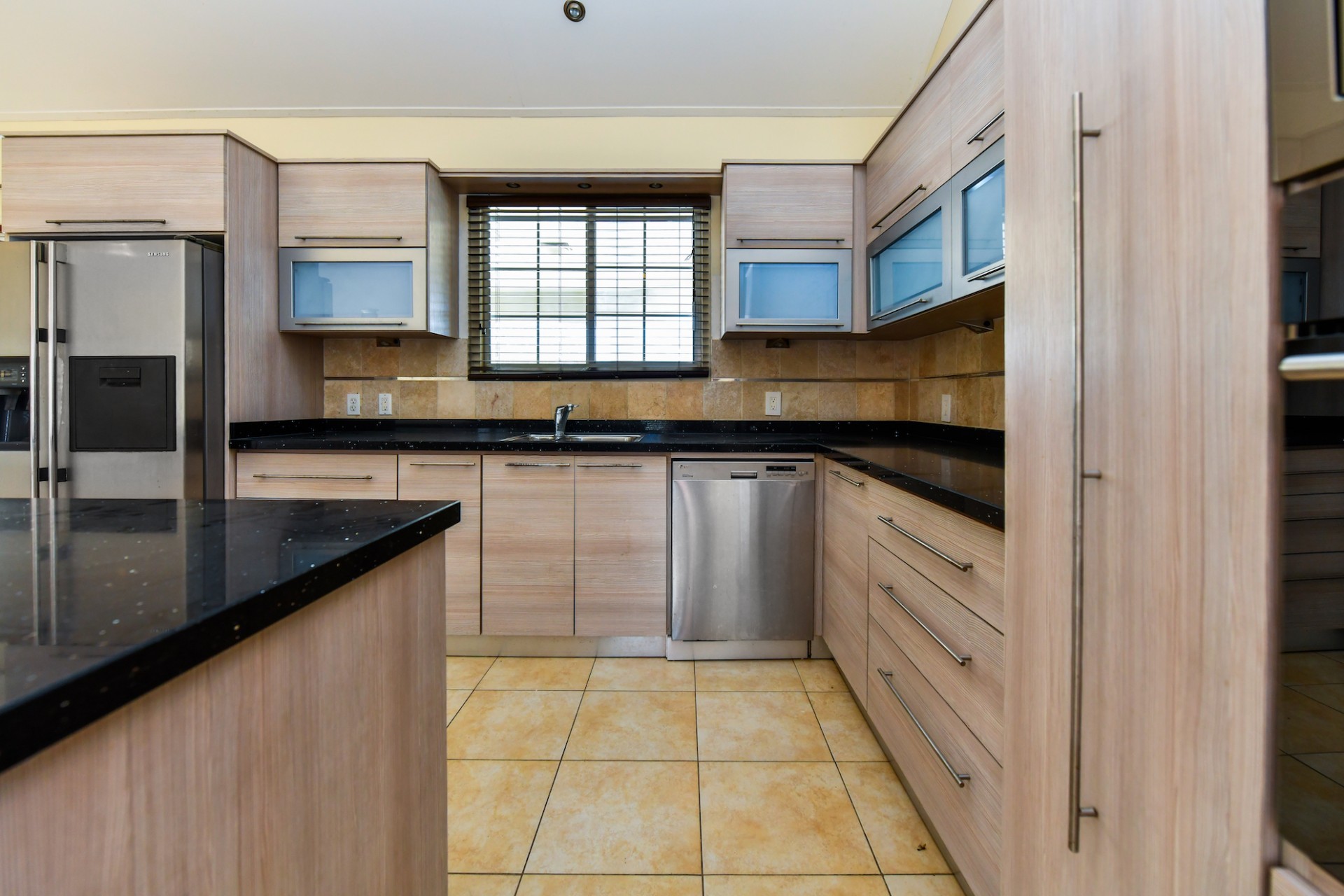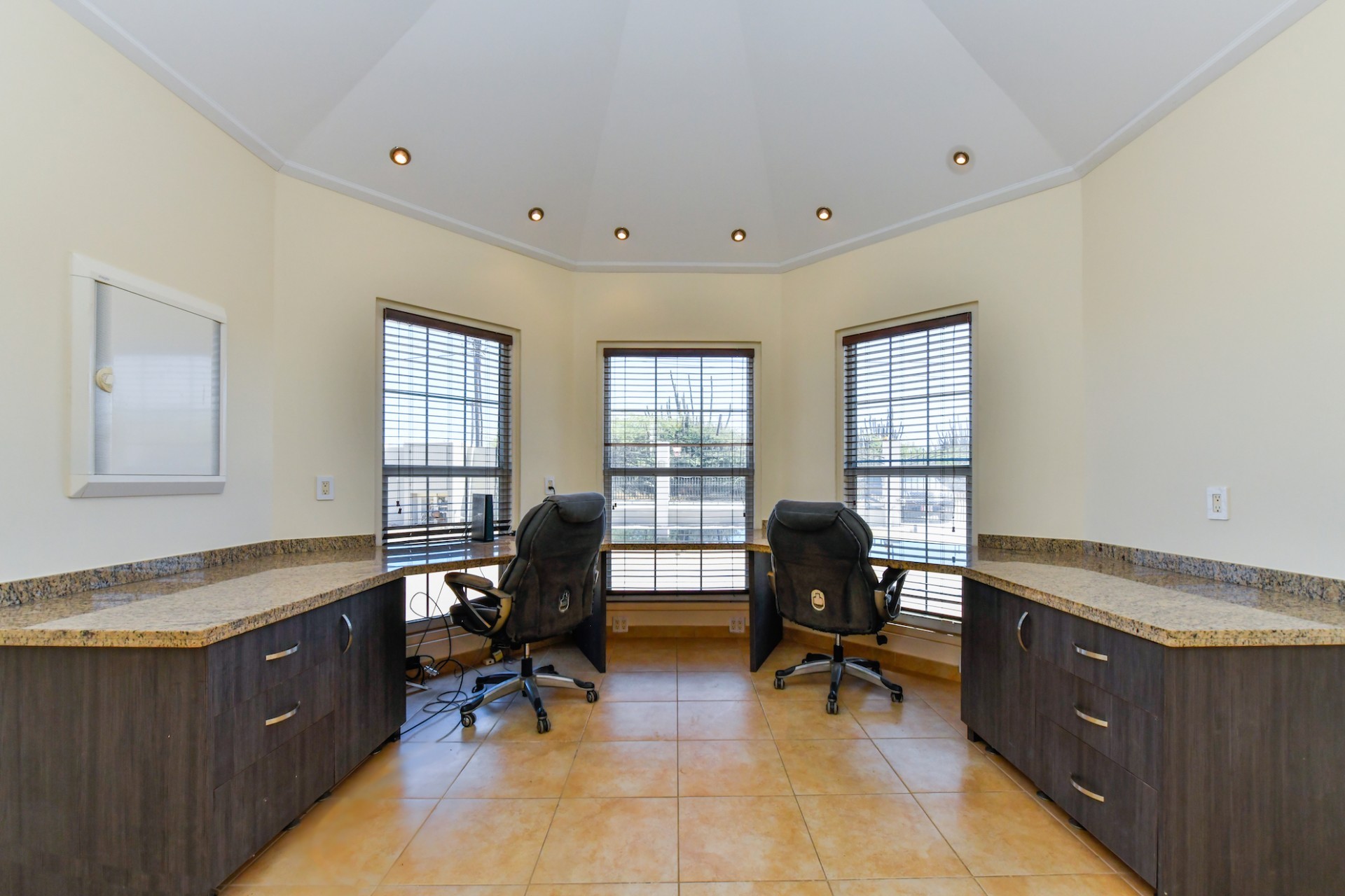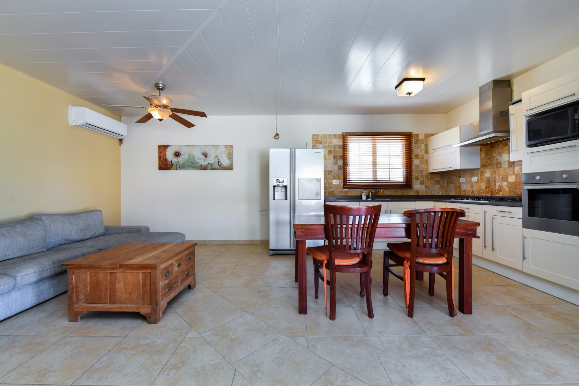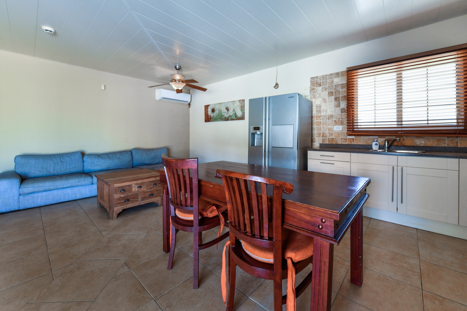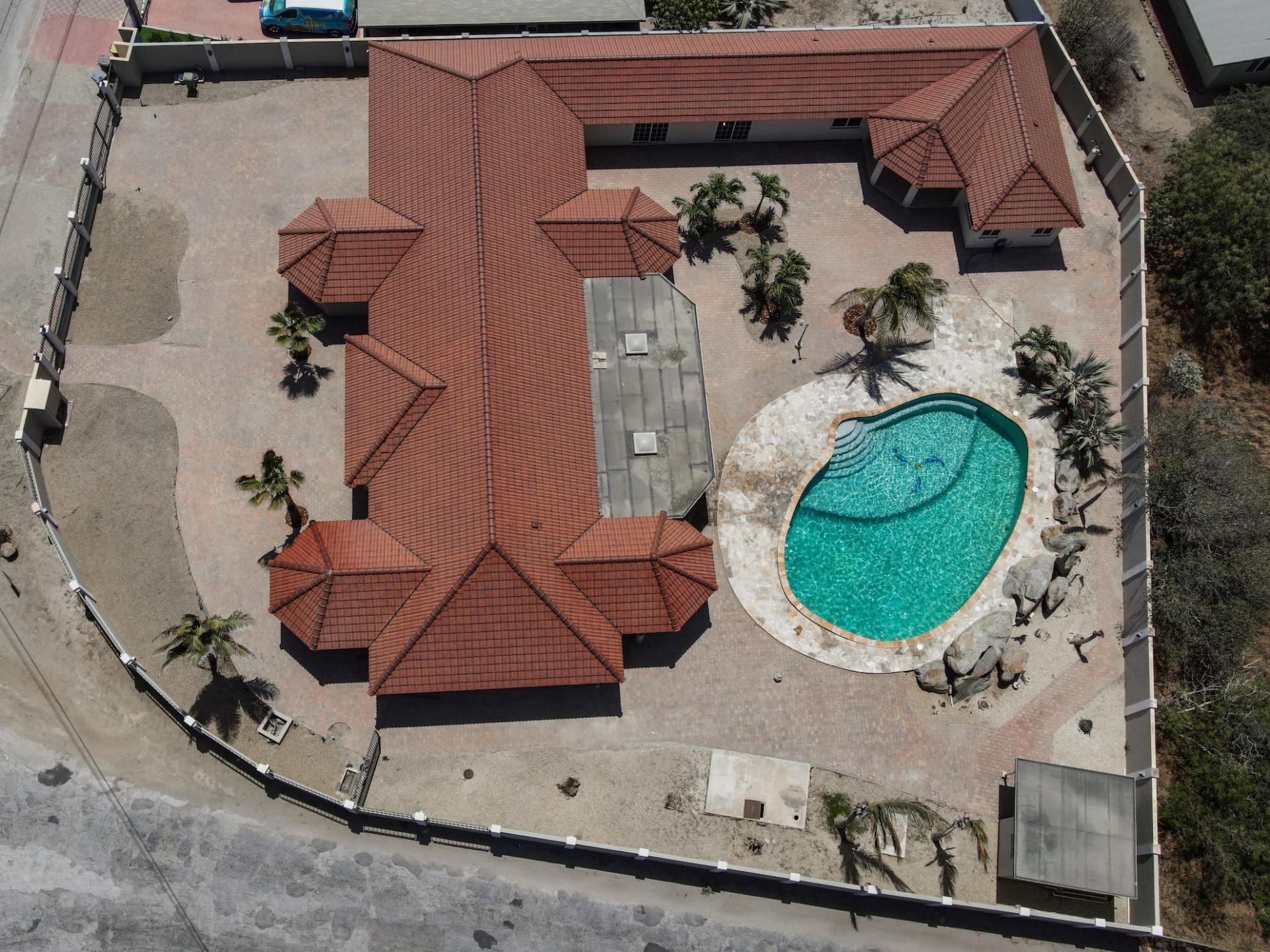 This spacious villa is a gem, the large swimming pool is the eye catcher of this beautiful property. The main house has 5 spacious bedrooms and 2.5 bathrooms. There is a separate guest house with 2 bedrooms and a bathroom. In the yard you will find an extra bathroom. The house is very centrally located in Seroe Janchi, North Aruba. The main house has an open floor plan, with a large fully equipped kitchen. On both sides of the living room you will find bedrooms. A spiral staircase takes you to a separate room where you have a beautiful view over the living room. Outside there is a covered patio with a lovely large swimming pool. A large garage connects the guest house with the main house. In the guest house you will find 2 bedrooms and 1 bathroom. On top of all this there is a storage room of 41m2 that can easily converted in a big office space. This beautiful property is build on 1464m2 property land with a build size of 562m2. Property highlights - 7 bedrooms - 3,5 bathrooms - very large pool - centrally located - guest house - 1464m2 property land - 562m2 build up size (338m2 house, 63m2 garage, 41 storage, 101m2 guest house) For more information or to schedule a viewing please contact Bibi Louwers: +297 569 7343 or [email protected]