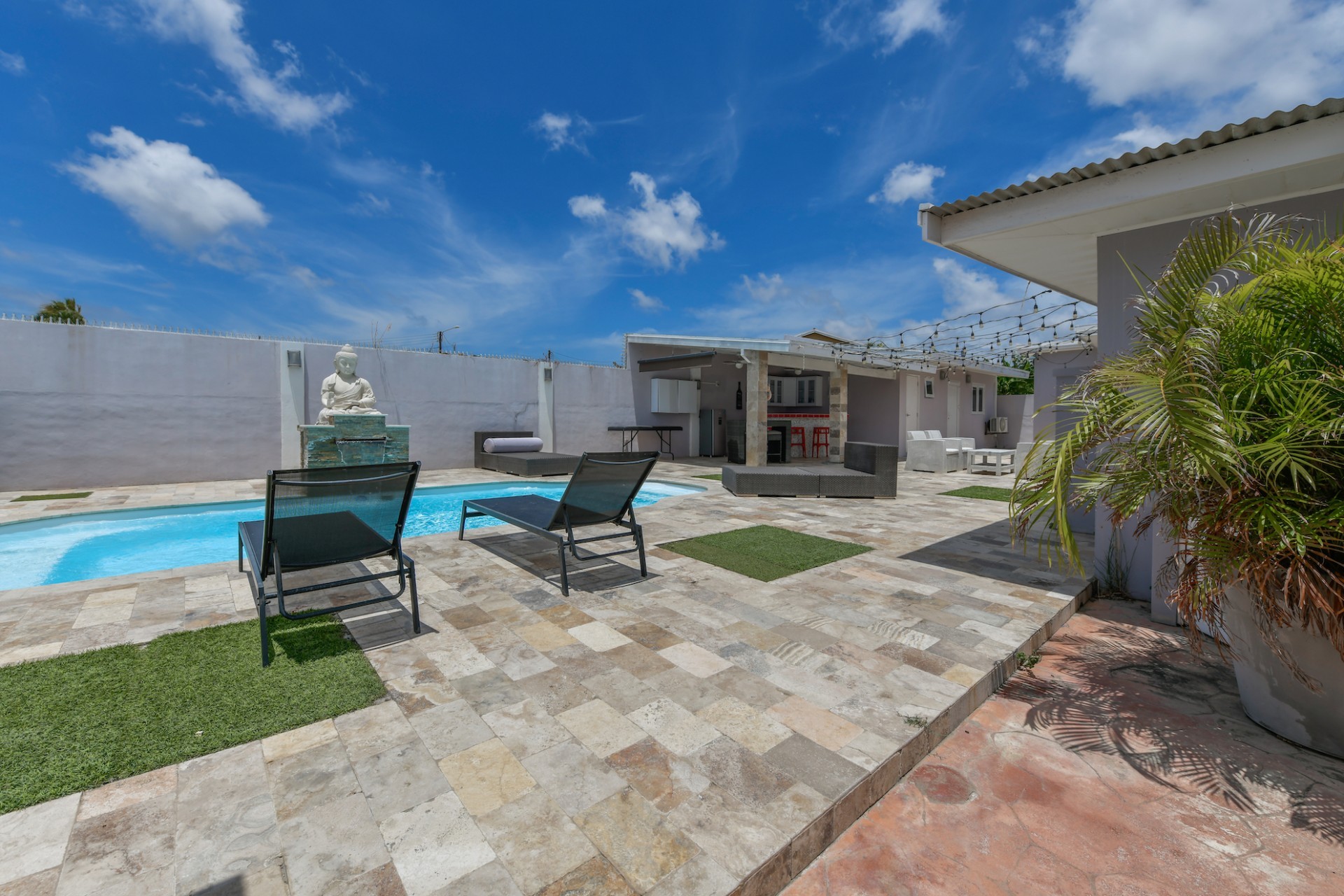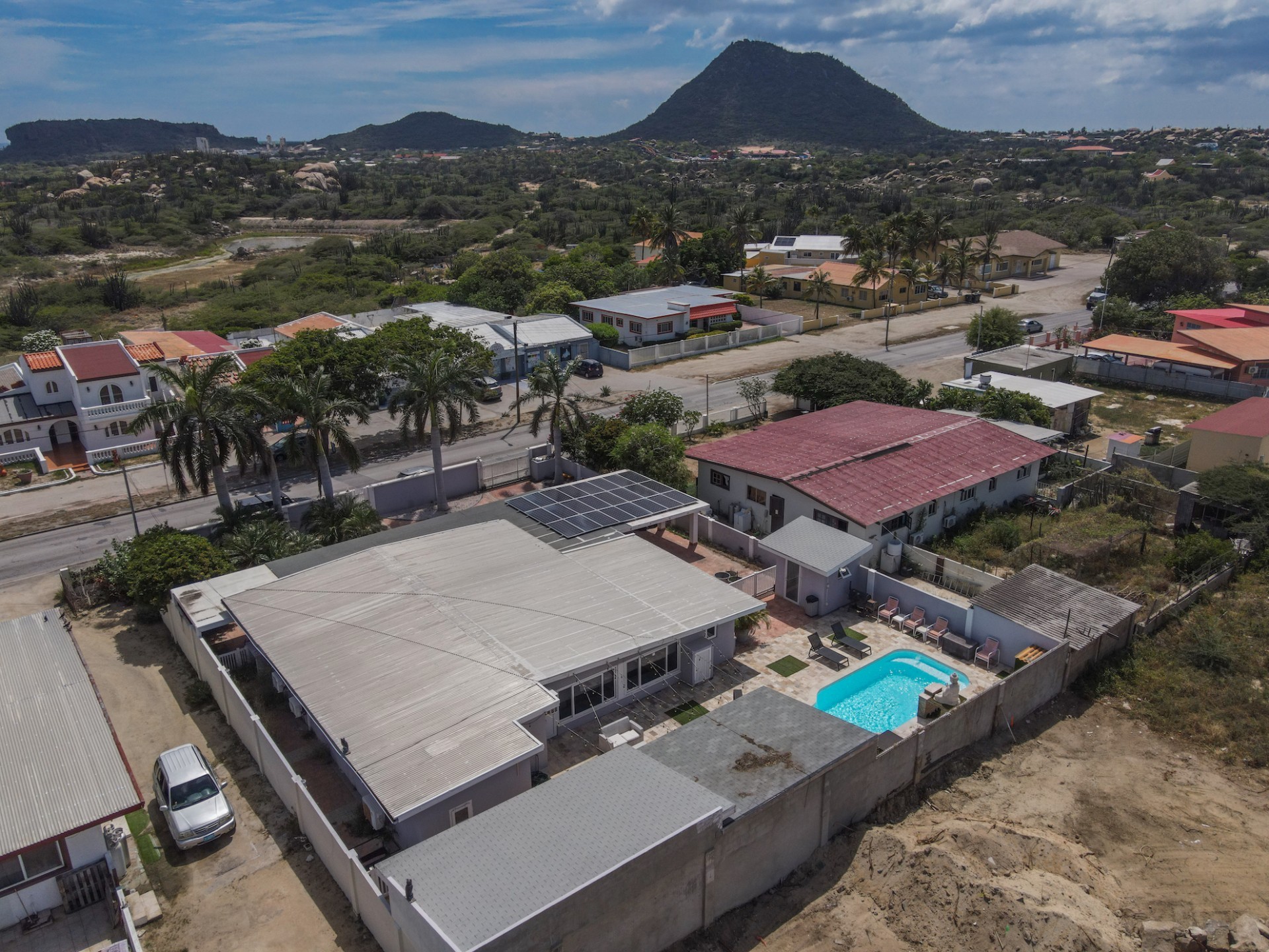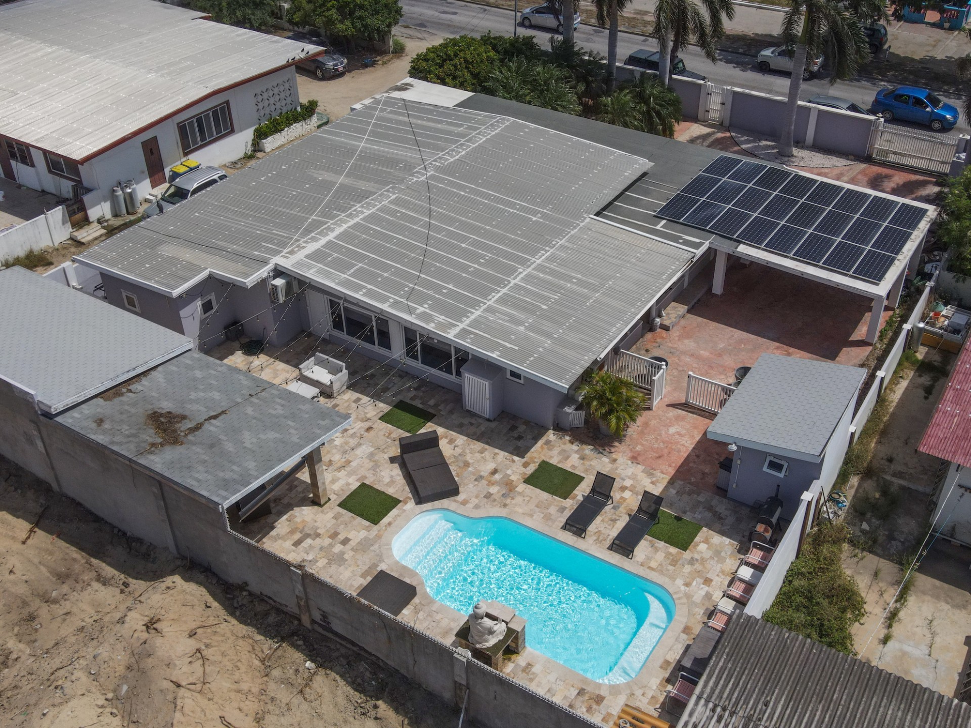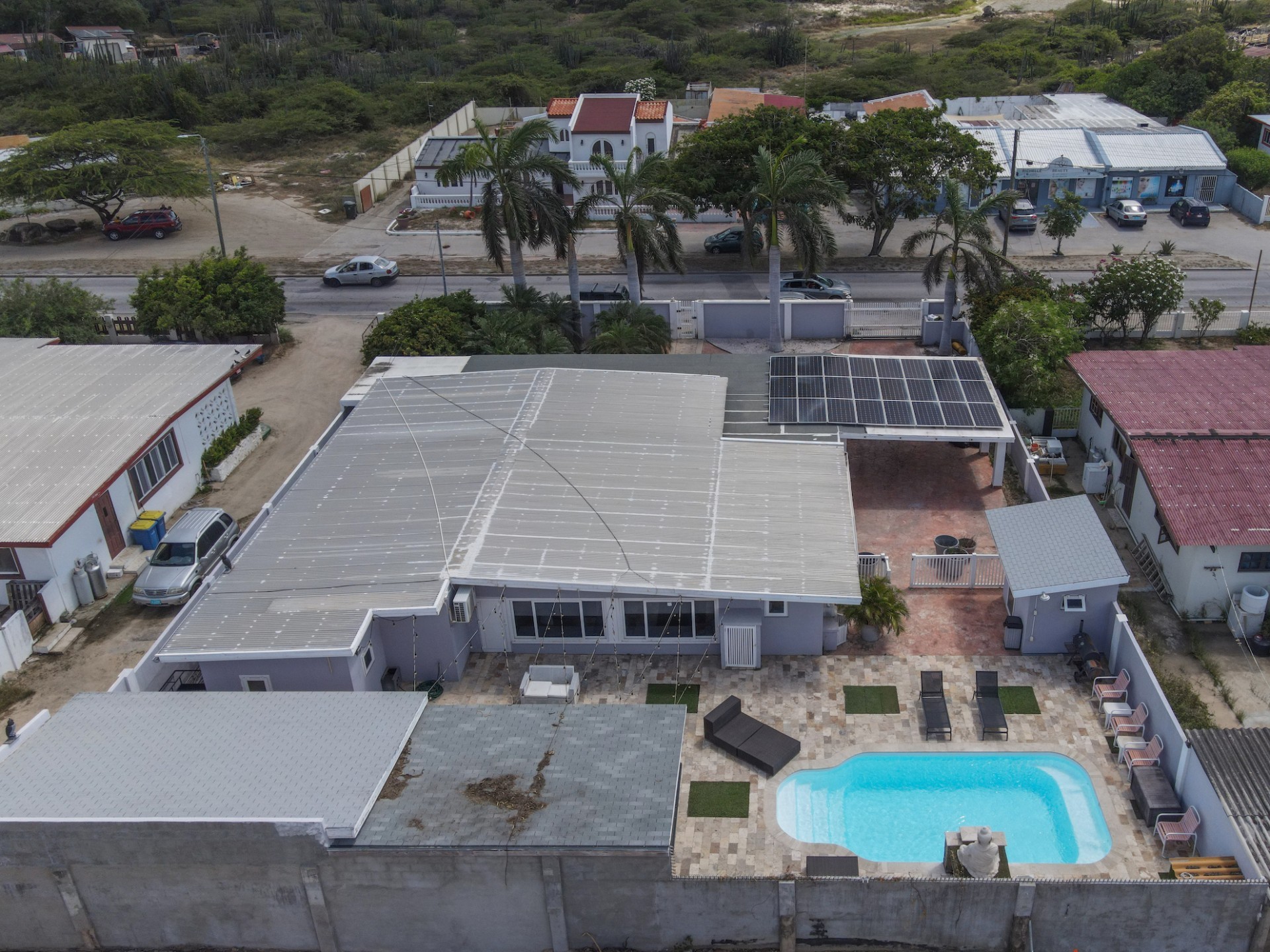 Welcome to Santa Cruz 360, a spacious 5-bedroom, 4-bathroom home with endless potential, centrally located in the heart of Aruba between Piedra Plat and Siribana on Rt.4. Sitting on 875m² of property land, this property combines convenience with privacy. While positioned close to the main street for easy access, the home remains peaceful thanks to double-pane windows that keep outside noise away. The main house features 4 bedrooms and 2 bathrooms, a spacious kitchen with abundant cabinets and storage, perfect for cooking and family gatherings. The bright living and sitting areas make the house inviting and functional for everyday life. In addition, the property includes a separate studio apartment with its own bathroom, perfect for guests, extended family, or generating rental income. Connected to one of the bedrooms a bonus room provides flexible space for a small gym, office, or den. Additional conveniences include a large outside storage room, solar panels for energy efficiency, and a poolside bathroom for outdoor comfort. The outdoor spaces are where this property truly shines. The huge front porch makes a bold statement, offering a grand welcome and the perfect spot to relax with morning coffee or enjoy breezy afternoons. In the back, a large backyard with swimming pool invites you to create your very own paradise—ideal for relaxing, entertaining, and soaking up Aruba’s sunshine. The outdoor kitchen, bar, and BBQ area elevate gatherings into unforgettable experiences, while the covered carport adds practicality. With its spacious layout and versatile design, Santa Cruz 360 offers endless possibilities—whether as a welcoming family home, a multi-unit rental investment, or a relaxing vacation retreat. Featuring 5 bedrooms and 4 bathrooms, this property is centrally located for convenience while maintaining a sense of privacy. Due to its prime location on the main road, Santa Cruz 360 also presents a great commercial opportunity, making it ideal for a mixed-use project, office space, or a retail space. Full of character and charm, this property is ready for its next chapter with just a touch of TLC to make it shine. Property Highlights: Main house:4 bedrooms / 2 bathrooms Studio apartment Fully furnished Private Pool Outdoor bathroom Outdoor kitchen Covered carport Solar panels Fully fenced Property Land For viewing or more information contact