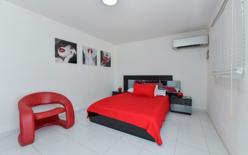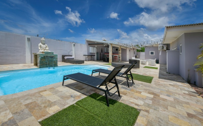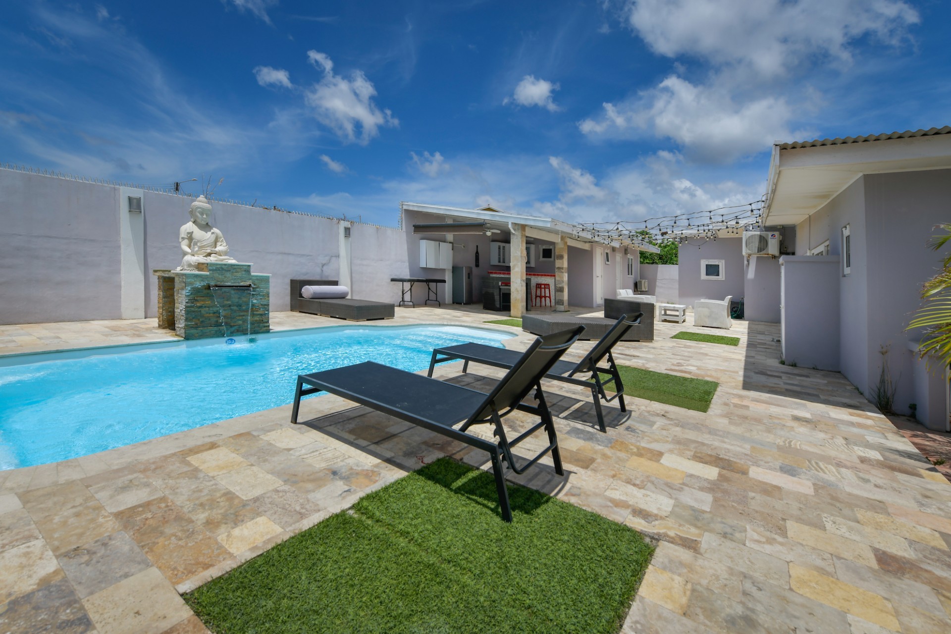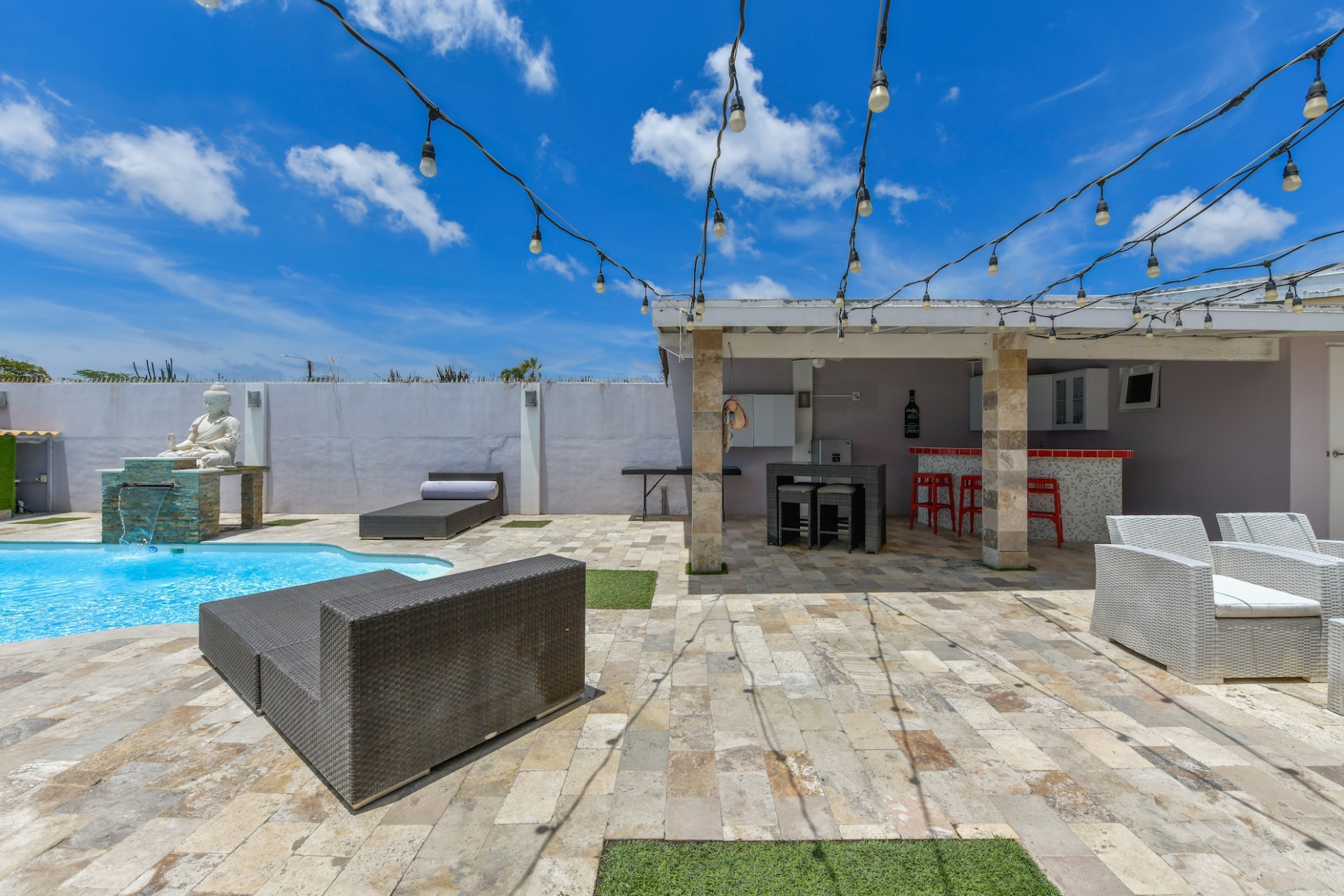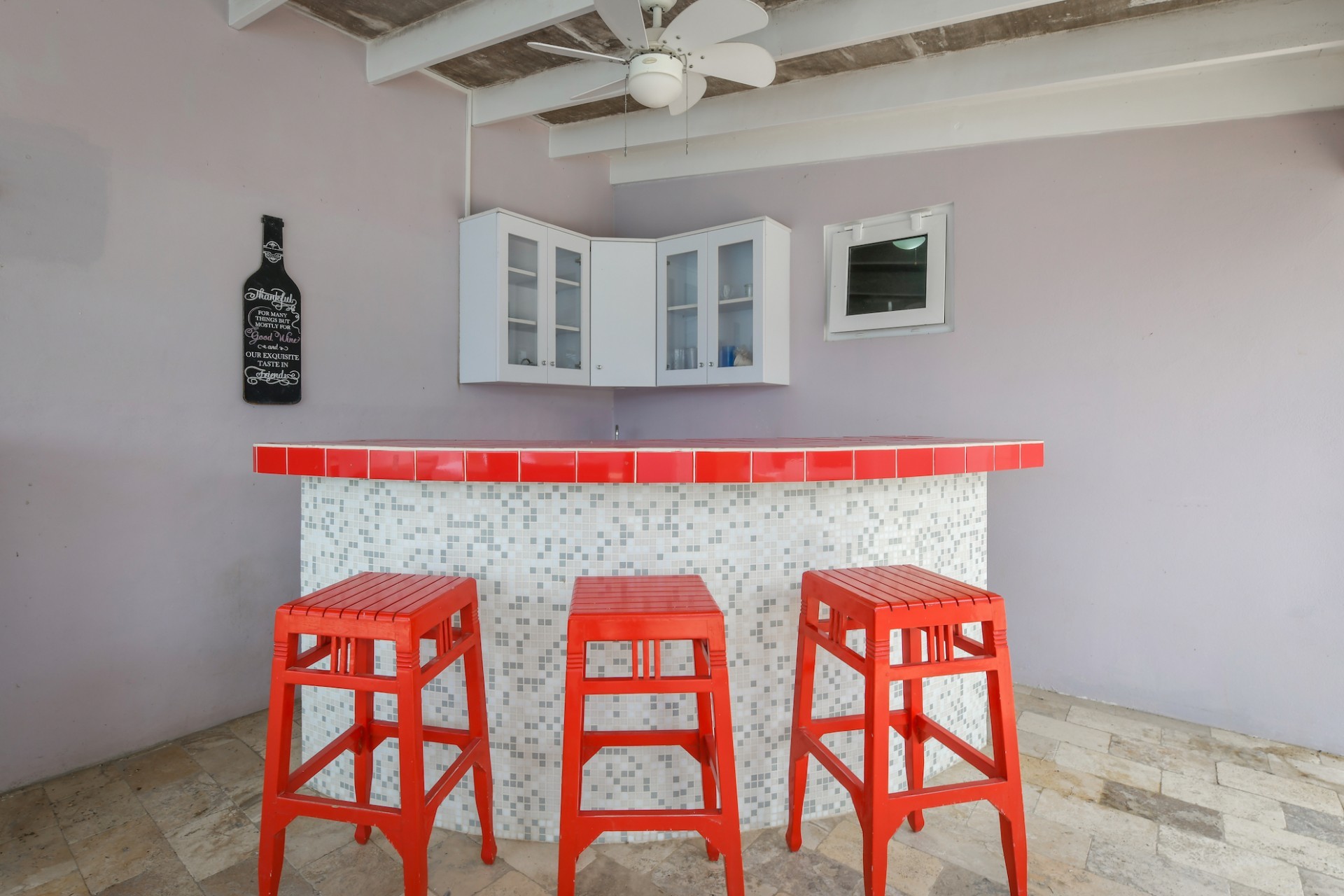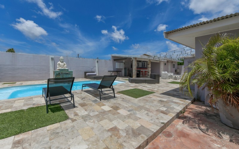 Welcome to Santa Cruz 360, a spacious 5-bedroom, 4-bathroom home with endless potential, centrally located in the heart of Aruba between Piedra Plat and Siribana on Rt.4. Sitting on 875m² of property land, this property combines convenience with privacy. While positioned close to the main street for easy access, the home remains peaceful thanks to double-pane windows that keep outside noise away. The main house features 4 bedrooms and 2 bathrooms, a spacious kitchen with abundant cabinets and storage, perfect for cooking and family gatherings. The bright living and sitting areas make the house inviting and functional for everyday life. In addition, the property includes a separate studio apartment with its own bathroom, perfect for guests, extended family, or generating rental income. Connected to one of the bedrooms a bonus room provides flexible space for a small gym, office, or den. Additional conveniences include a large outside storage room, solar panels for energy efficiency, and a poolside bathroom for outdoor comfort. The outdoor spaces are where this property truly shines. The huge front porch makes a bold statement, offering a grand welcome and the perfect spot to relax with morning coffee or enjoy breezy afternoons. In the back, a large backyard with swimming pool invites you to create your very own paradise—ideal for relaxing, entertaining, and soaking up Aruba’s sunshine. The outdoor kitchen, bar, and BBQ area elevate gatherings into unforgettable experiences, while the covered carport adds practicality. With its spacious layout and versatile design, Santa Cruz 360 offers endless possibilities—whether as a welcoming family home, a multi-unit rental investment, or a relaxing vacation retreat. Featuring 5 bedrooms and 4 bathrooms, this property is centrally located for convenience while maintaining a sense of privacy. Due to its prime location on the main road, Santa Cruz 360 also presents a great commercial opportunity, making it ideal for a mixed-use project, office space, or a retail space. Full of character and charm, this property is ready for its next chapter with just a touch of TLC to make it shine. Property Highlights: Main house:4 bedrooms / 2 bathrooms Studio apartment Fully furnished Private Pool Outdoor bathroom Outdoor kitchen Covered carport Solar panels Fully fenced Property Land For viewing or more information contact