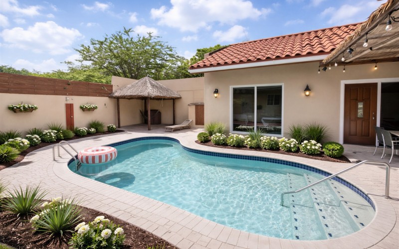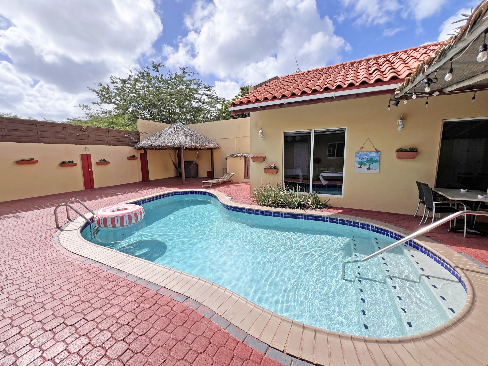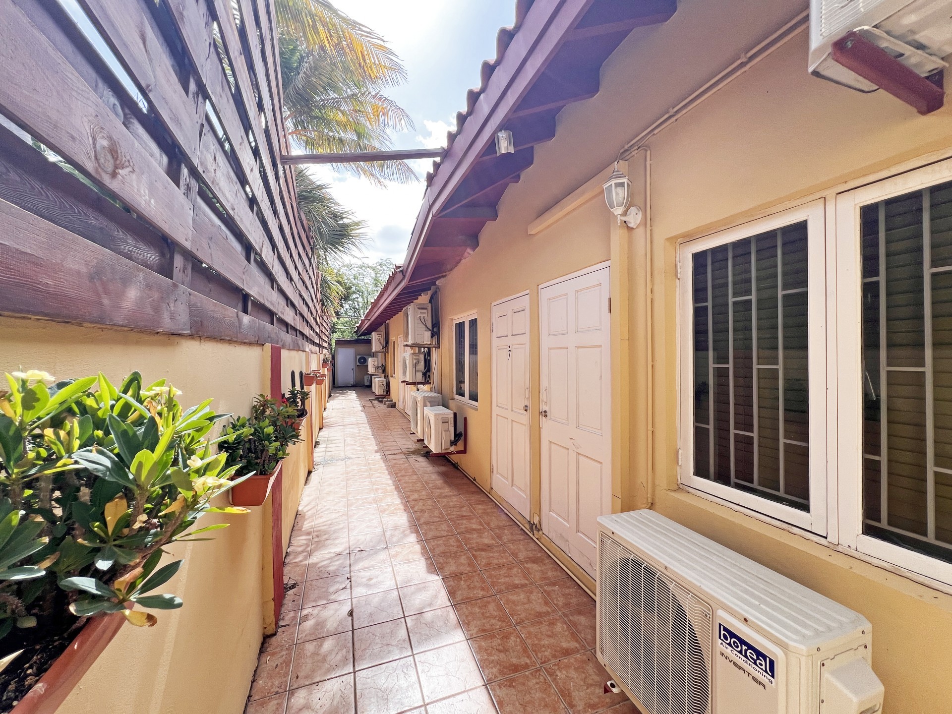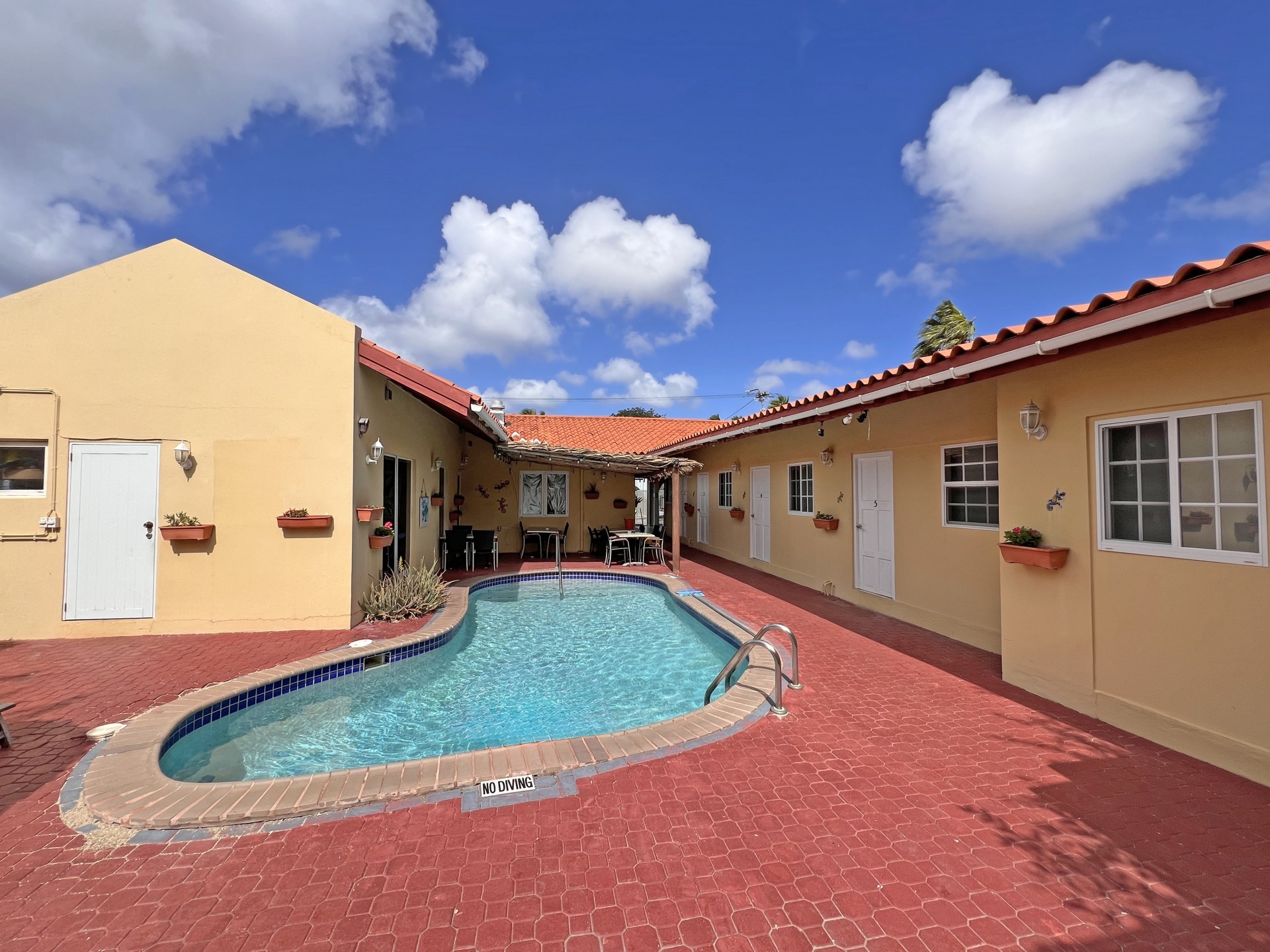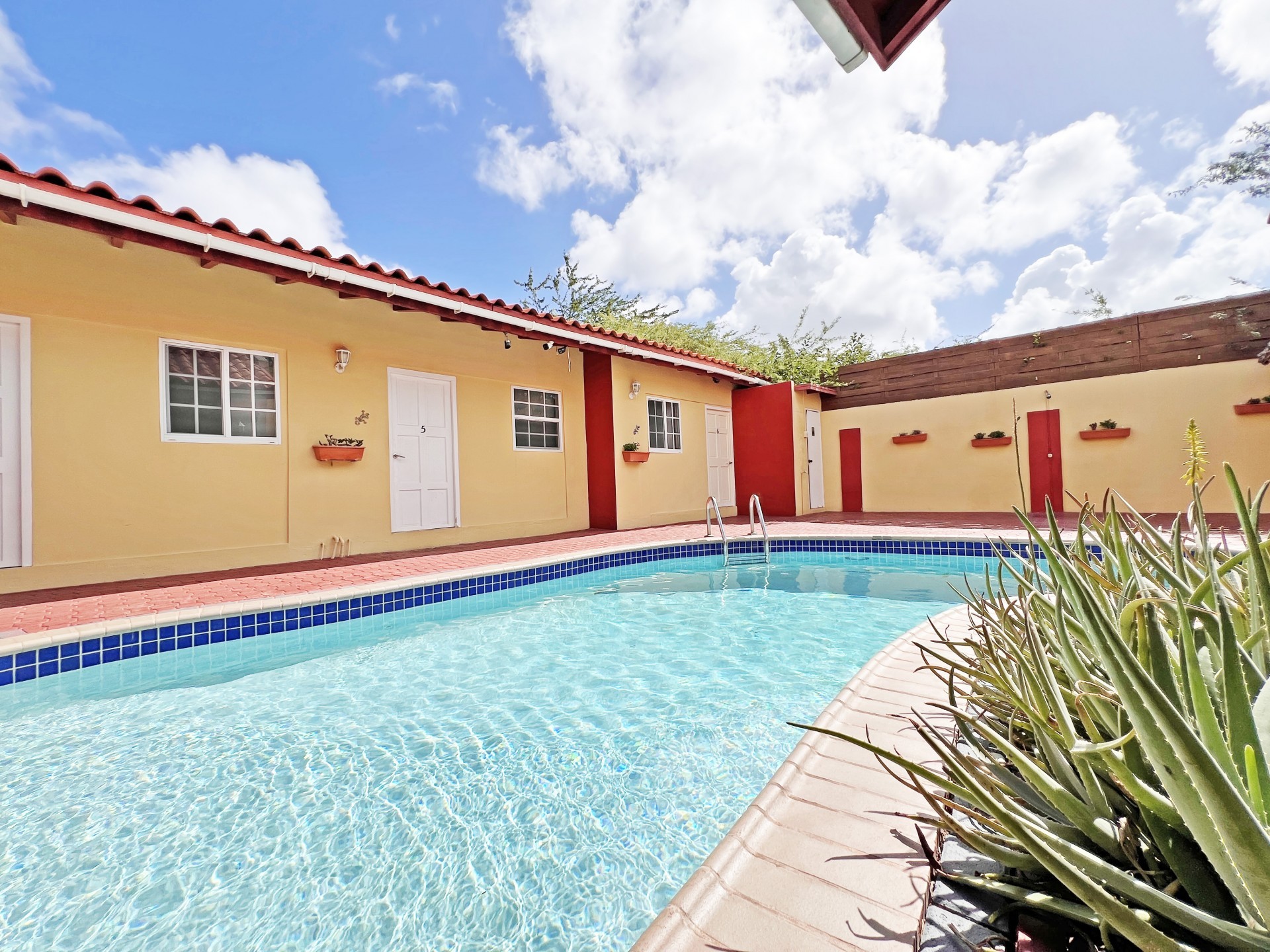 Rental Investment Near Aruba’s Top Beaches in Town This short-term rental investment opportunity is ideally located just minutes from one of Aruba’s most popular beaches and close to the airport, making it highly attractive to vacationers seeking convenience, accessibility, and proximity to major attractions. The location supports strong year-round tourist demand, a key driver for high occupancy and competitive nightly rates. Situated on 735 m² of land, this multi-unit property offers significant upside for investors willing to execute a light renovation and furniture upgrade. While the property is operational, it requires a facelift and updated furnishings, allowing a new owner to reposition the asset, increase nightly rates, and maximize returns. 'Generated renderings also added in the photo album for visuals and inspiration' Current configuration includes: • 9 rental units • 3 one-bedroom apartments • 6 studio units • 9 on-site parking spaces • Restaurant and dining area, offering potential for an additional revenue stream or guest amenity (kitchen equipment not included) • Large swimming pool with ample surrounding deck space, ideal for guest relaxation and social use • Outdoor bathroom facility for pool and common-area convenience • Gazebo and BBQ area, enhancing the guest experience and increasing booking appeal • Dedicated storage area for maintenance and operational needs • Terrace areas suitable for lounging and entertaining Flexible Layout With Strong Upside Potential Investors have two clear value-add strategies: 1. Reconfigure the property into 6 larger units, each featuring 2 bedrooms and 1 bathroom, targeting families and higher-spending tourist groups with increased nightly rates; or 2. Maintain the existing 9-unit layout, refresh interiors, optimize furnishings, and implement professional short-term rental management to drive higher occupancy and ADR. With the right upgrades and management strategy, this property has the potential to significantly improve average daily rates, guest reviews, and overall cash flow. Supported by Aruba’s resilient tourism market and limited availability of well-located multi-unit vacation rental properties, this asset represents a compelling value-add opportunity for investors seeking scalable short-term rental income and long-term appreciation. In walking distance from Surfside Beach and a couple blocks away from he best restaurants of Oranjestad like Barefoot, Reflections Beach & Pinchos. For information, viewings and to present it's full potential please contact Cado de Lannoy 📧