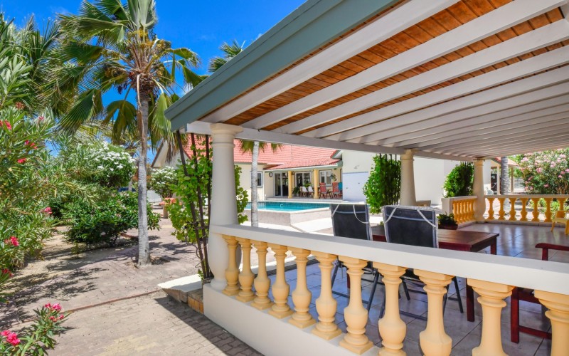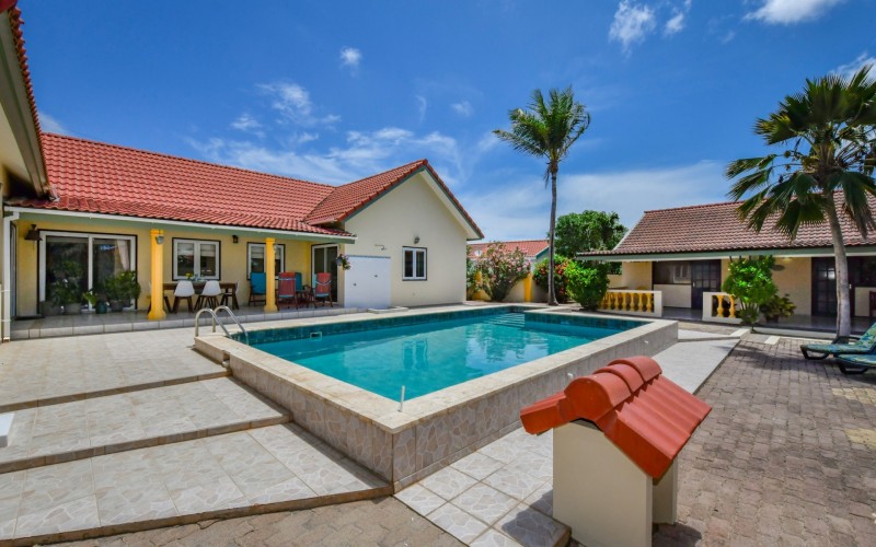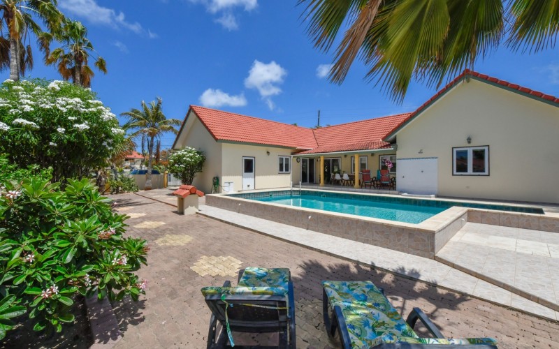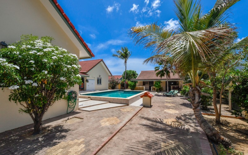 Prime Investment Opportunity – Stunning Home Near Town and Beach! Attractively priced below appraised market value! Discover this exceptional property offering the perfect blend of space, luxury, and location! Nestled on a vast 1205 m² parcel of land, this solidly built and recently renovated home is ready to welcome you. Key Features: • Centrally Located: Just minutes from town, the beach, and shops. • Spacious Living: Large living room with an adjacent kitchen that can easily be transformed into a beautiful open-plan space. • Comfort and Luxury: 3 well-sized bedrooms, including a master with a walk-in closet, and 2 modern bathrooms. • Functional Layout: Features a handy pantry, cosy porch for relaxation, and a good-sized swimming pool for those sunny days. • Bonus Income Potential: Two big one-bedroom apartments, each with their own bathroom and walk-in closet—perfect for rental income or guests. Lush .tropical garden • Practical Additions: Carport for two cars, a garage, and high-end finishes throughout with brand-new windows and doors. The house received fresh paint in 2024. This home is an ideal investment opportunity, perfectly suited for those looking for a ready-to-move-in property with space for expansion or rental options. Don’t miss this rare chance to own a slice of paradise in a prime location!
