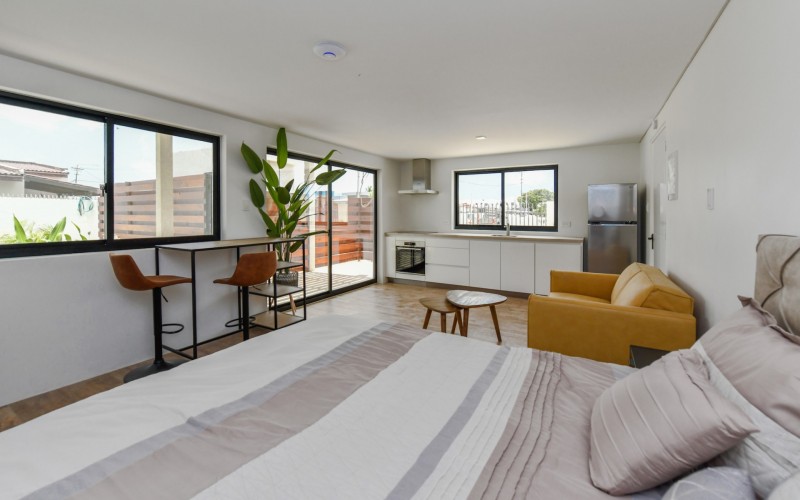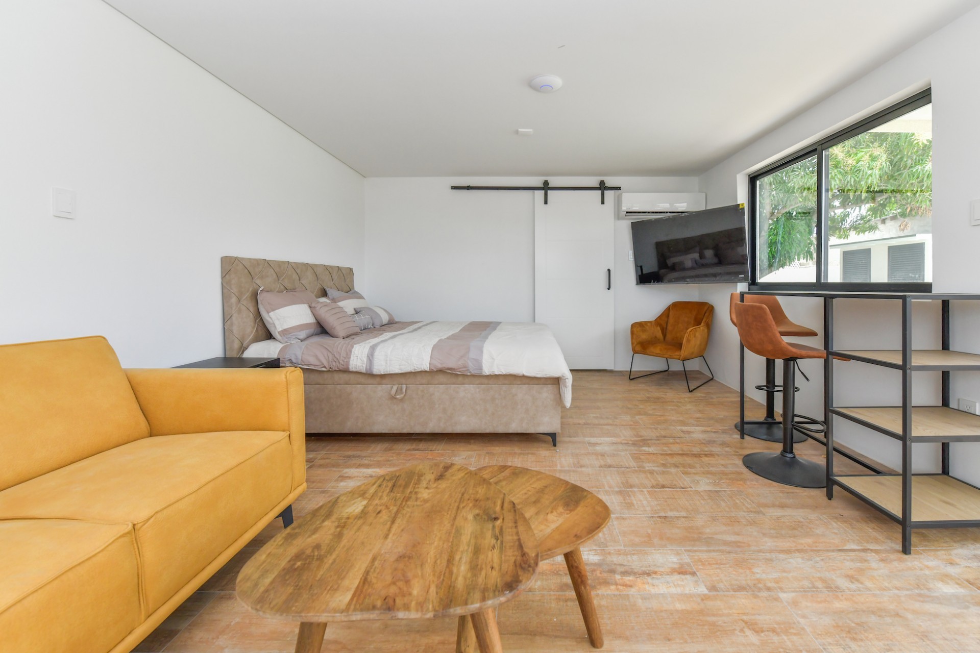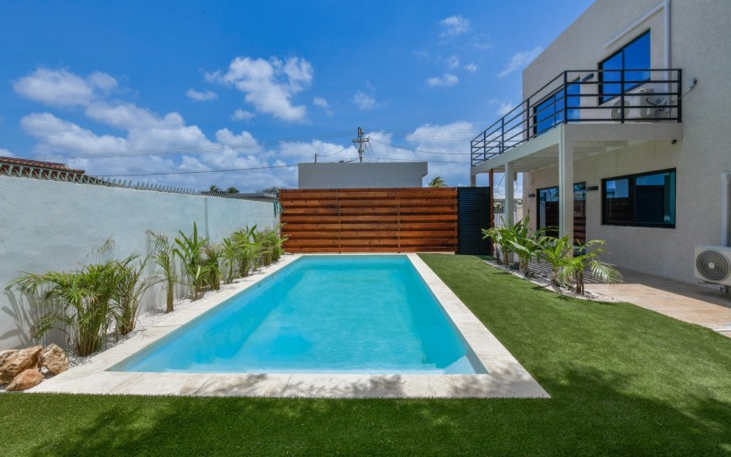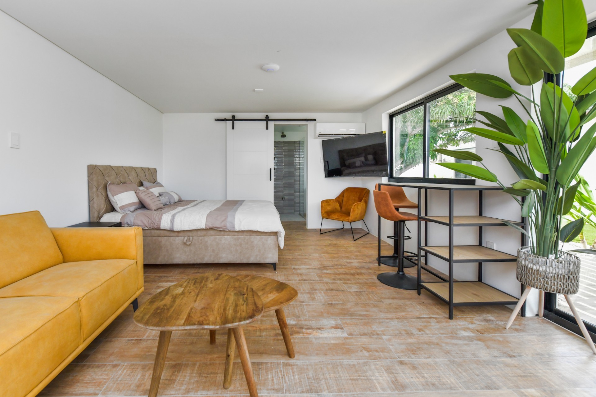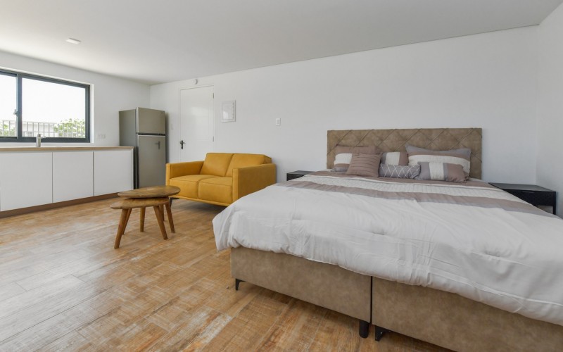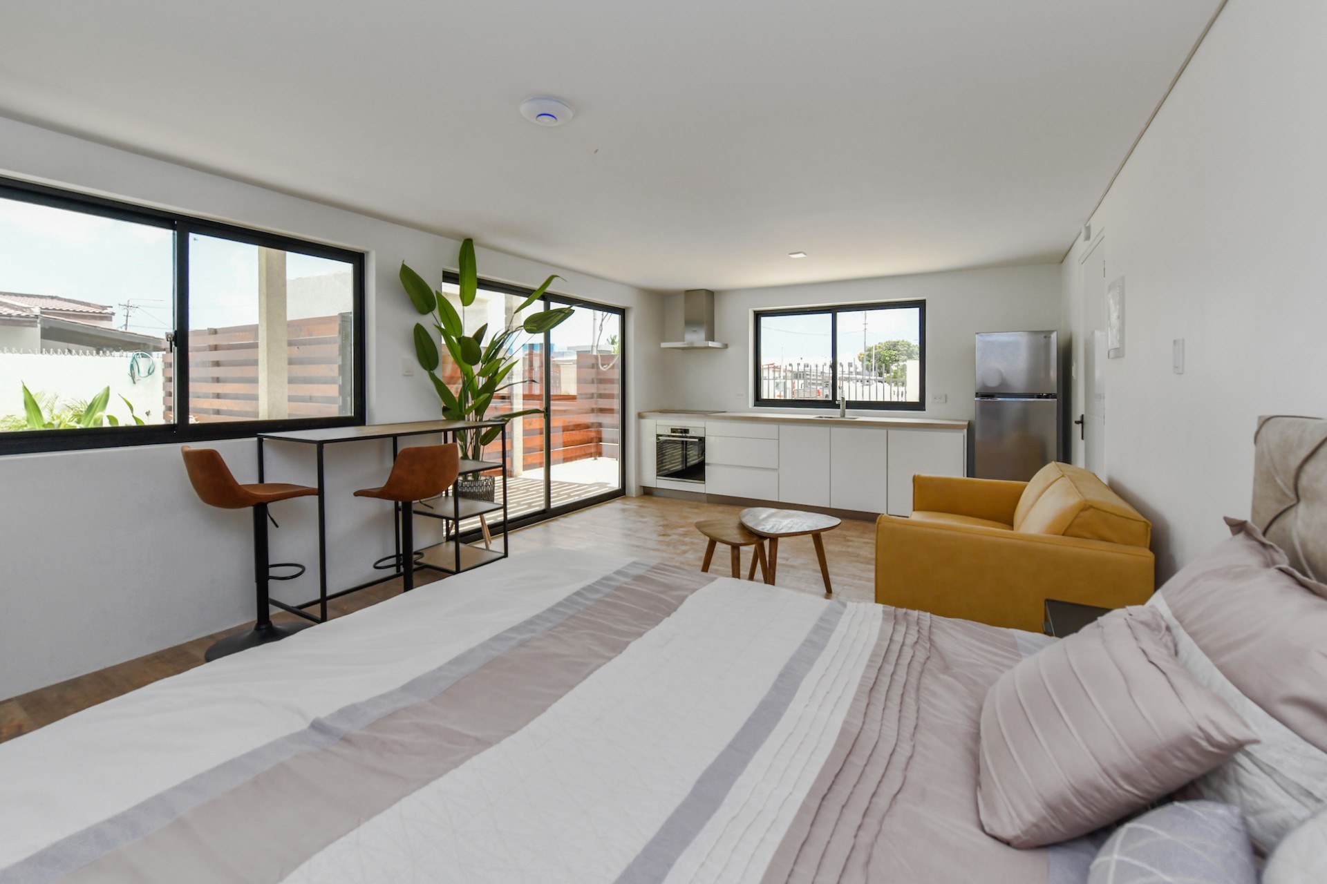 Spacious Studio Apartment, unit 2 Located on a 727m² property, this beautiful and well constructed complex features a main building with 10 high-end studio apartments and 1 two bedroom apartment. Apartment 2, situated on the ground floor, is a 59m² studio with a practical layout. Inside, you will find a premium quality European kitchen complete with all appliances, all bedroom and living room furniture and light fixtures and a private Grof by Kohler luxury bathroom. The apartment includes a 23.5m² well positioned outdoor terrace, positioned at the front of the building, providing a comfortable and relaxing outdoor space. The building is constructed with solid concrete blocks and columns, ensuring durability. The walls are finished with A1 plaster and paint. The apartment has a modern European and refined look, featuring wooden sliding doors and black aluminum-framed double glass isolated windows. The flooring is covered with high-quality Brazilian ceramic tiles, adding to the overall elegance. A split-unit air conditioner efficiently cools the entire apartment. The communal garden offers various well-designed amenities, including all outdoor furniture, swimming pool and pool deck and a barbecue area with pergola. Additionally, the outdoor space features a communal washer and dryer, extra seating areas, walkways, garden lighting, and lush greenery with plants and trees, creating a relaxing atmosphere. The apartment is located on a spacious paved road in center Oranjestad: Rudolf Arendsstraat 42. Just a few minutes' drive from the cruiseterminal, beaches and and restaurants. It's all conveniently nearby, making this an ideal place to live or enjoy a holiday in your second home. Key Features: 1 studio apartment Property land Close proximity to Oranjestad Spacious build-up area: 59m² including 23.5m2 outside terrace Community amenities include pool, BBQ area and sitting areas Low monthly HOA fee Turn key, including all premium European kitchen, furniture and appliances Don’t miss out on this unique opportunity! Contact us today to learn more or schedule a visit! Bibi Louwers +2975697343