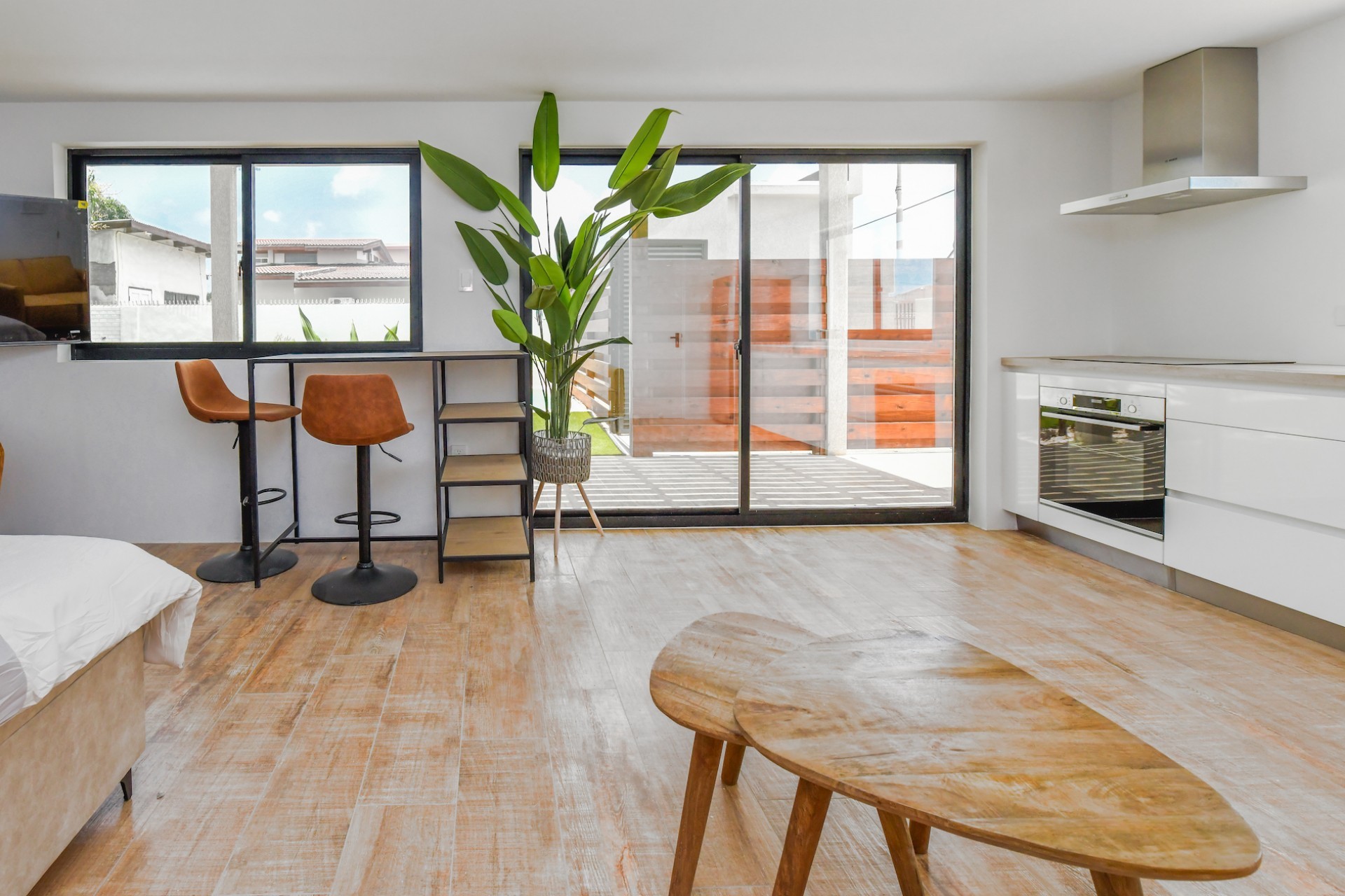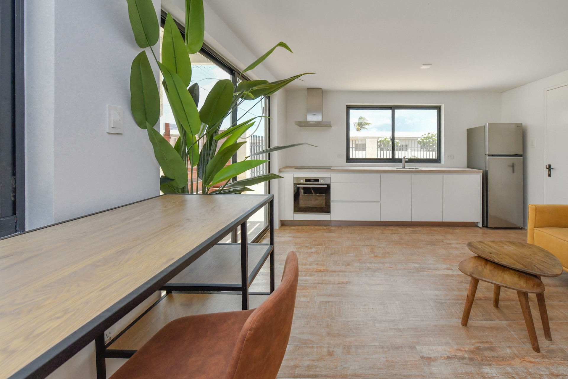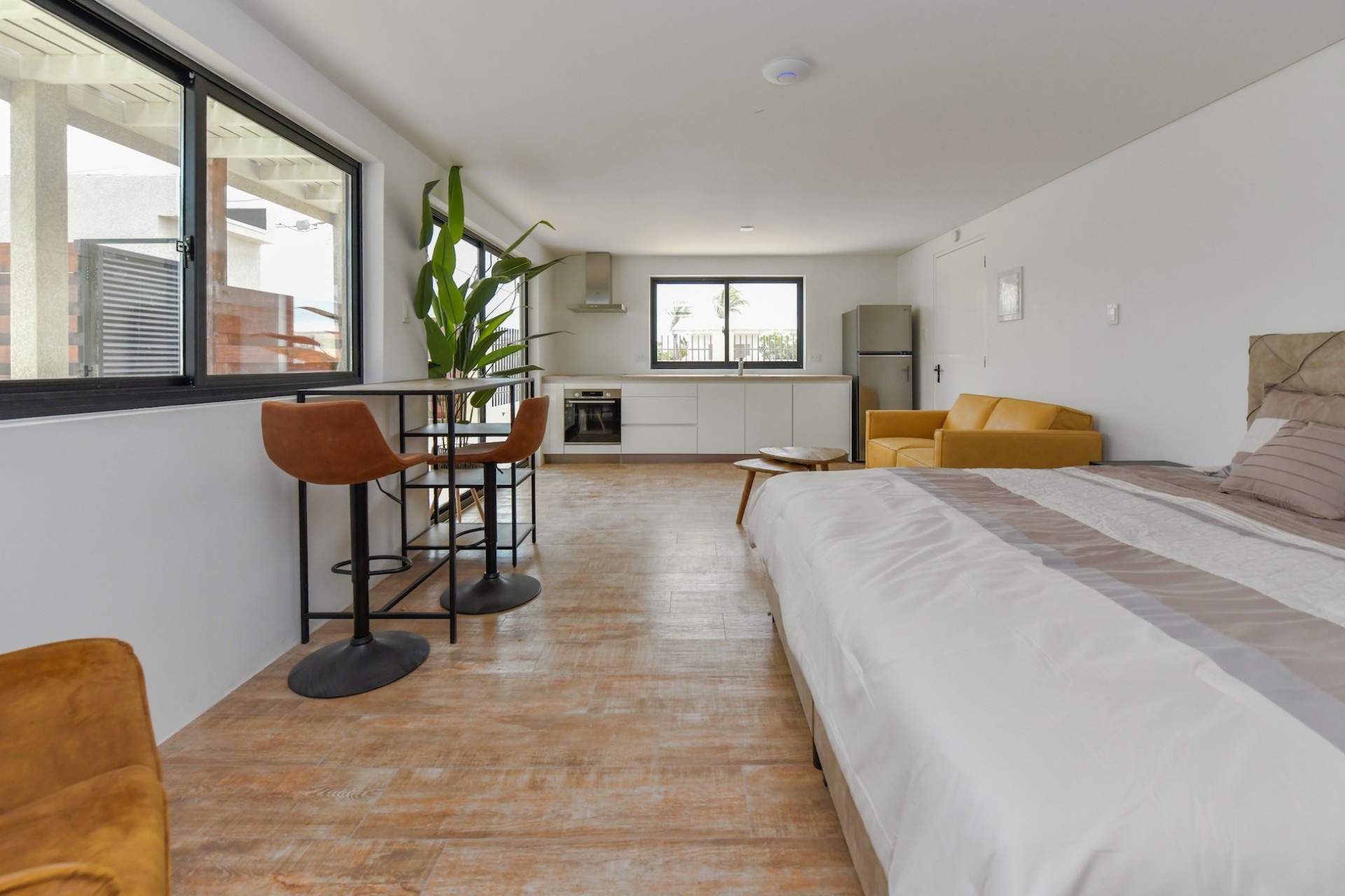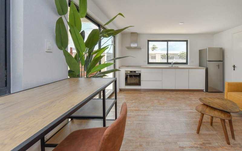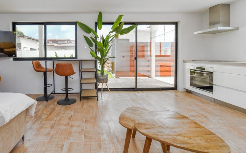 Spacious Studio Apartment, unit 2 Located on a 727m² property, this beautiful and well constructed complex features a main building with 10 high-end studio apartments and 1 two bedroom apartment. Apartment 2, situated on the ground floor, is a 59m² studio with a practical layout. Inside, you will find a premium quality European kitchen complete with all appliances, all bedroom and living room furniture and light fixtures and a private Grof by Kohler luxury bathroom. The apartment includes a 23.5m² well positioned outdoor terrace, positioned at the front of the building, providing a comfortable and relaxing outdoor space. The building is constructed with solid concrete blocks and columns, ensuring durability. The walls are finished with A1 plaster and paint. The apartment has a modern European and refined look, featuring wooden sliding doors and black aluminum-framed double glass isolated windows. The flooring is covered with high-quality Brazilian ceramic tiles, adding to the overall elegance. A split-unit air conditioner efficiently cools the entire apartment. The communal garden offers various well-designed amenities, including all outdoor furniture, swimming pool and pool deck and a barbecue area with pergola. Additionally, the outdoor space features a communal washer and dryer, extra seating areas, walkways, garden lighting, and lush greenery with plants and trees, creating a relaxing atmosphere. The apartment is located on a spacious paved road in center Oranjestad: Rudolf Arendsstraat 42. Just a few minutes' drive from the cruiseterminal, beaches and and restaurants. It's all conveniently nearby, making this an ideal place to live or enjoy a holiday in your second home. Key Features: 1 studio apartment Property land Close proximity to Oranjestad Spacious build-up area: 59m² including 23.5m2 outside terrace Community amenities include pool, BBQ area and sitting areas Low monthly HOA fee Turn key, including all premium European kitchen, furniture and appliances Don’t miss out on this unique opportunity! Contact us today to learn more or schedule a visit! Bibi Louwers +2975697343